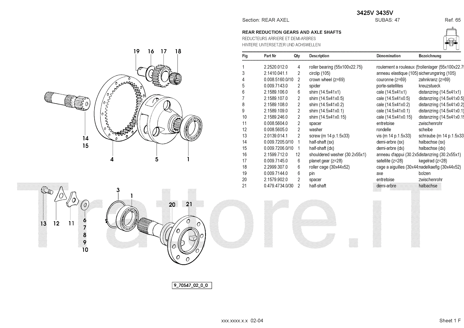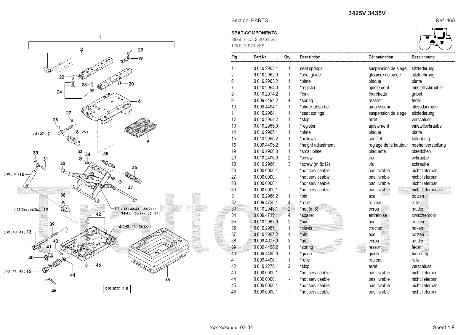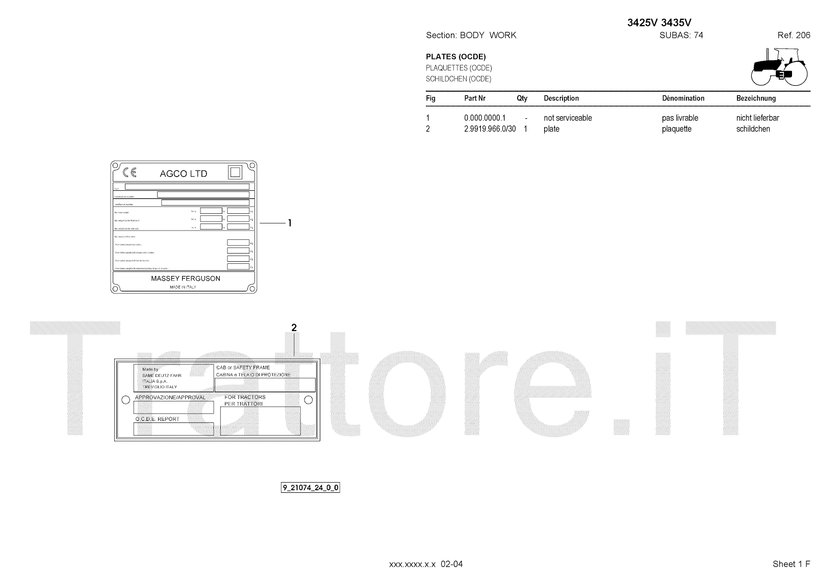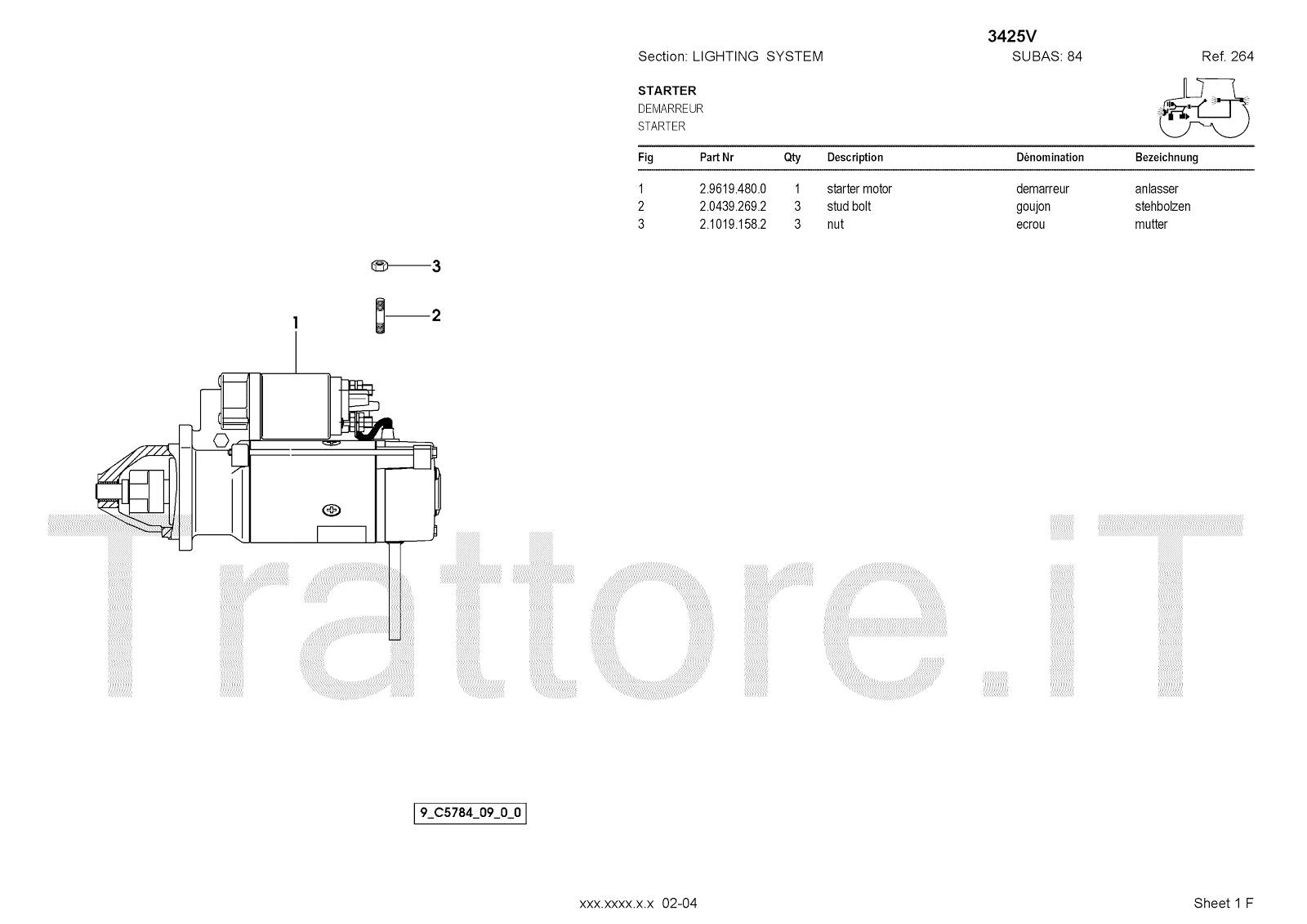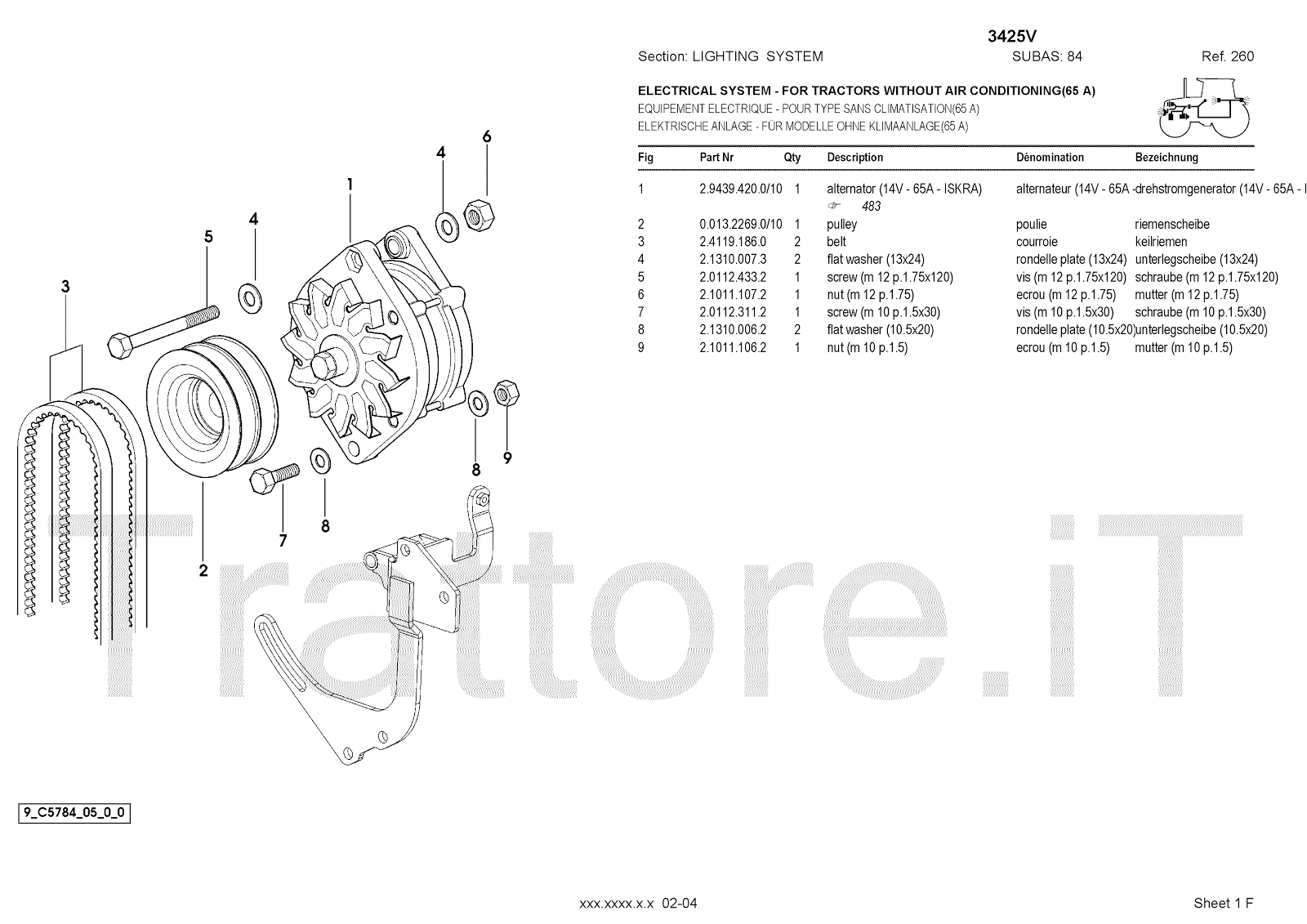Manuale (esploso meccanico) per trattore / trattrice Massey Ferguson 3425V