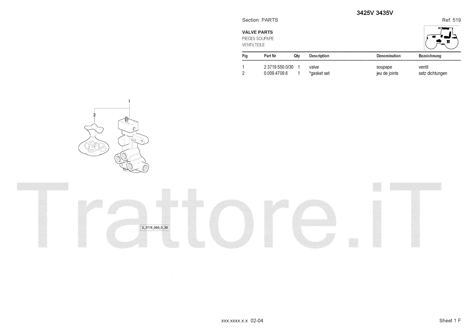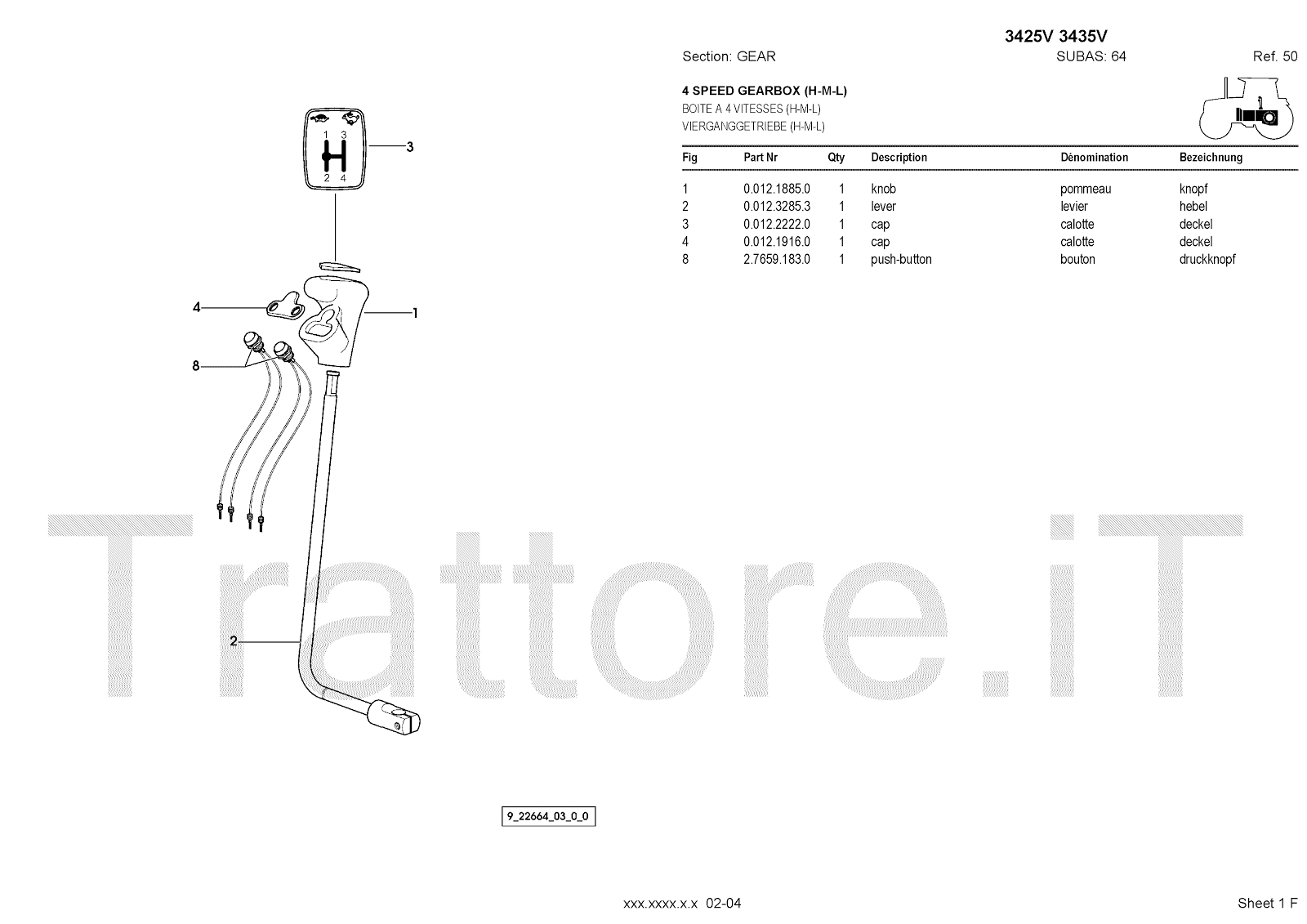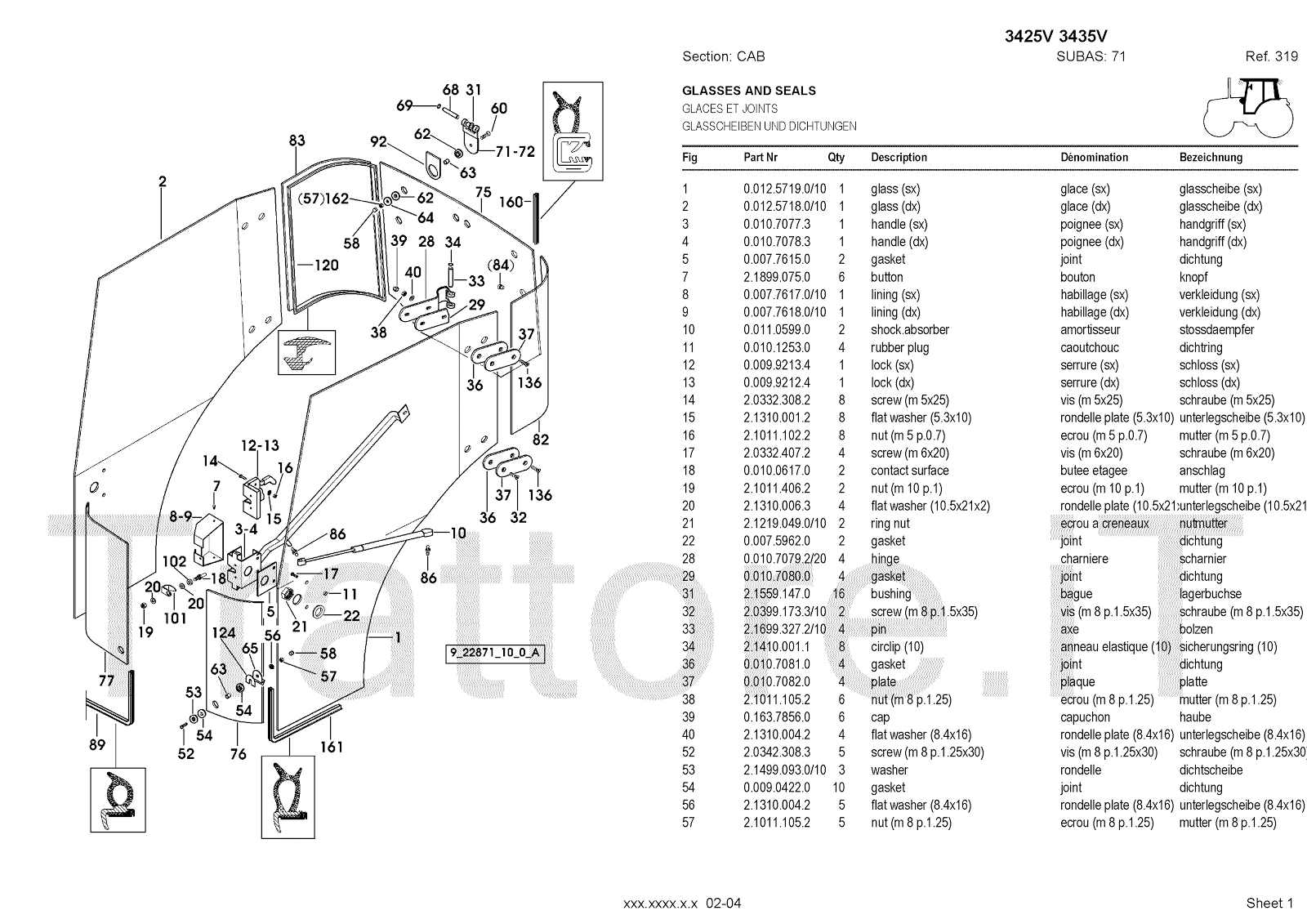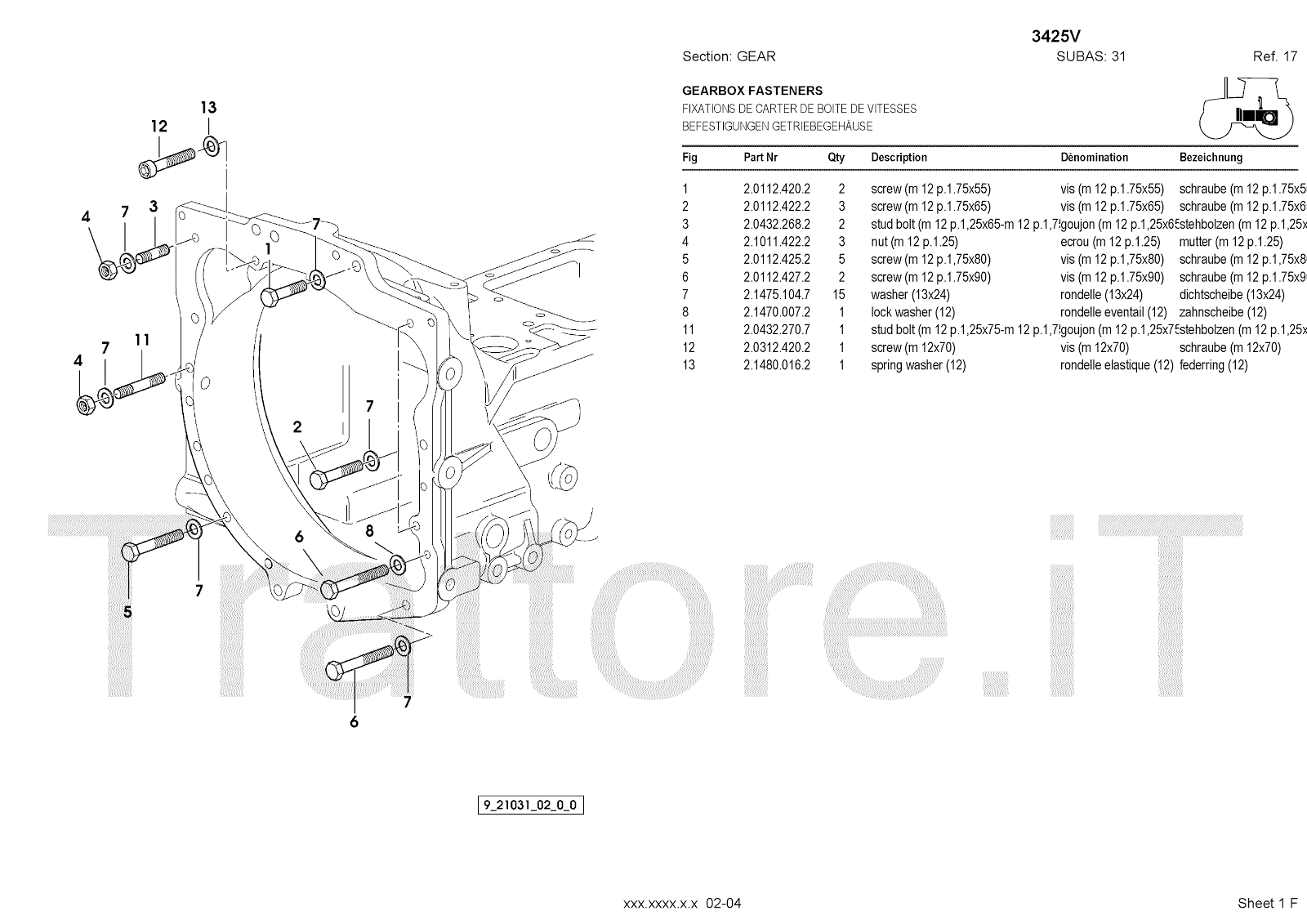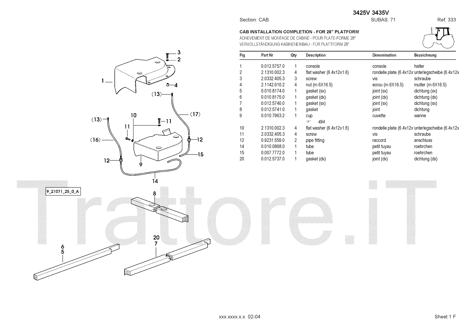 Manuale (esploso meccanico) per trattore / trattrice Massey Ferguson 3425V