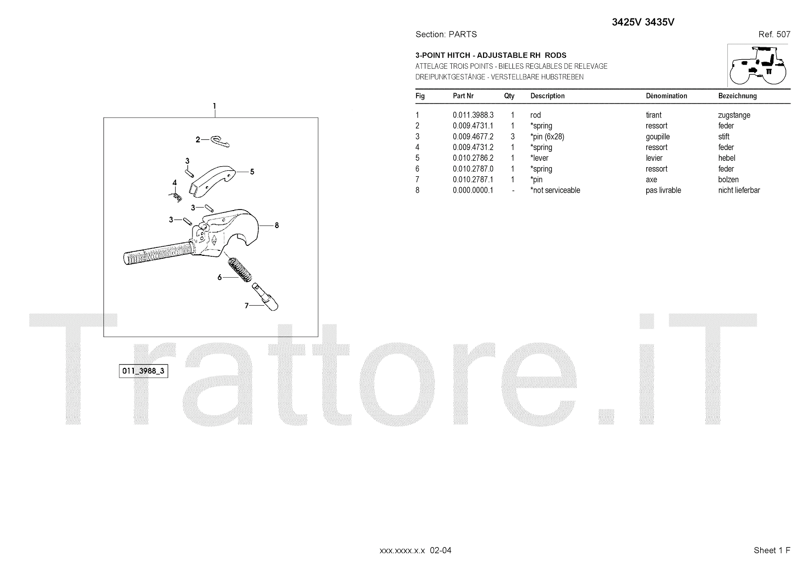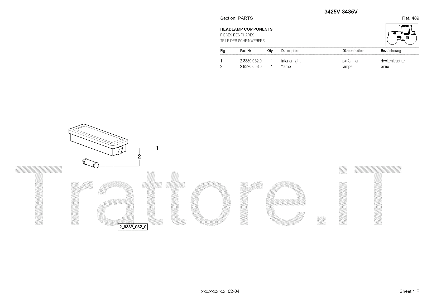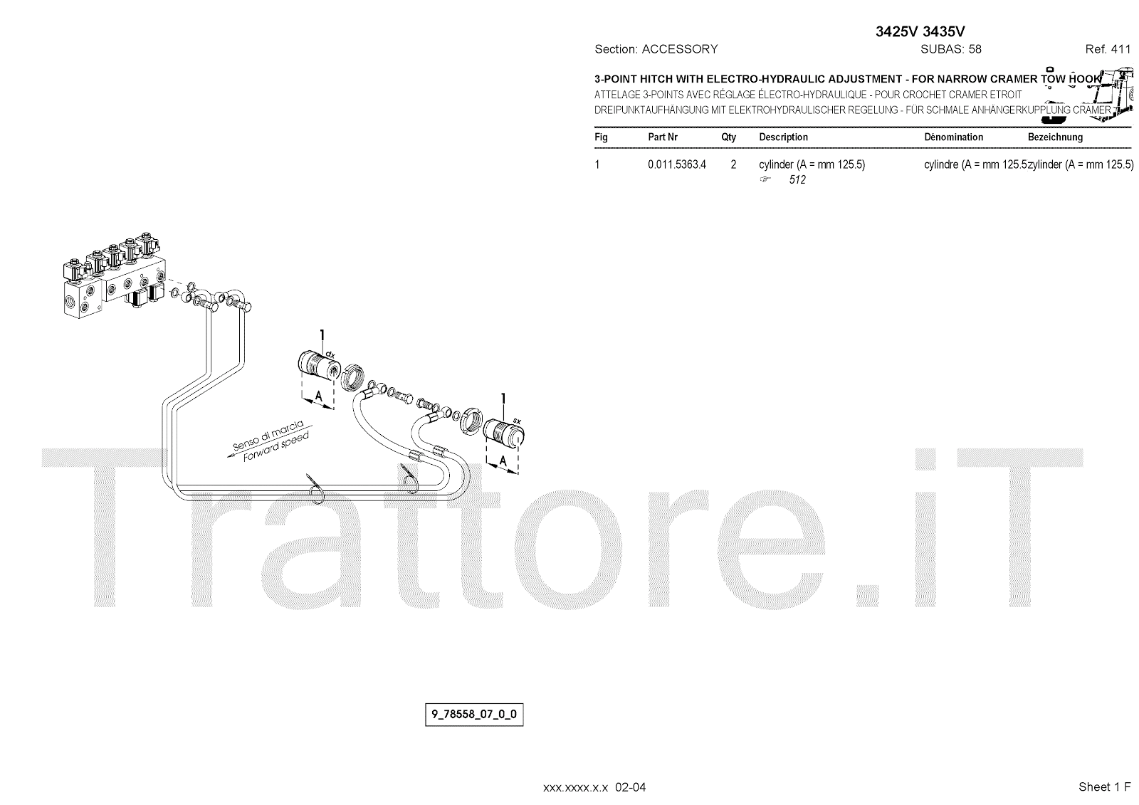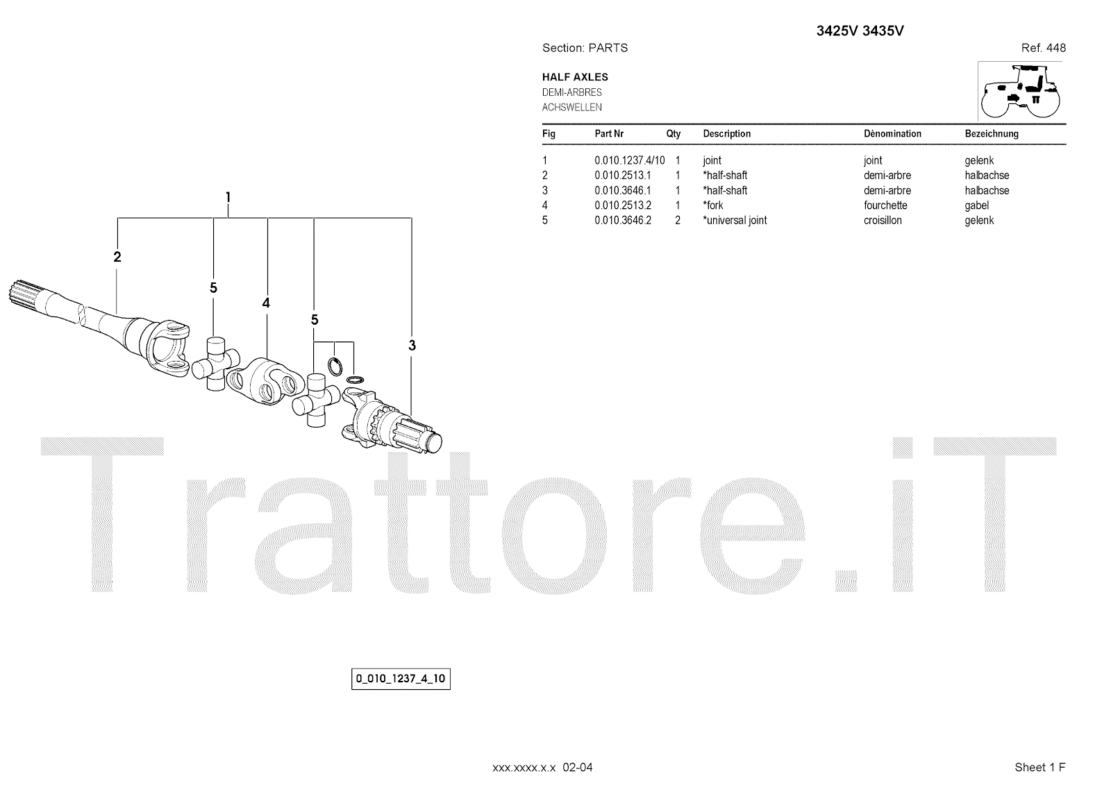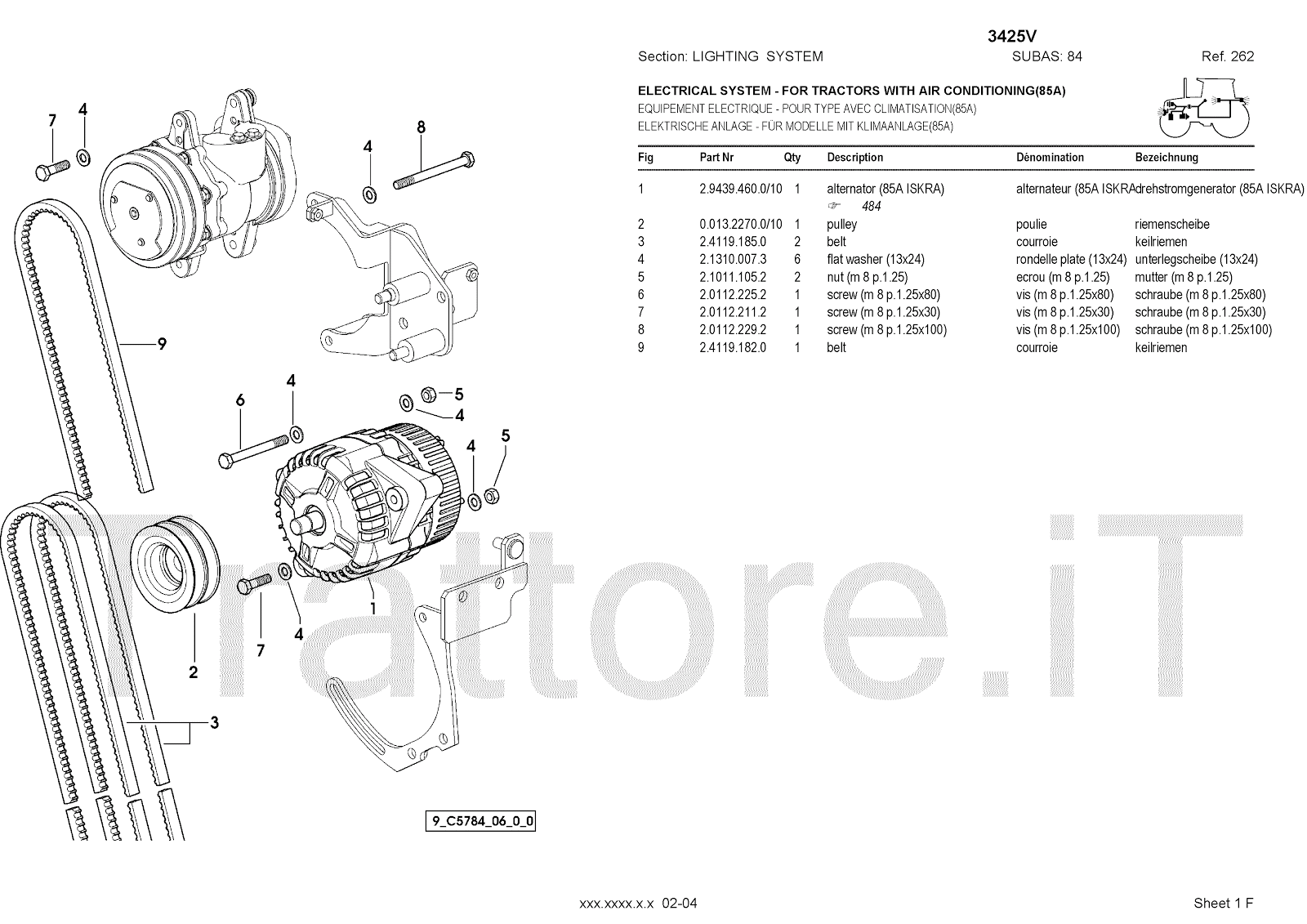 Manuale (esploso meccanico) per trattore / trattrice Massey Ferguson 3425V