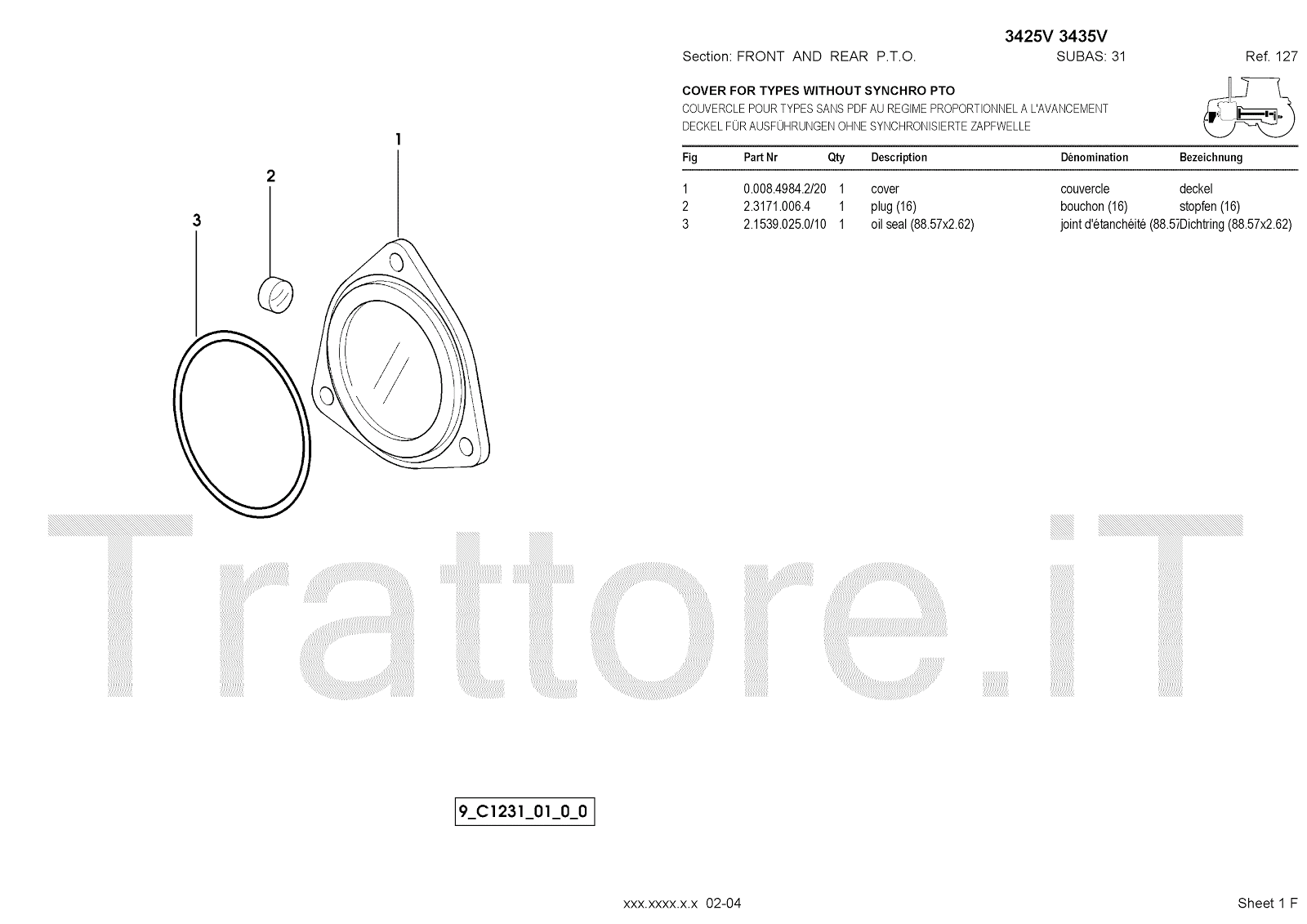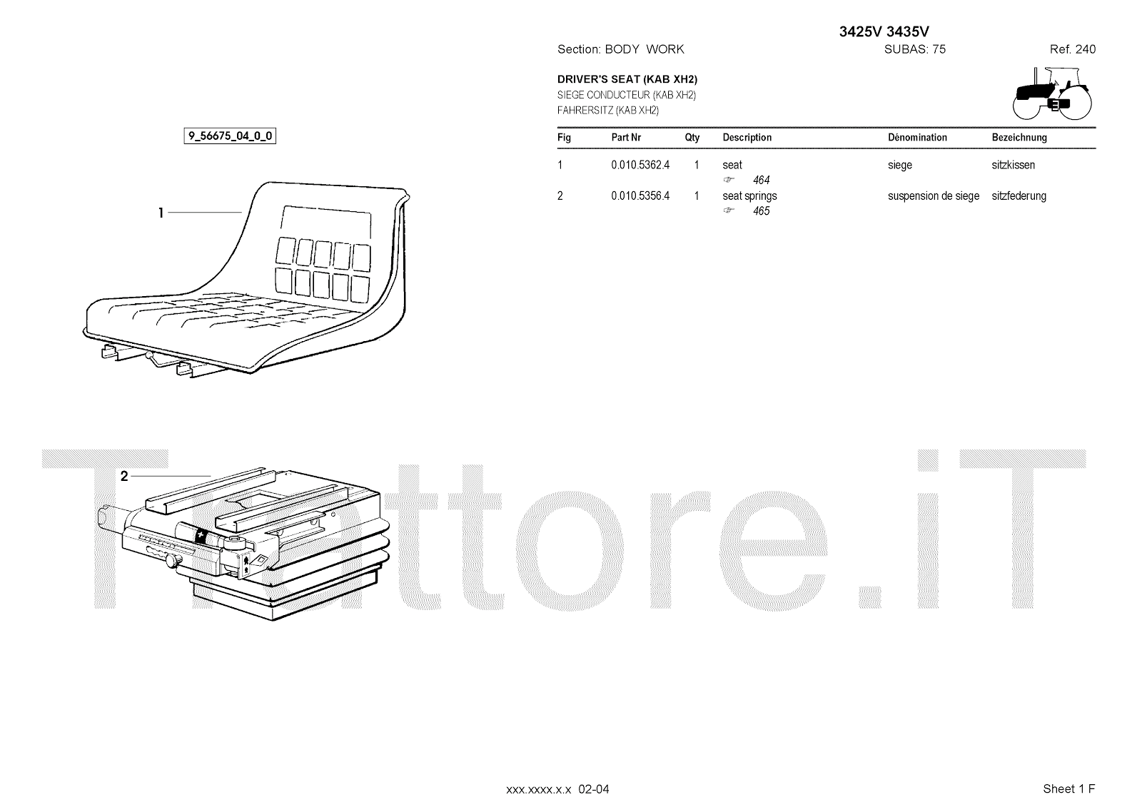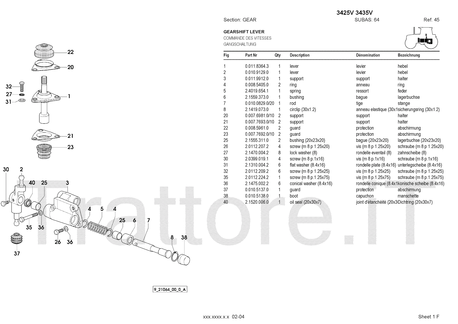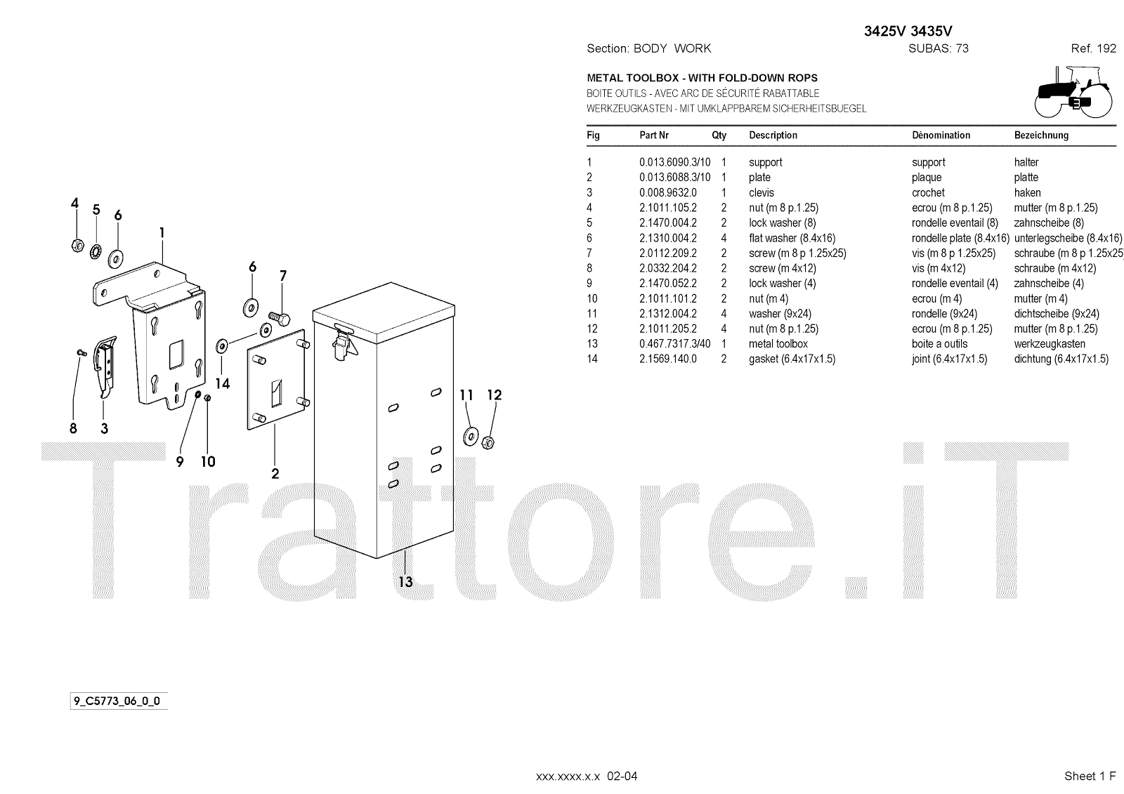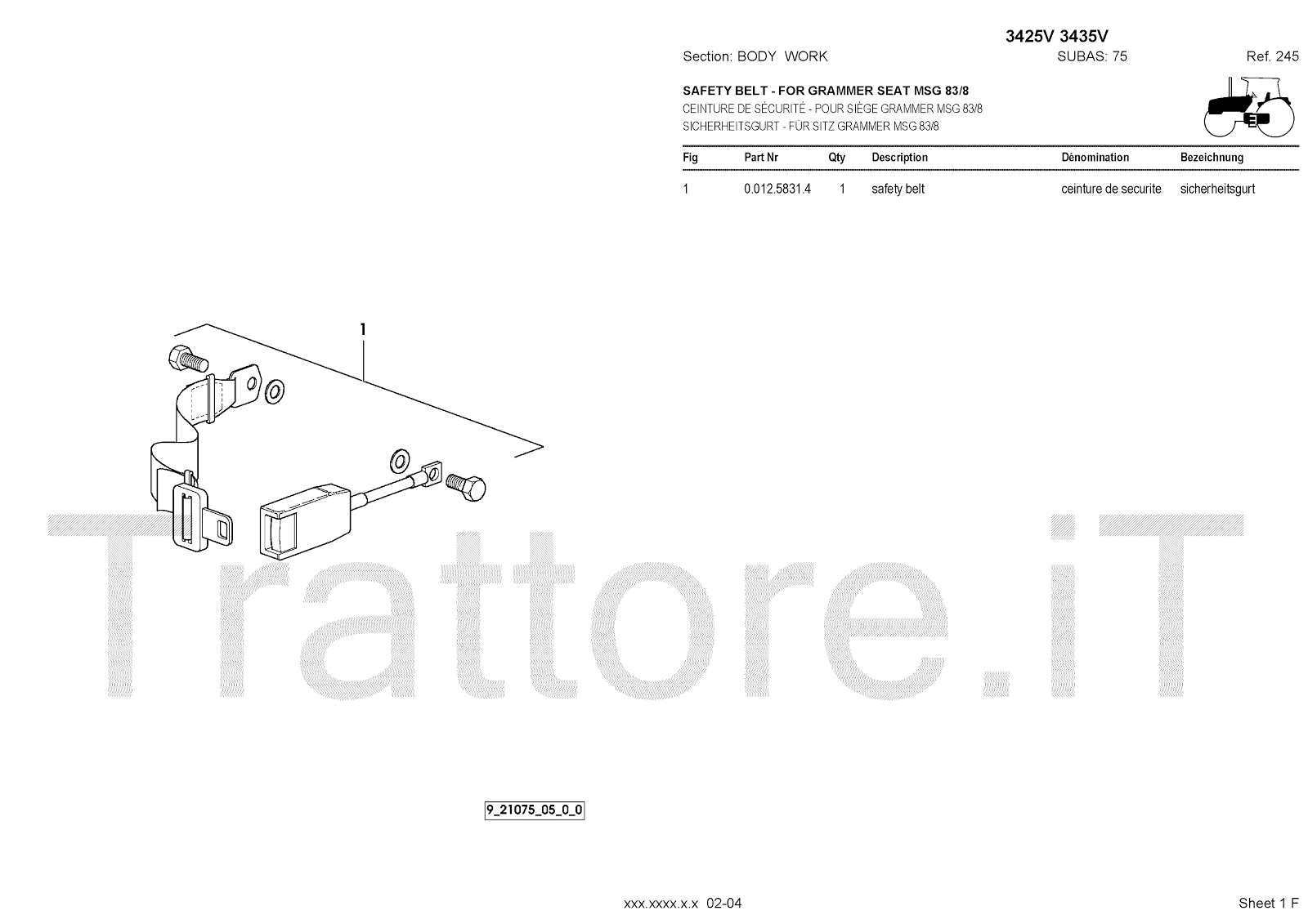 Manuale (esploso meccanico) per trattore / trattrice Massey Ferguson 3425V