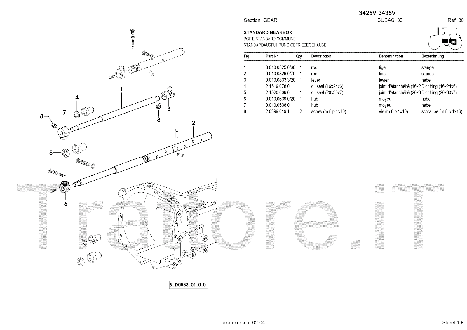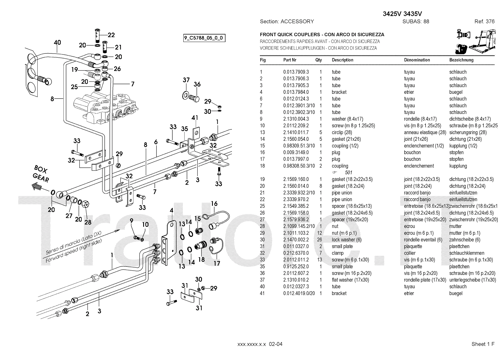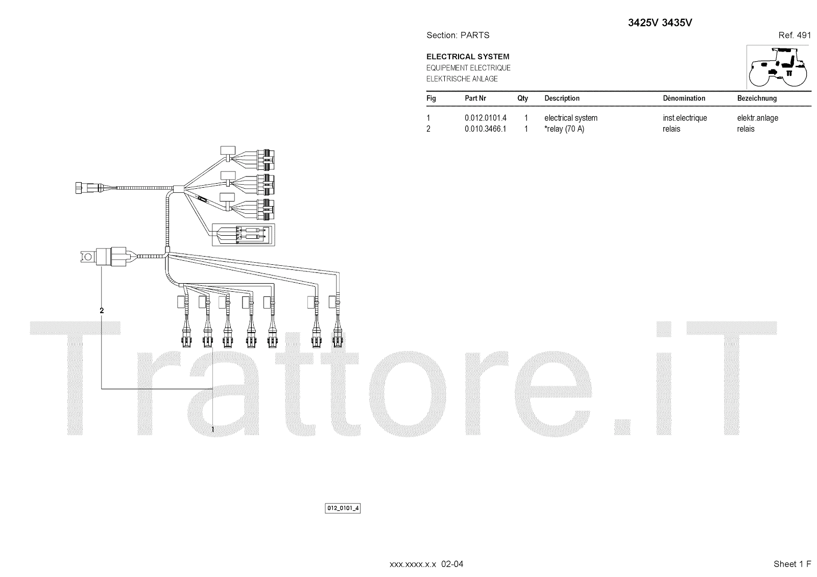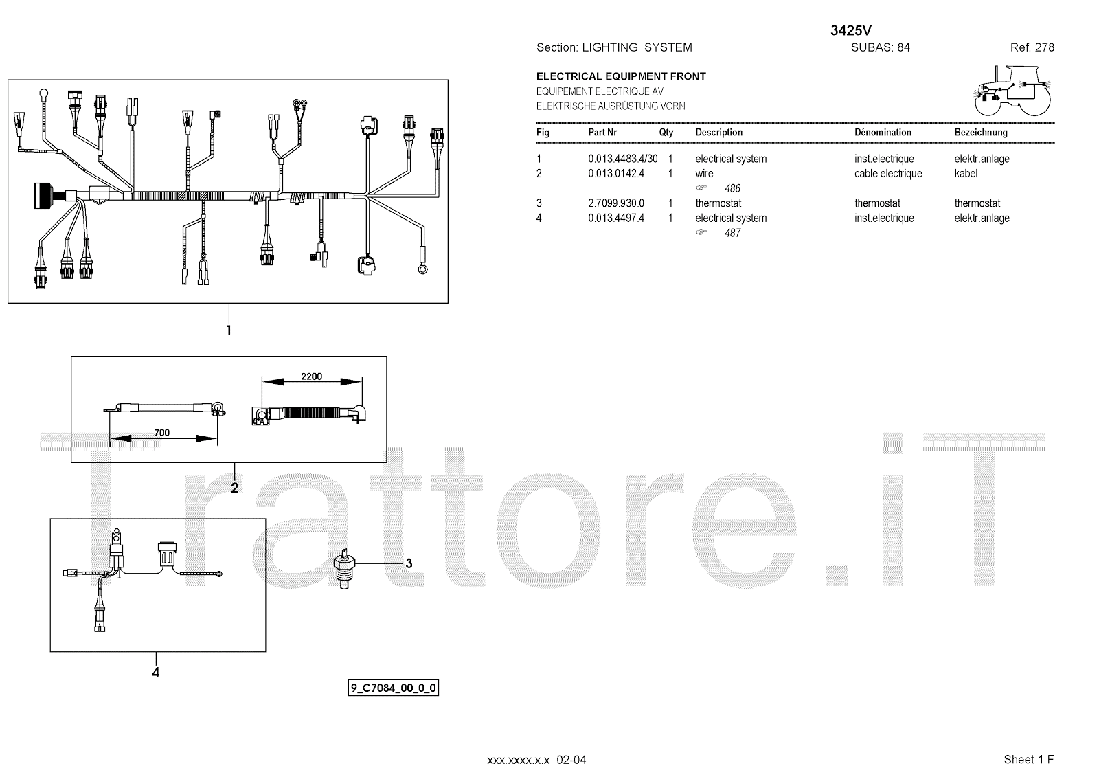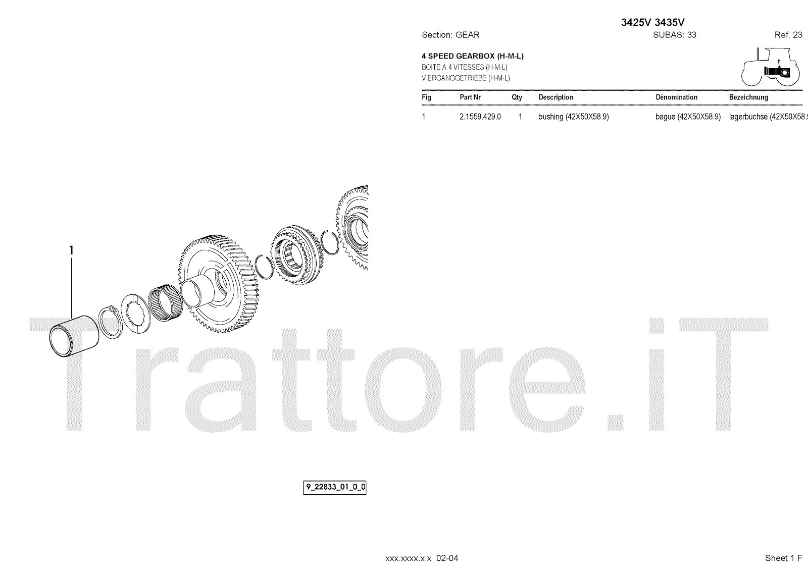 Manuale (esploso meccanico) per trattore / trattrice Massey Ferguson 3425V