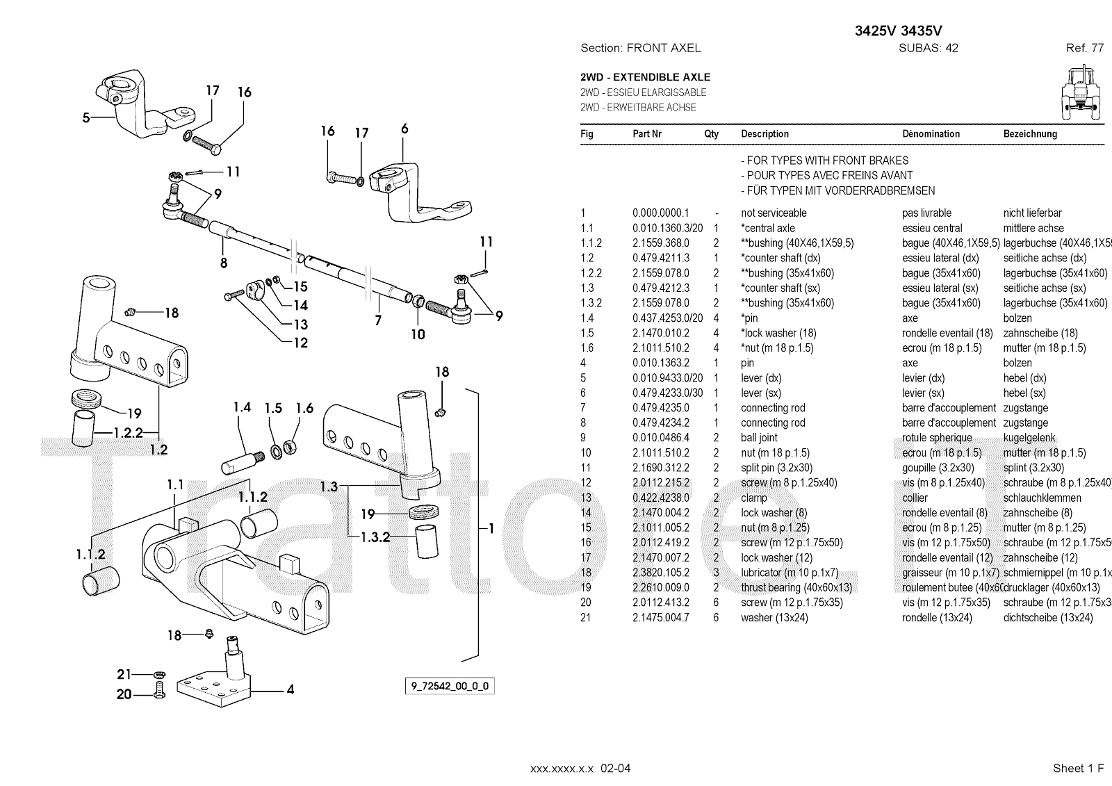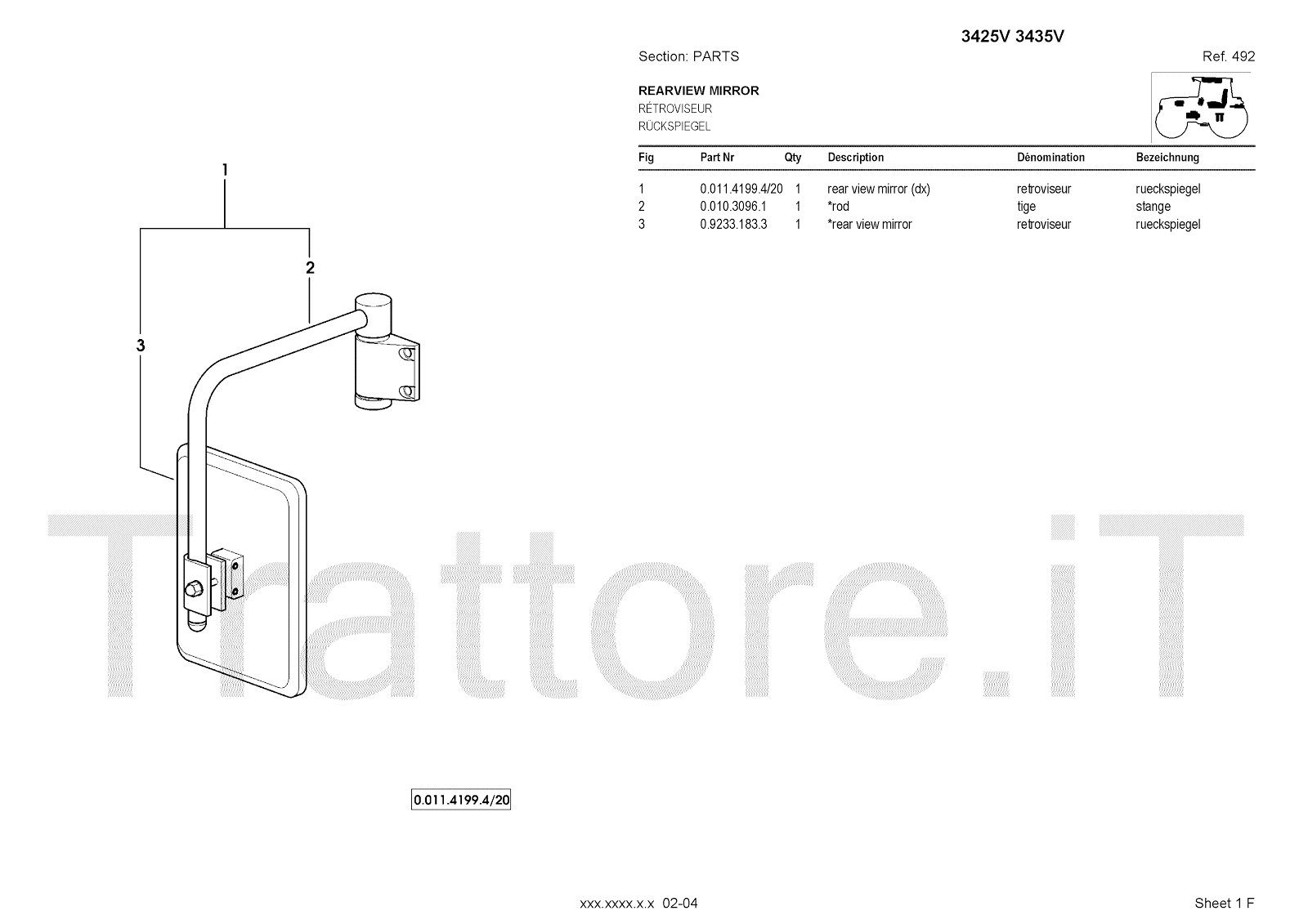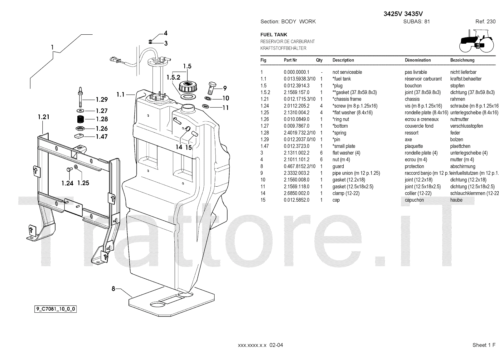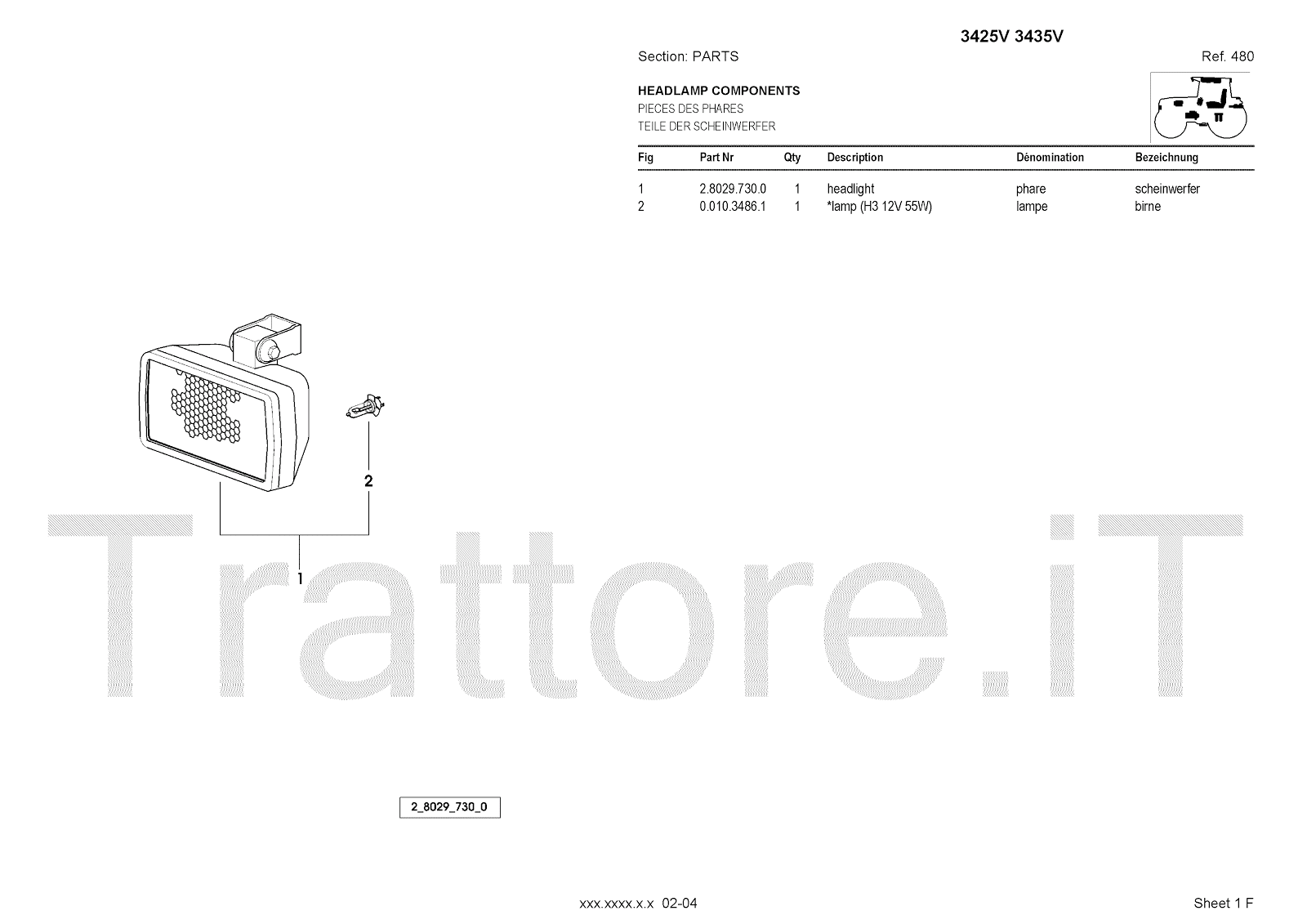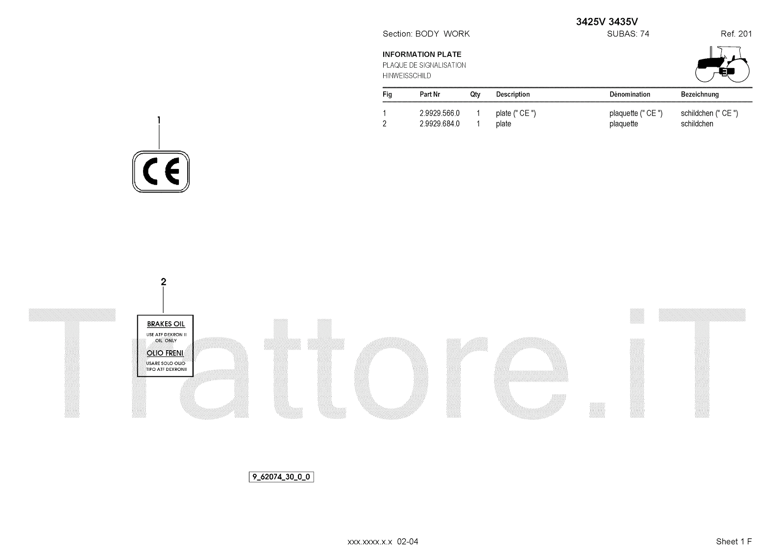 Manuale (esploso meccanico) per trattore / trattrice Massey Ferguson 3425V