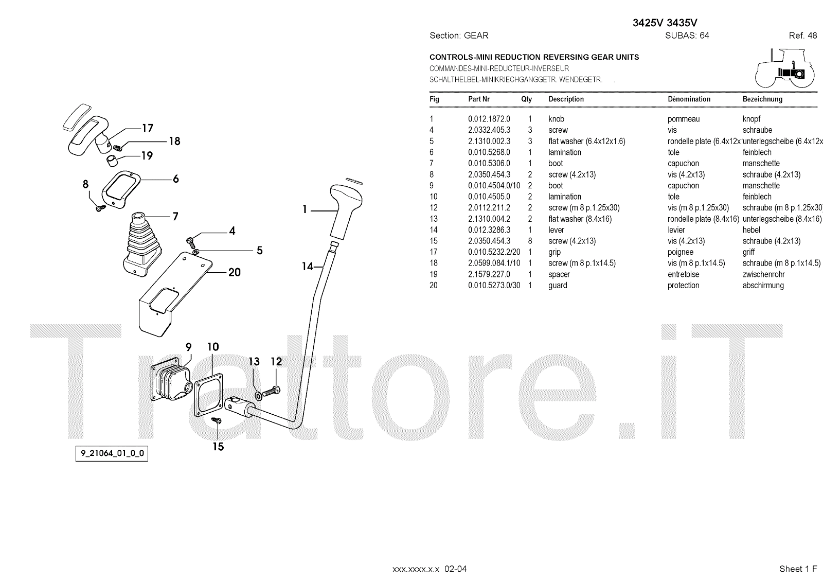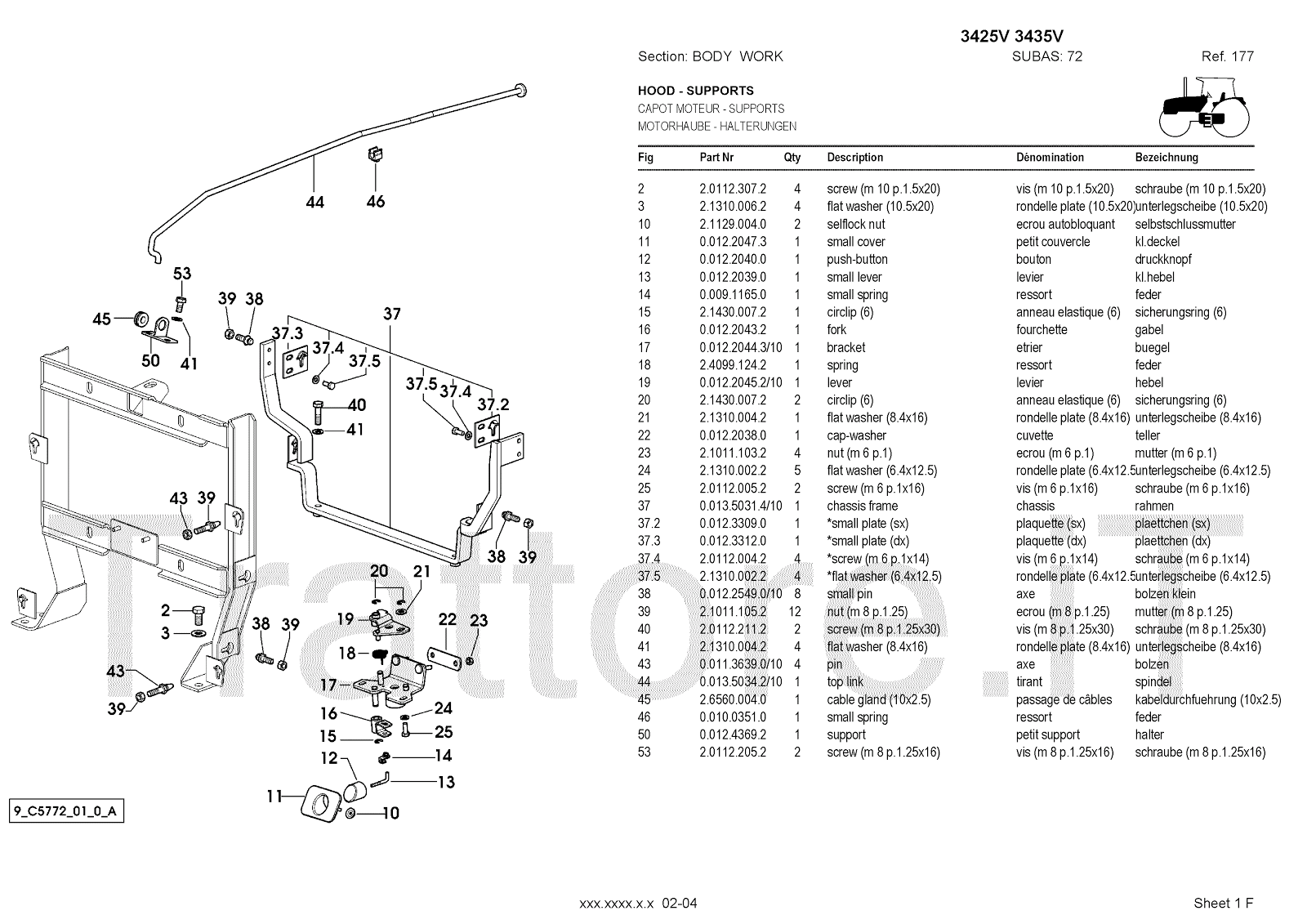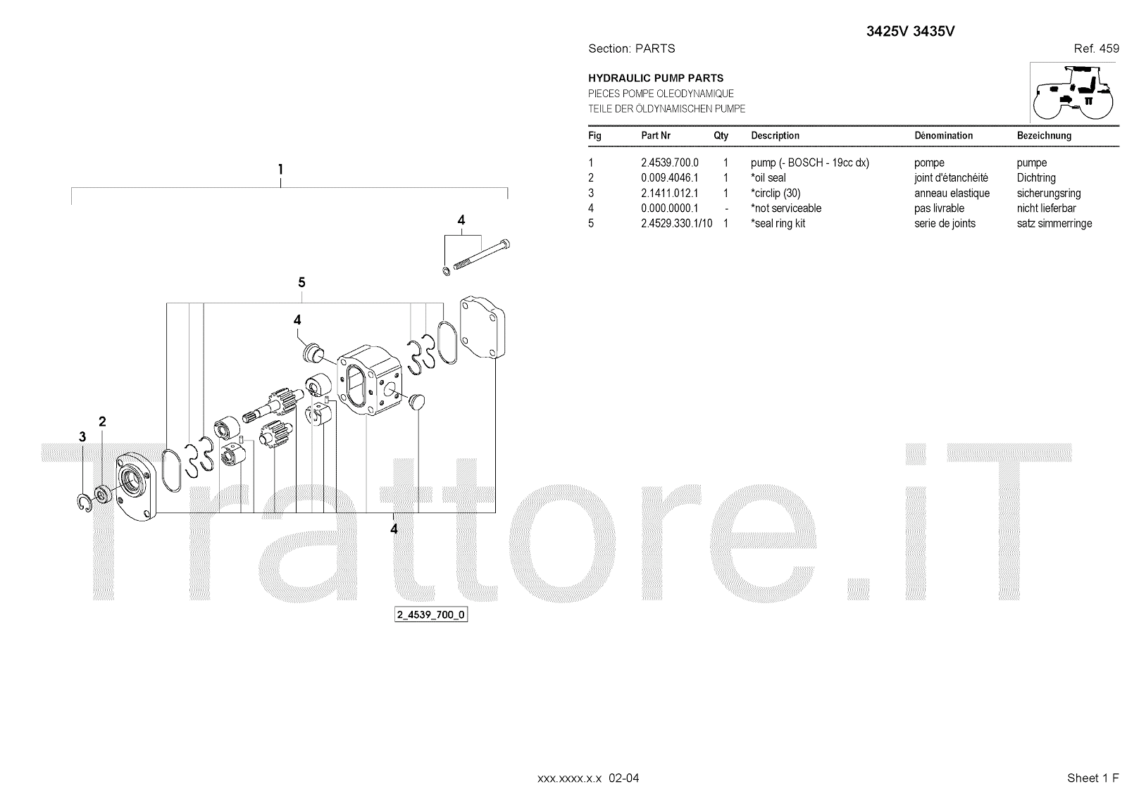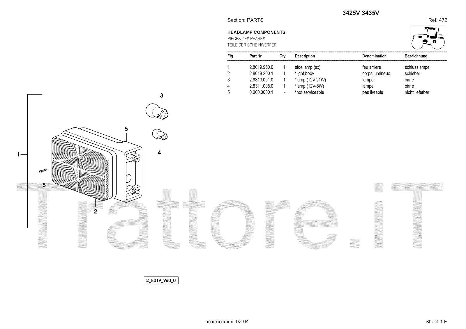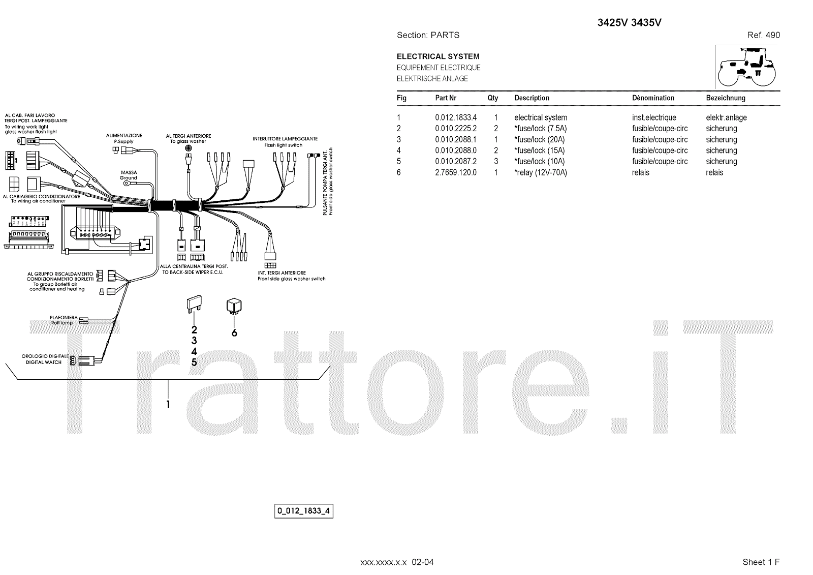 Manuale (esploso meccanico) per trattore / trattrice Massey Ferguson 3425V