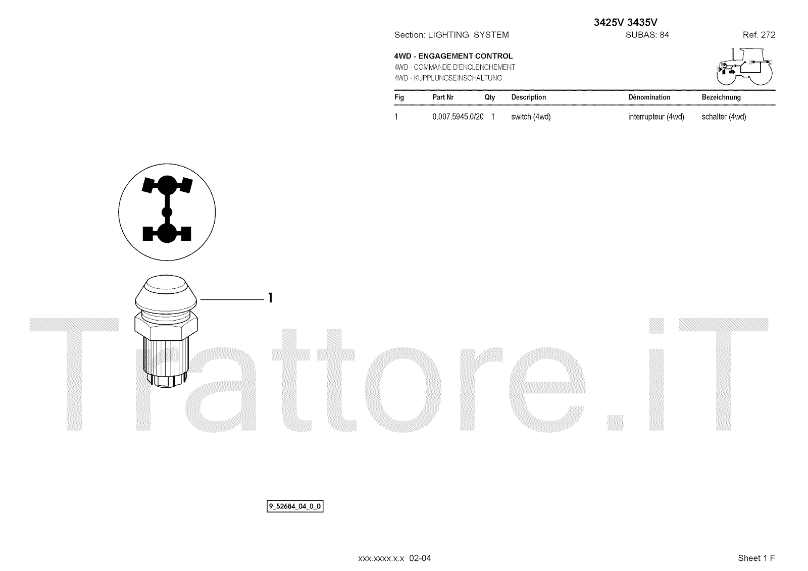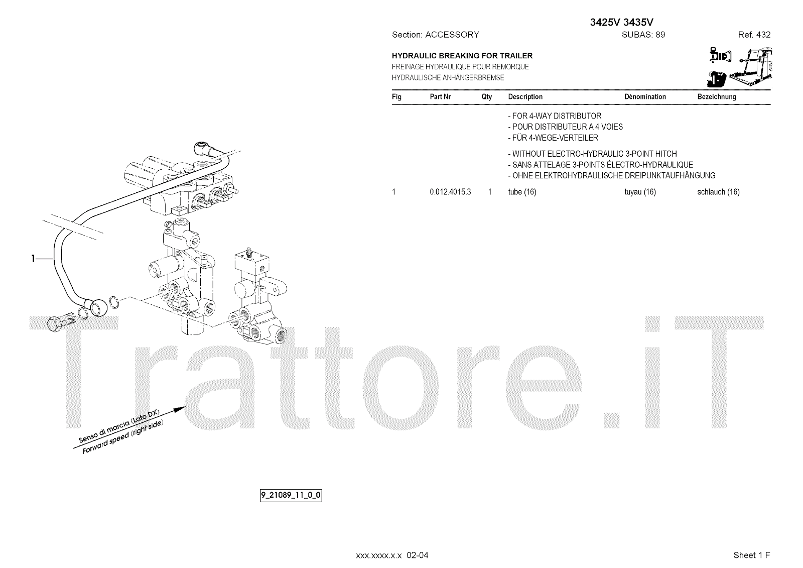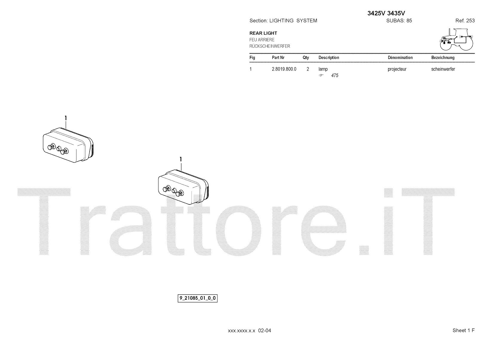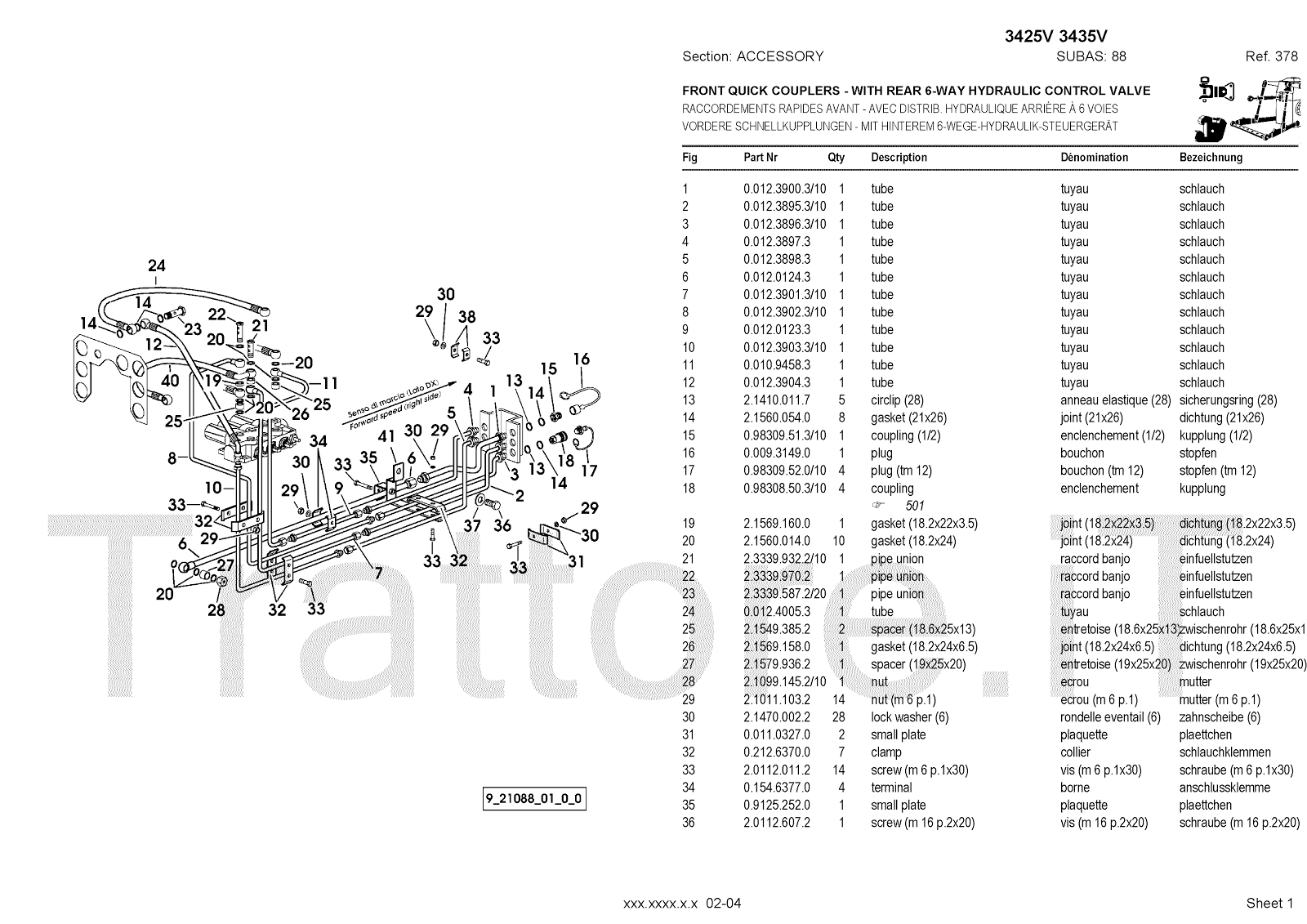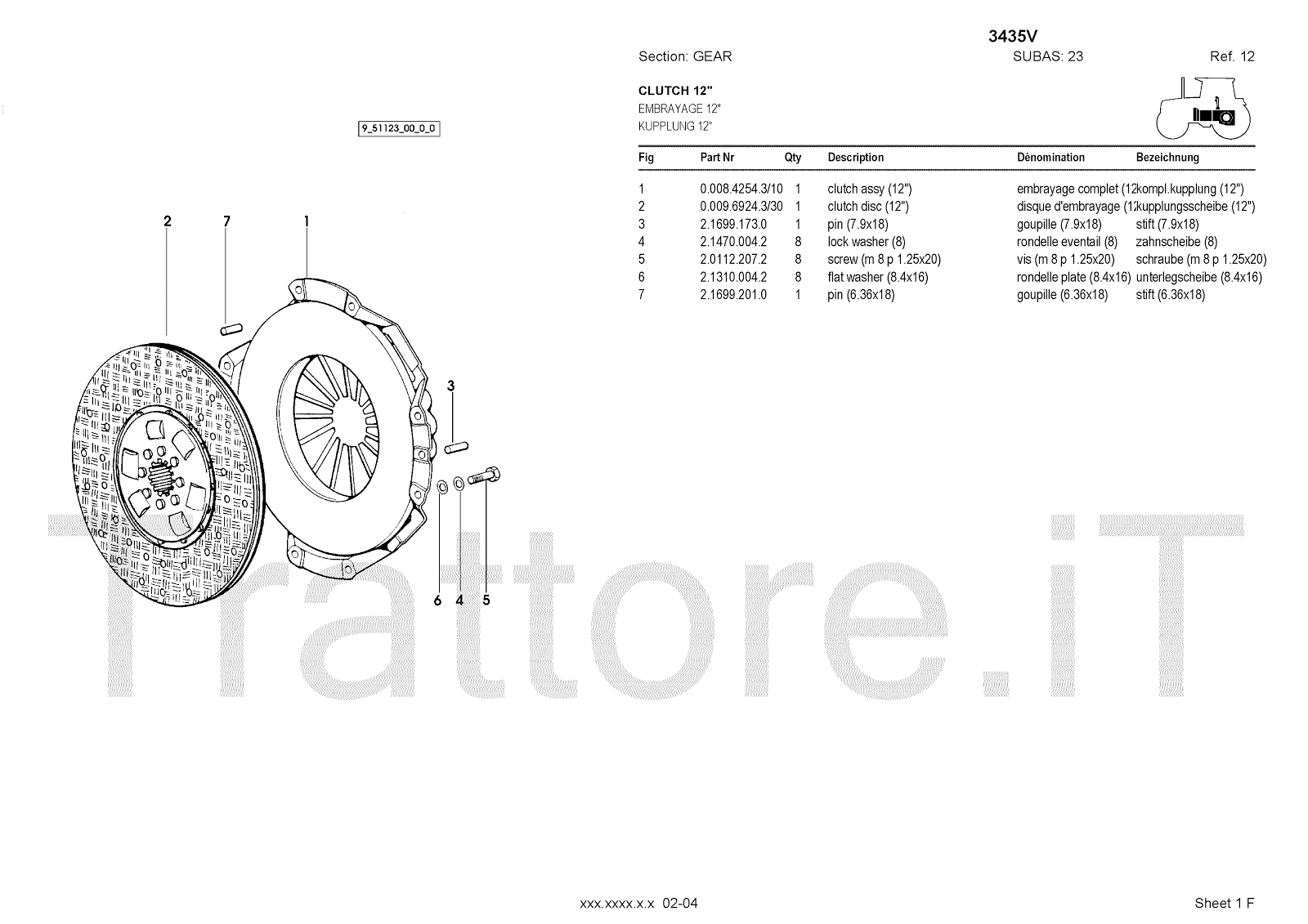 Manuale (esploso meccanico) per trattore / trattrice Massey Ferguson 3425V
