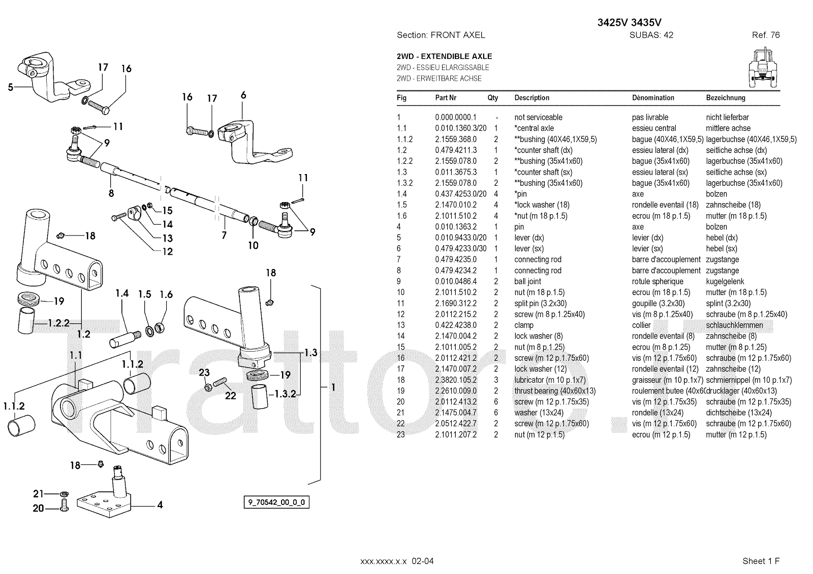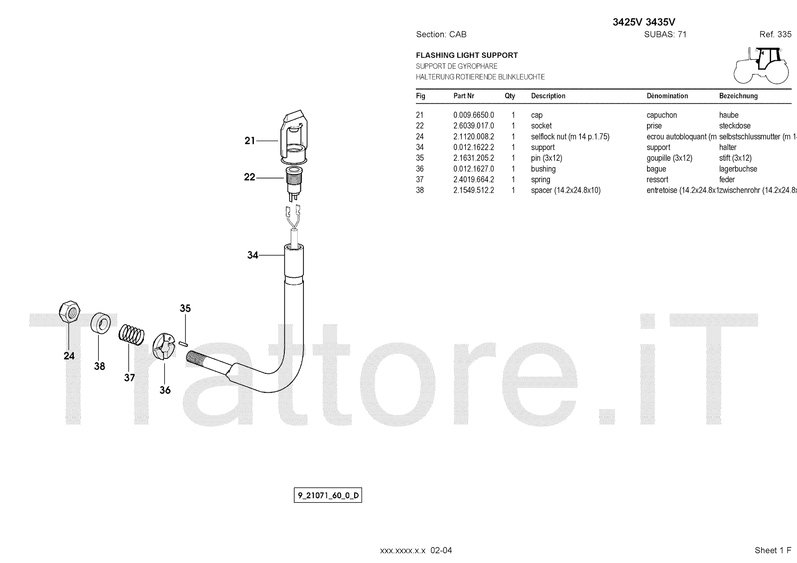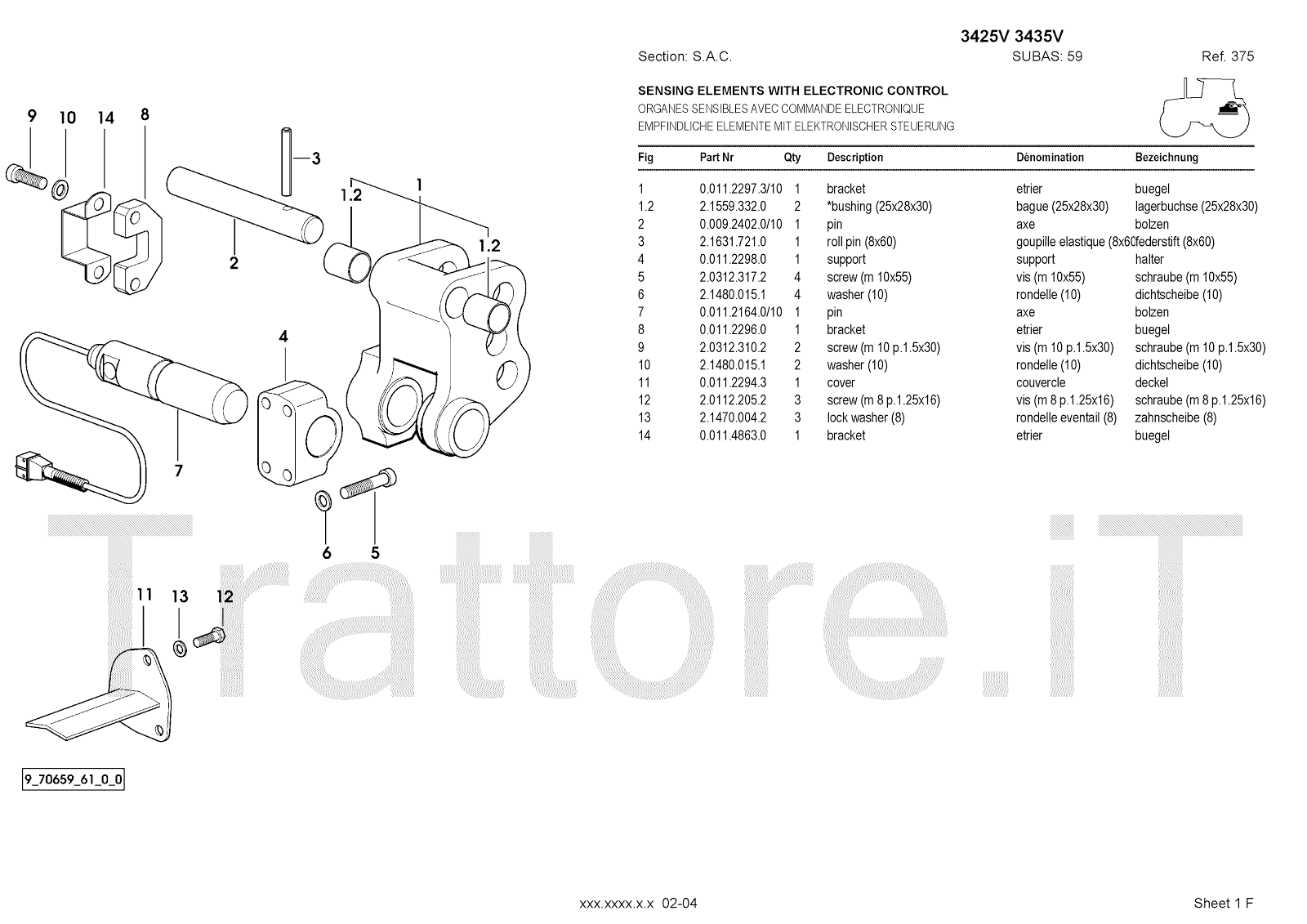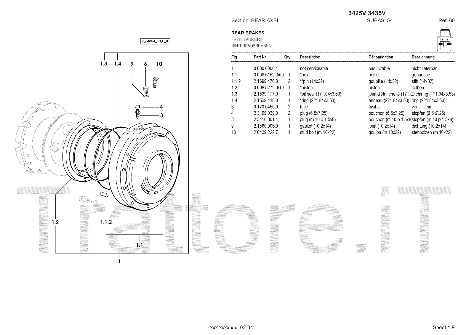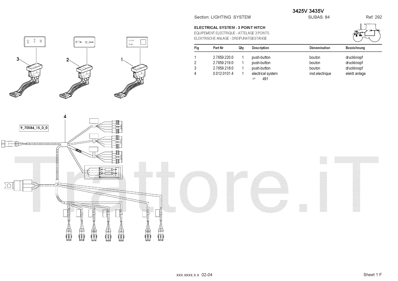 Manuale (esploso meccanico) per trattore / trattrice Massey Ferguson 3425V