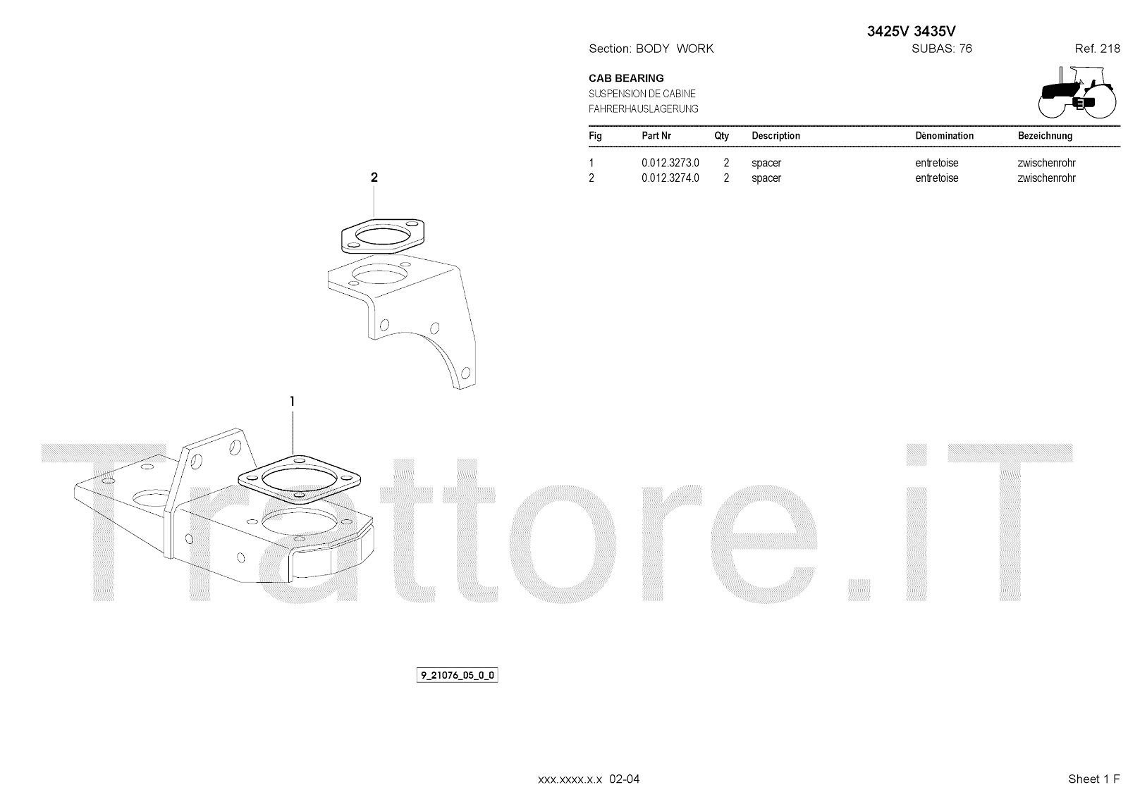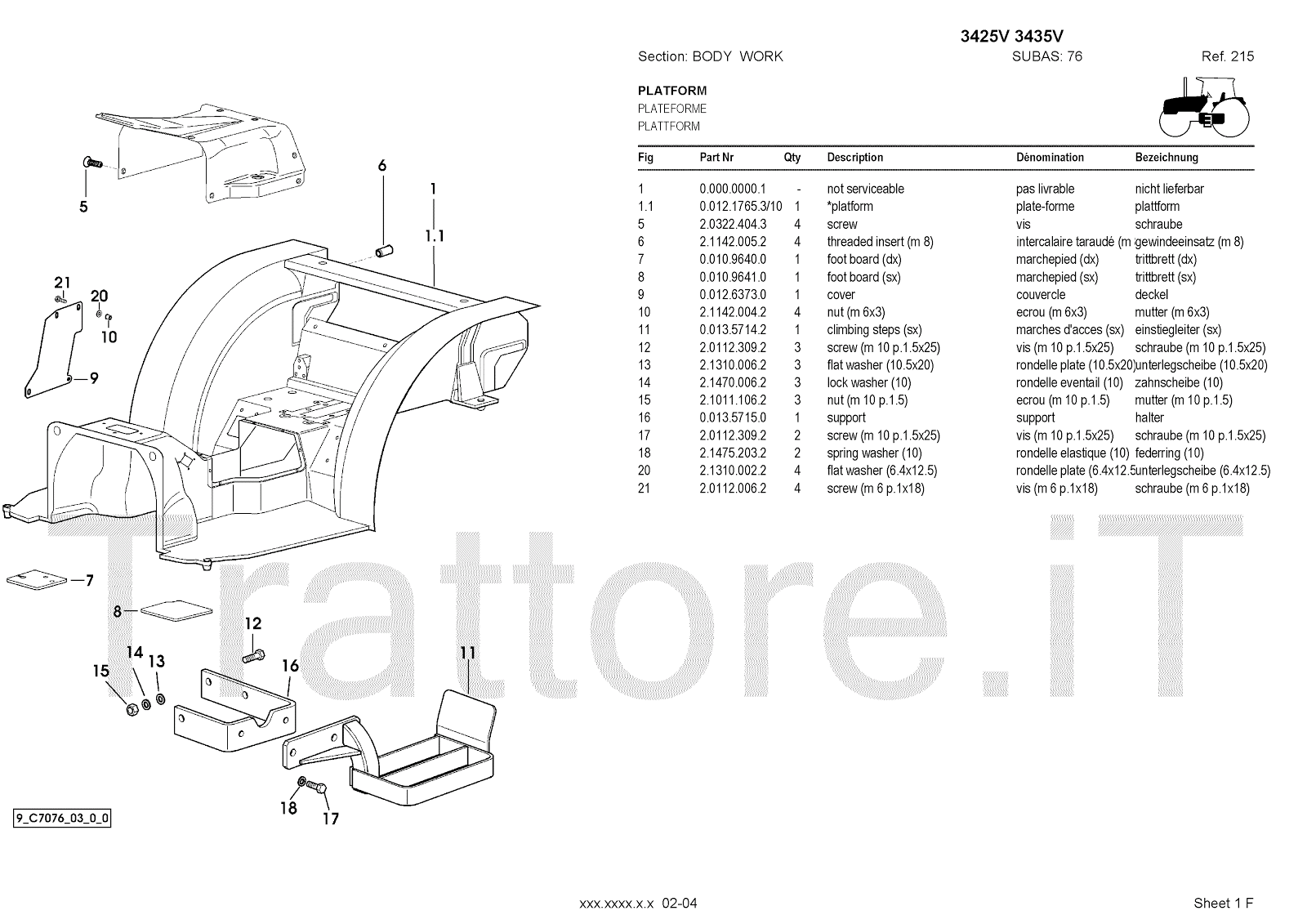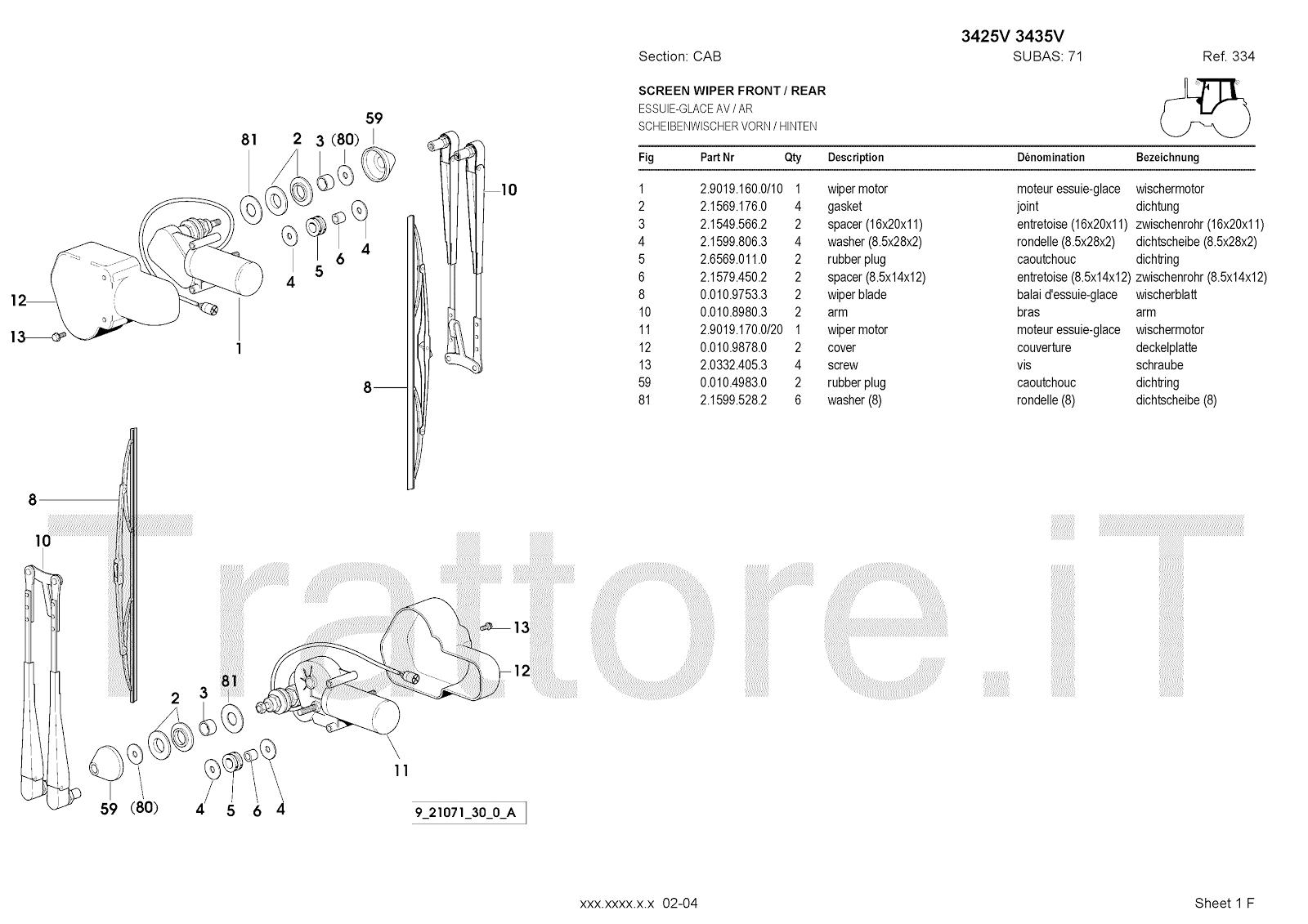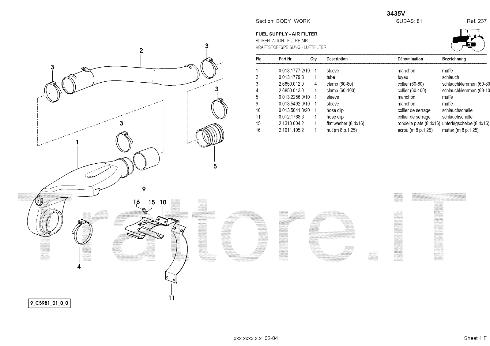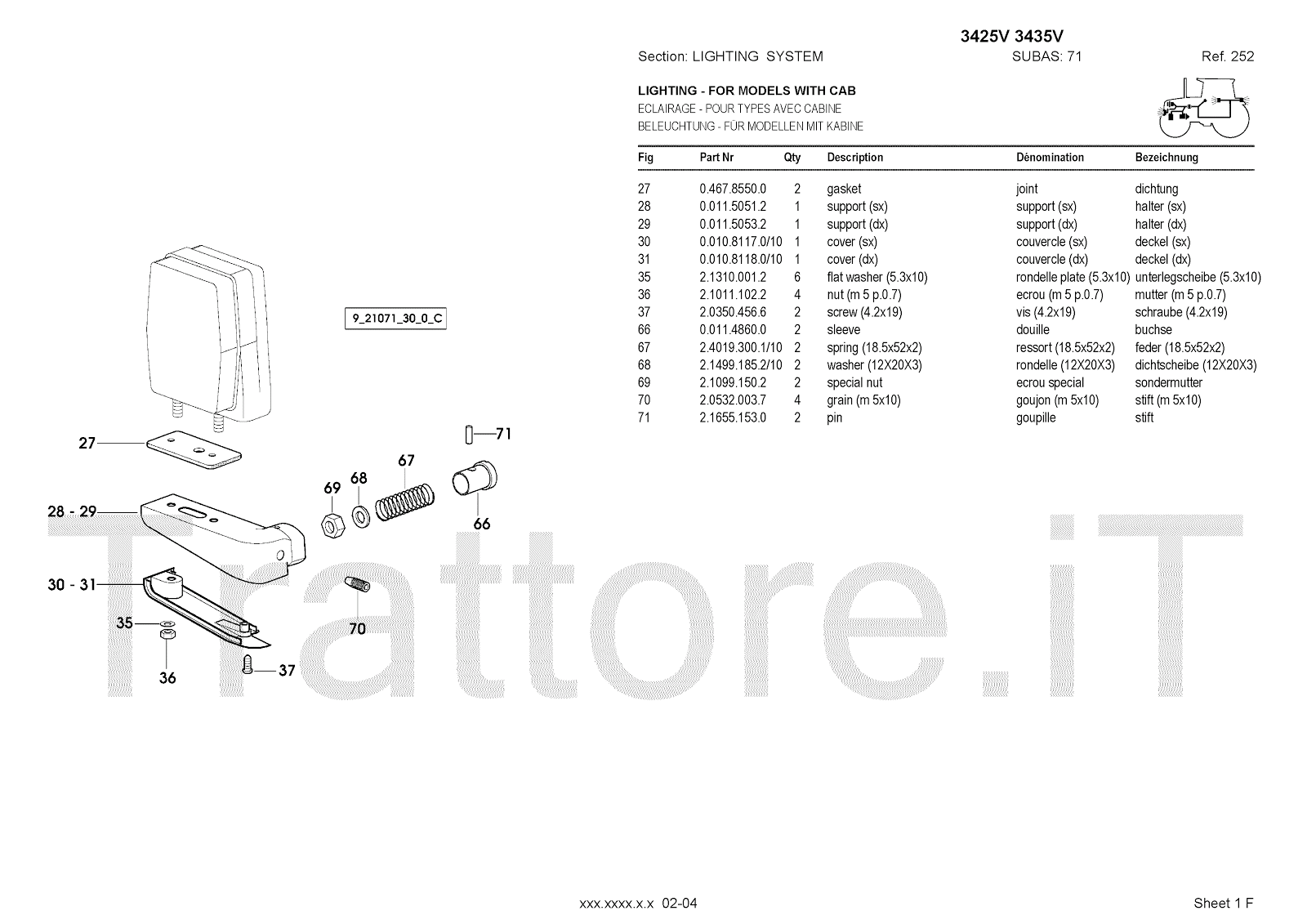 Manuale (esploso meccanico) per trattore / trattrice Massey Ferguson 3425V