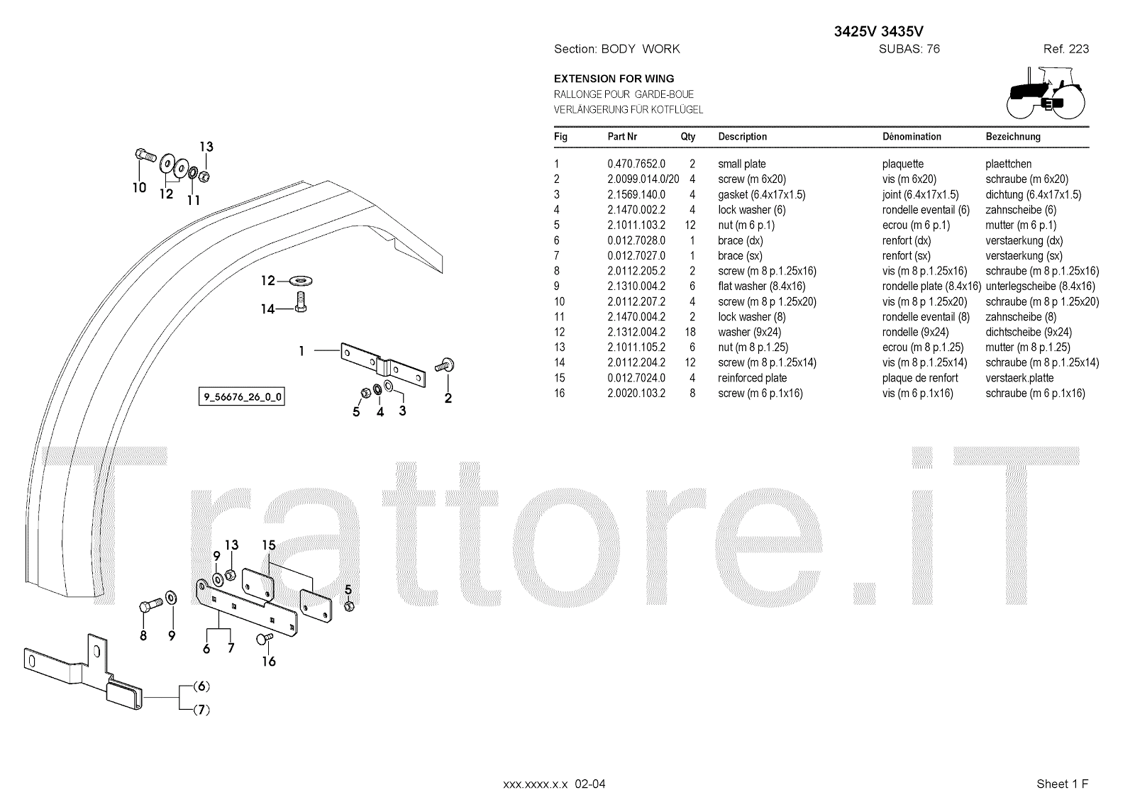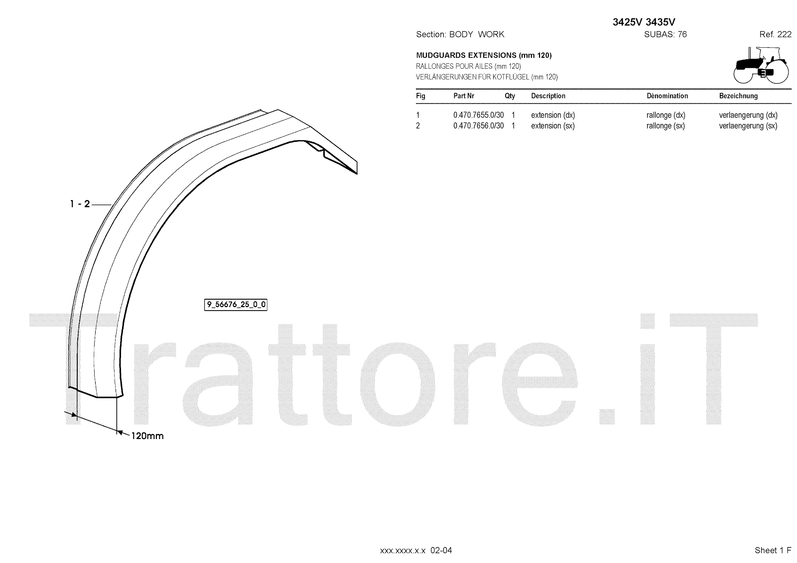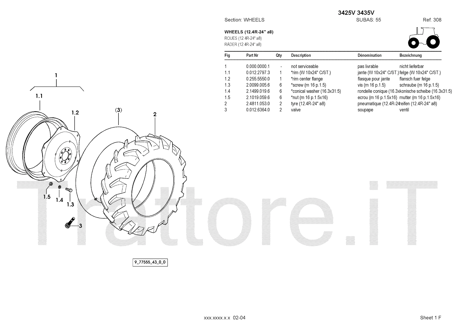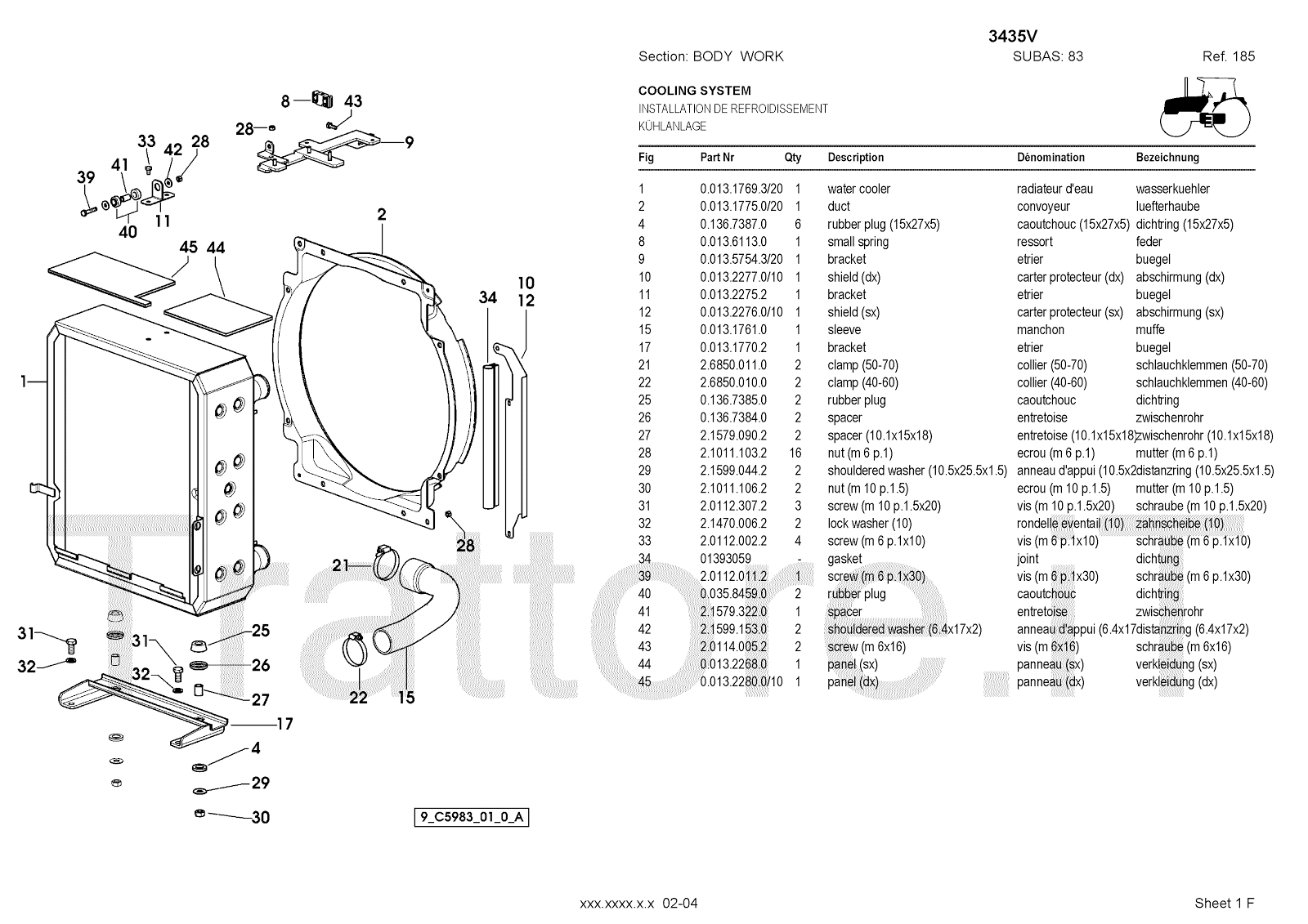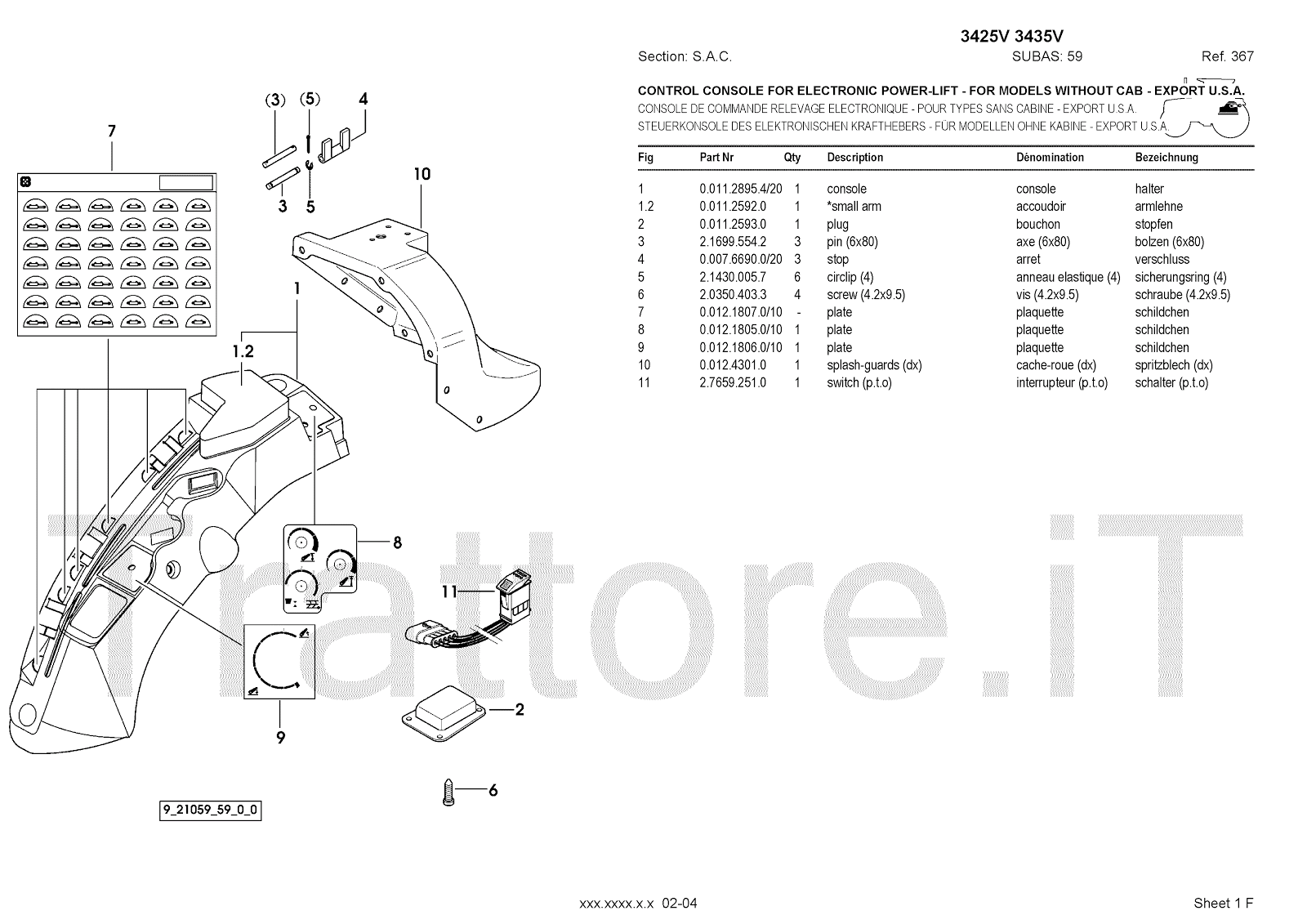Manuale (esploso meccanico) per trattore / trattrice Massey Ferguson 3425V