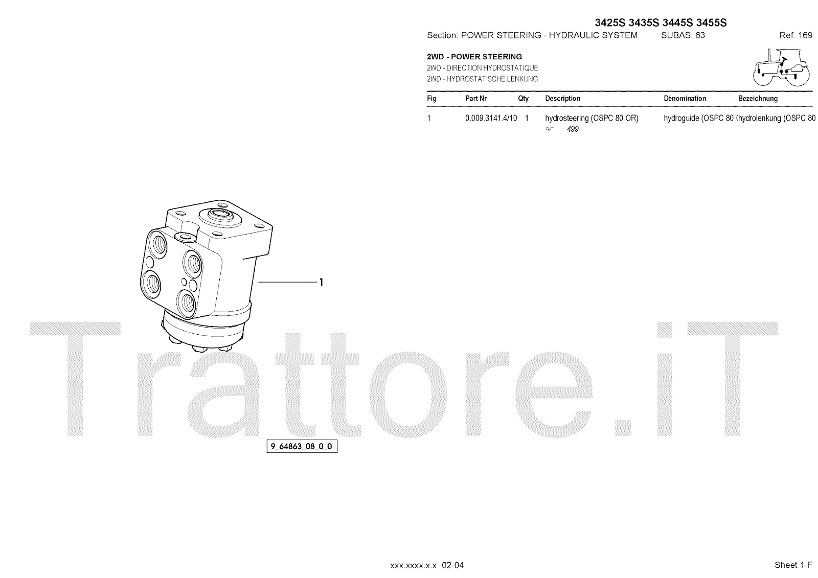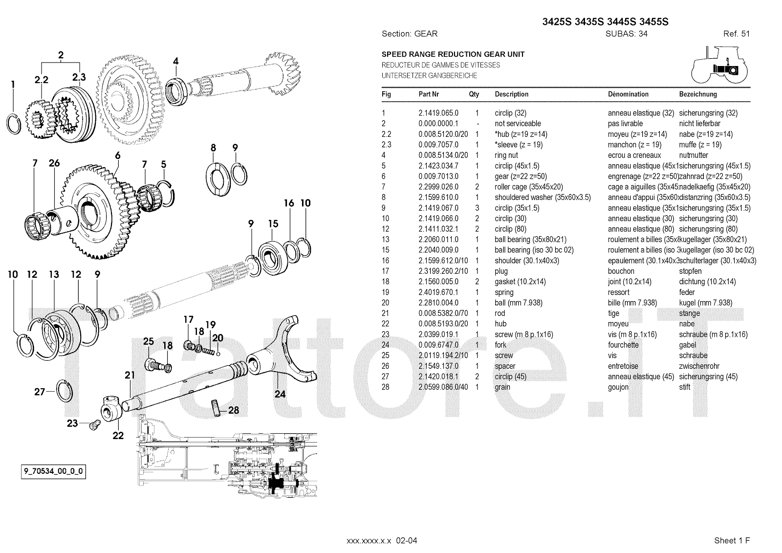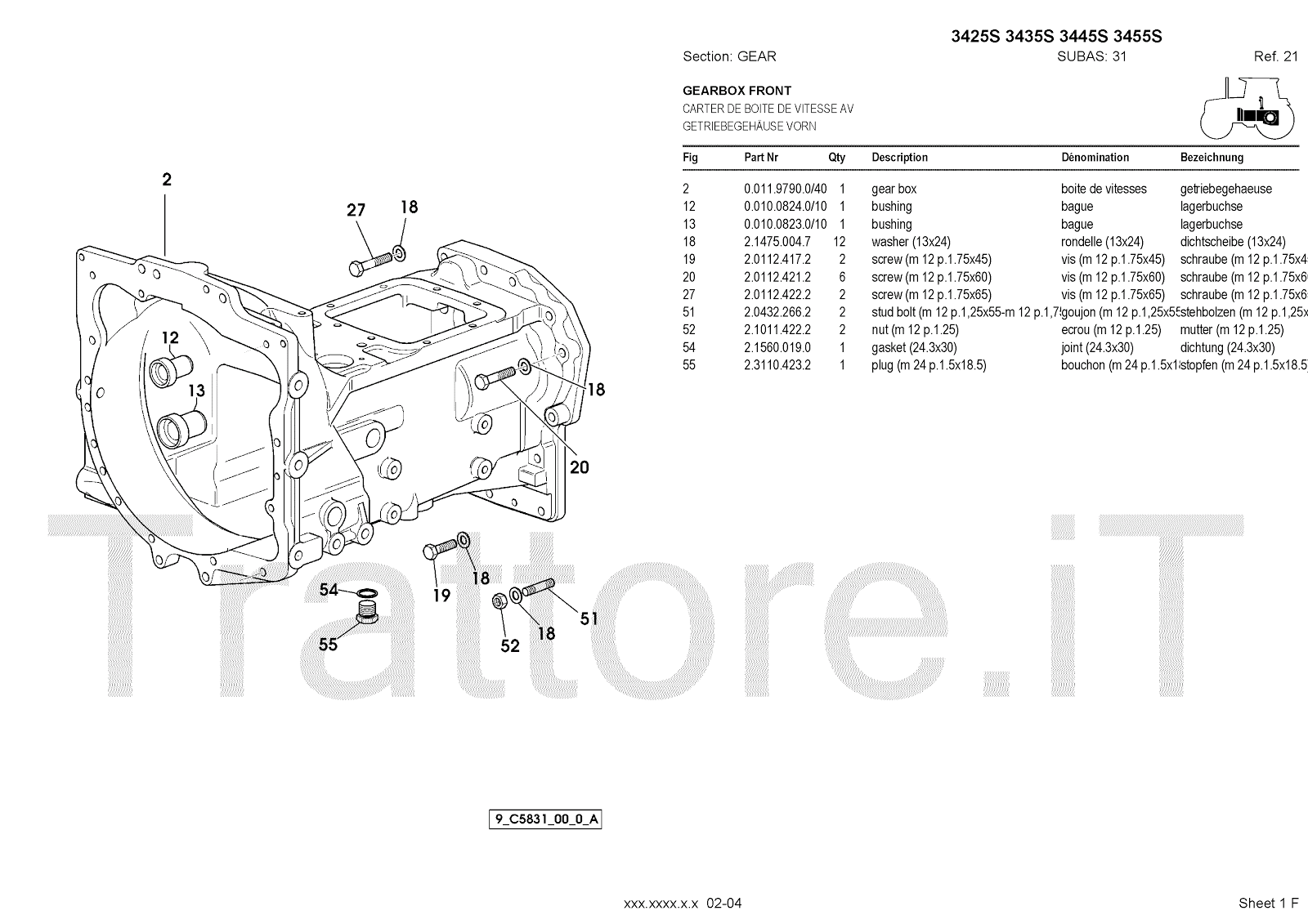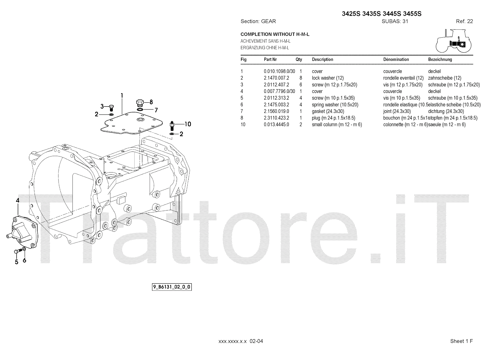 Manuale (esploso meccanico) per trattore / trattrice Massey Ferguson 3445S