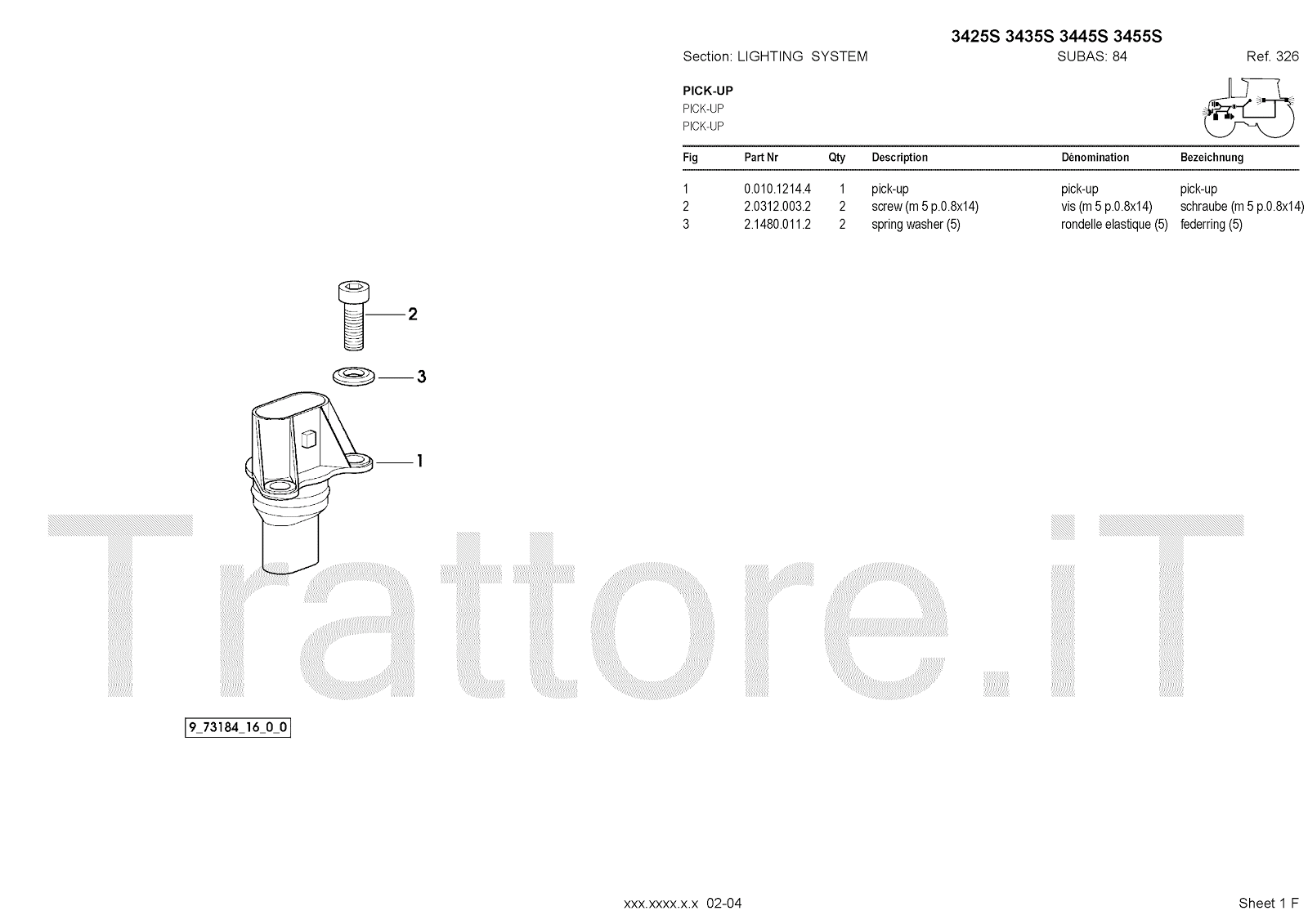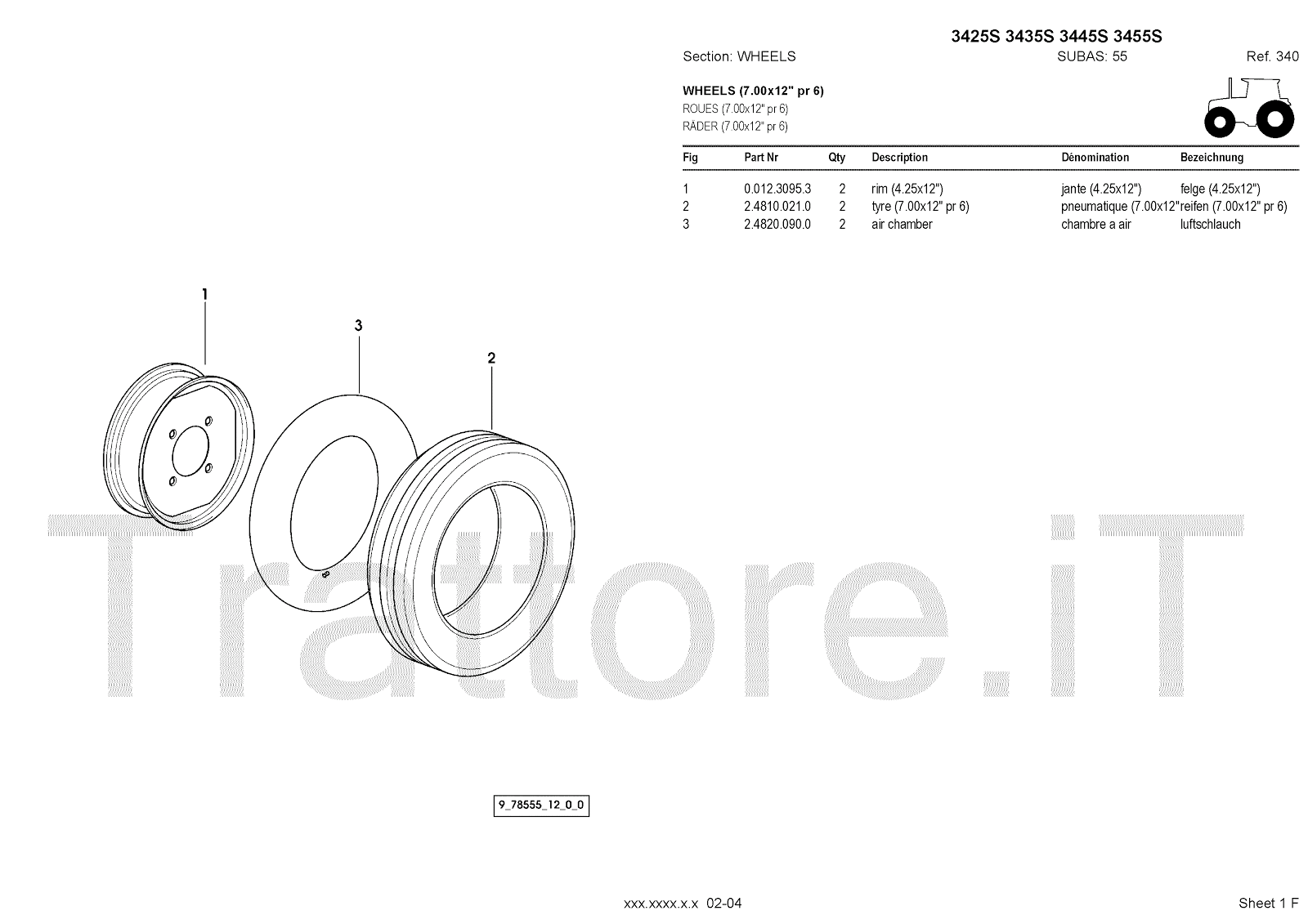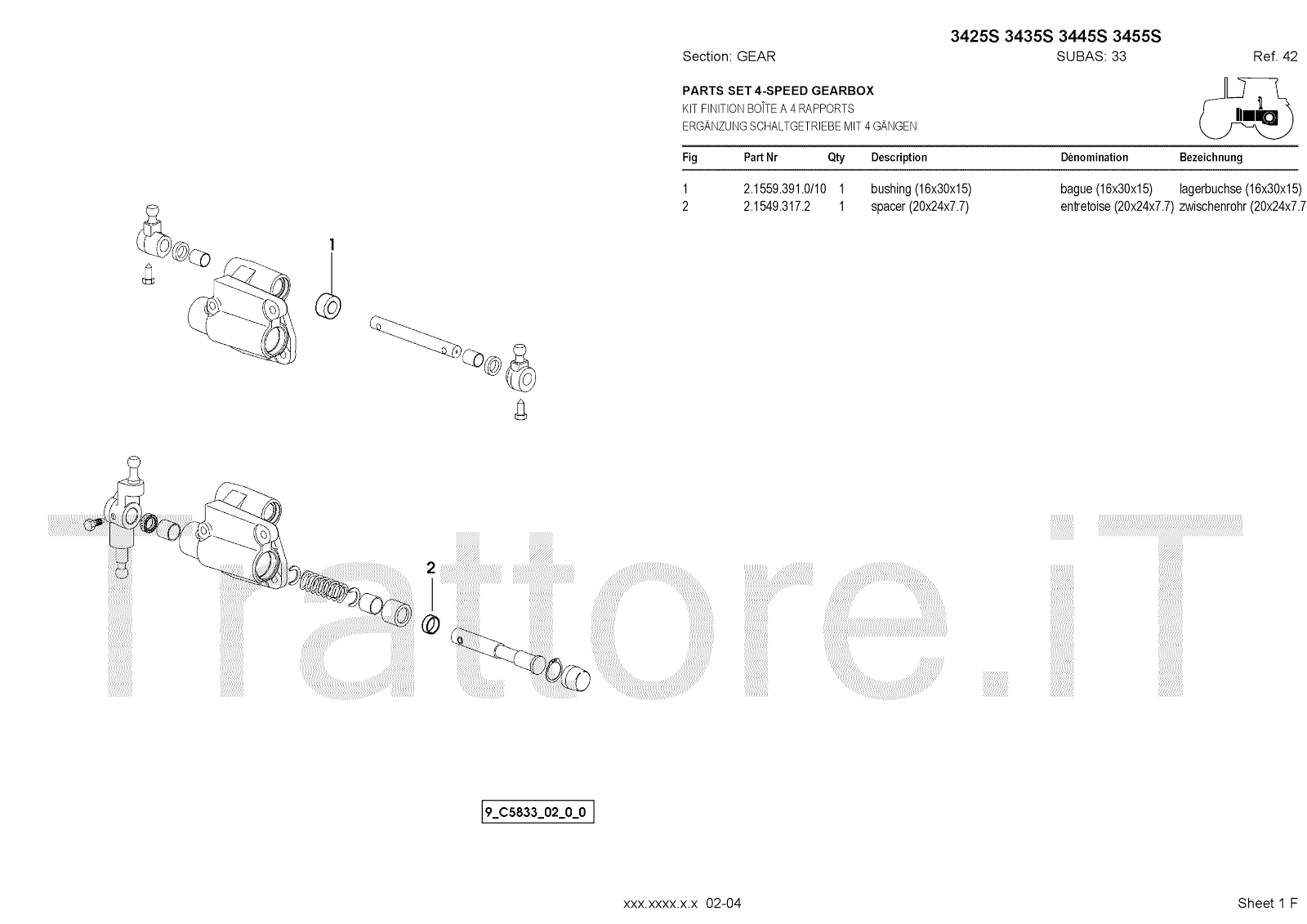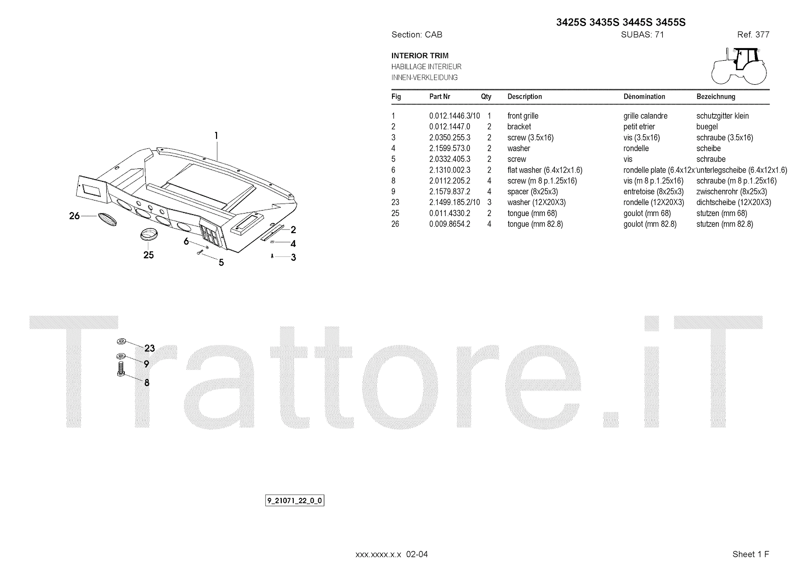 Manuale (esploso meccanico) per trattore / trattrice Massey Ferguson 3445S