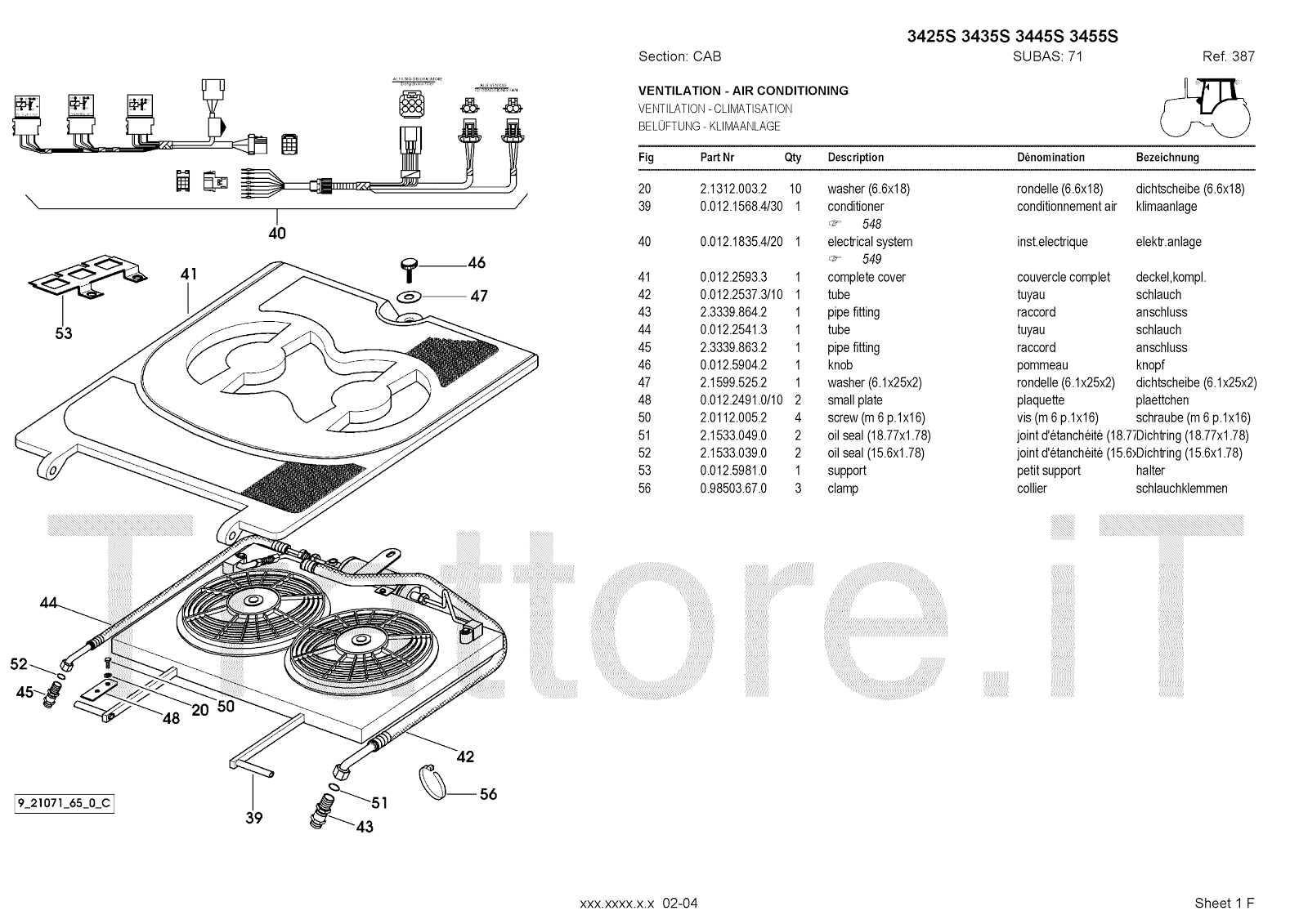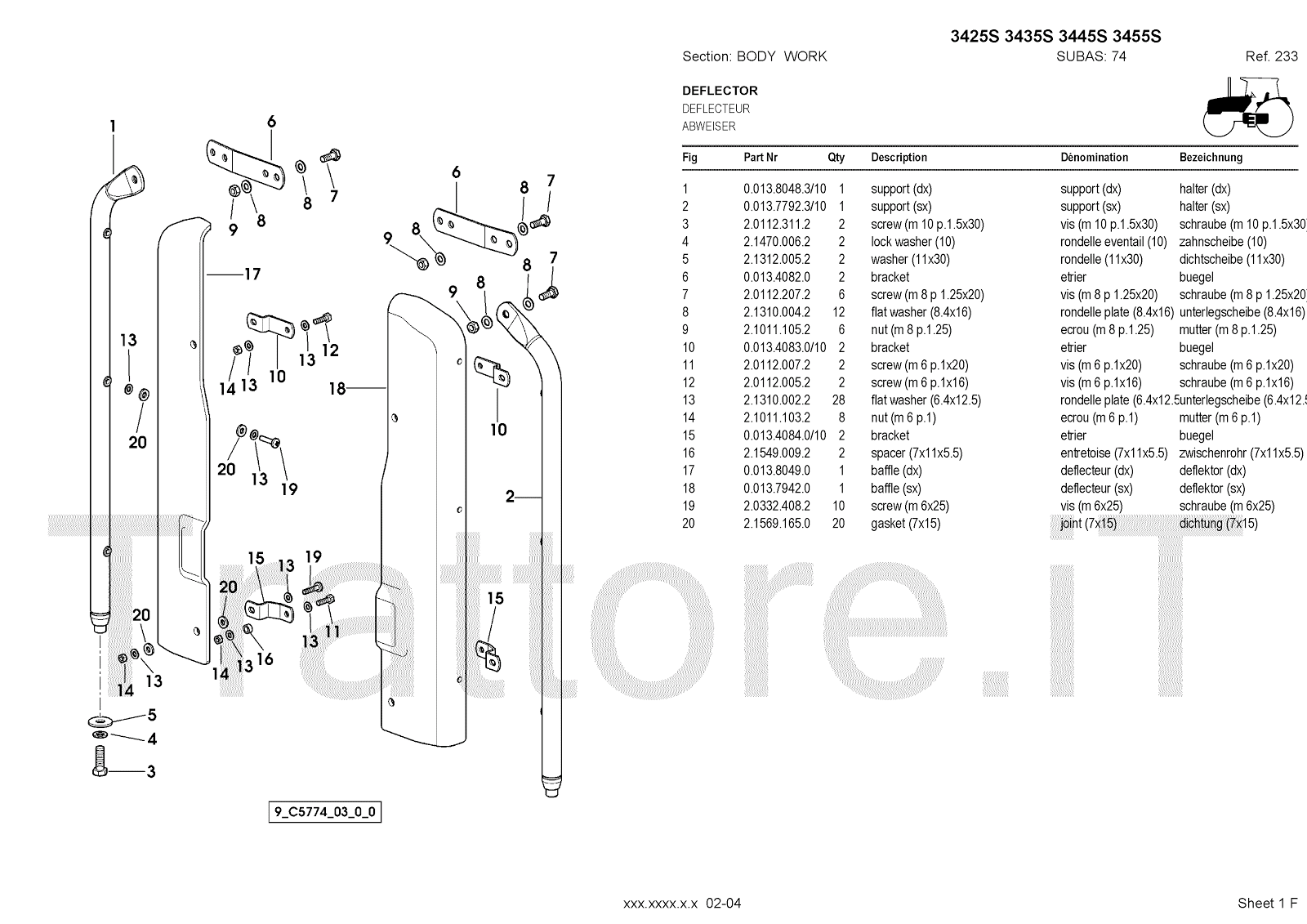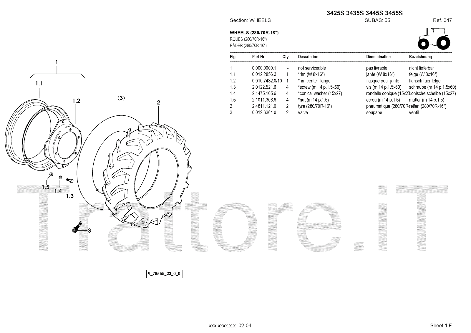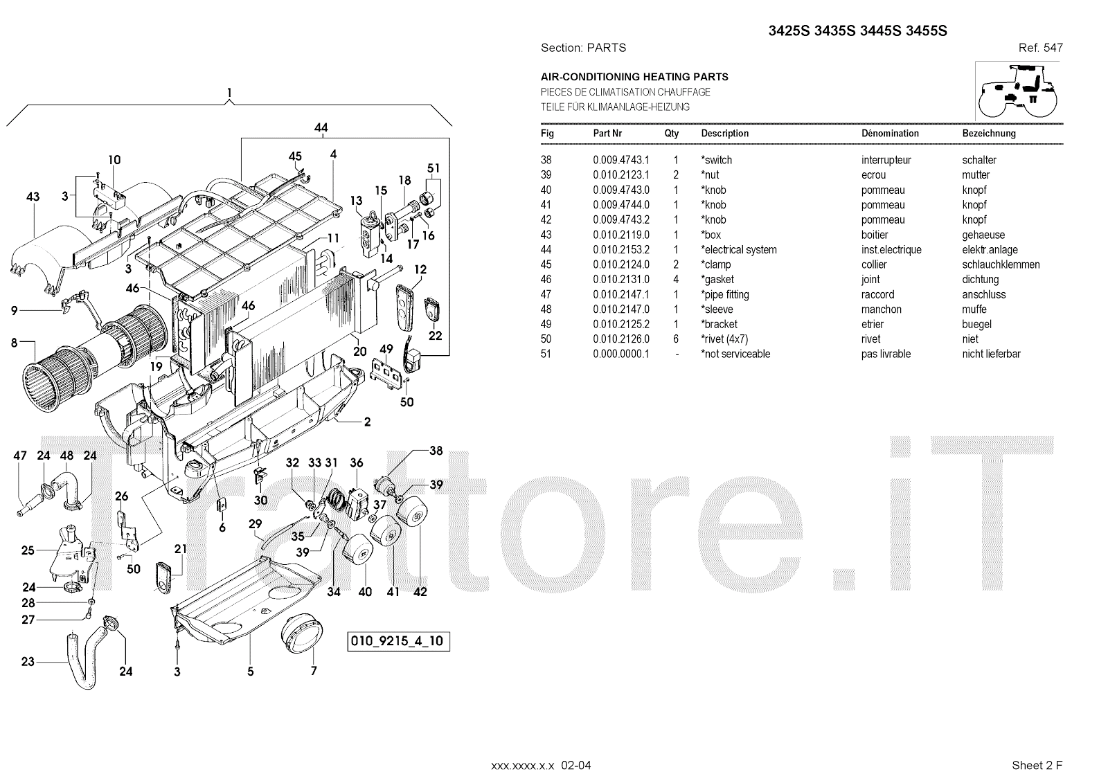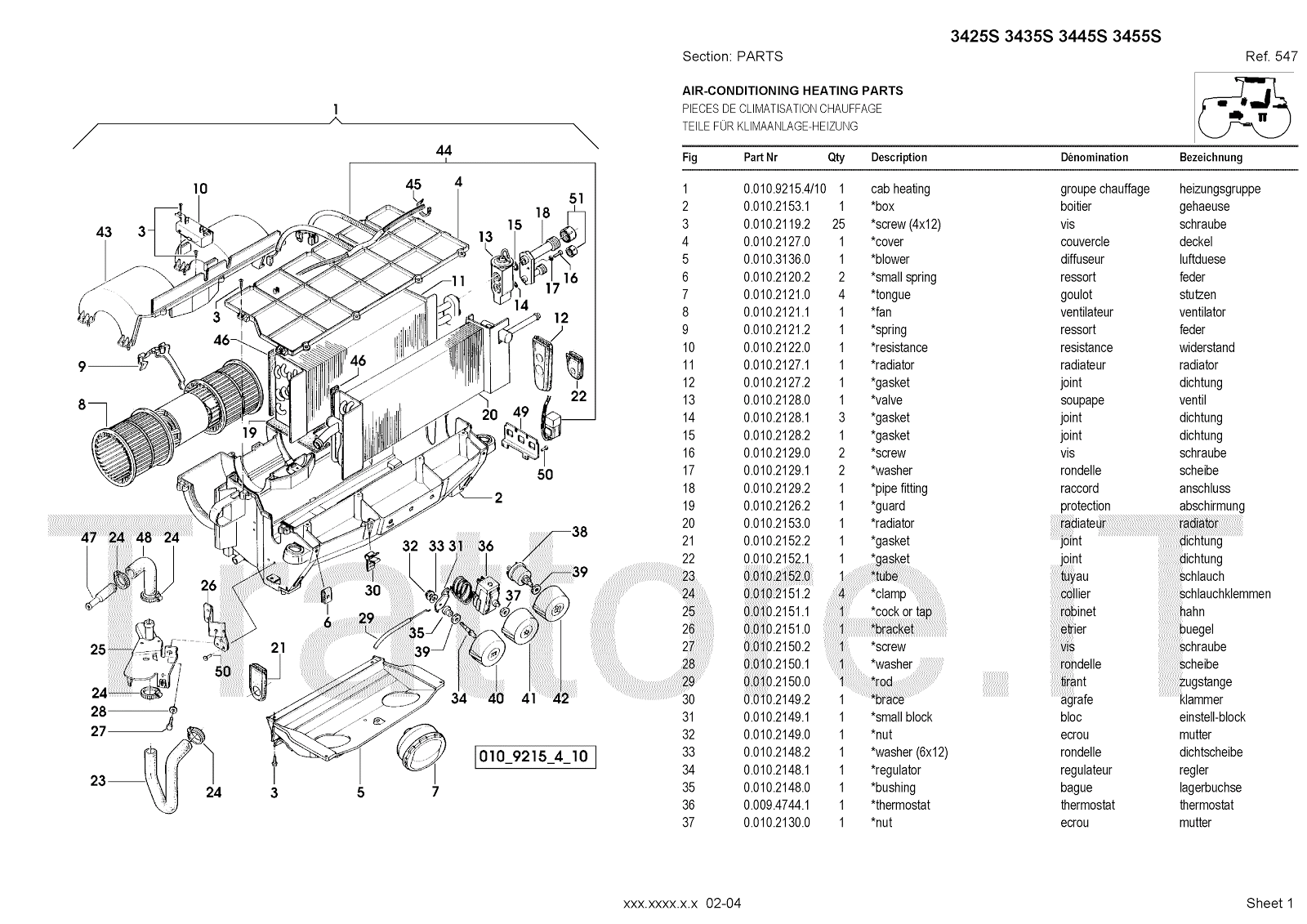 Manuale (esploso meccanico) per trattore / trattrice Massey Ferguson 3445S