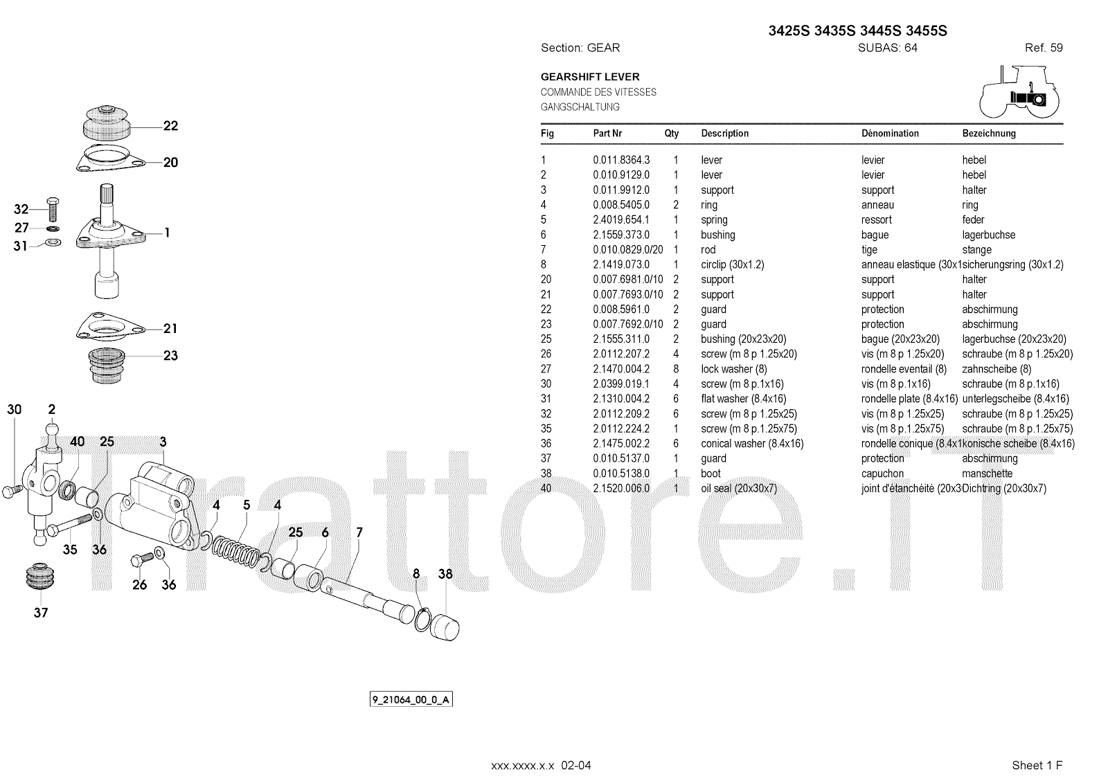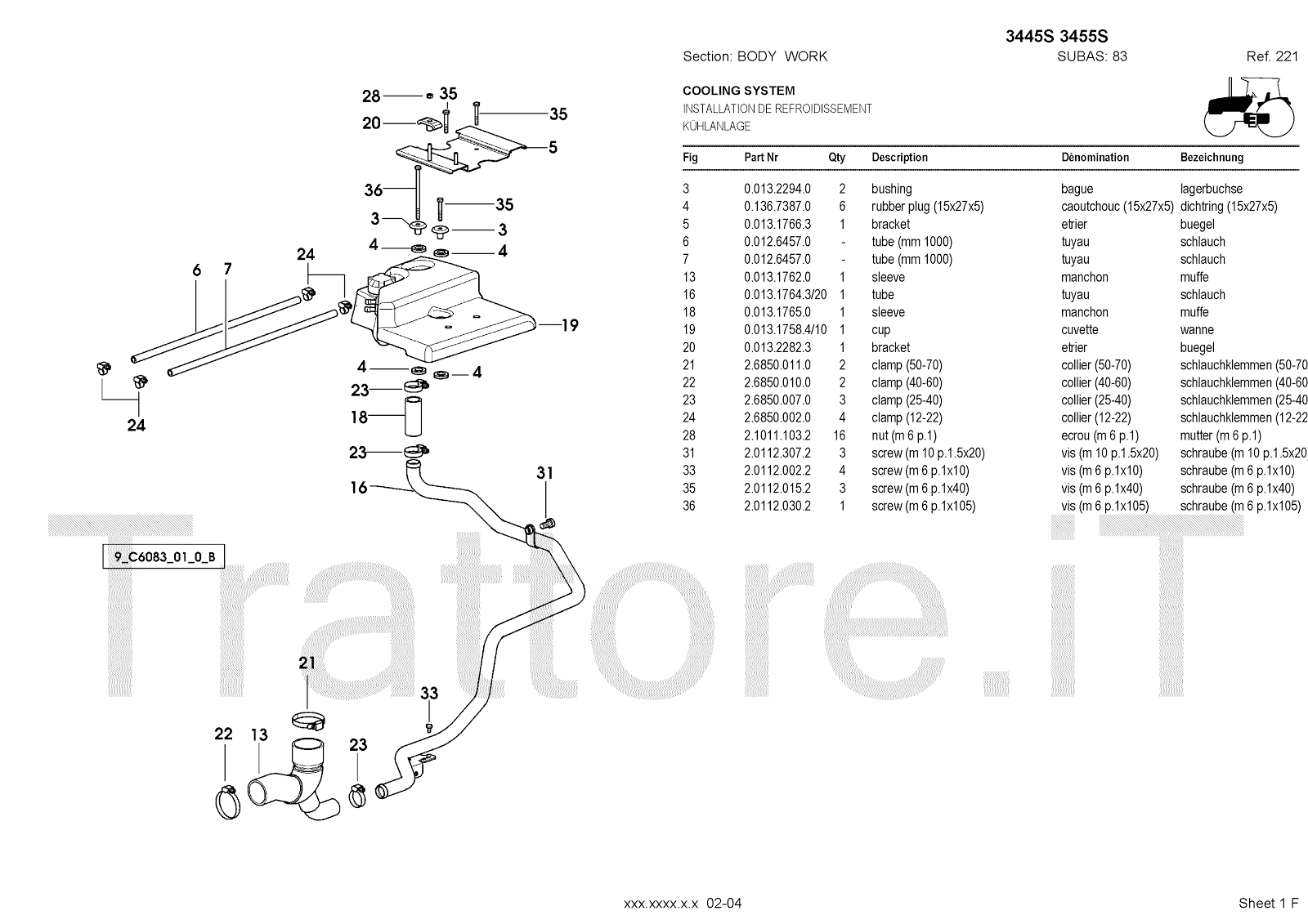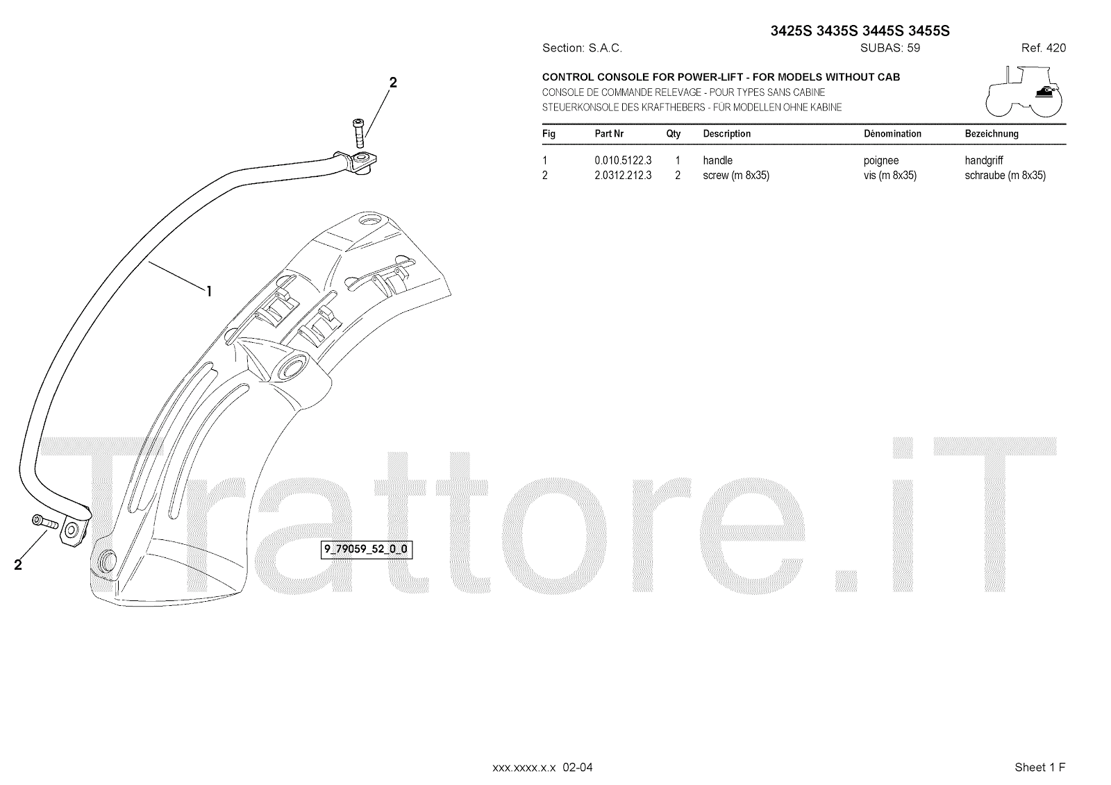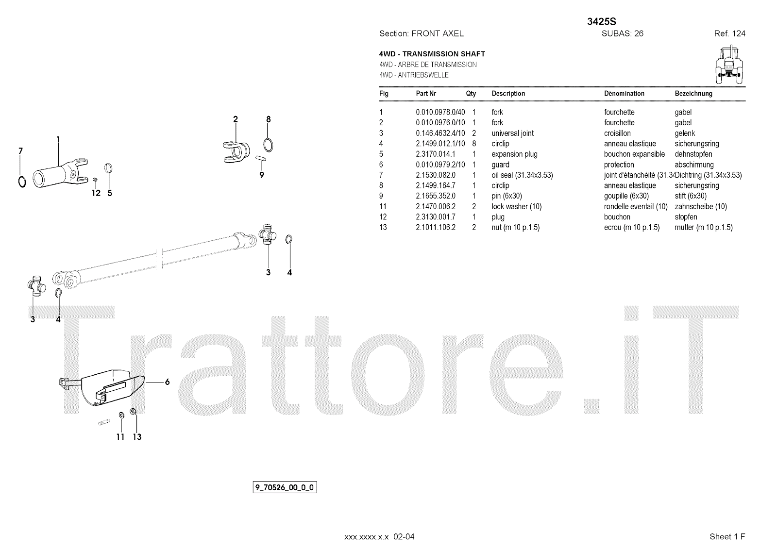Manuale (esploso meccanico) per trattore / trattrice Massey Ferguson 3445S