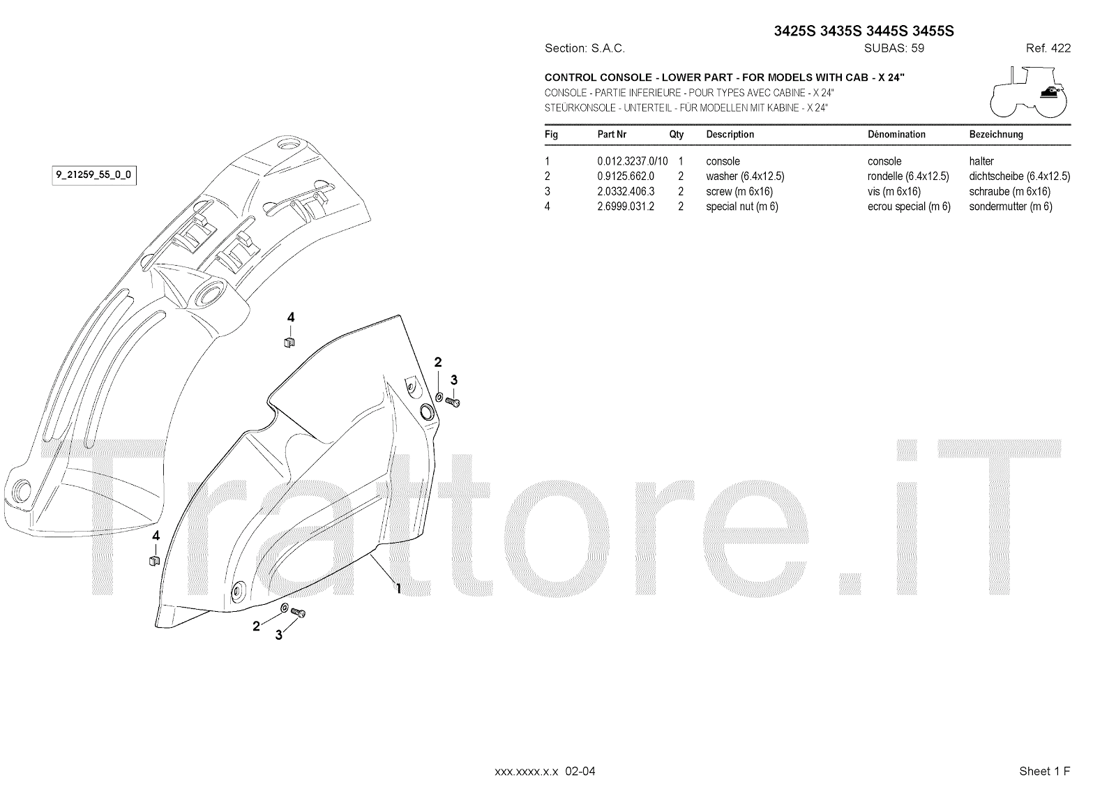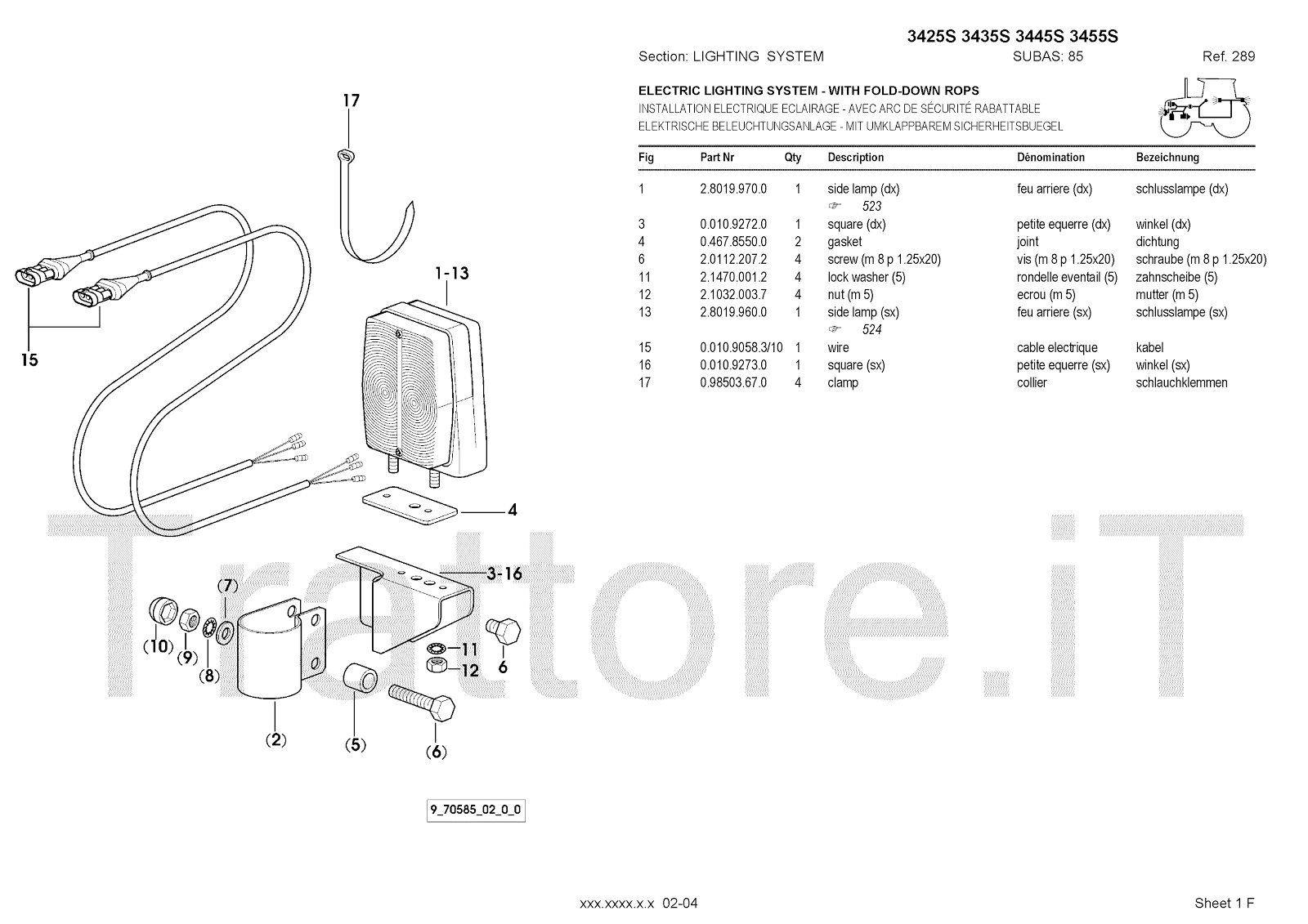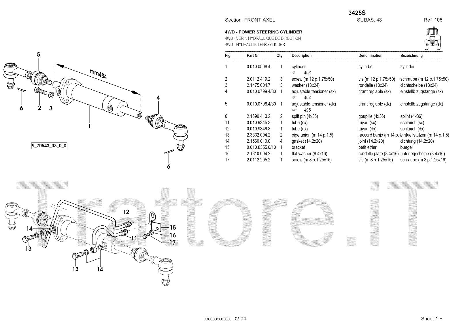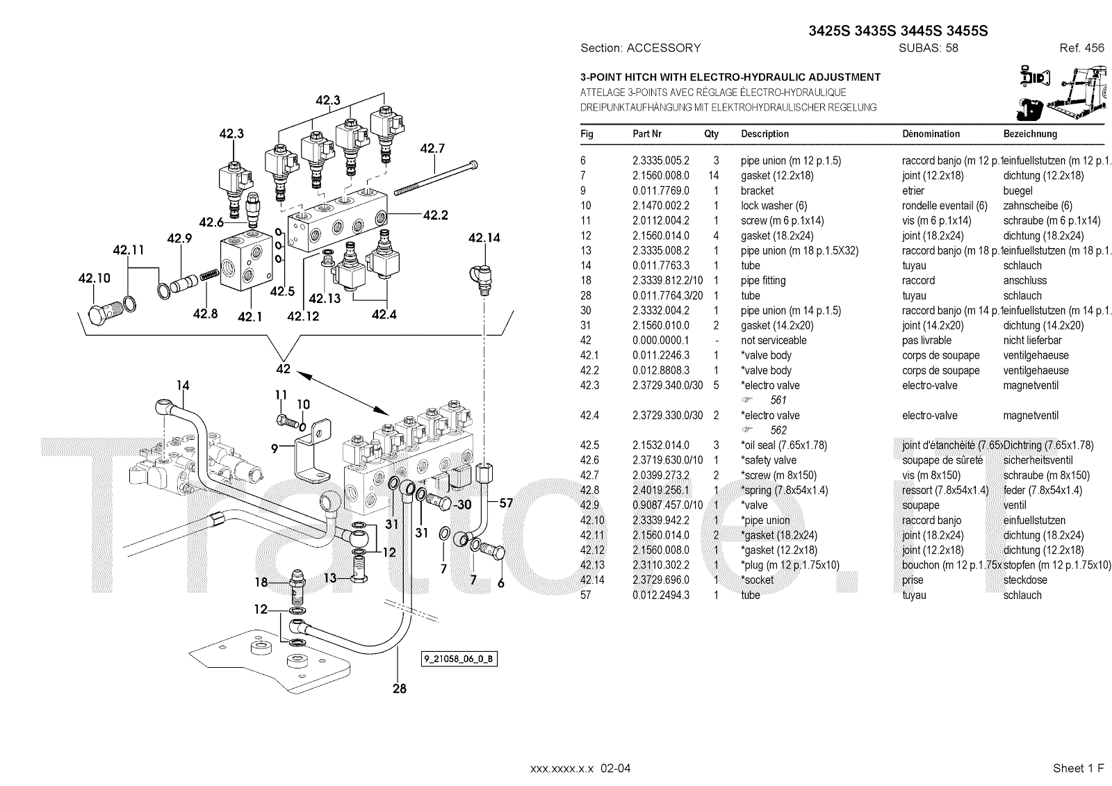 Manuale (esploso meccanico) per trattore / trattrice Massey Ferguson 3445S