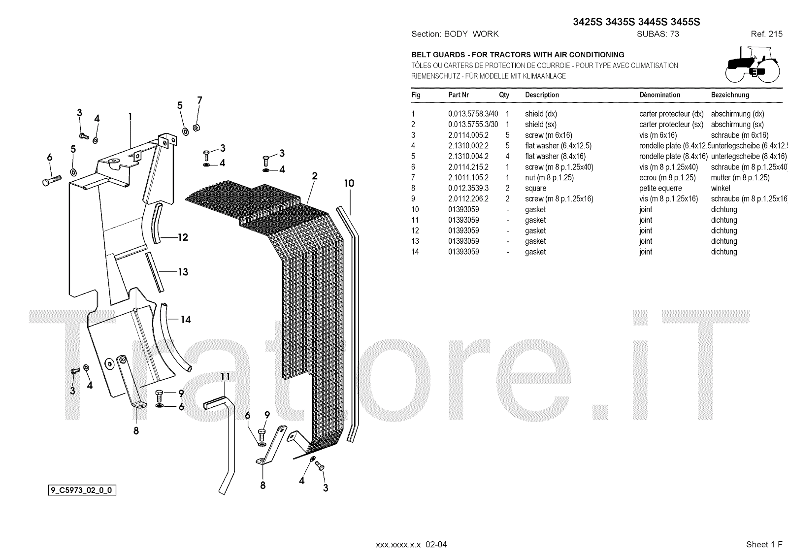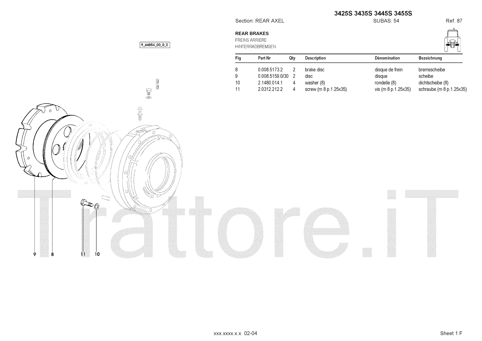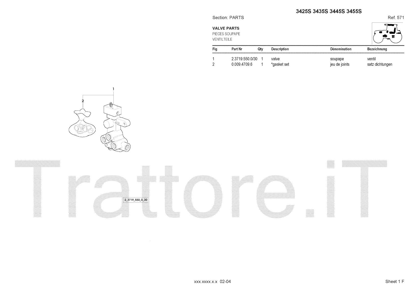 Manuale (esploso meccanico) per trattore / trattrice Massey Ferguson 3435S