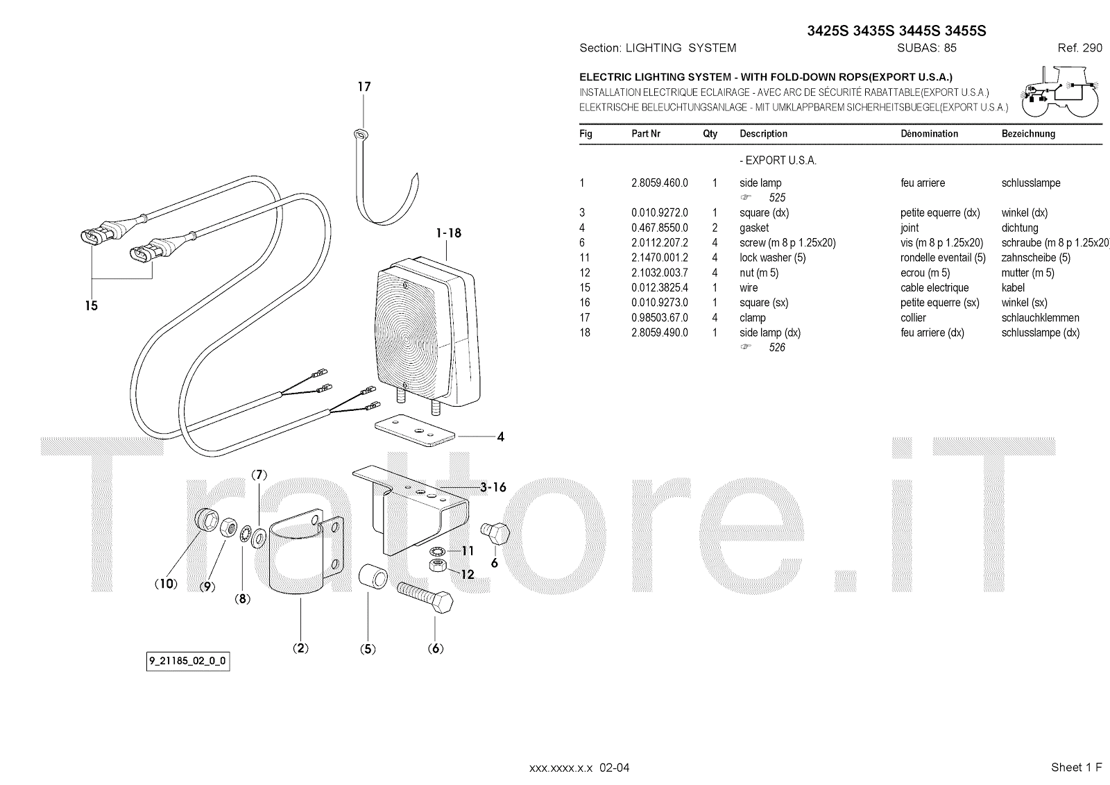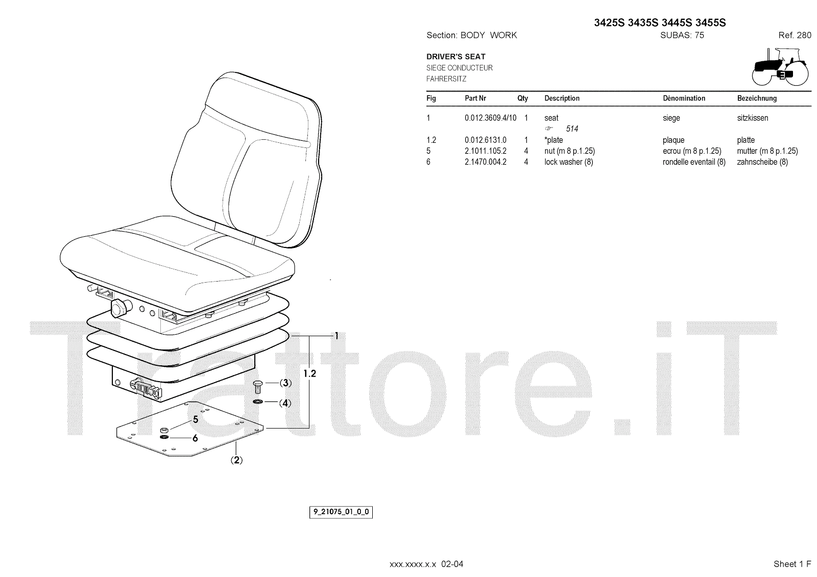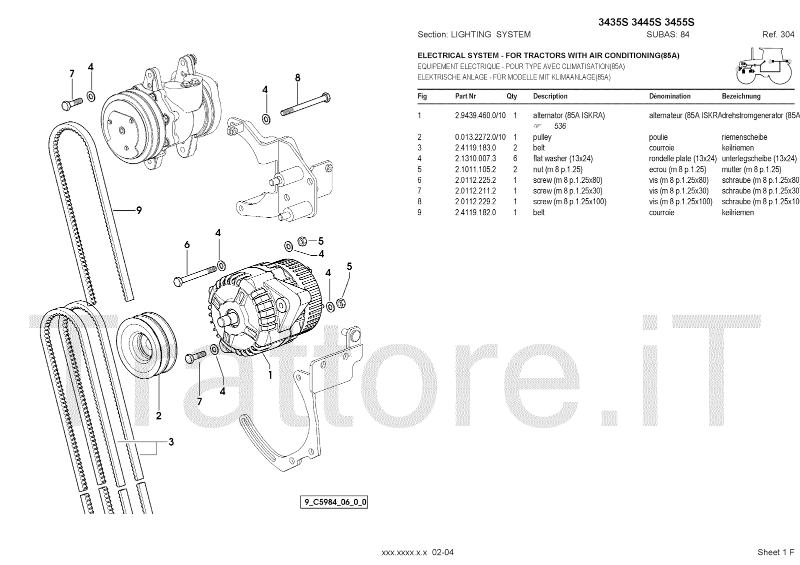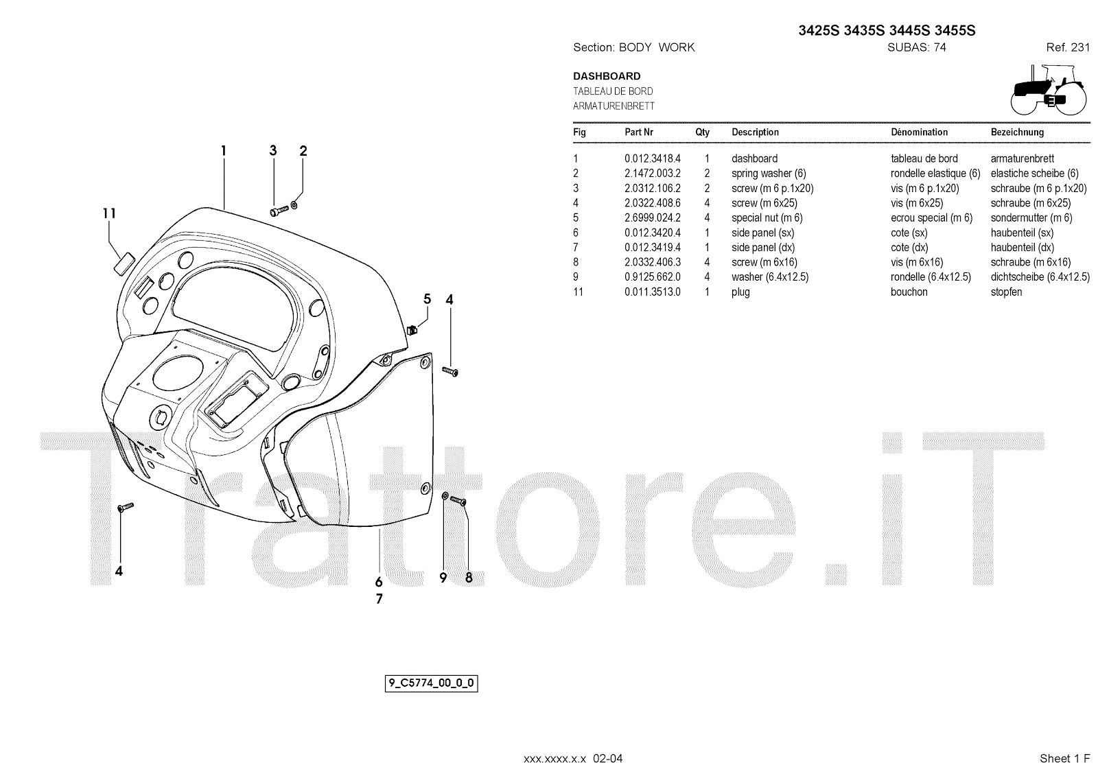 Manuale (esploso meccanico) per trattore / trattrice Massey Ferguson 3435S