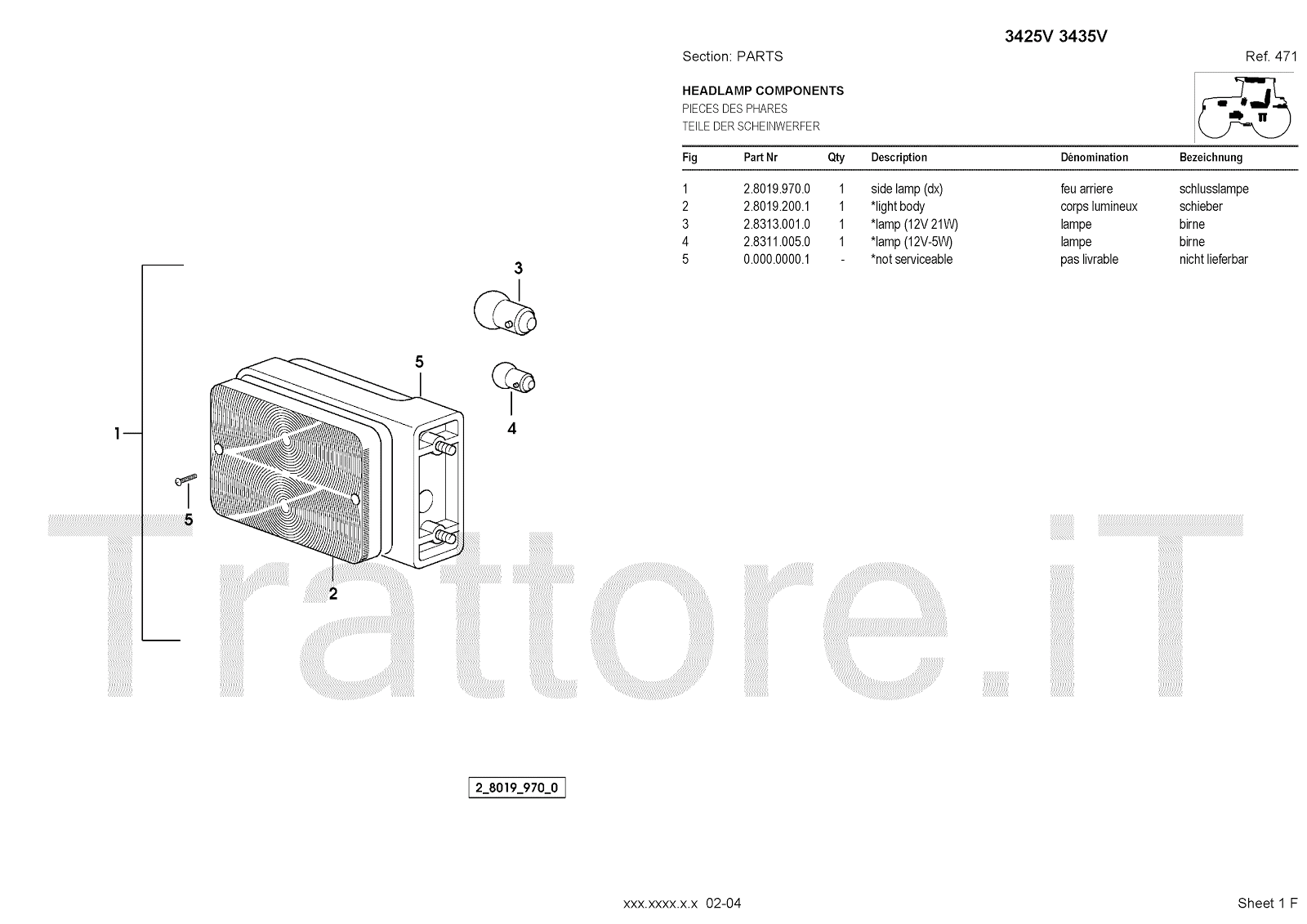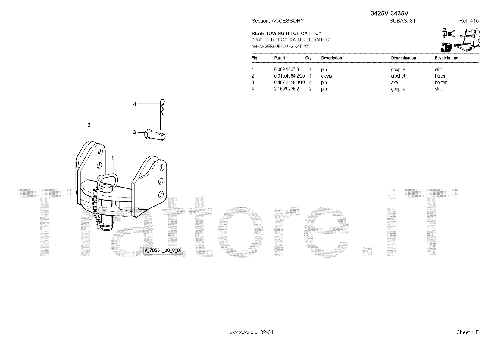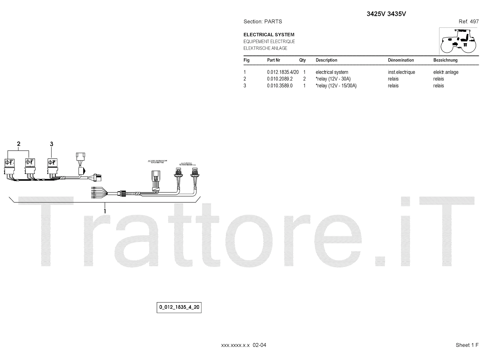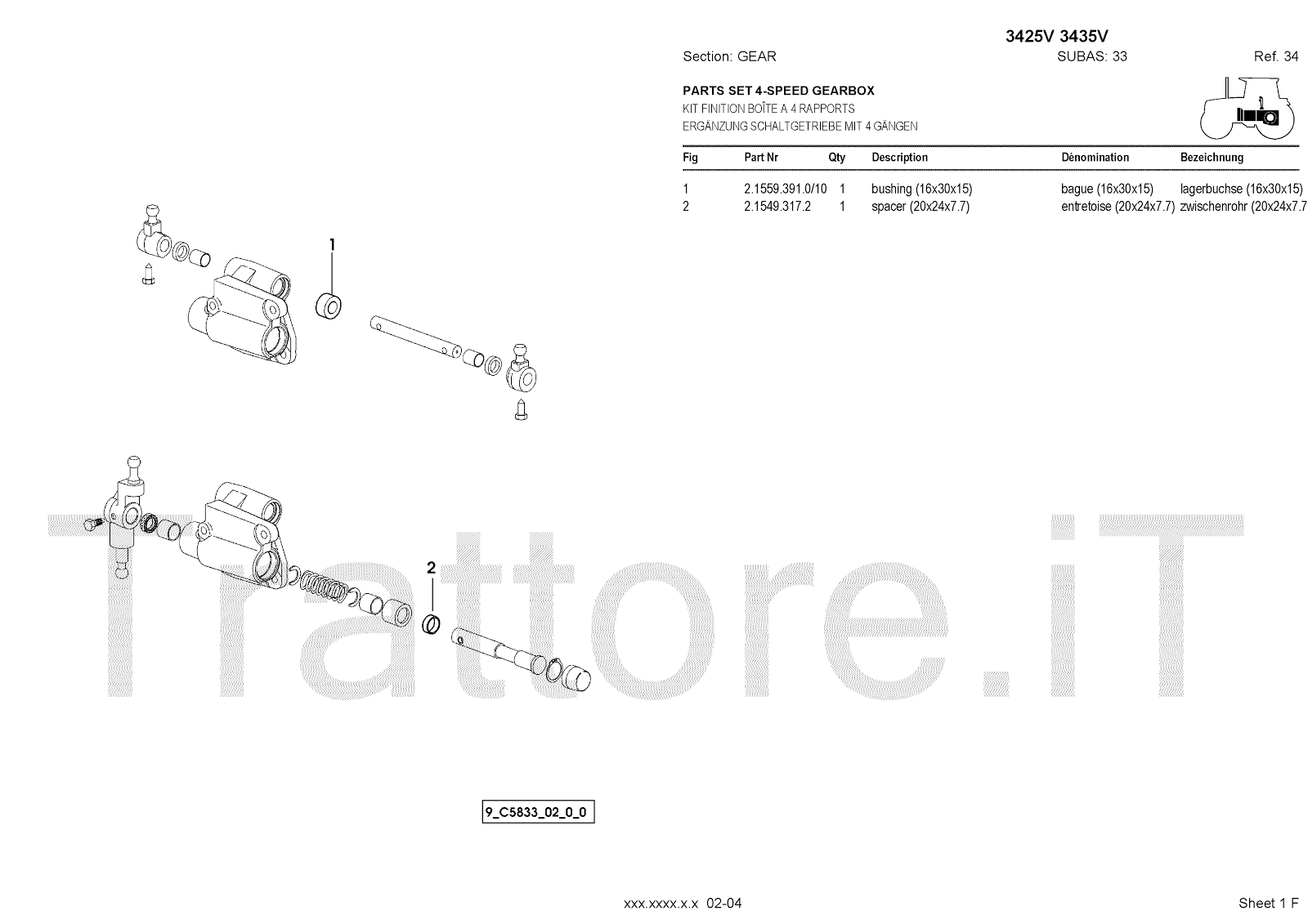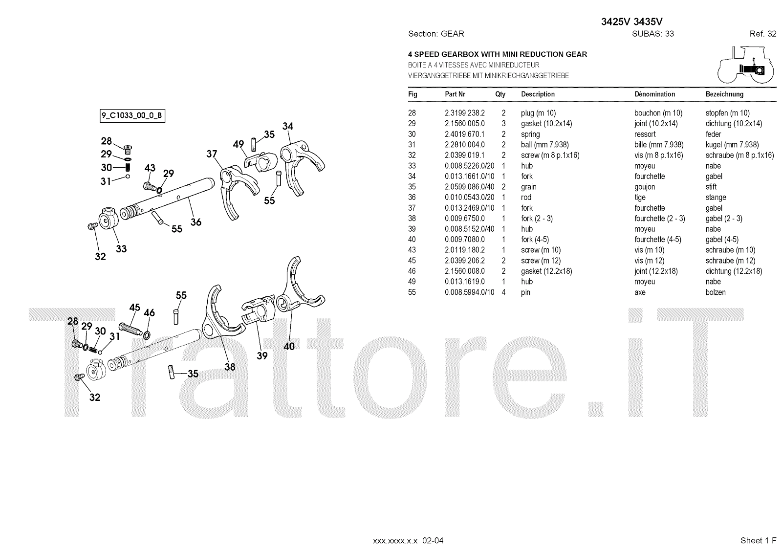 Manuale (esploso meccanico) per trattore / trattrice Massey Ferguson 3435V