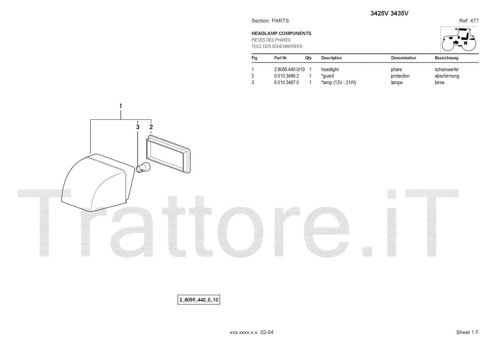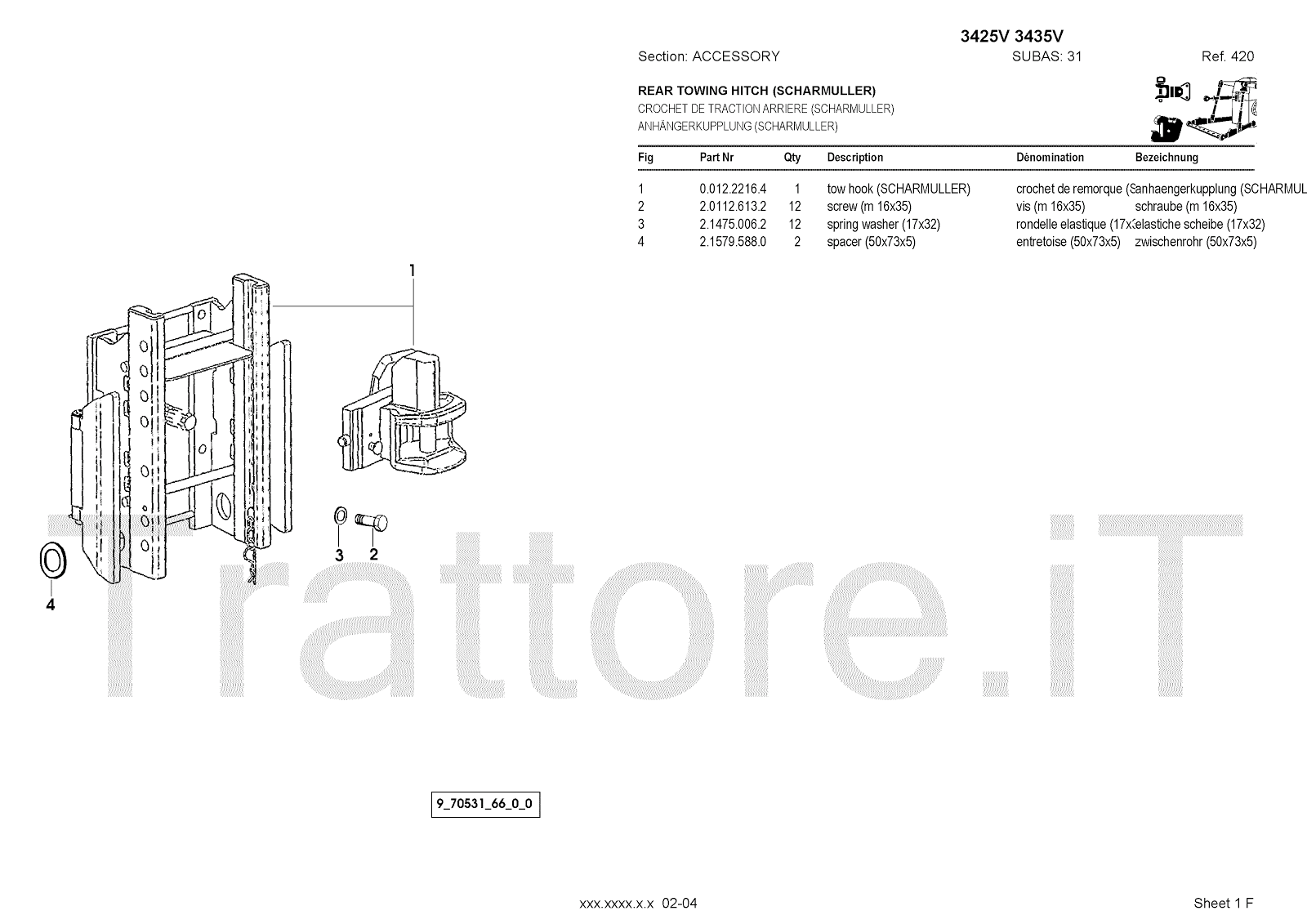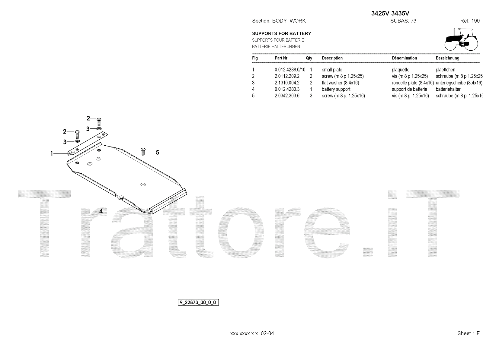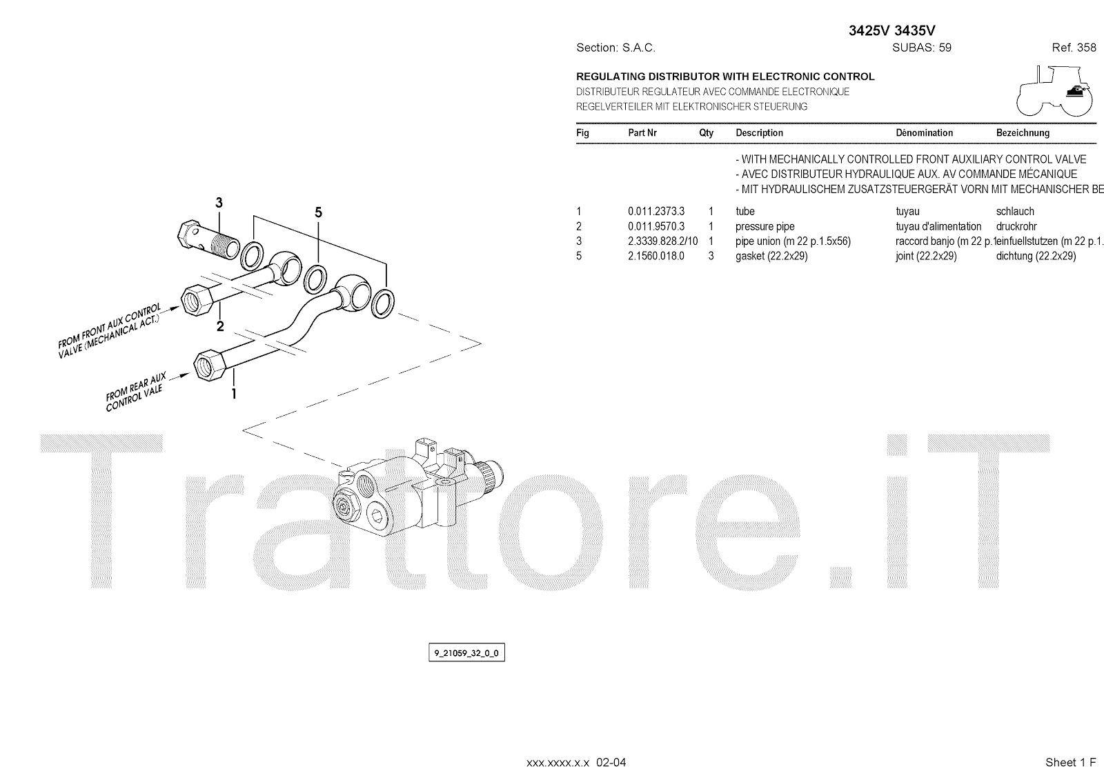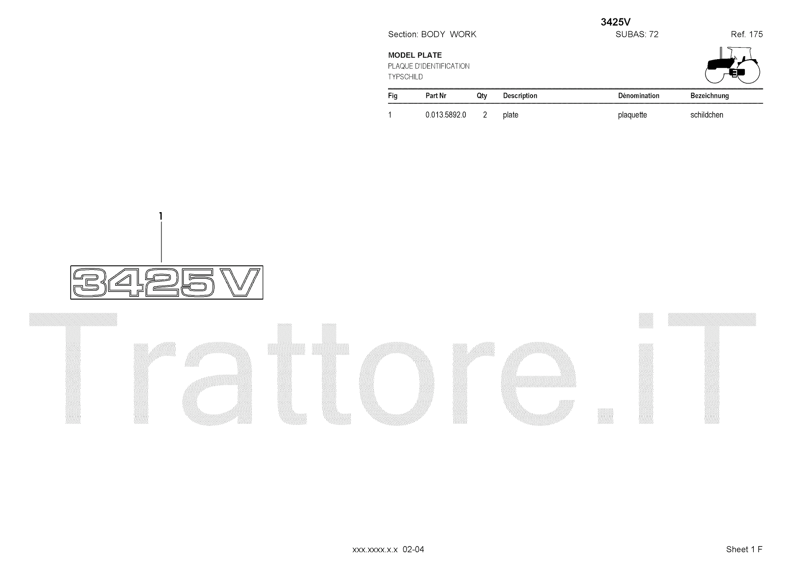 Manuale (esploso meccanico) per trattore / trattrice Massey Ferguson 3435V