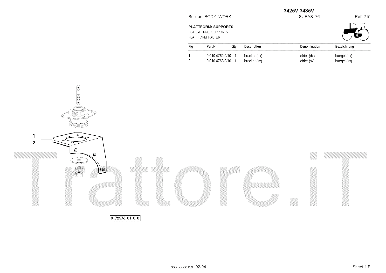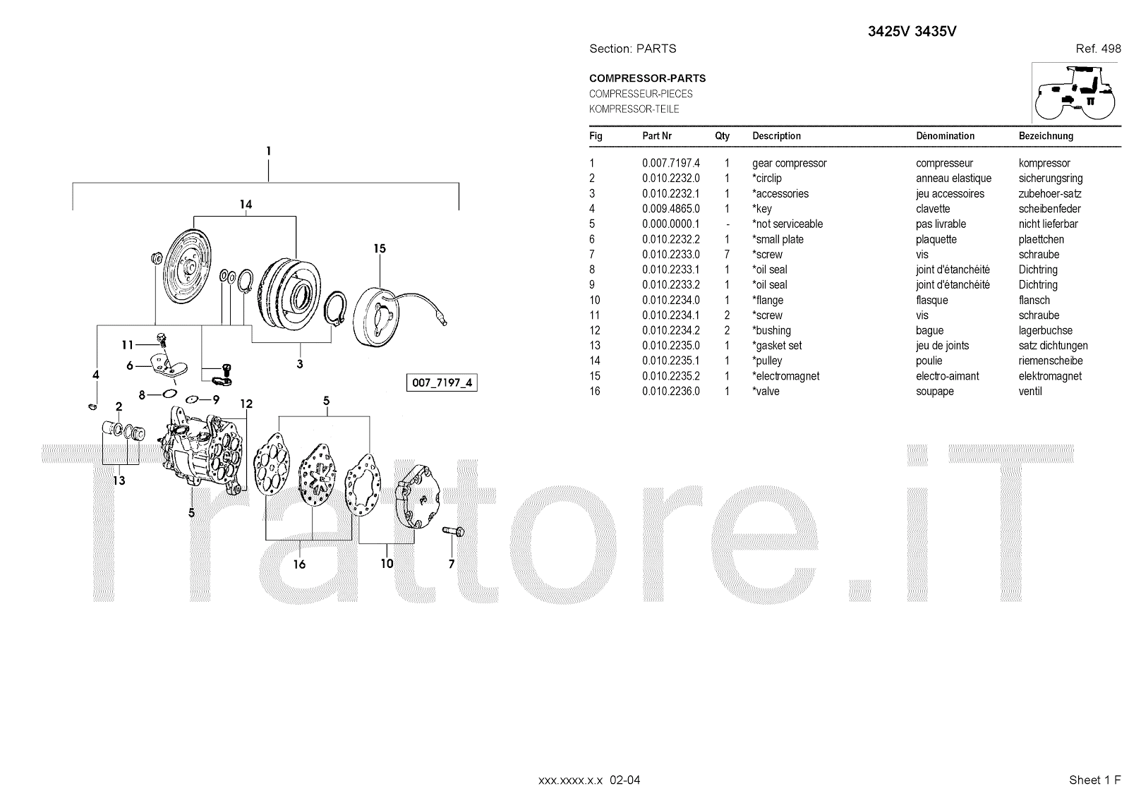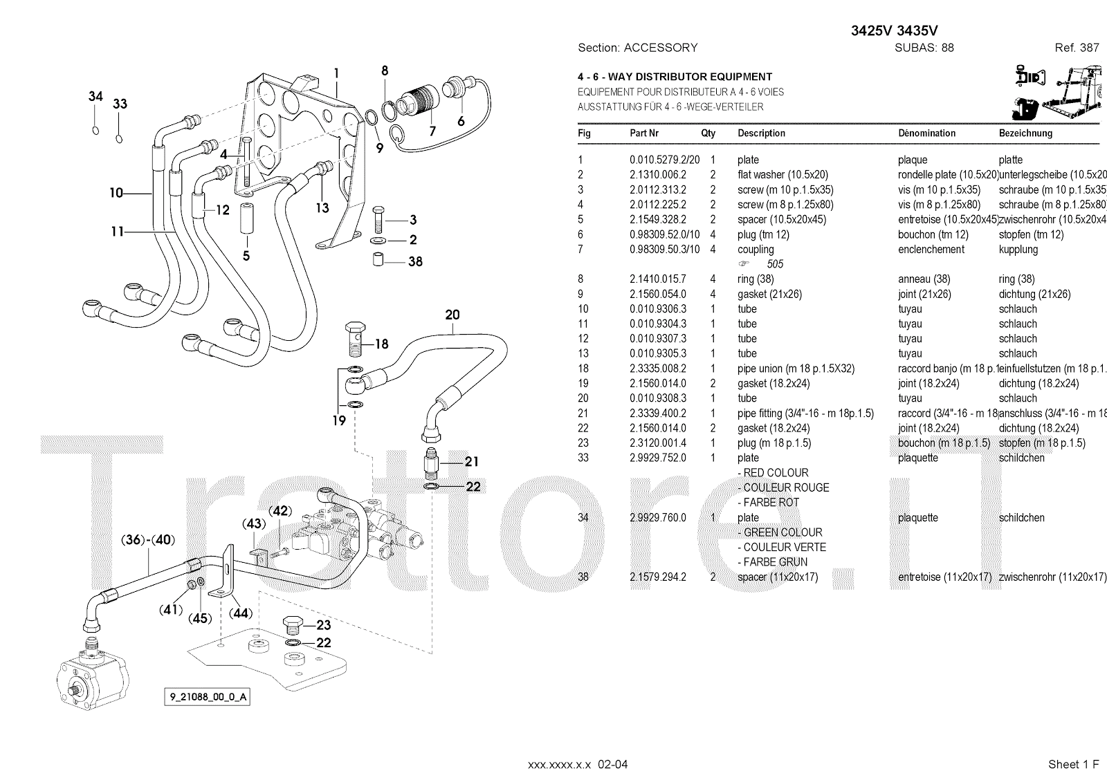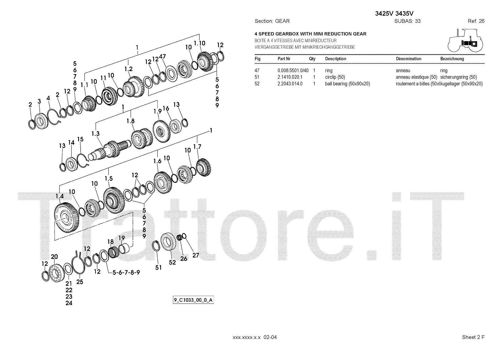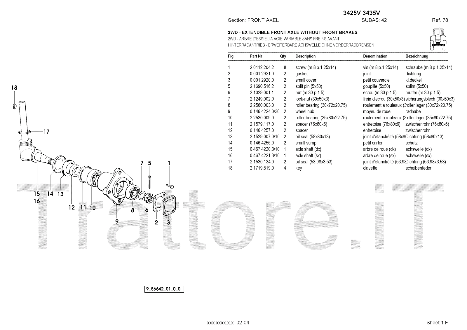 Manuale (esploso meccanico) per trattore / trattrice Massey Ferguson 3435V