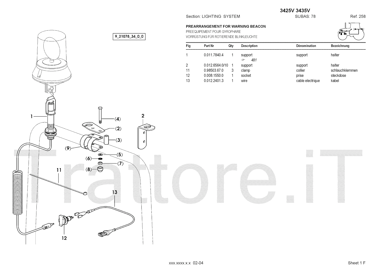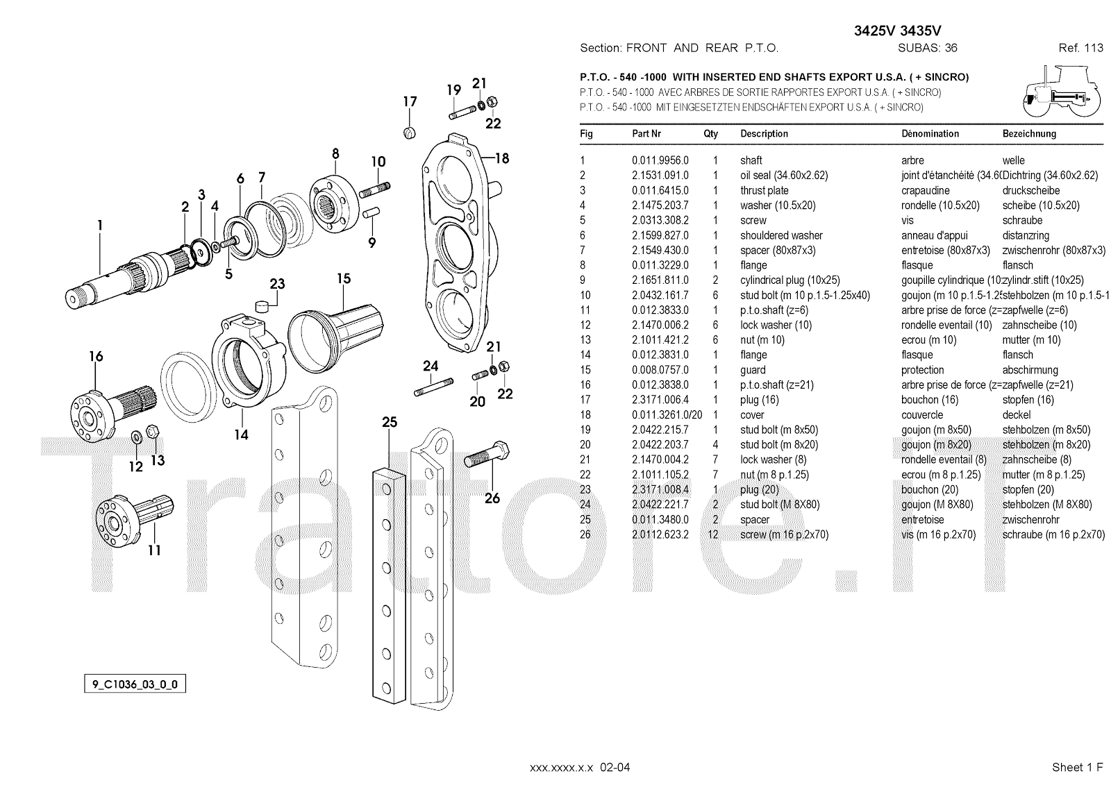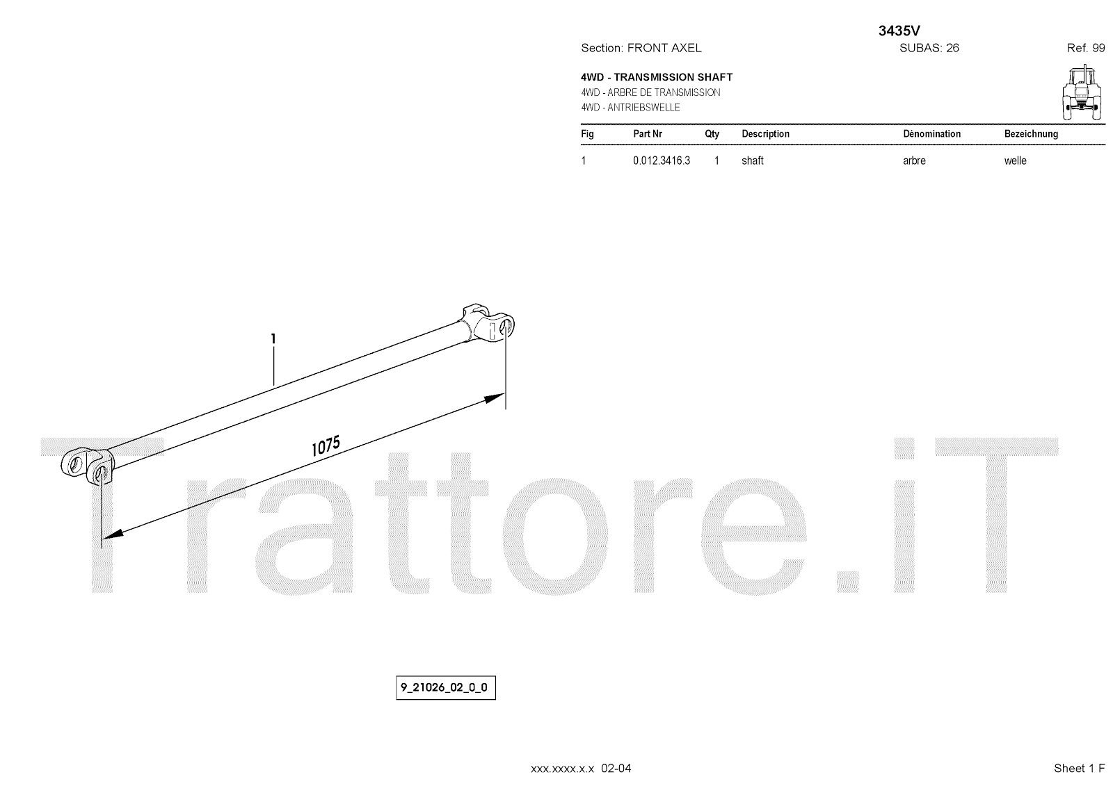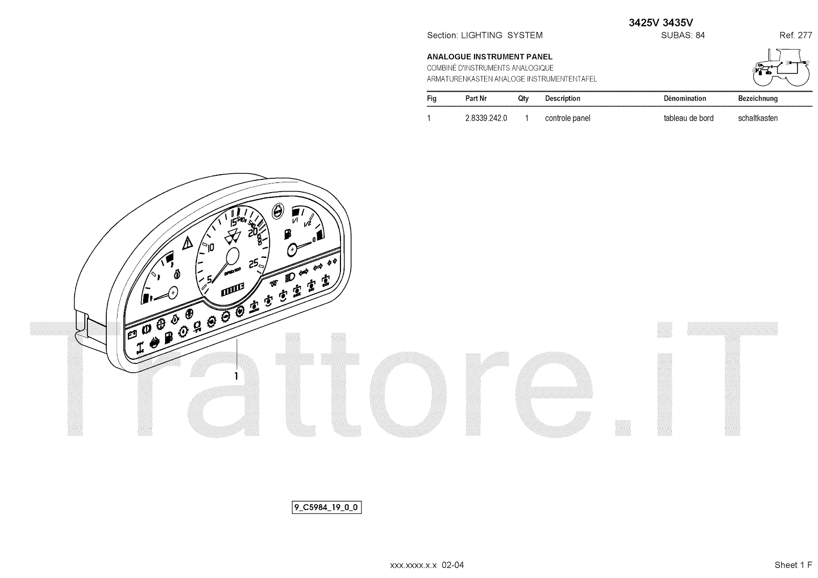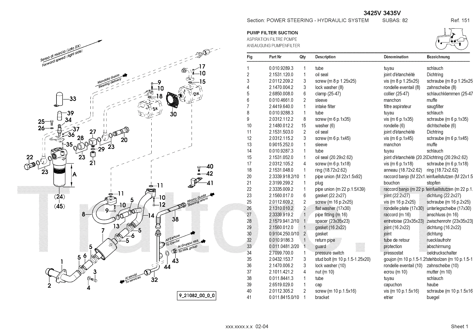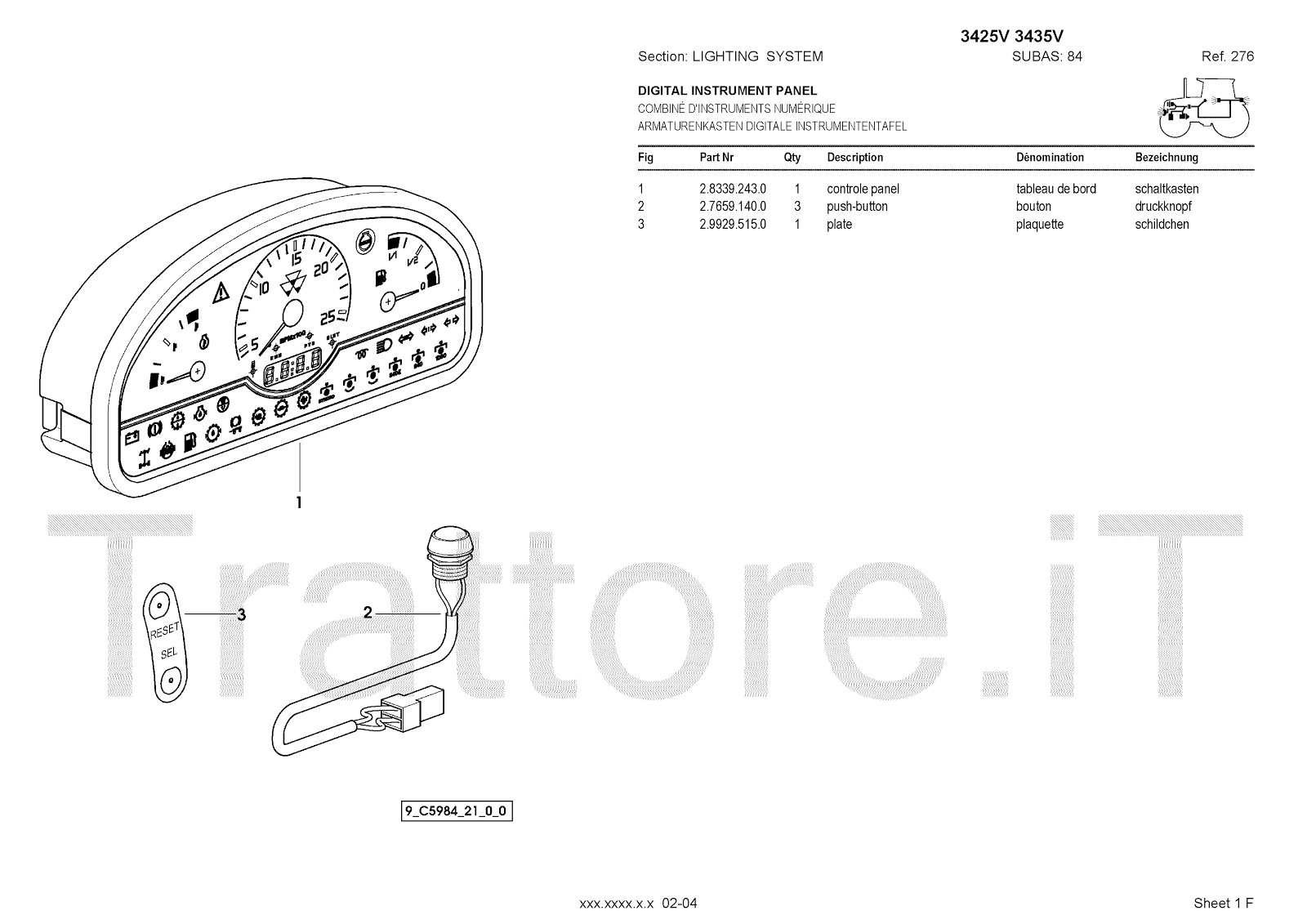 Manuale (esploso meccanico) per trattore / trattrice Massey Ferguson 3435V