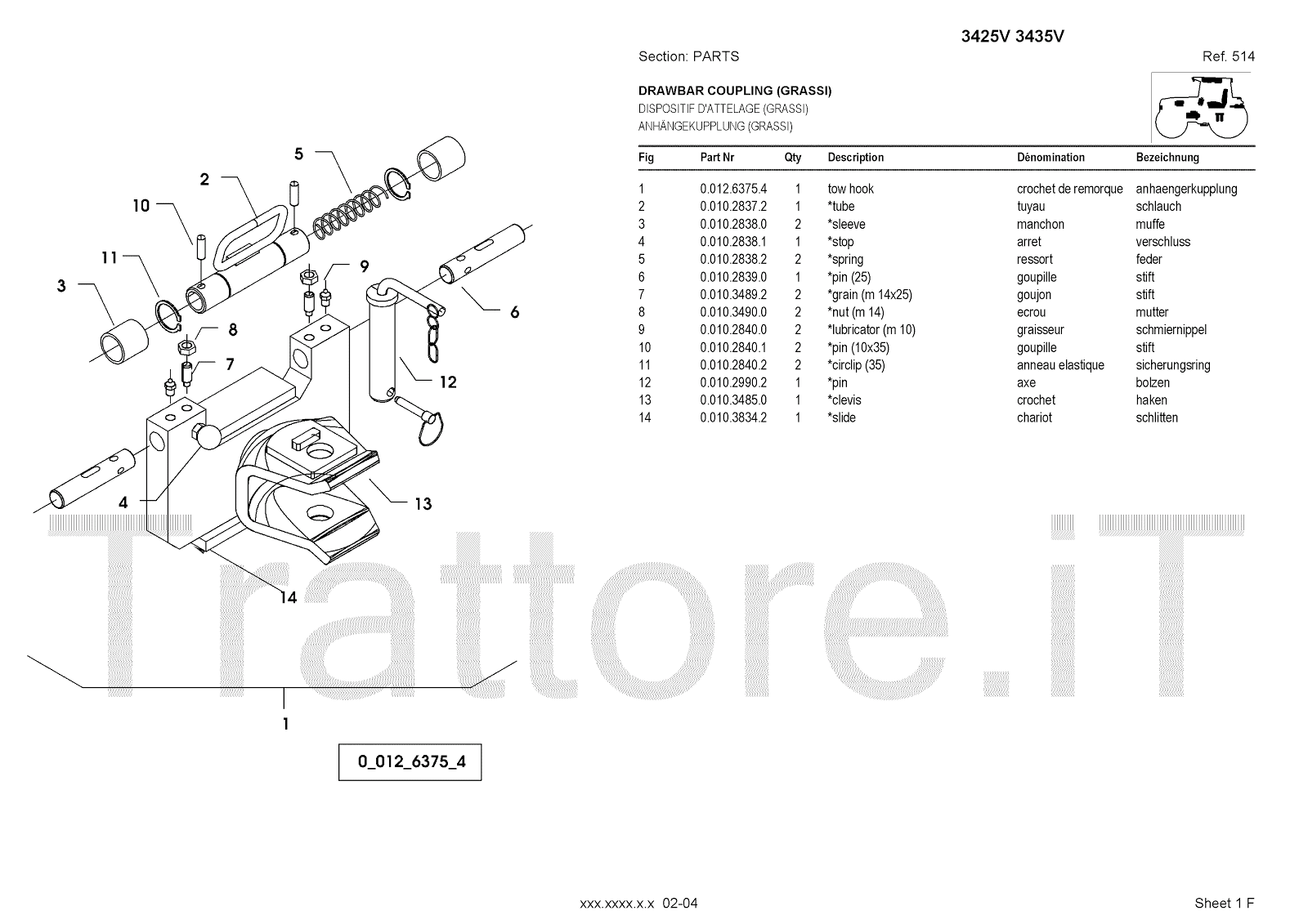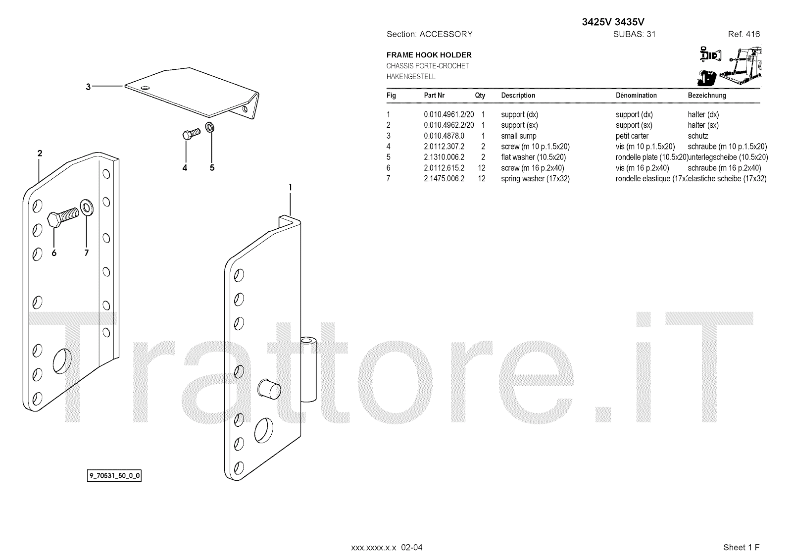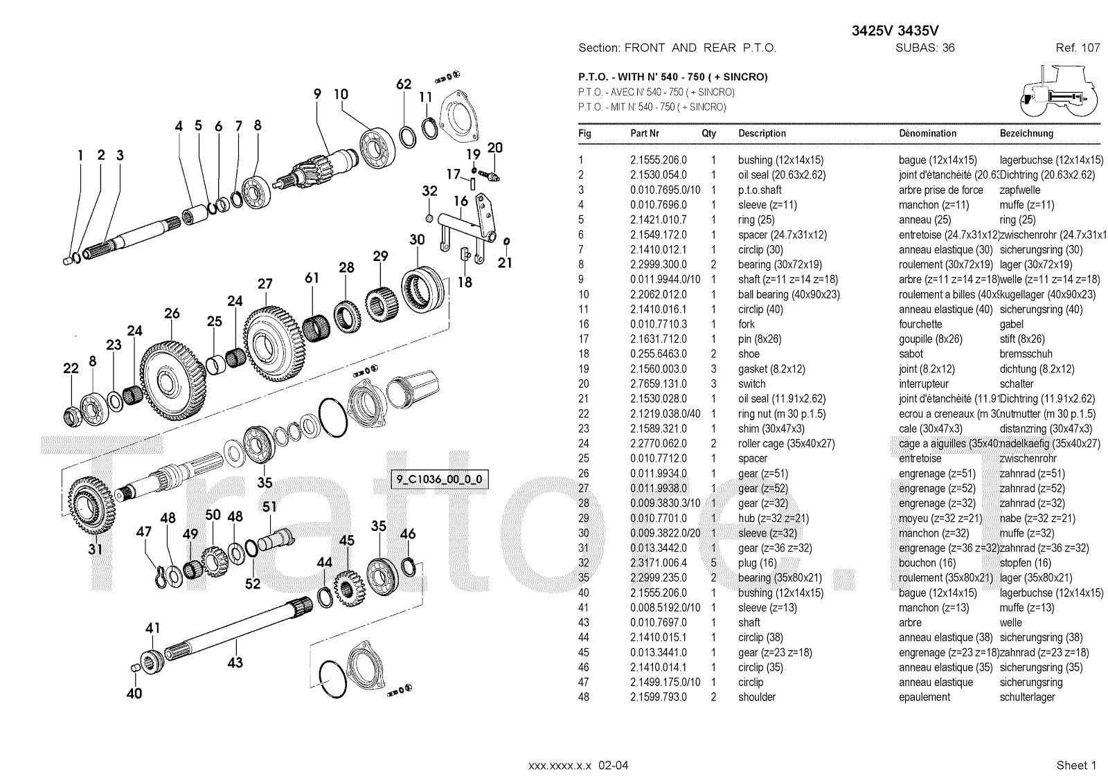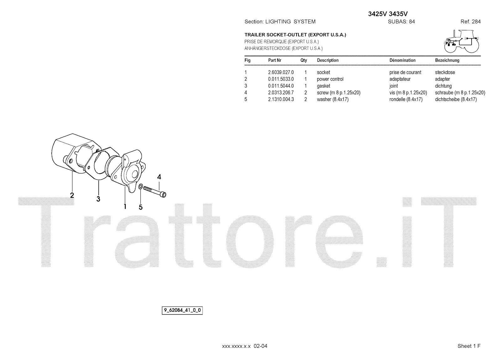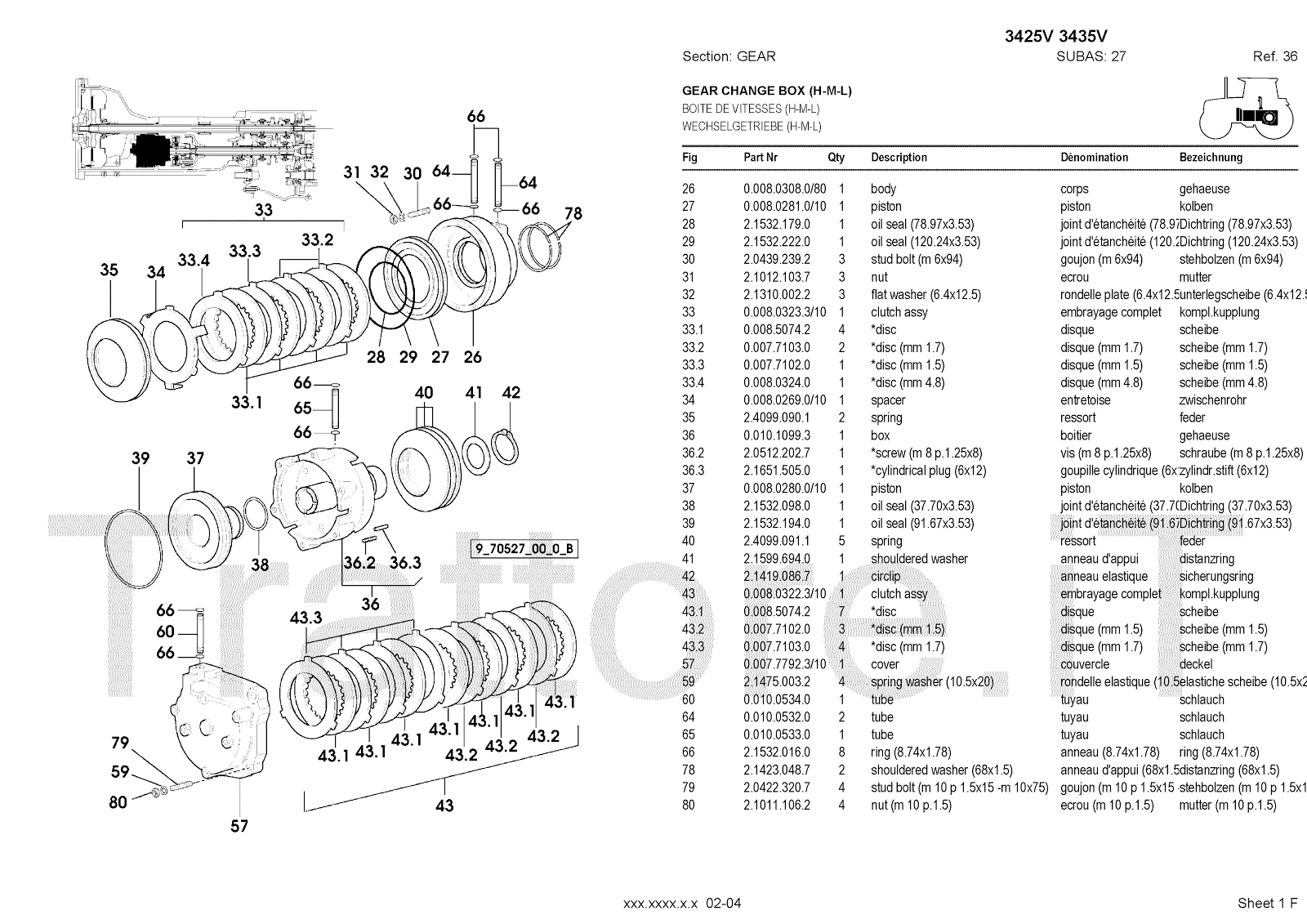Manuale (esploso meccanico) per trattore / trattrice Massey Ferguson 3435V