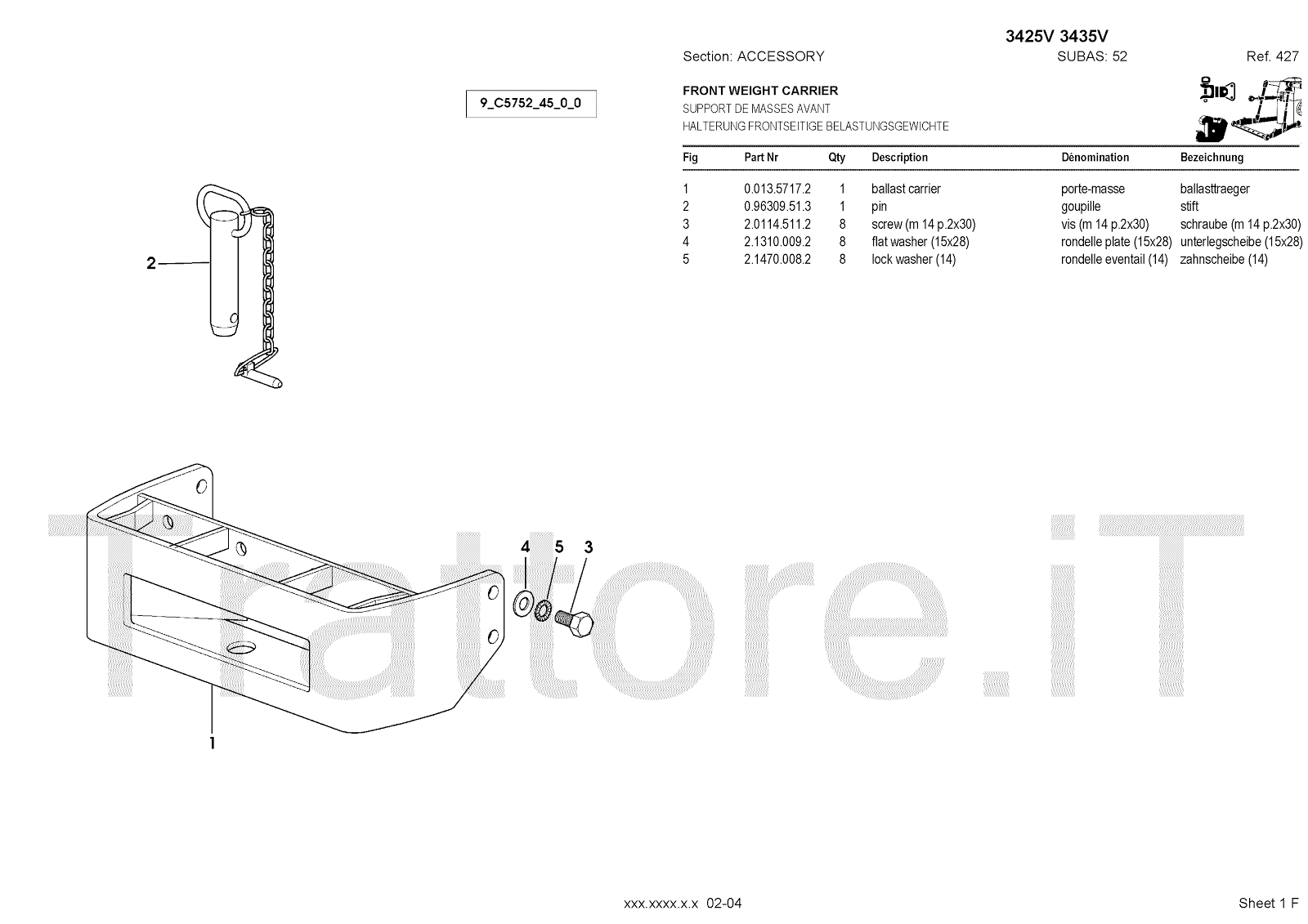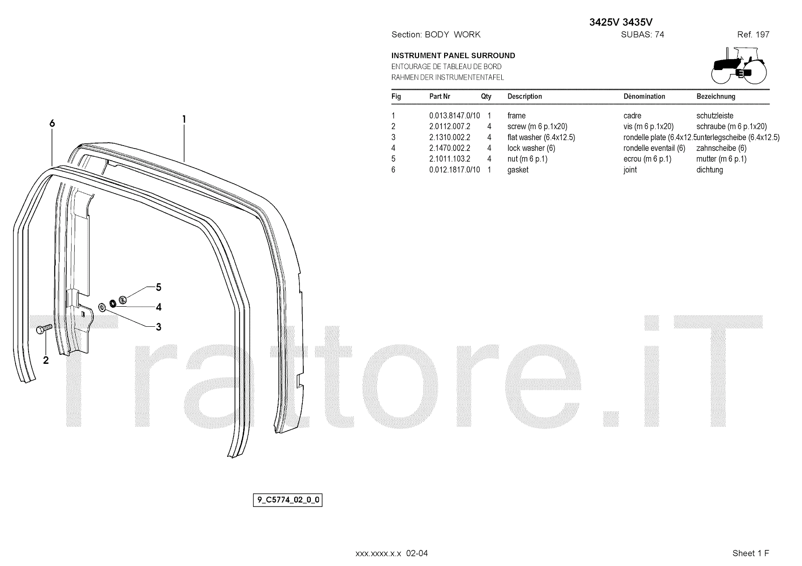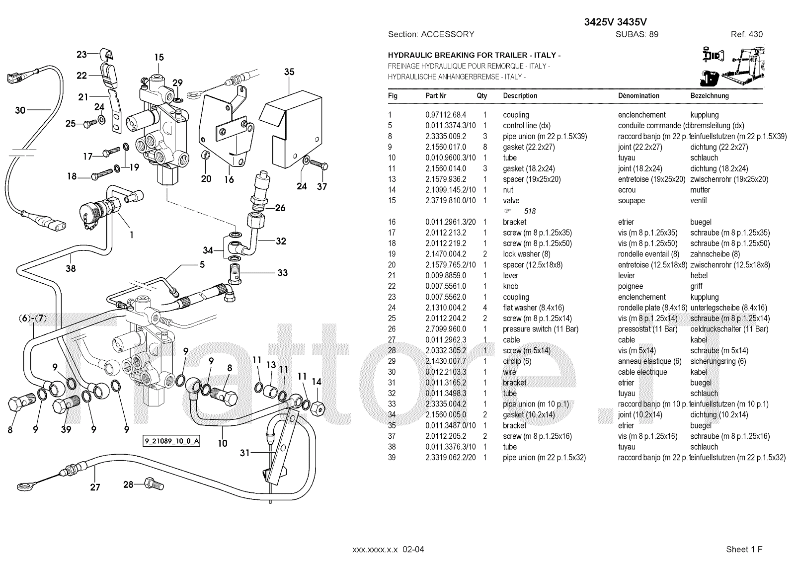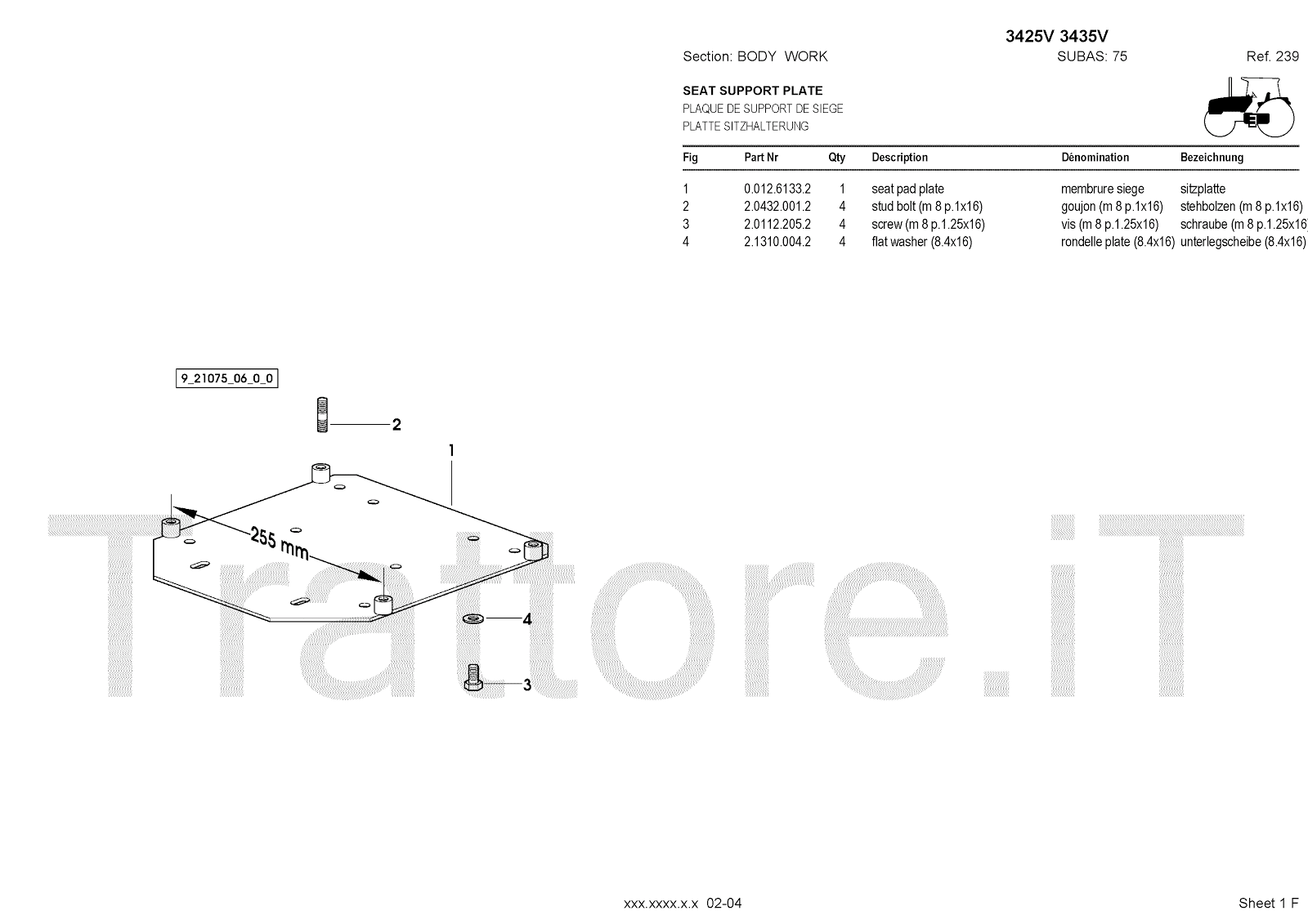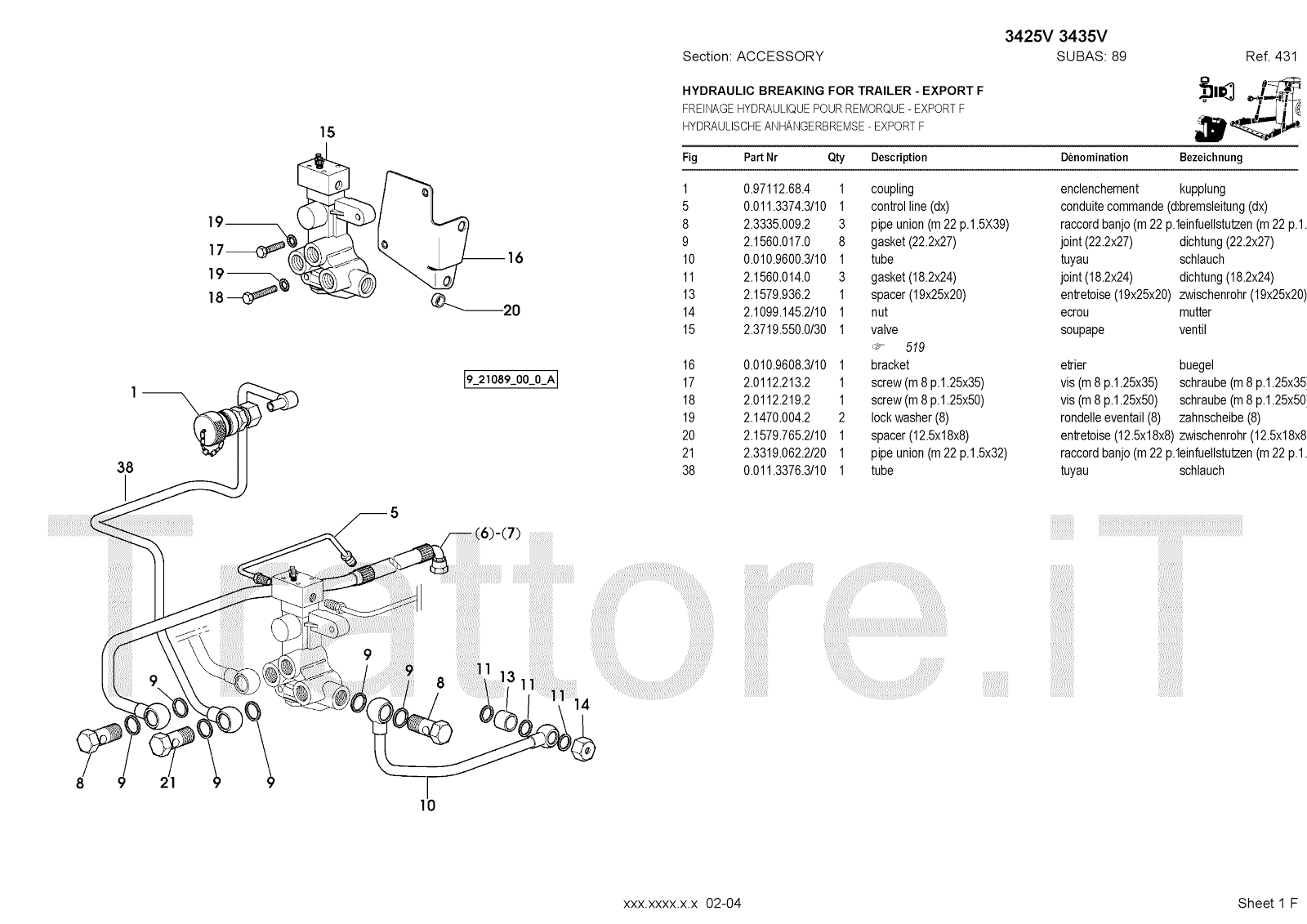 Manuale (esploso meccanico) per trattore / trattrice Massey Ferguson 3435V