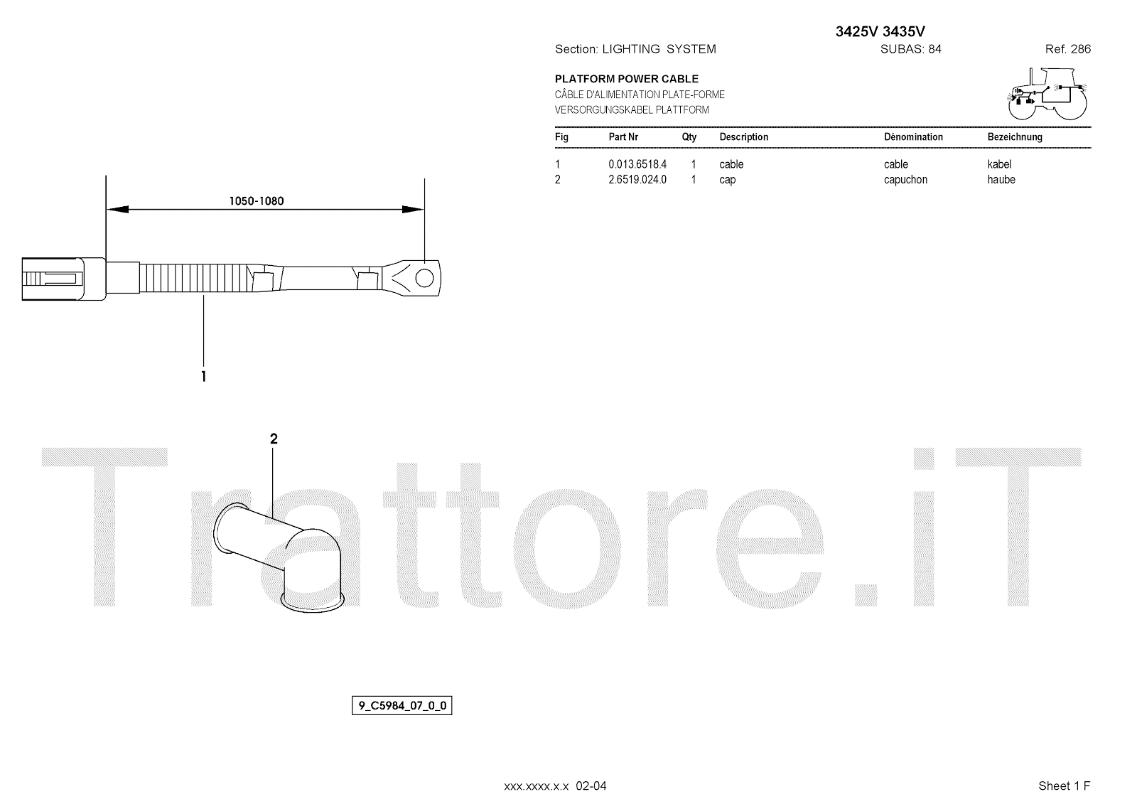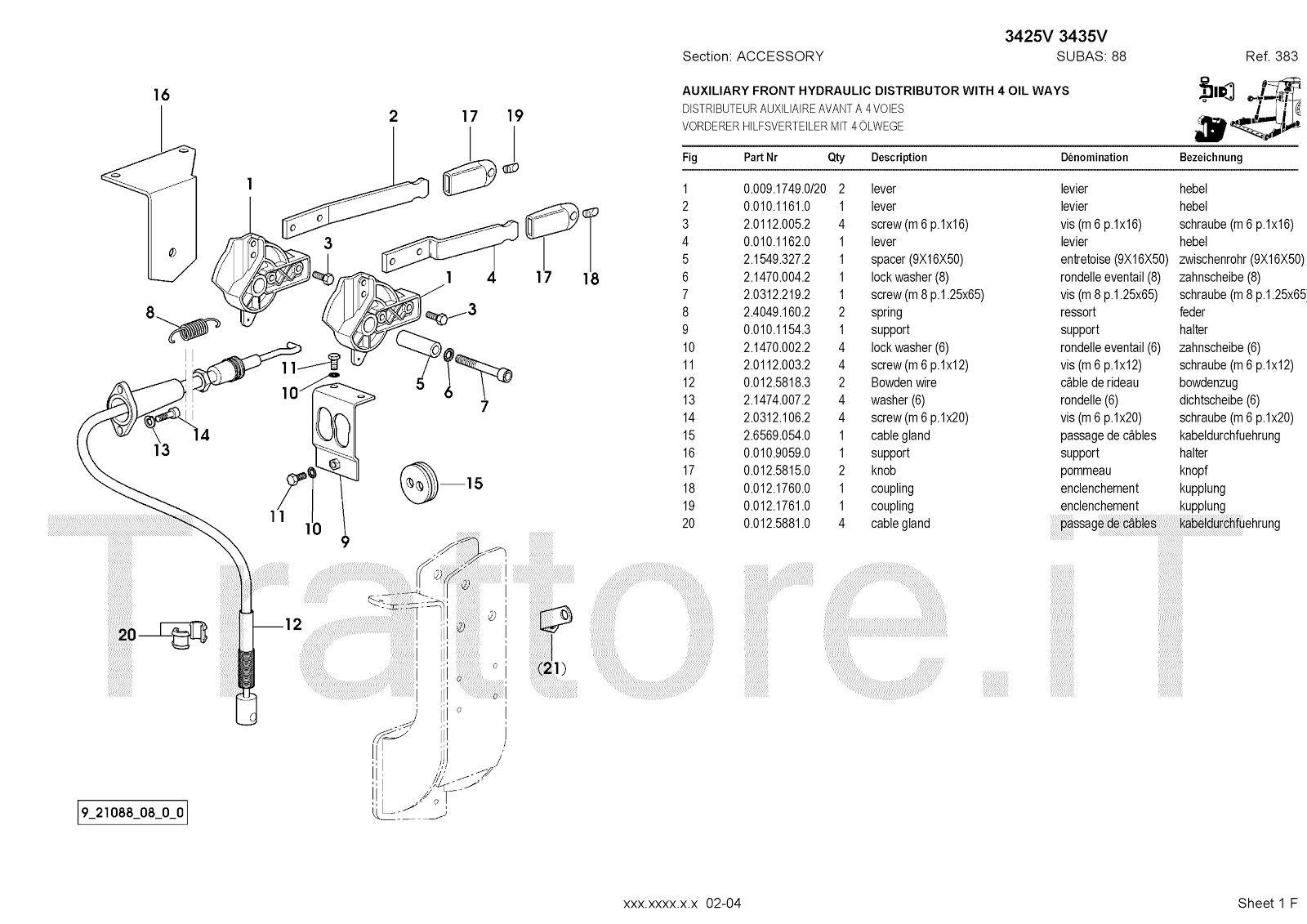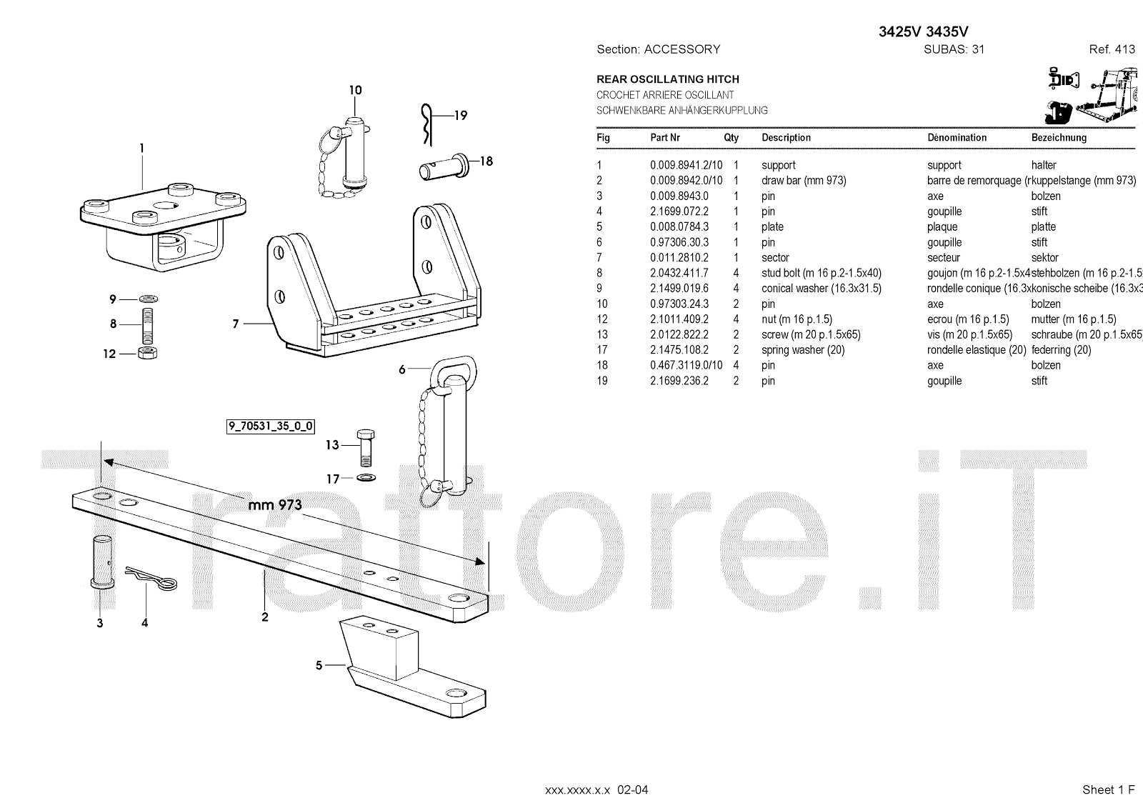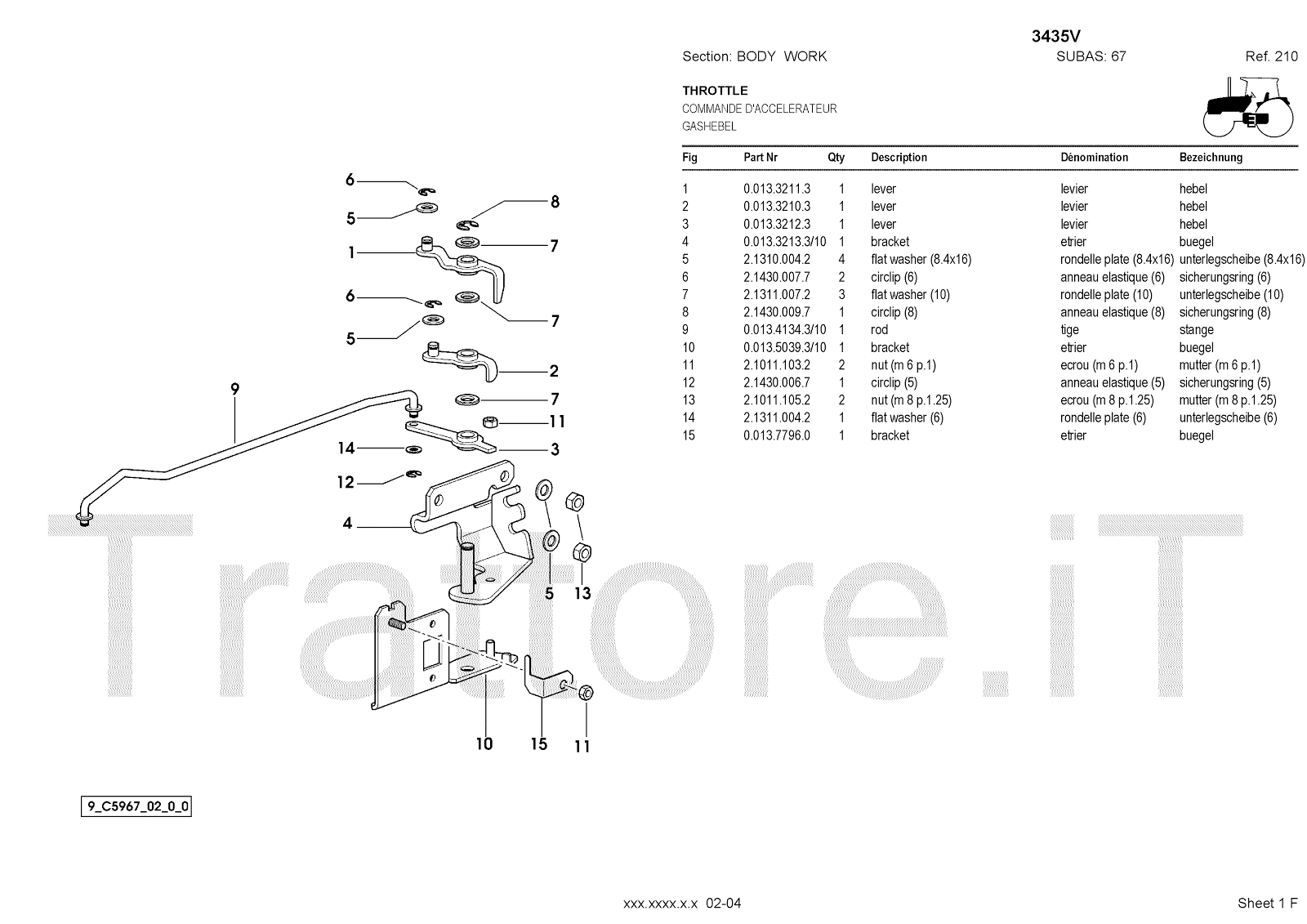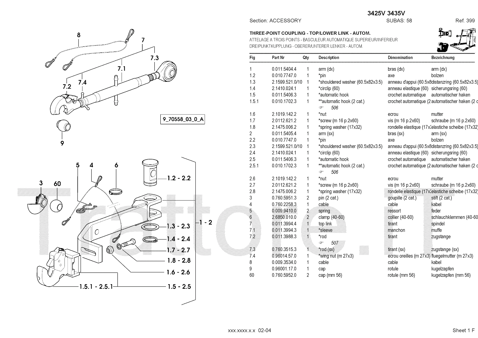 Manuale (esploso meccanico) per trattore / trattrice Massey Ferguson 3435V