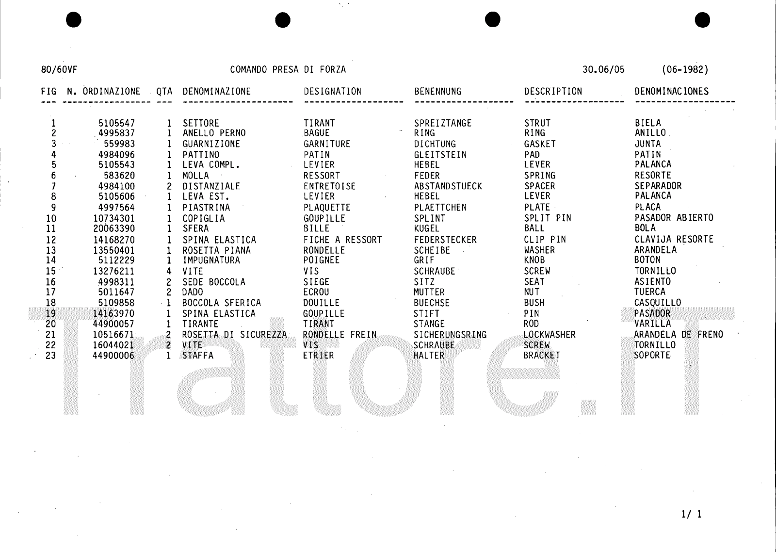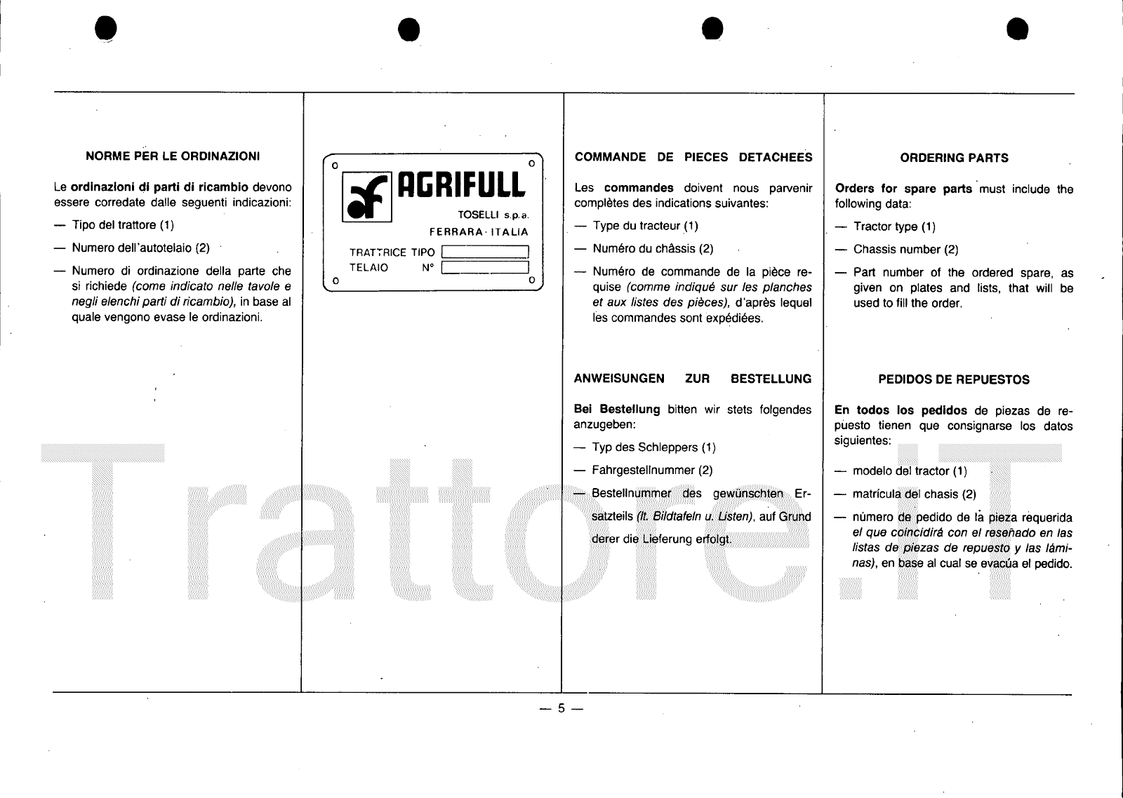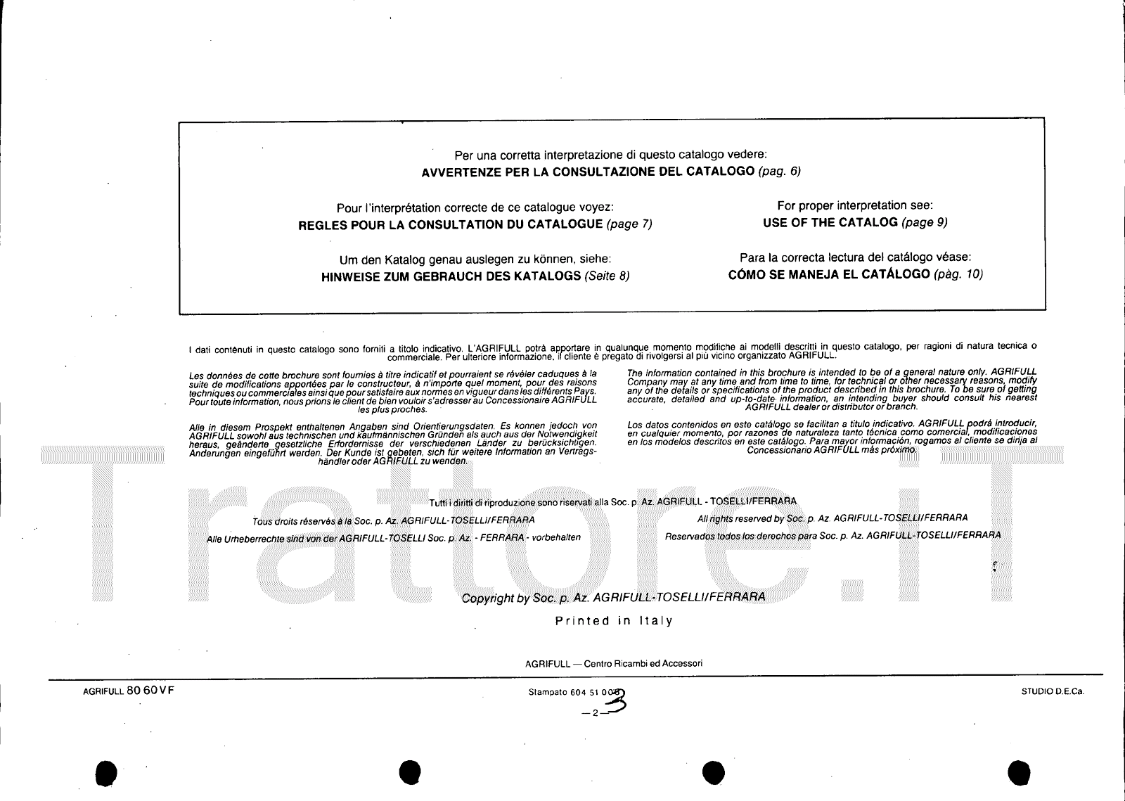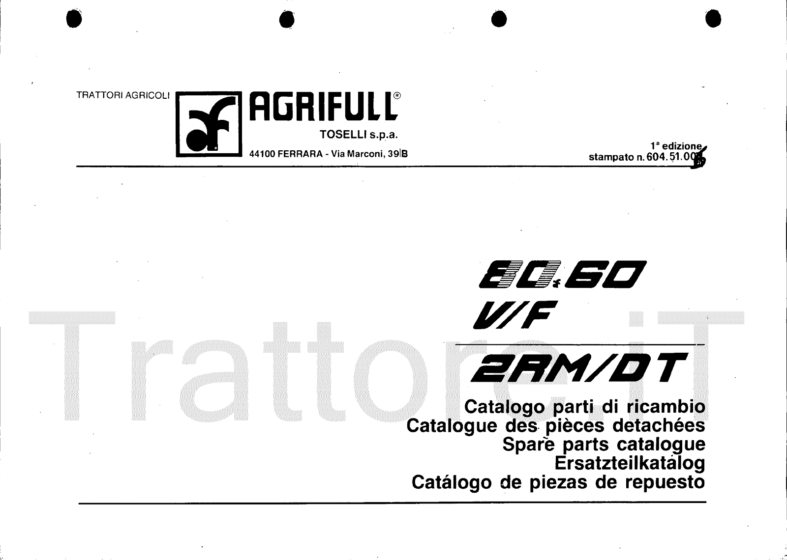 Manuale (esploso meccanico) trattore Agrifull serie 80-60 V F 2AM DT