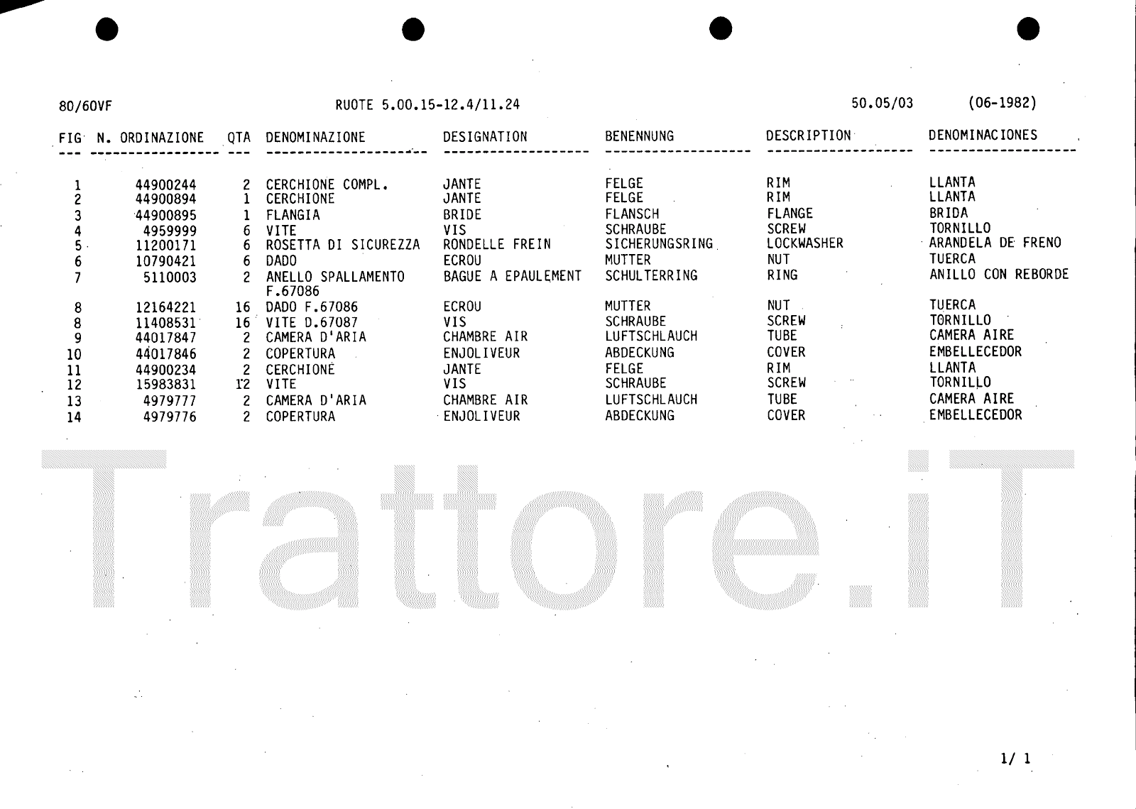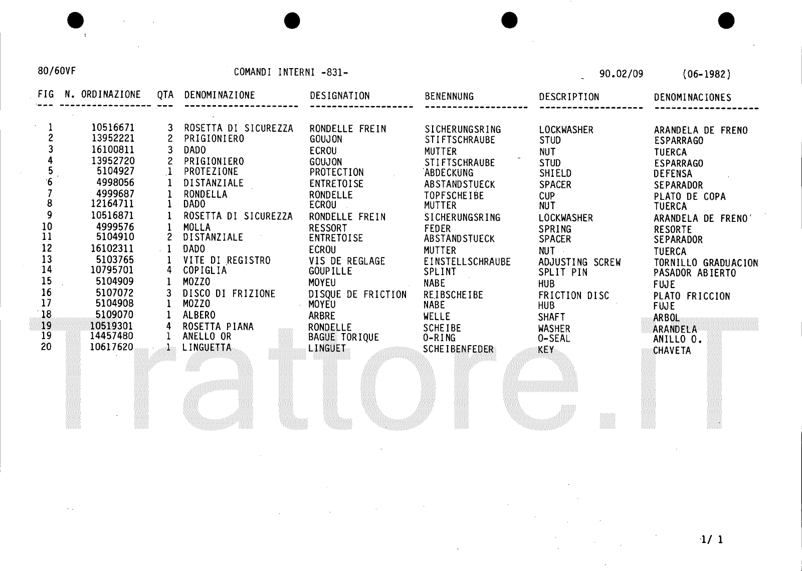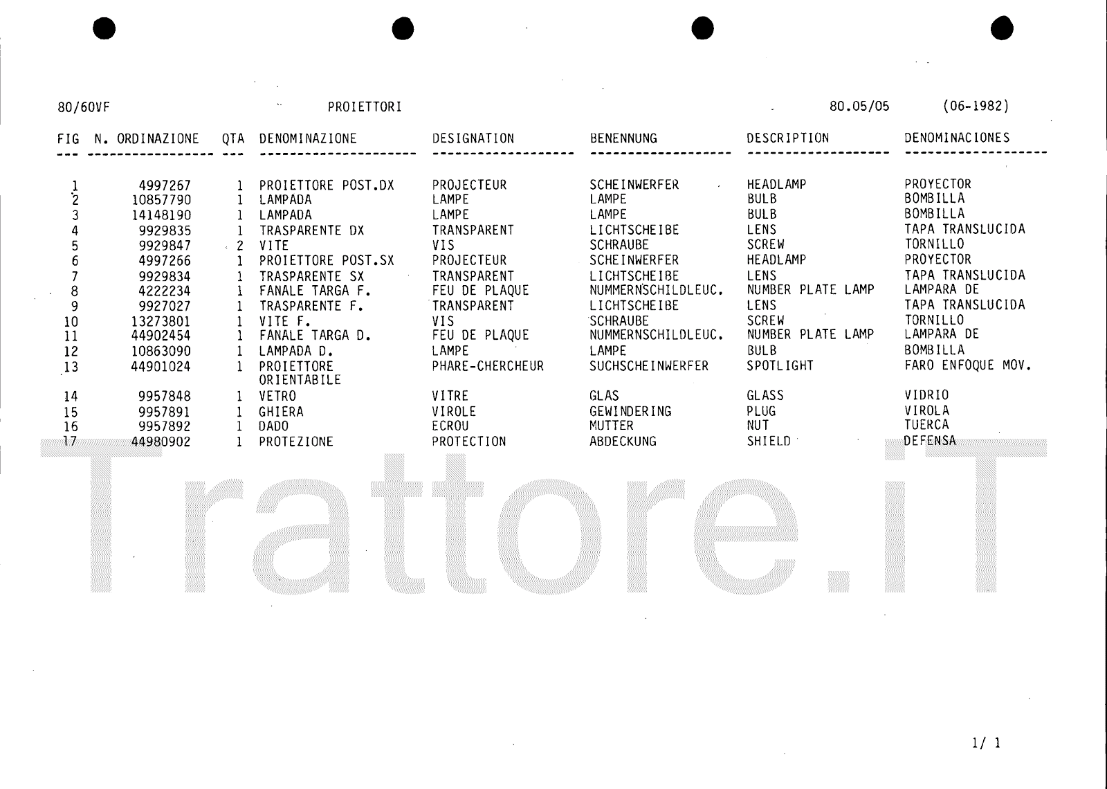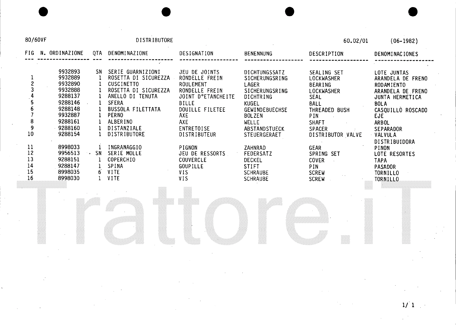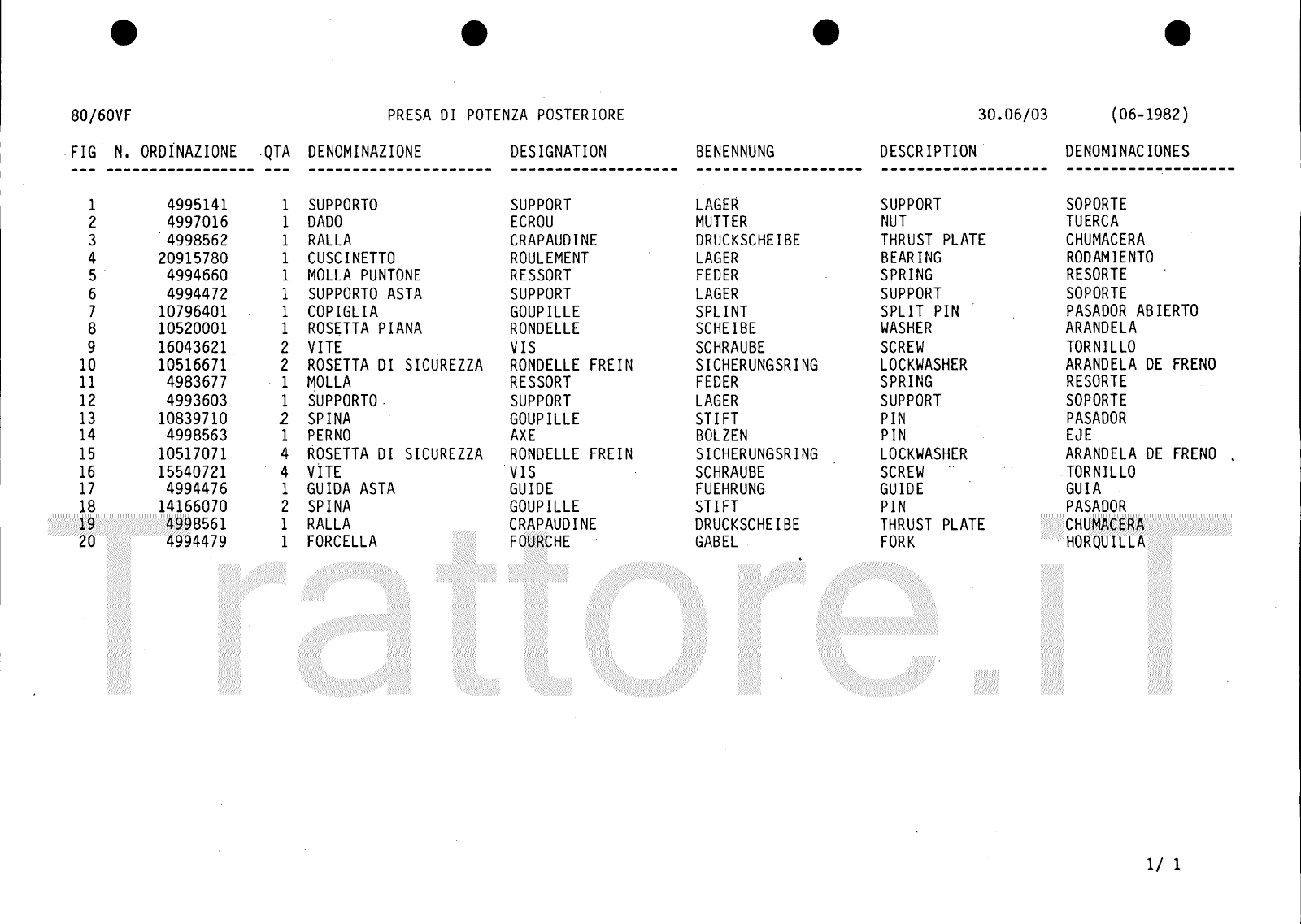Manuale (esploso meccanico) trattore Agrifull serie 80-60 V F 2AM DT
