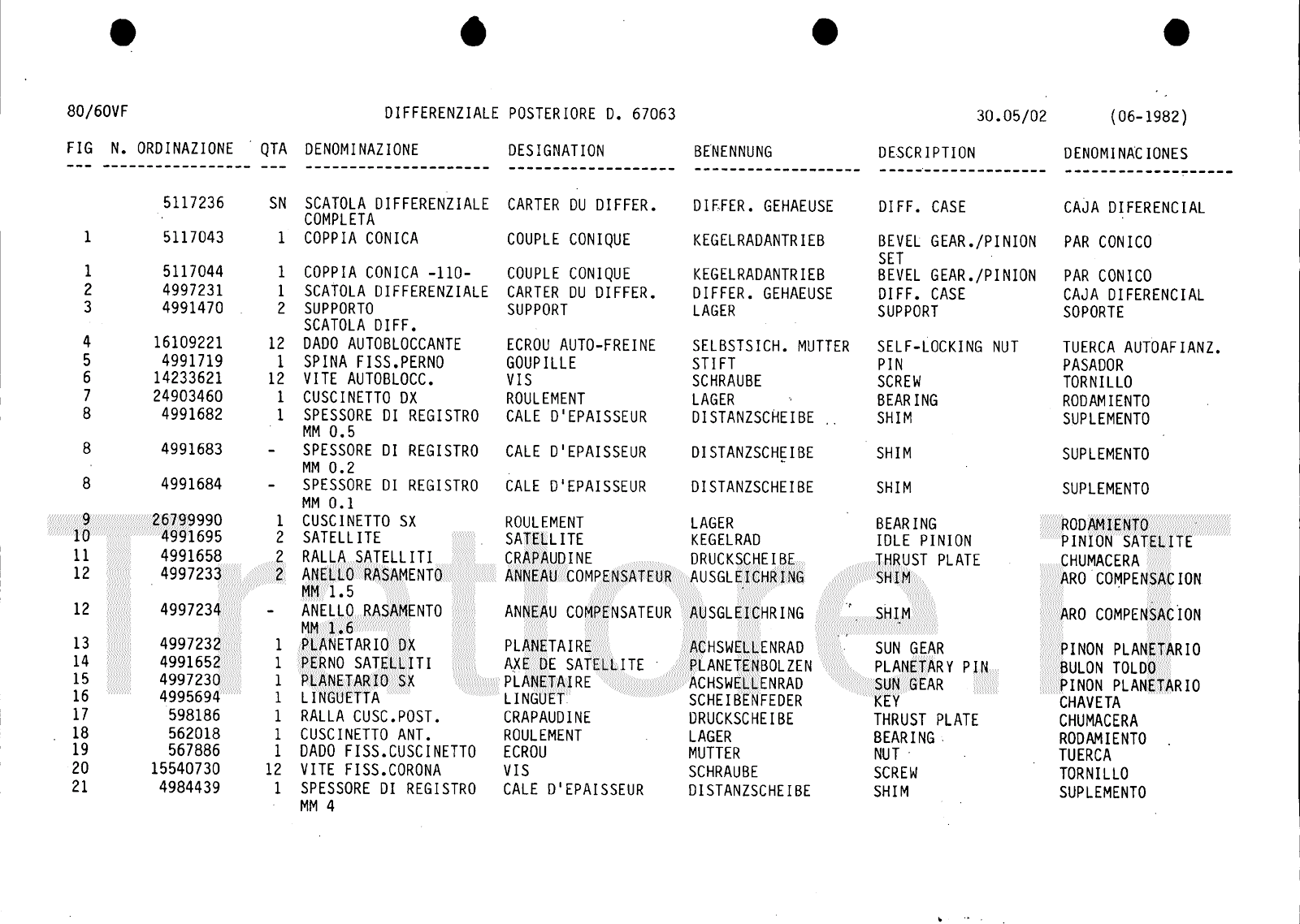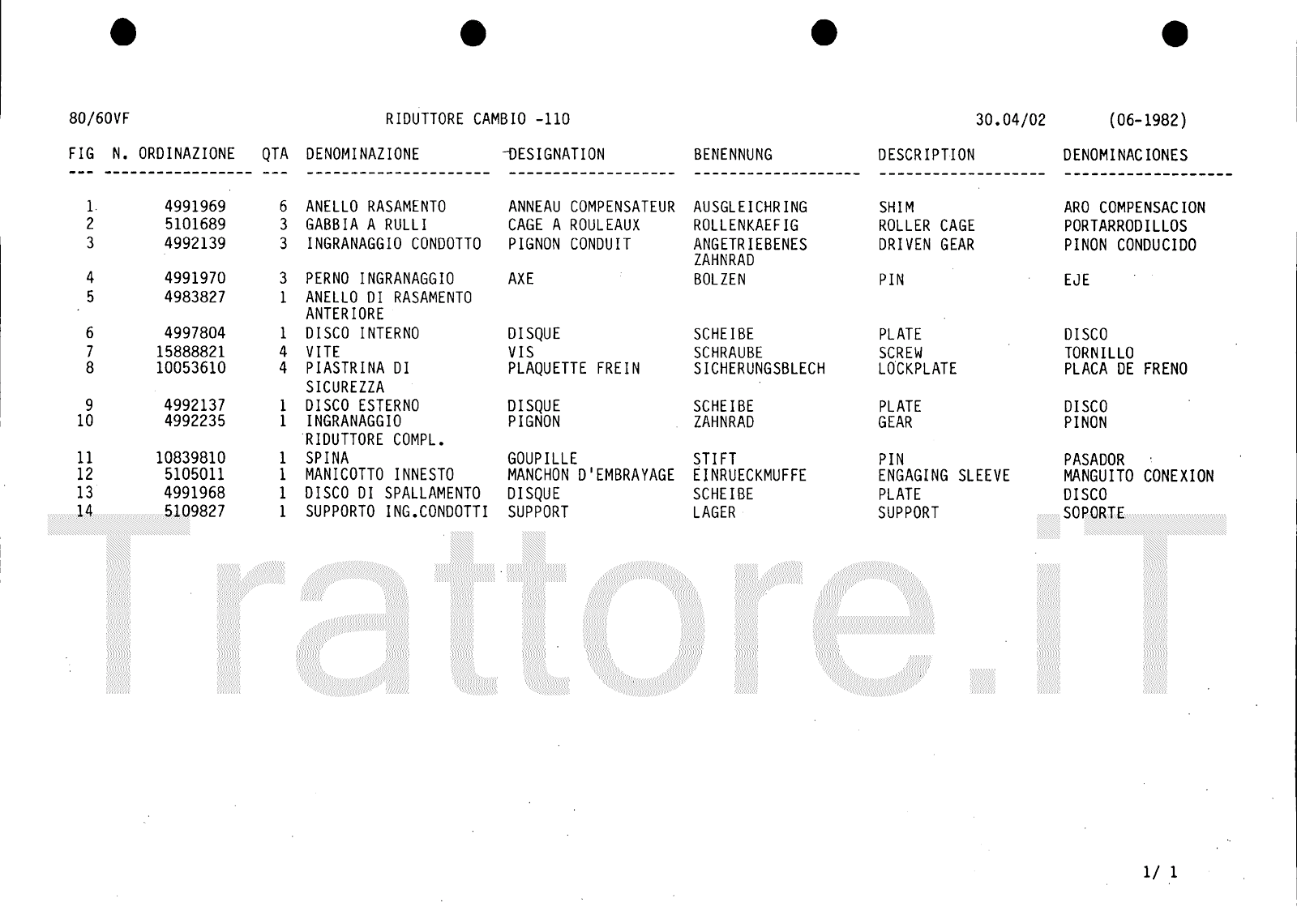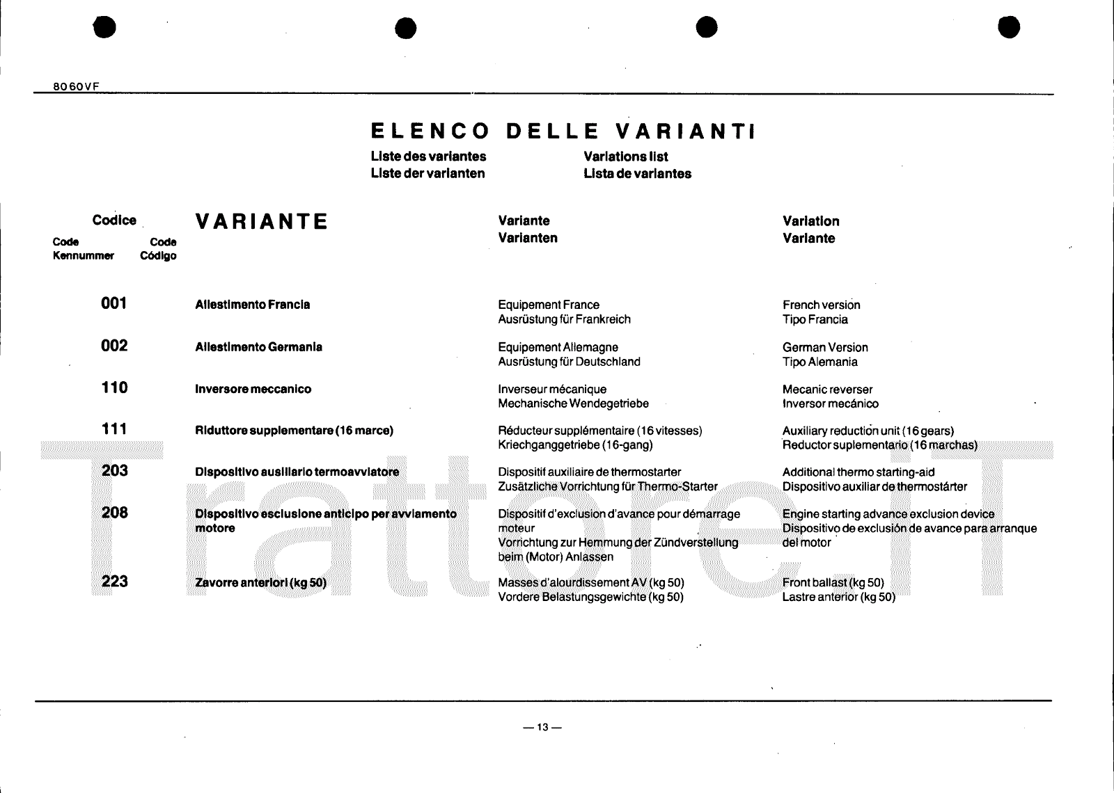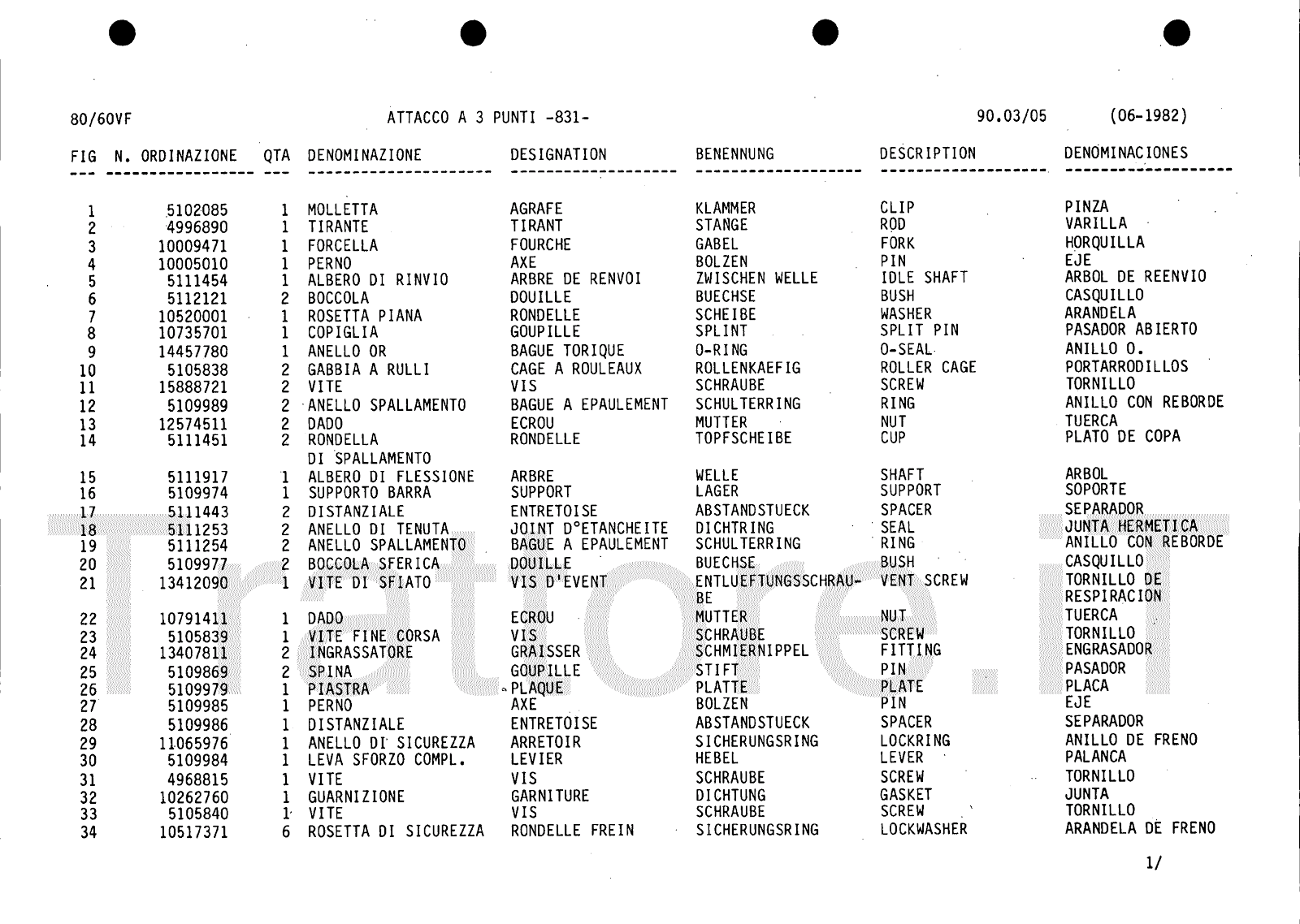 Manuale (esploso meccanico) trattore Agrifull serie 80-60 V F 2AM DT
