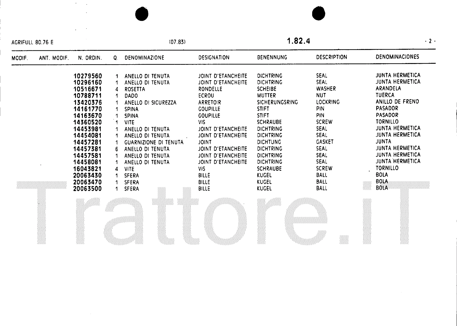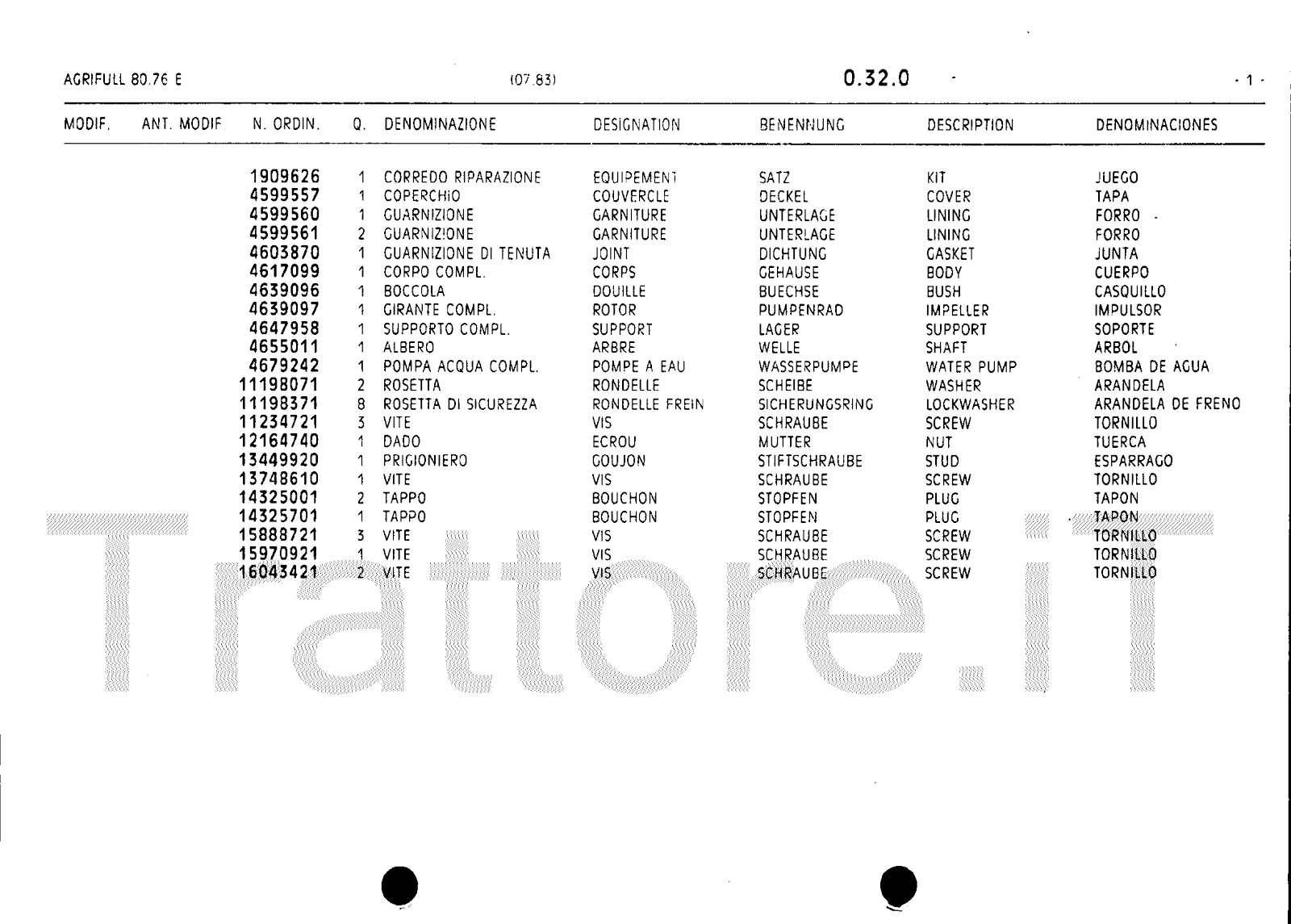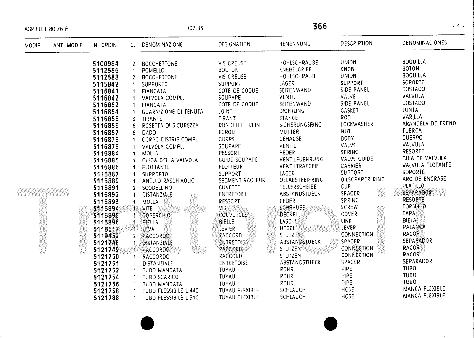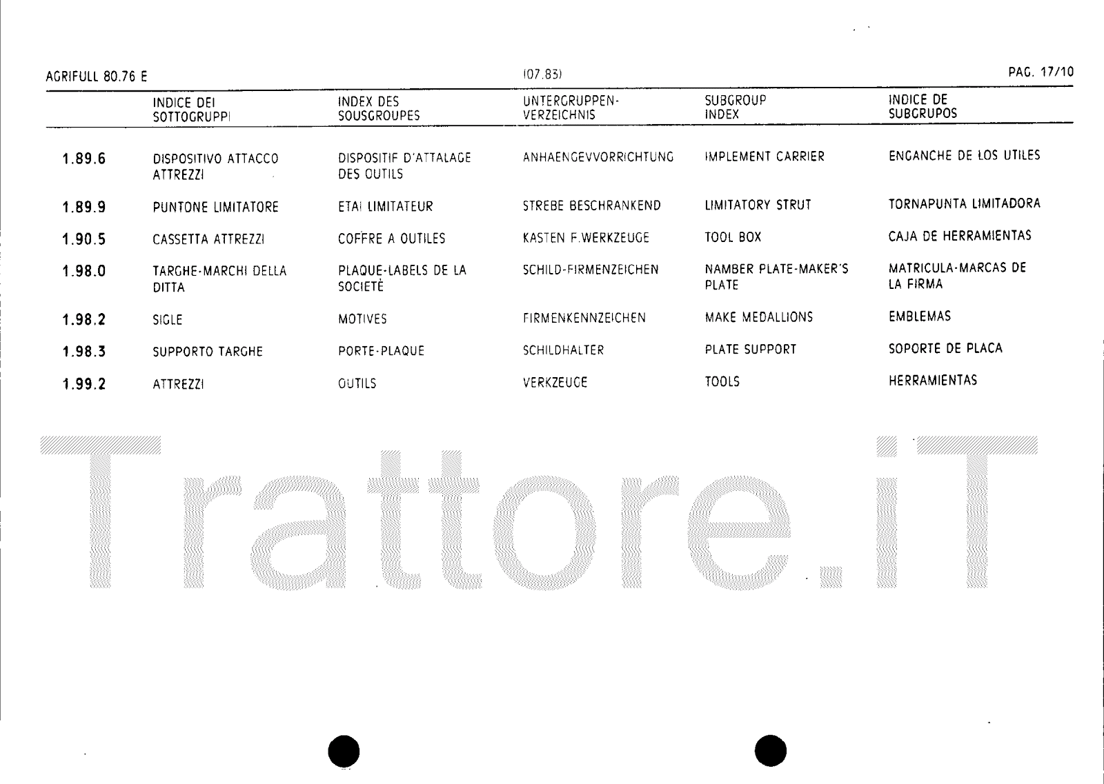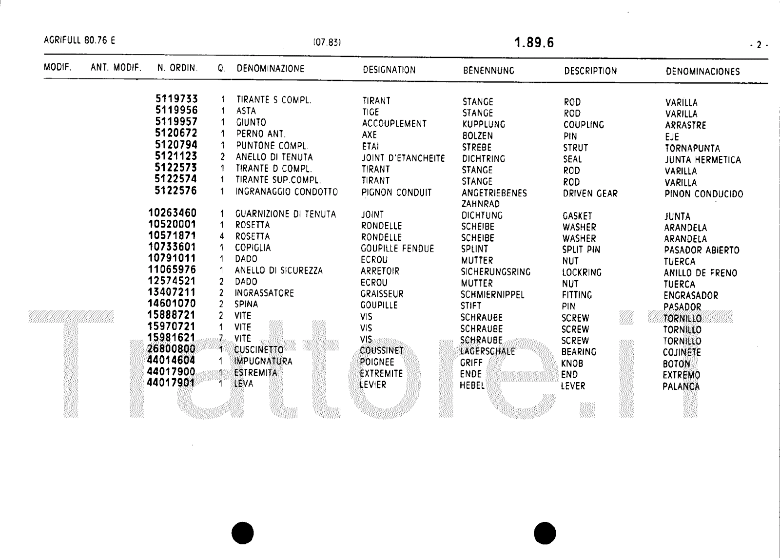 Manuale (esploso meccanico) trattore Agrifull serie 80-76E