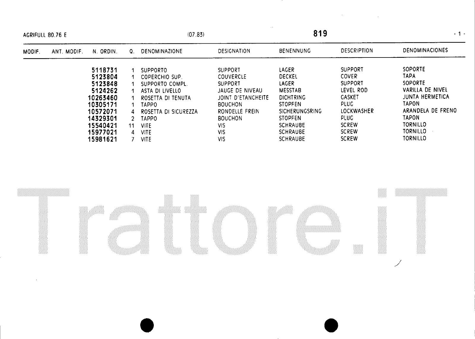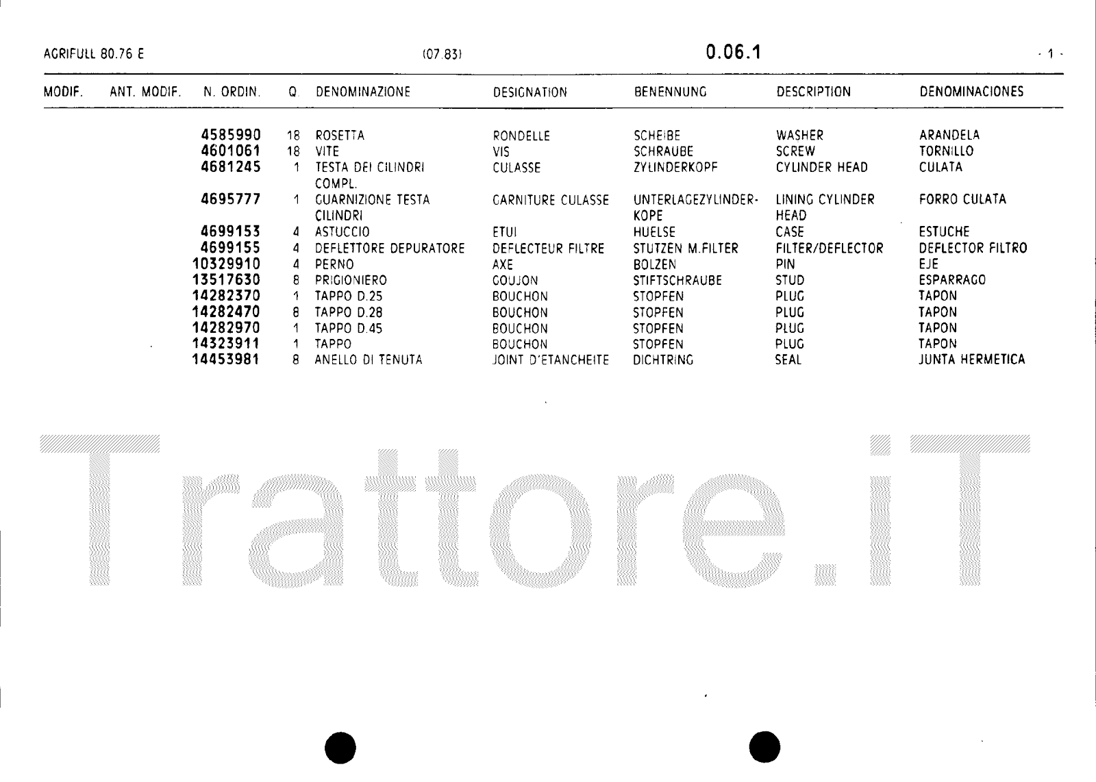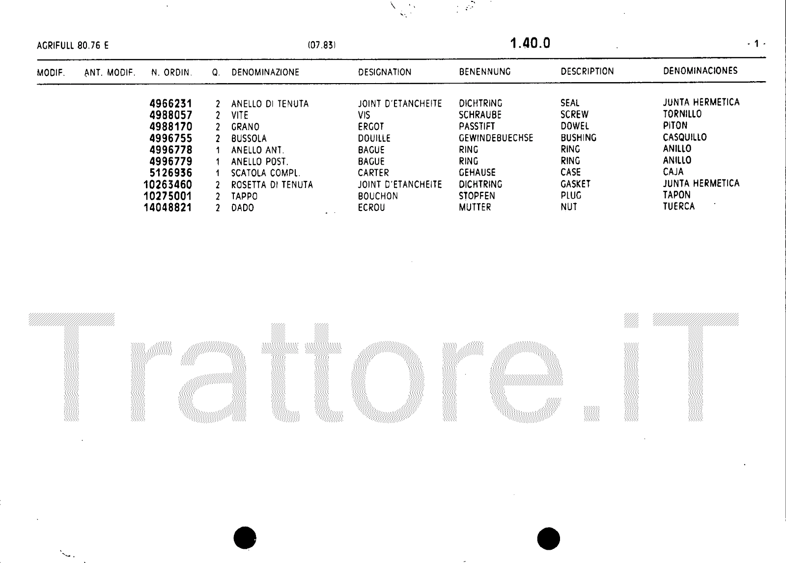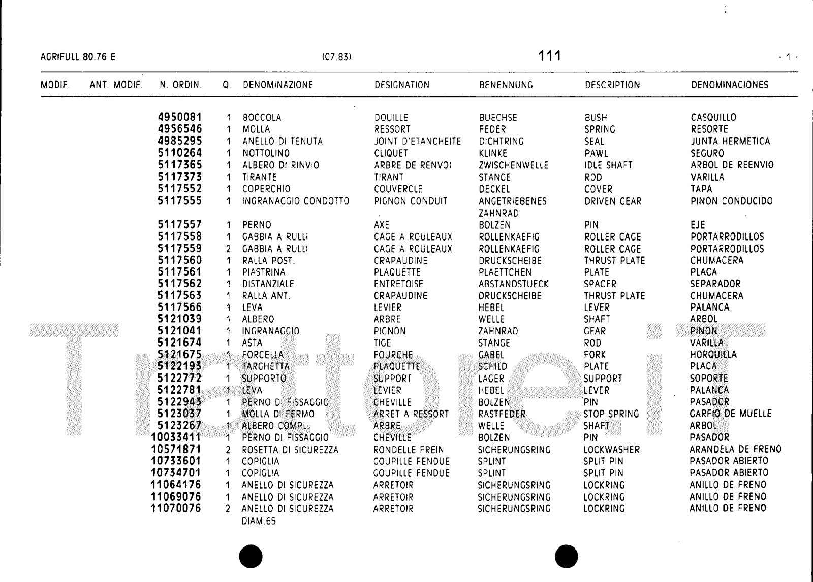 Manuale (esploso meccanico) trattore Agrifull serie 80-76E