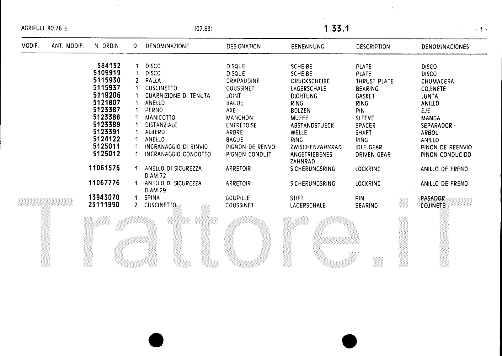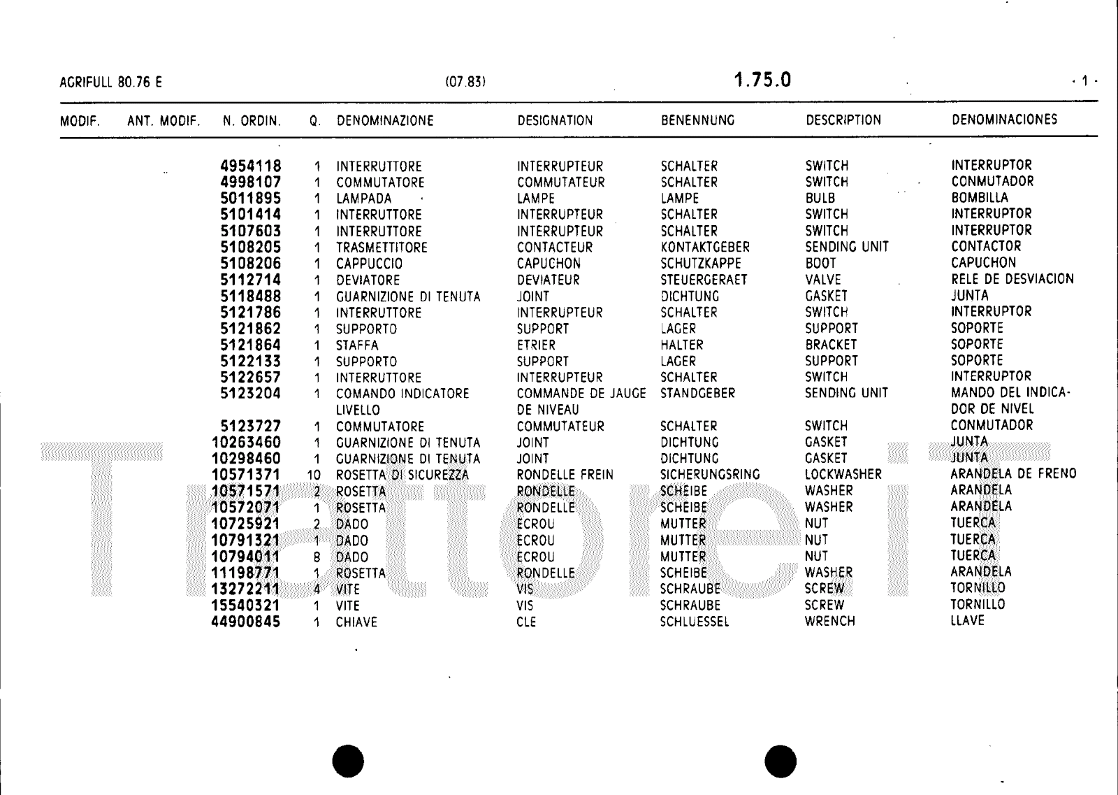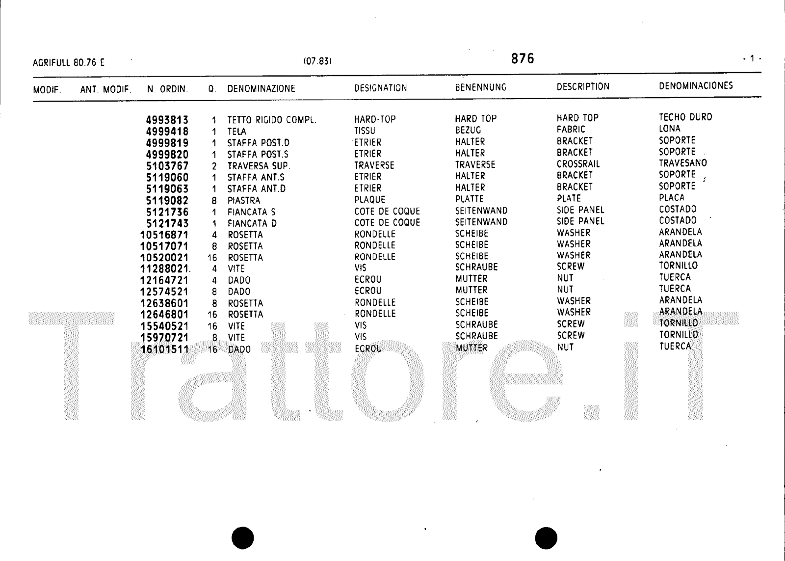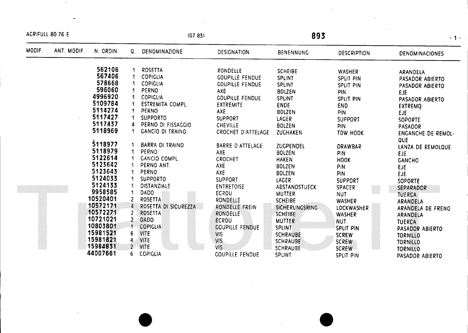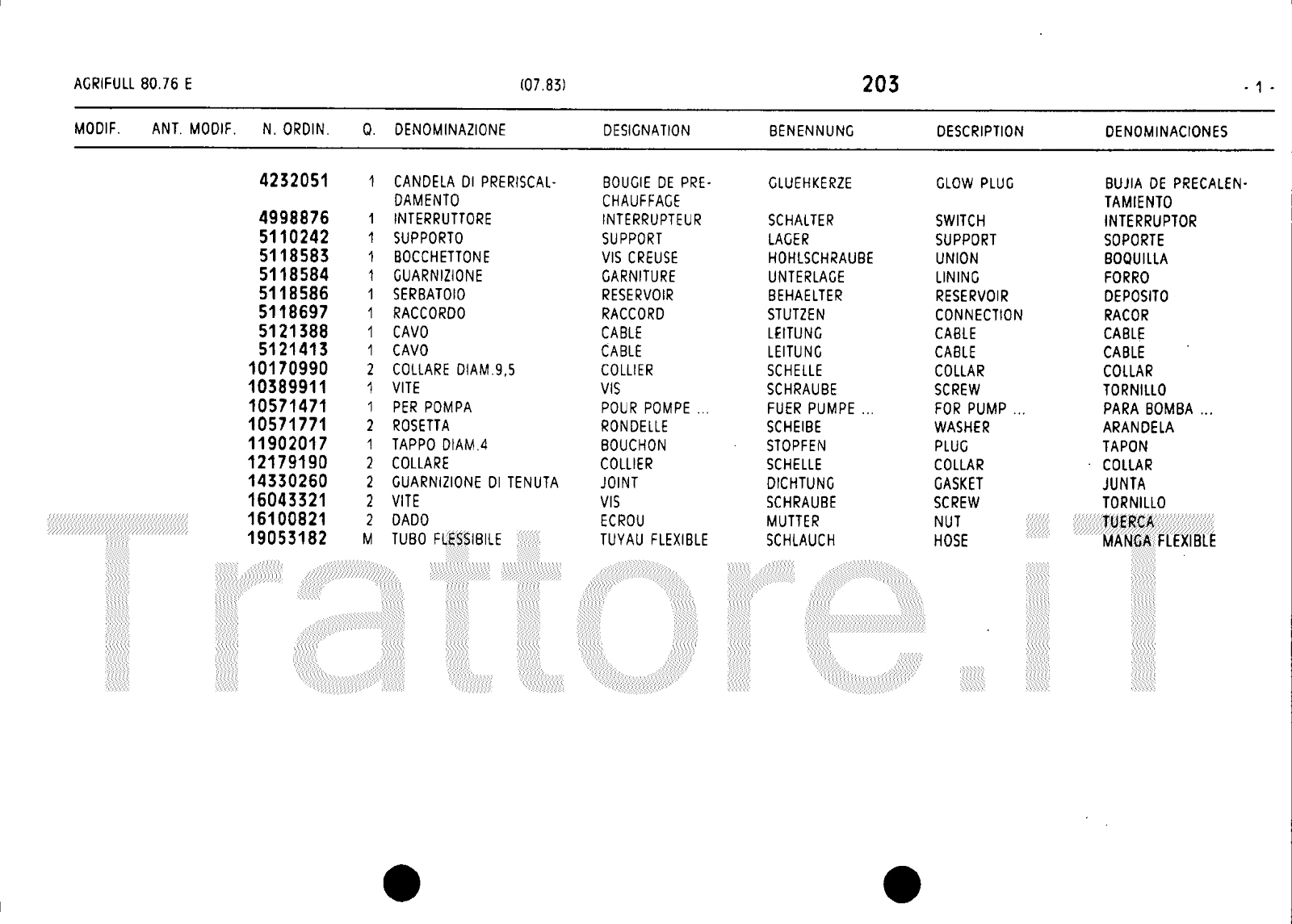 Manuale (esploso meccanico) trattore Agrifull serie 80-76E