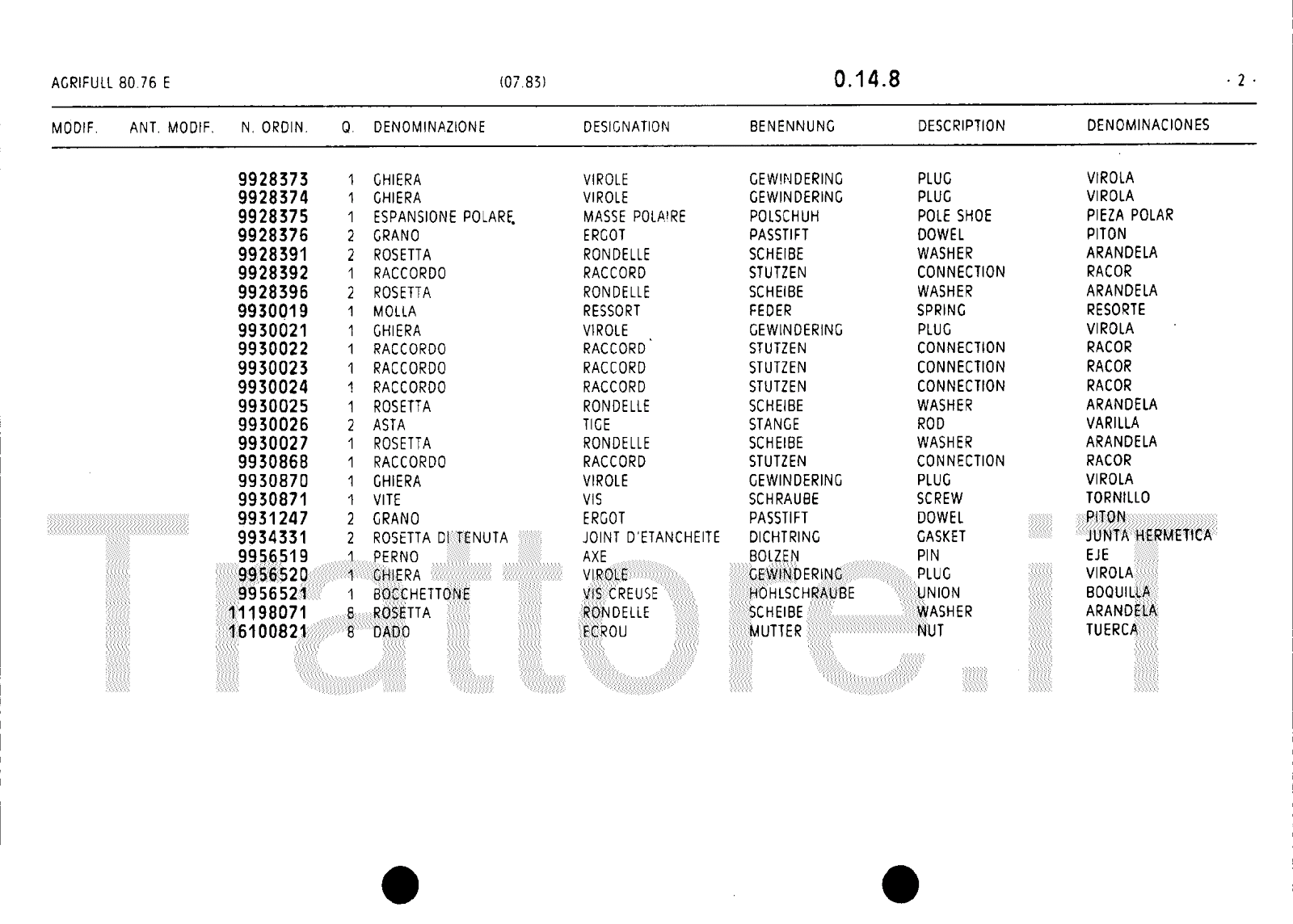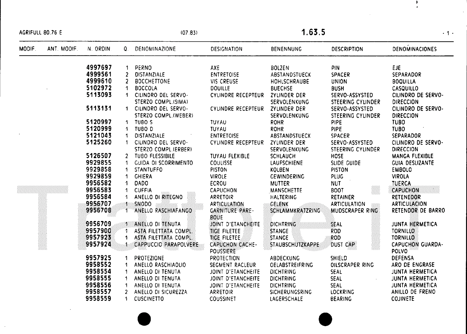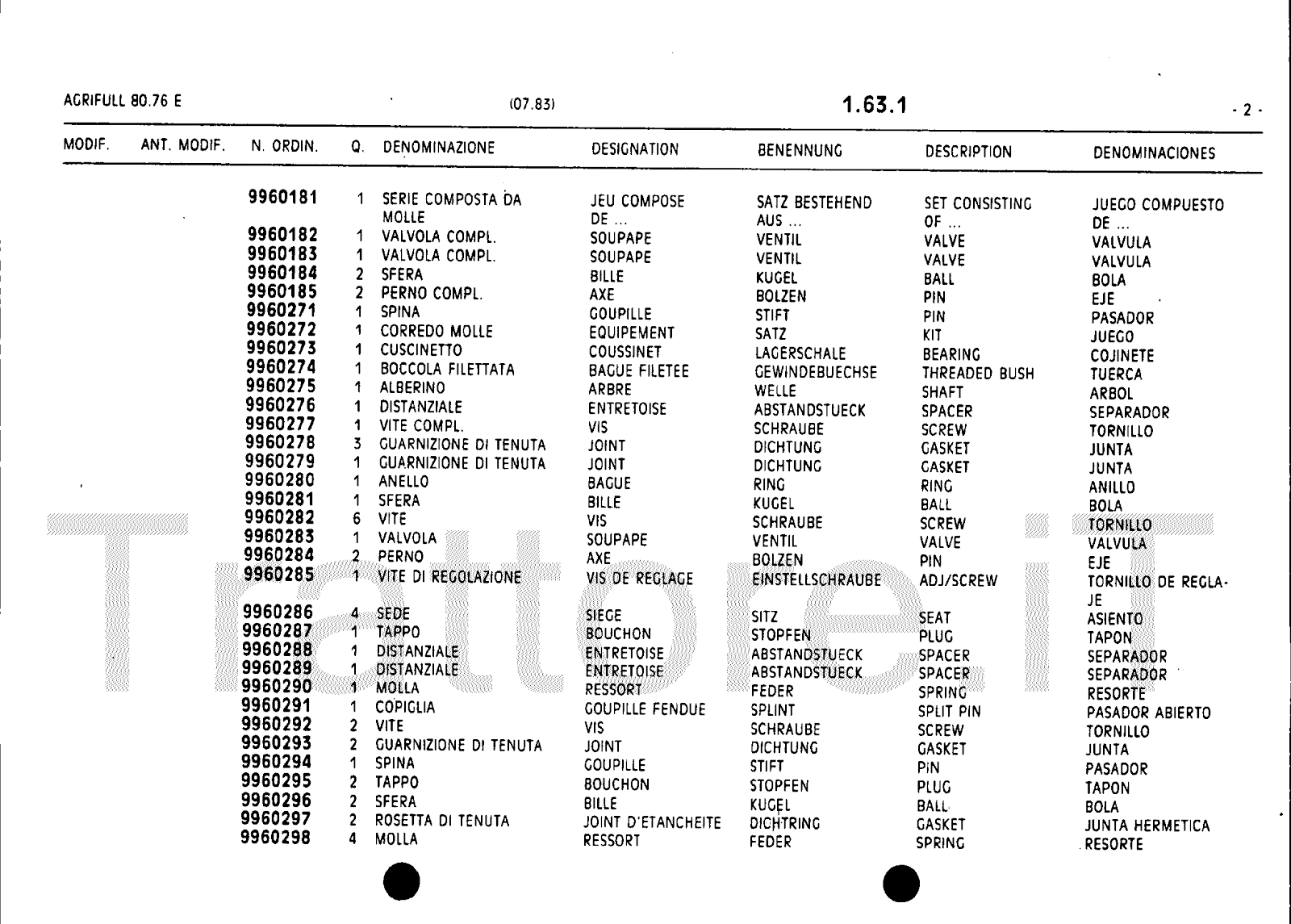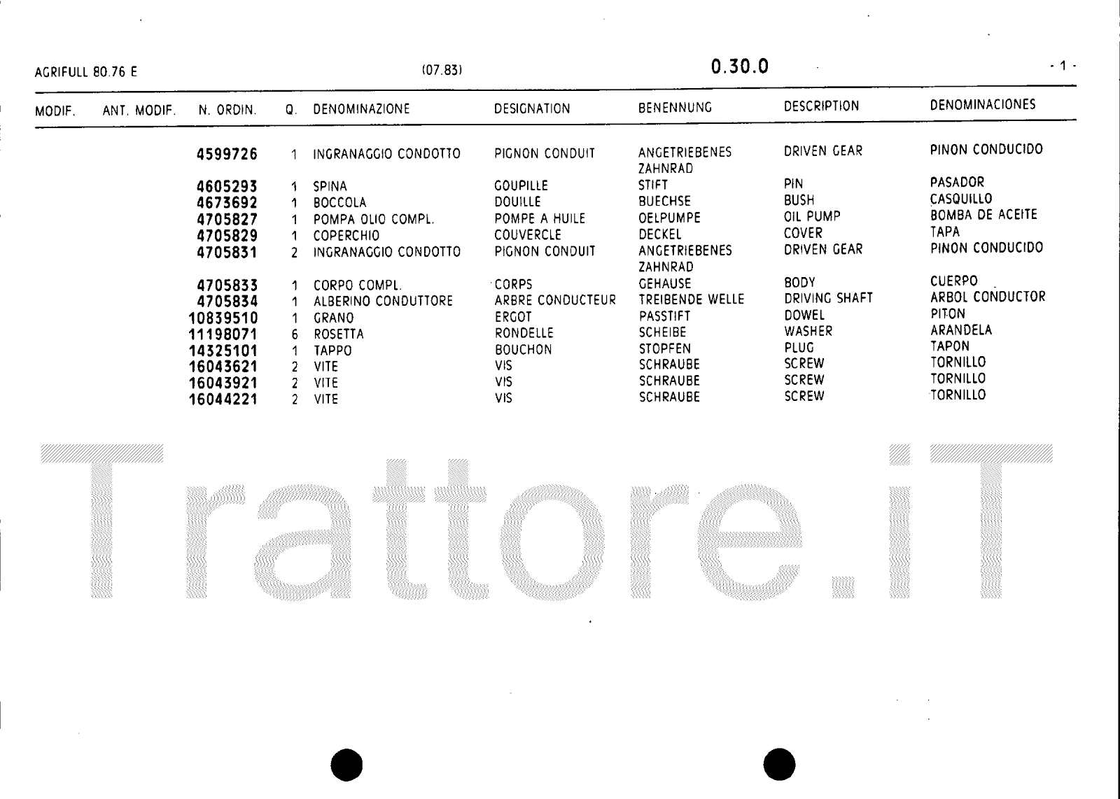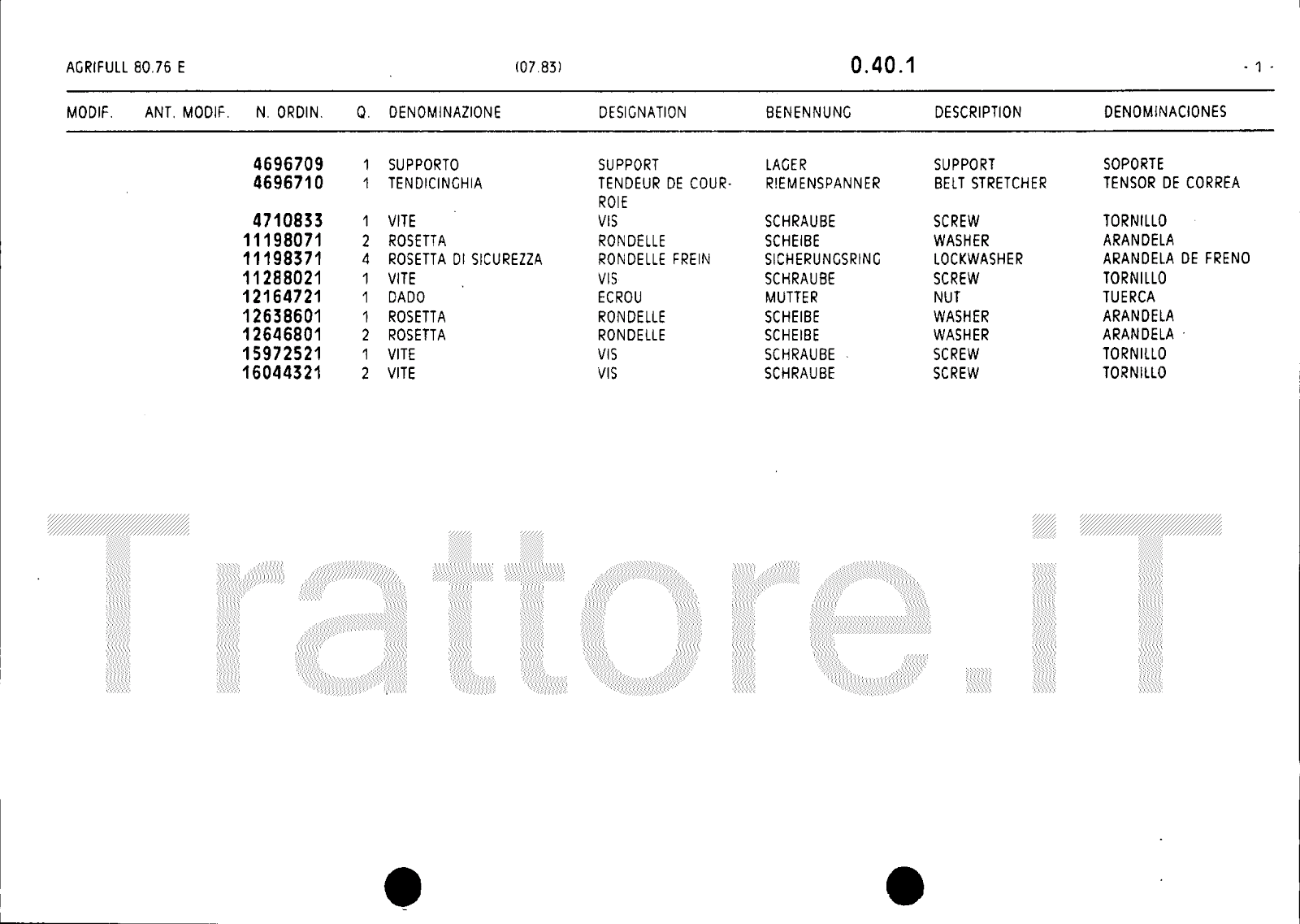 Manuale (esploso meccanico) trattore Agrifull serie 80-76E