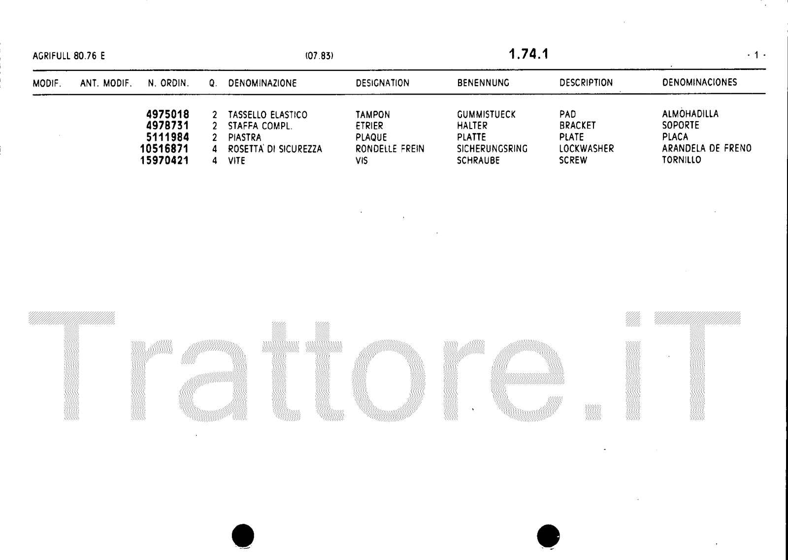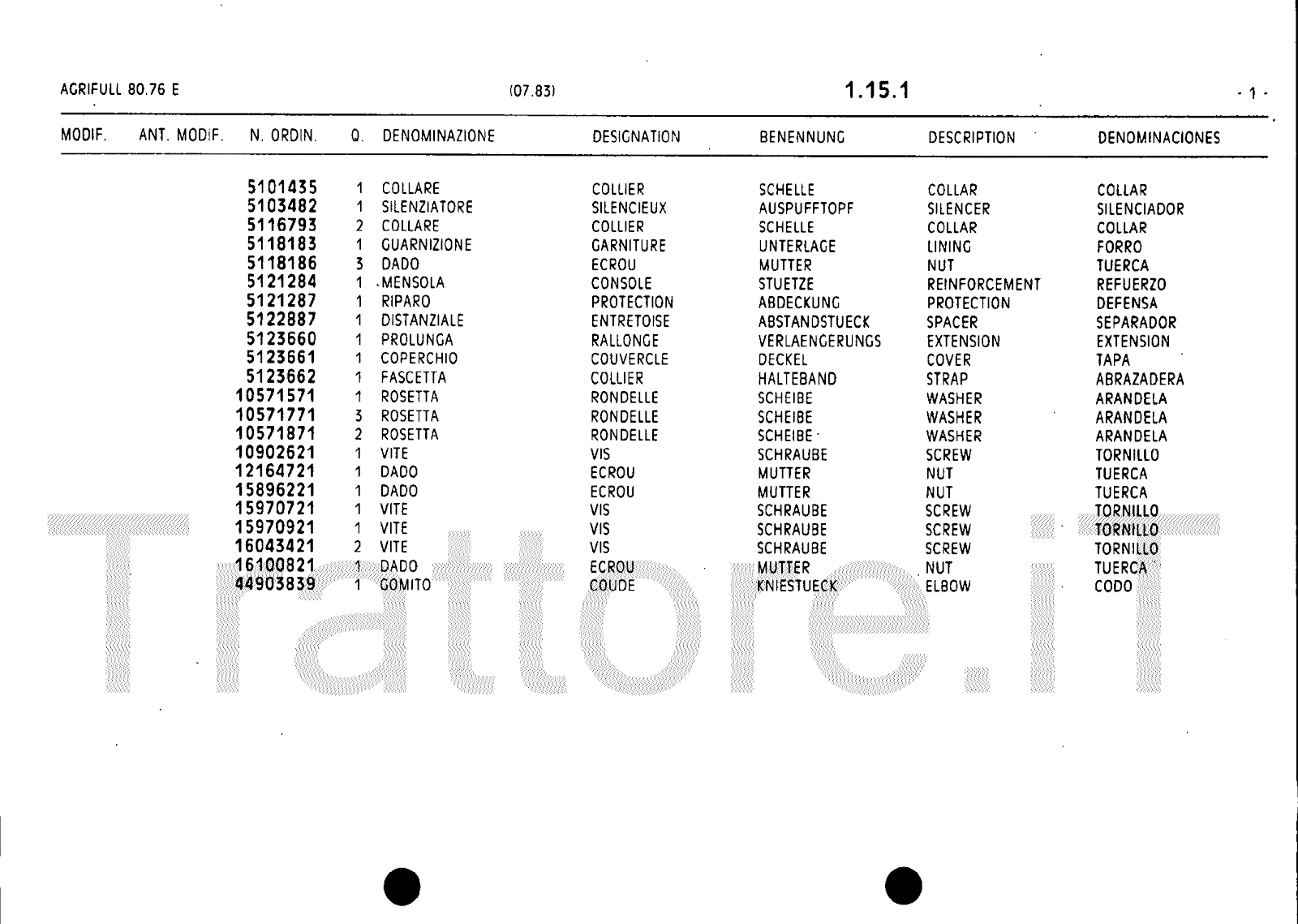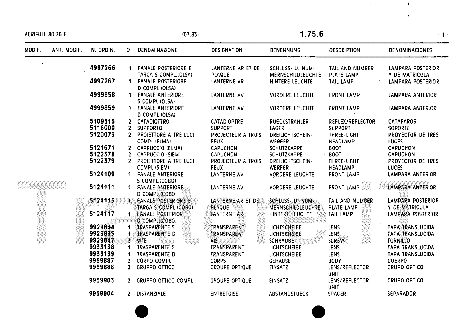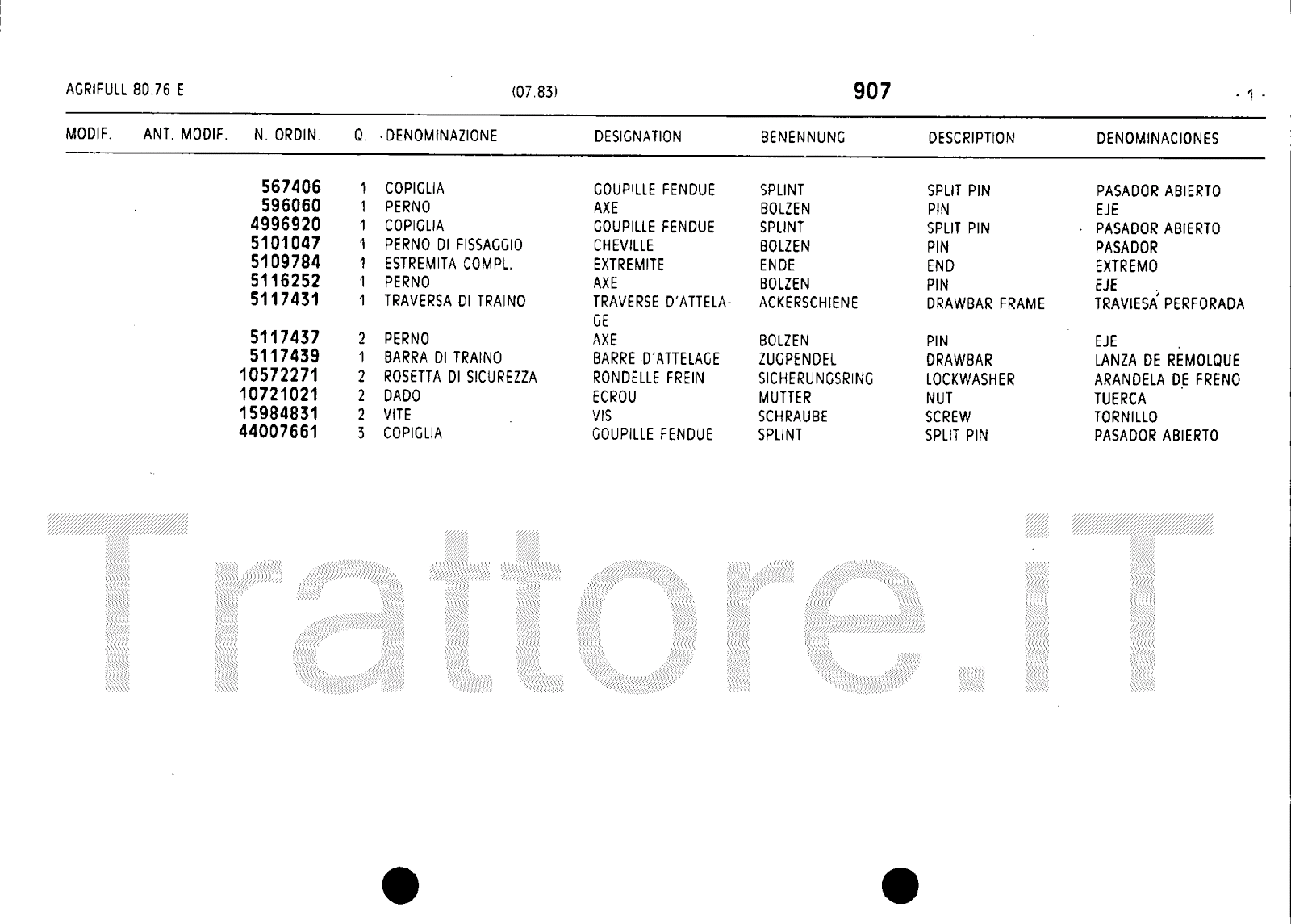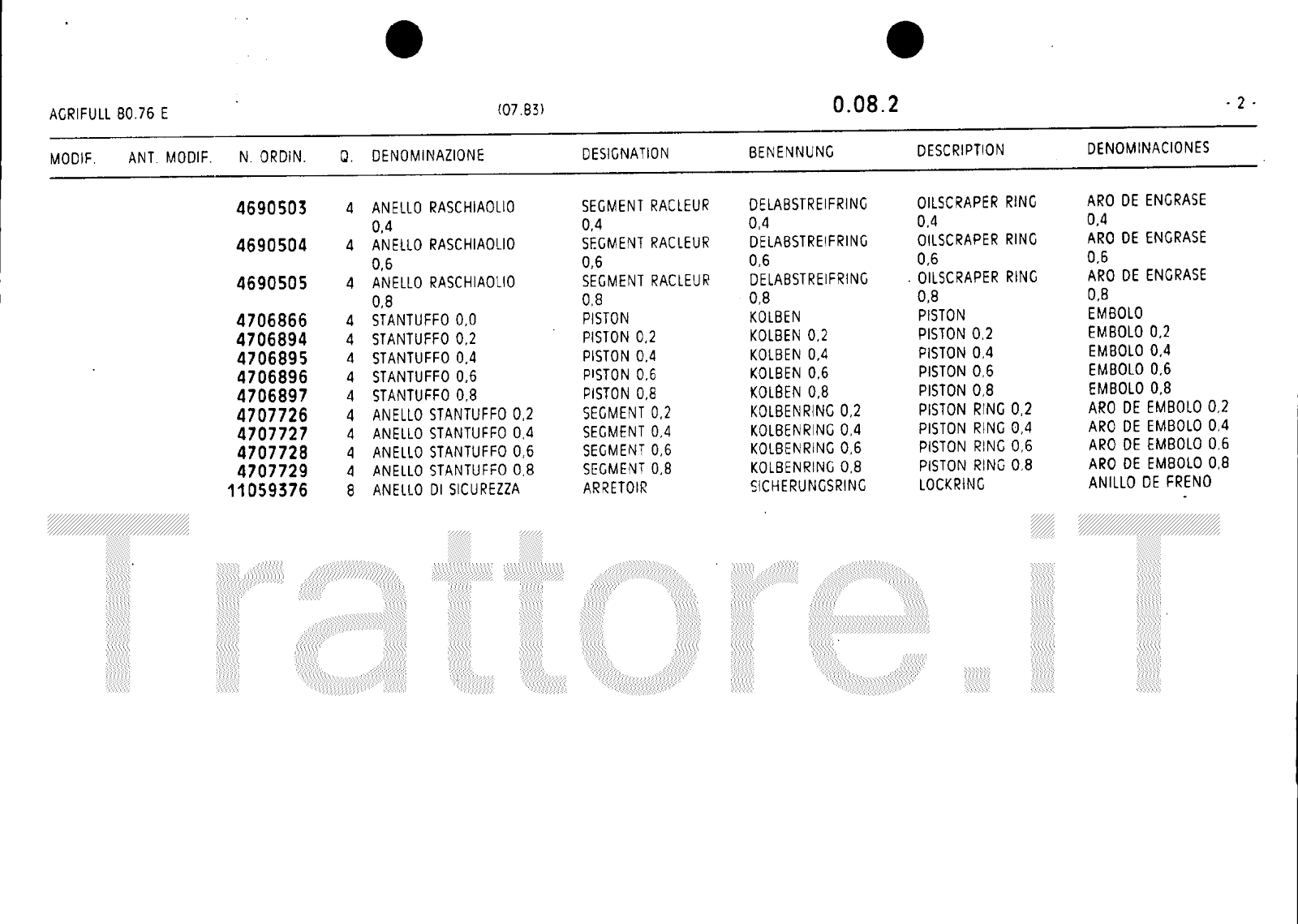 Manuale (esploso meccanico) trattore Agrifull serie 80-76E