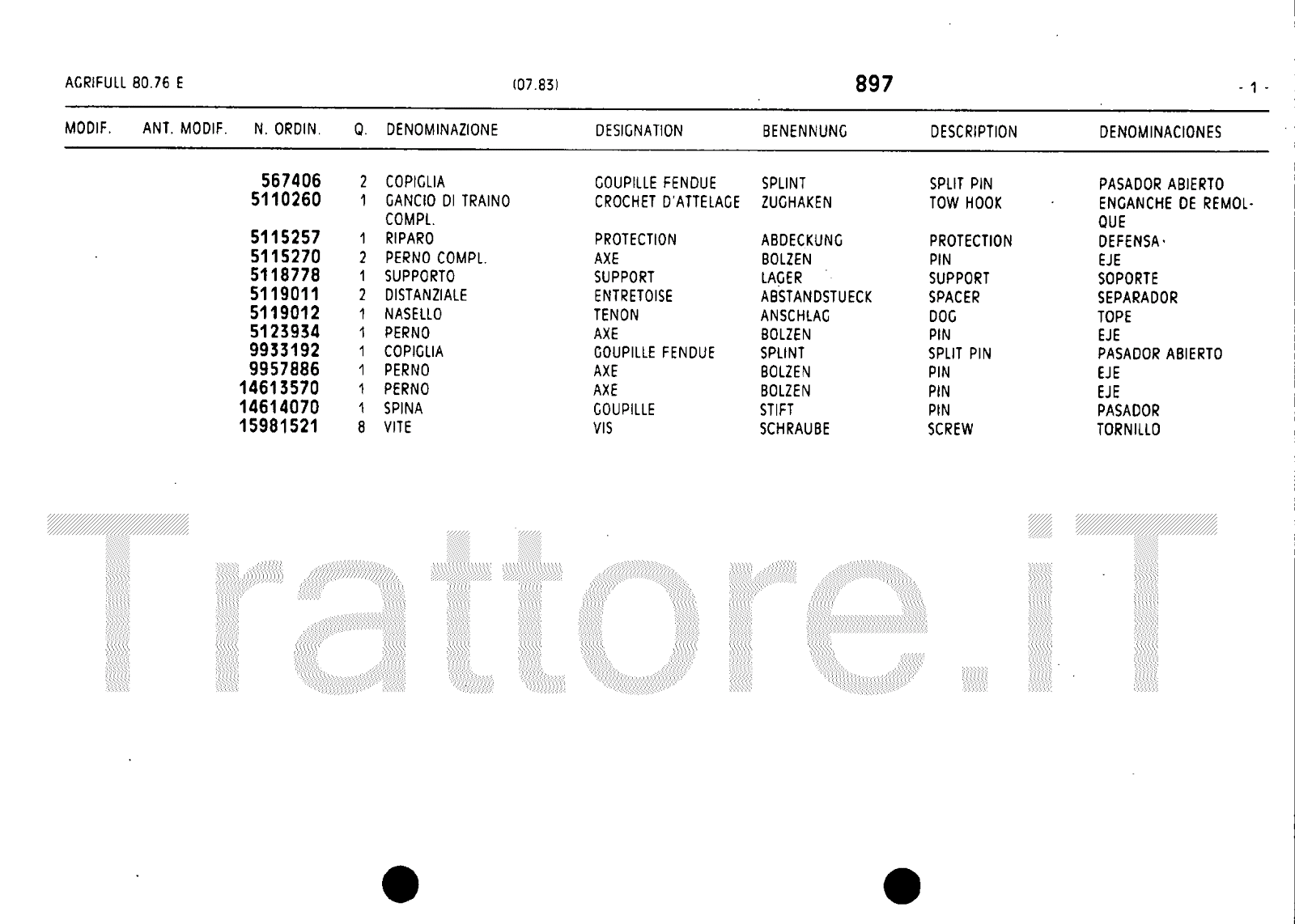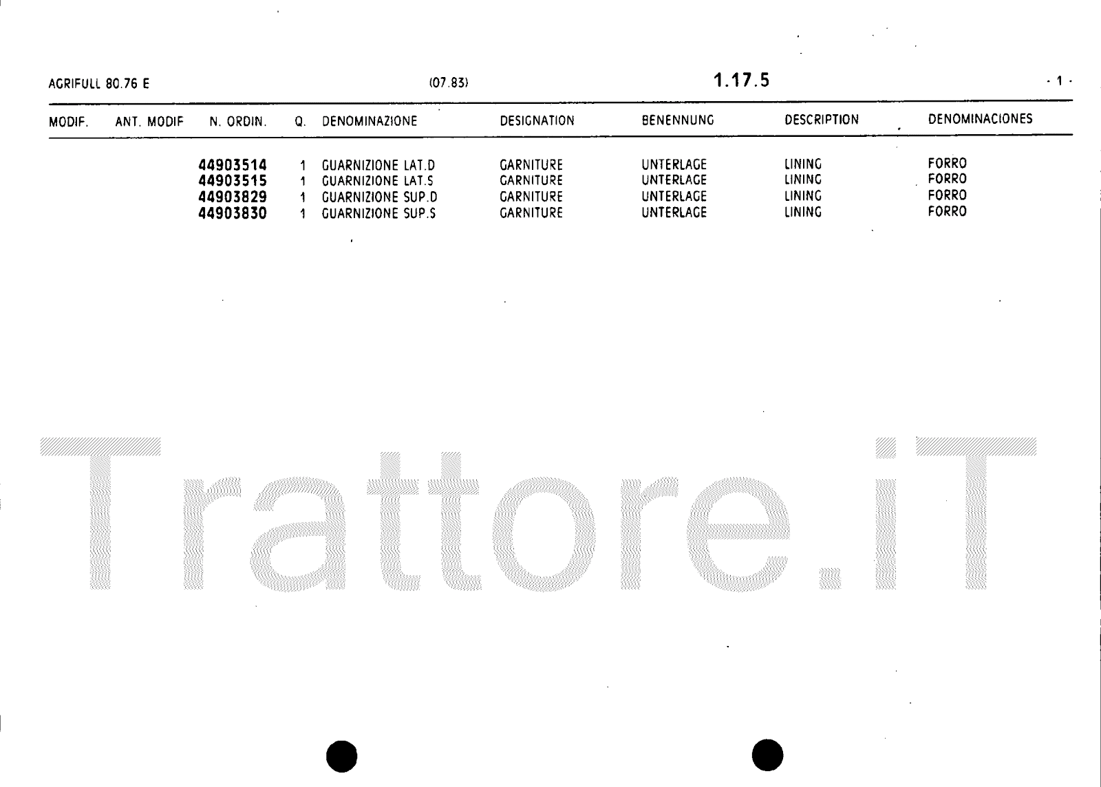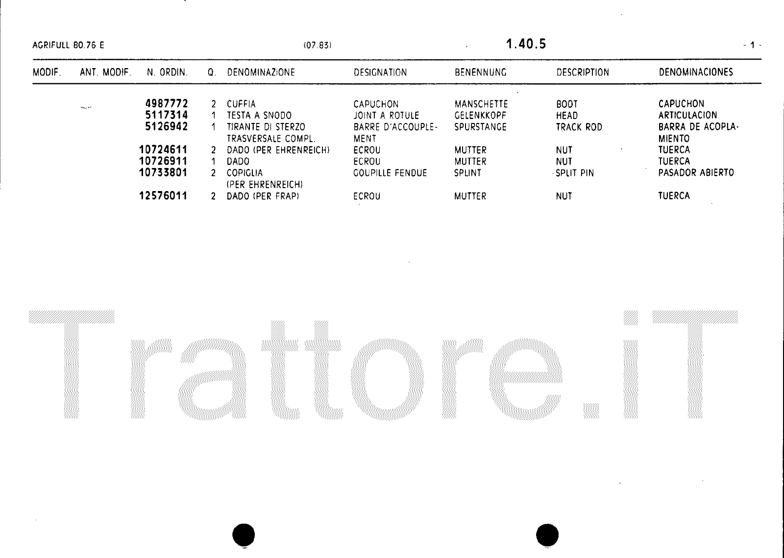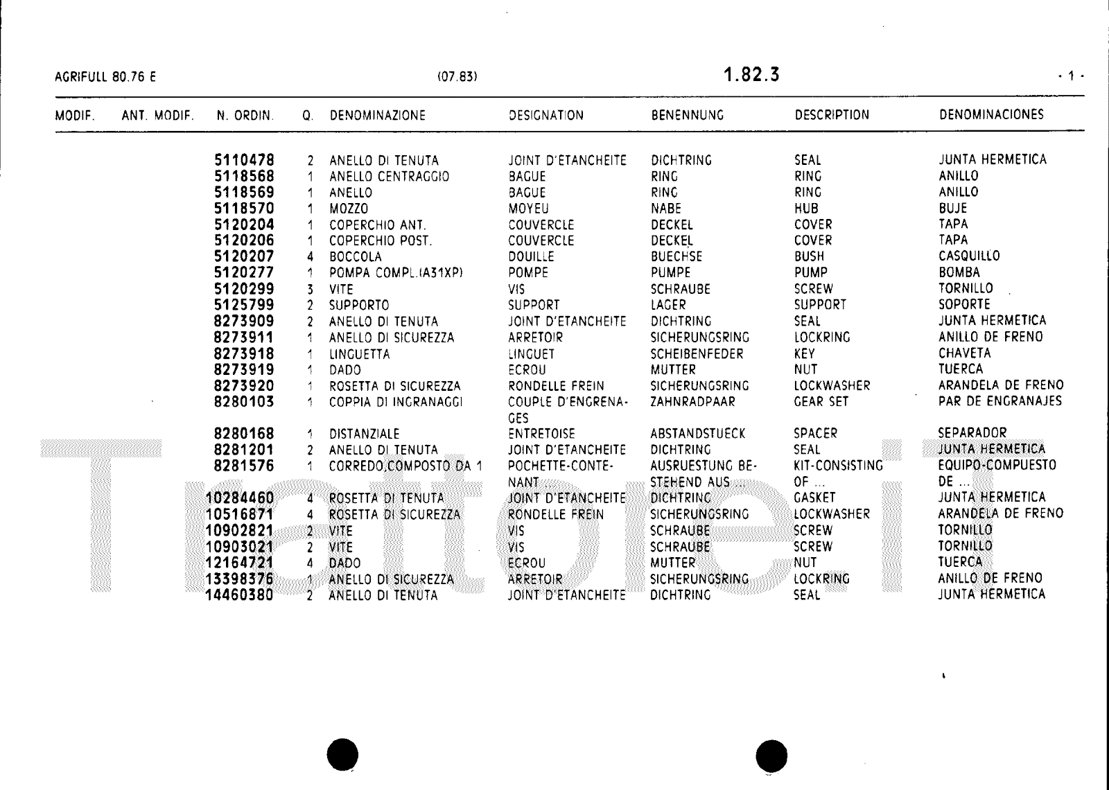 Manuale (esploso meccanico) trattore Agrifull serie 80-76E