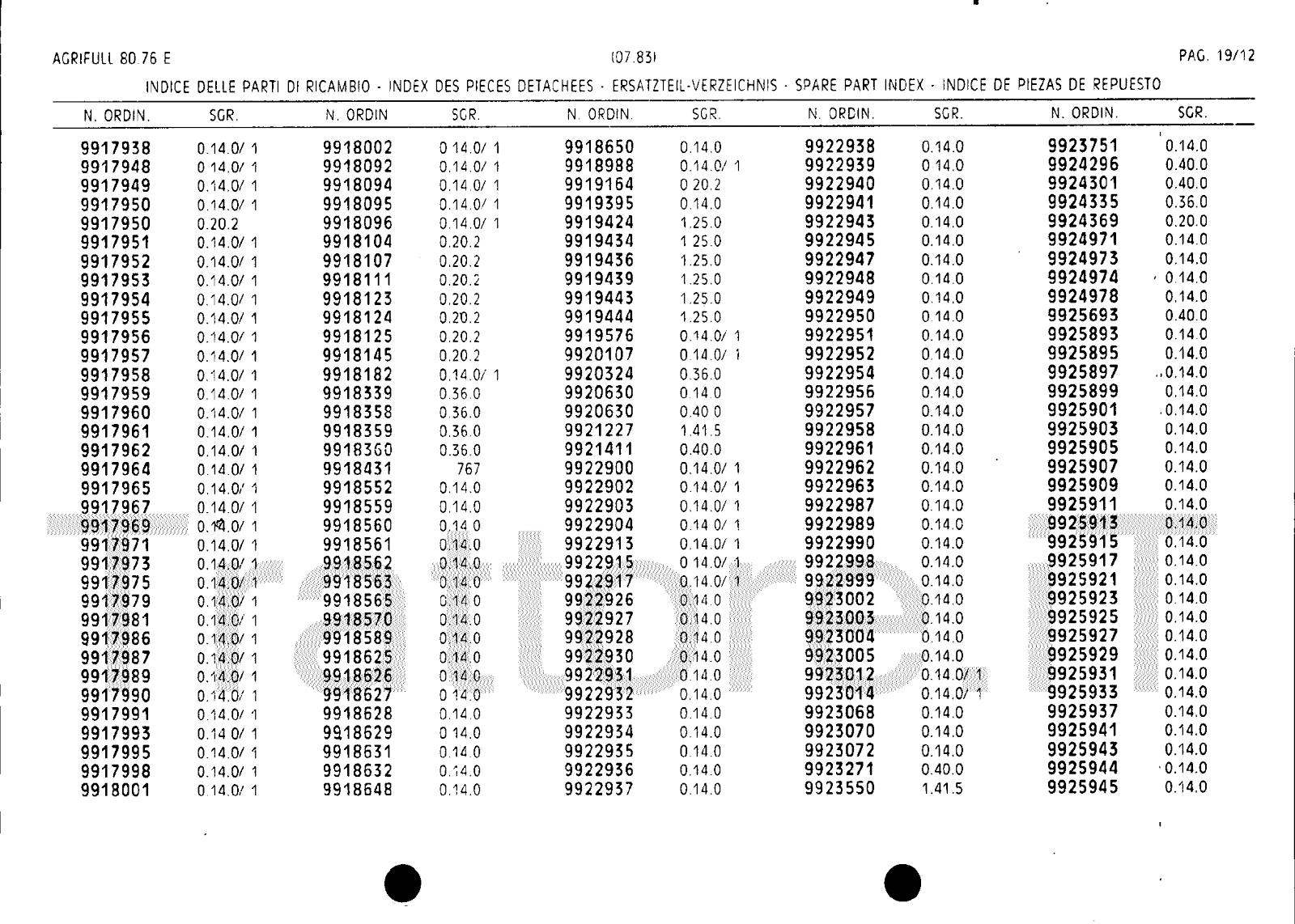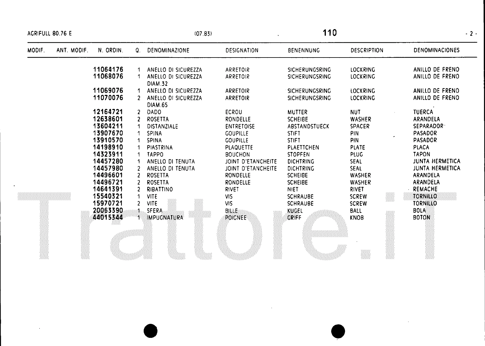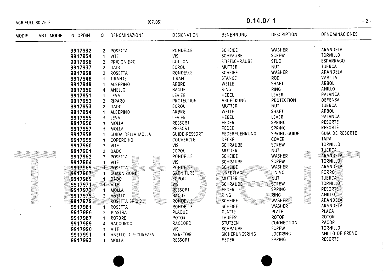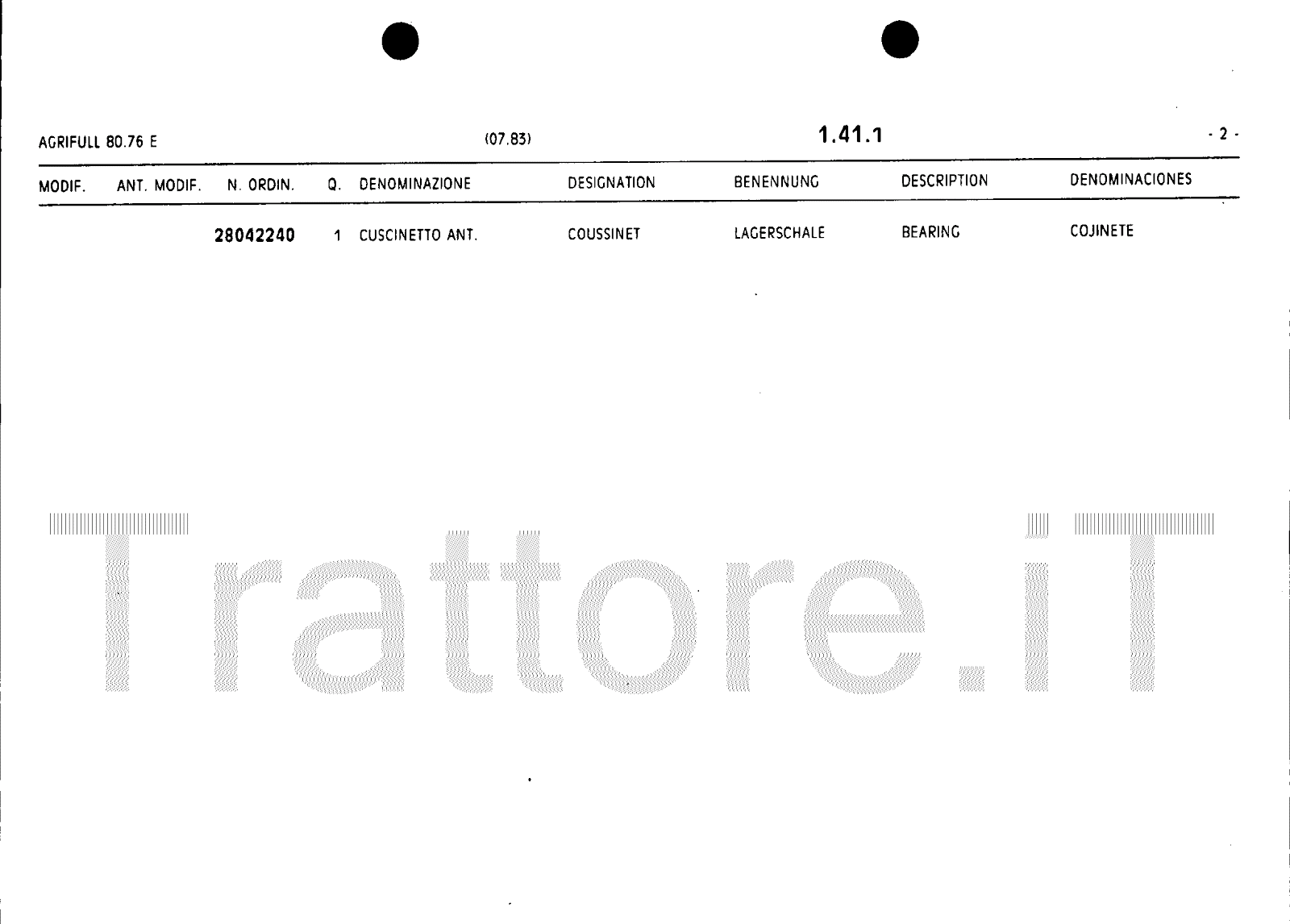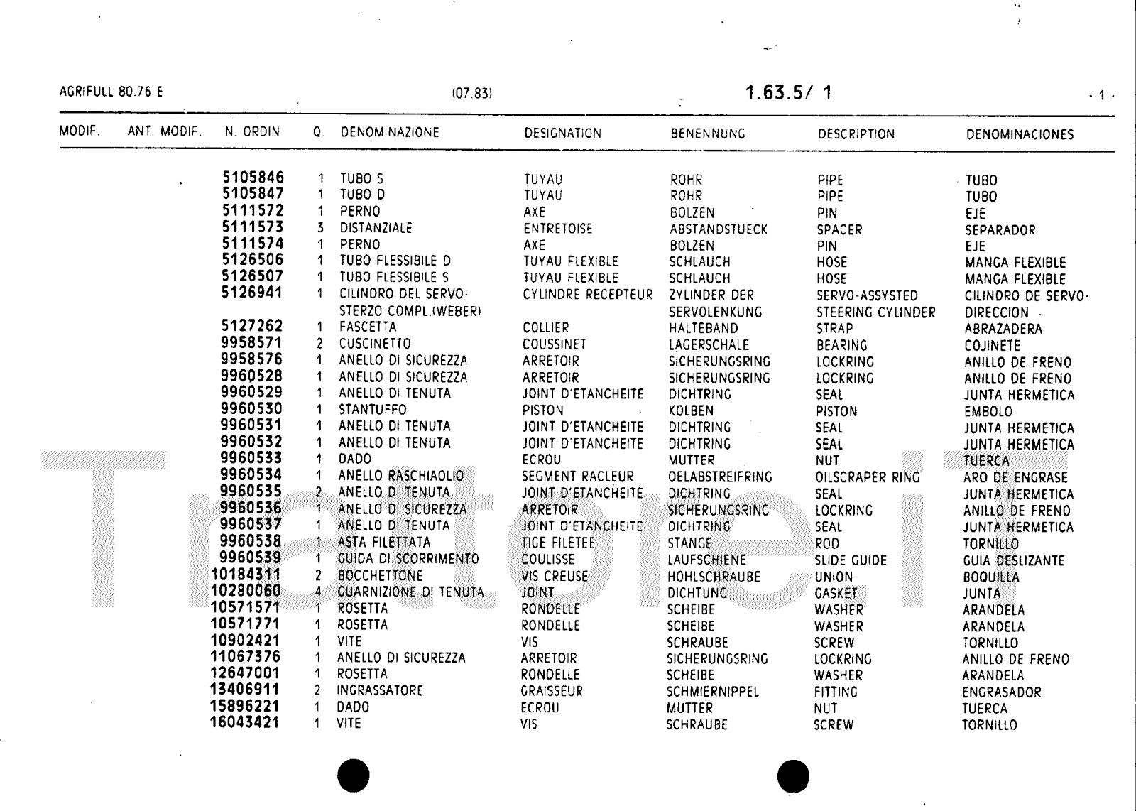 Manuale (esploso meccanico) trattore Agrifull serie 80-76E