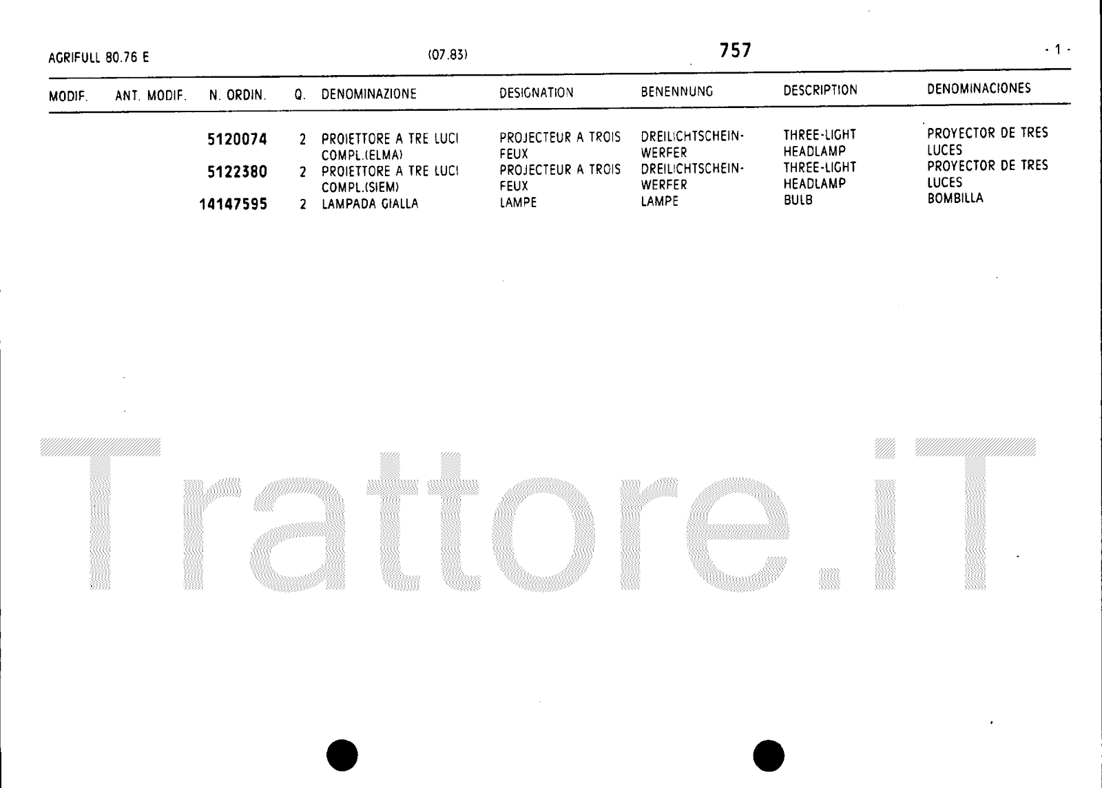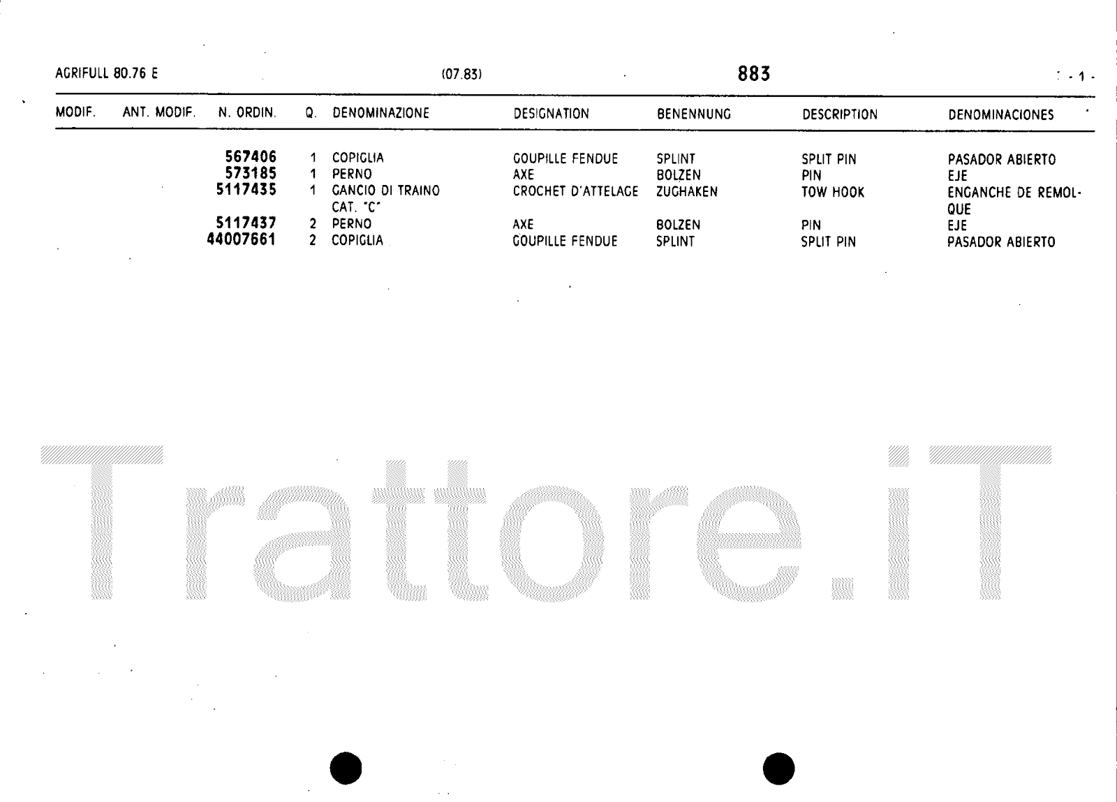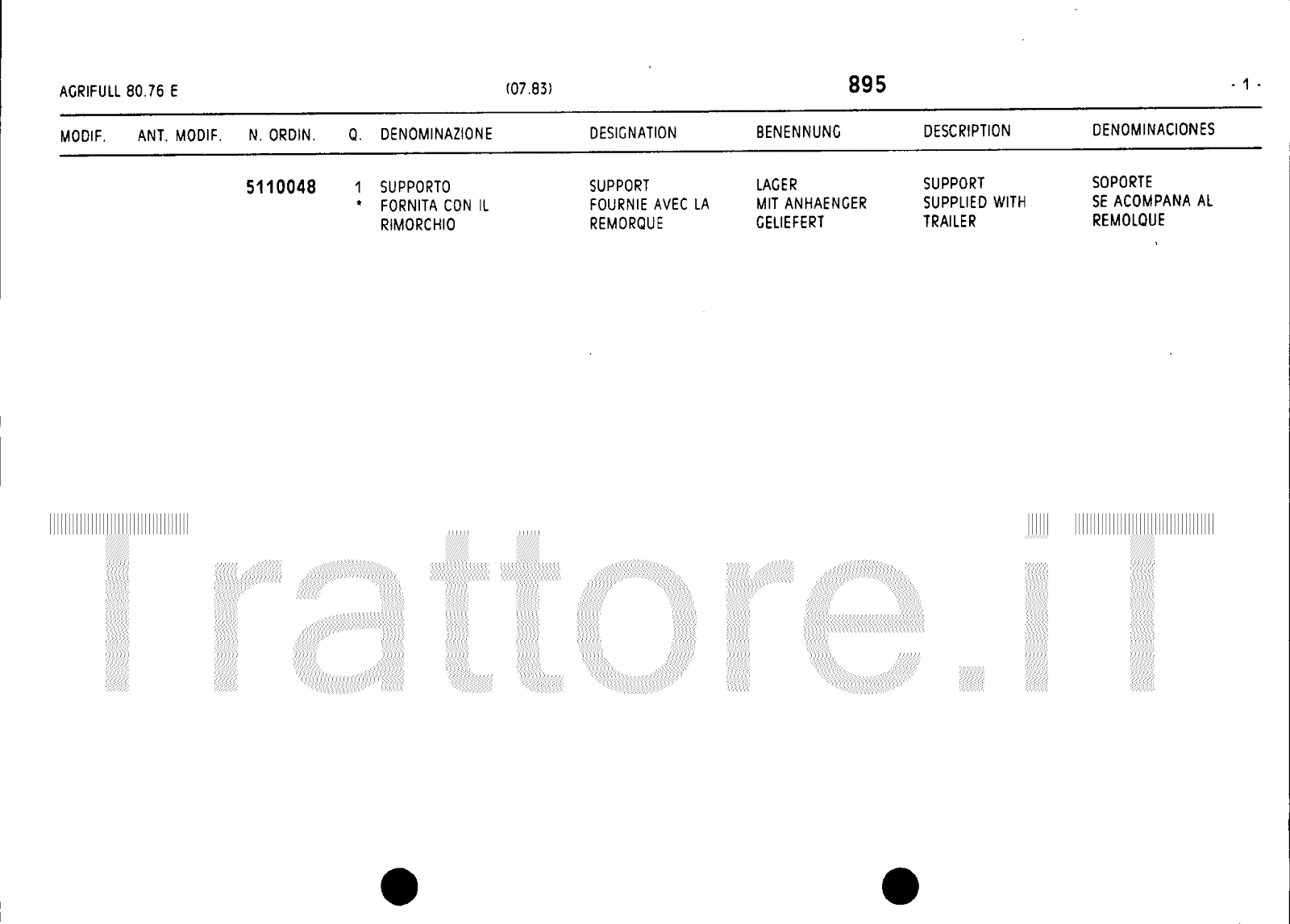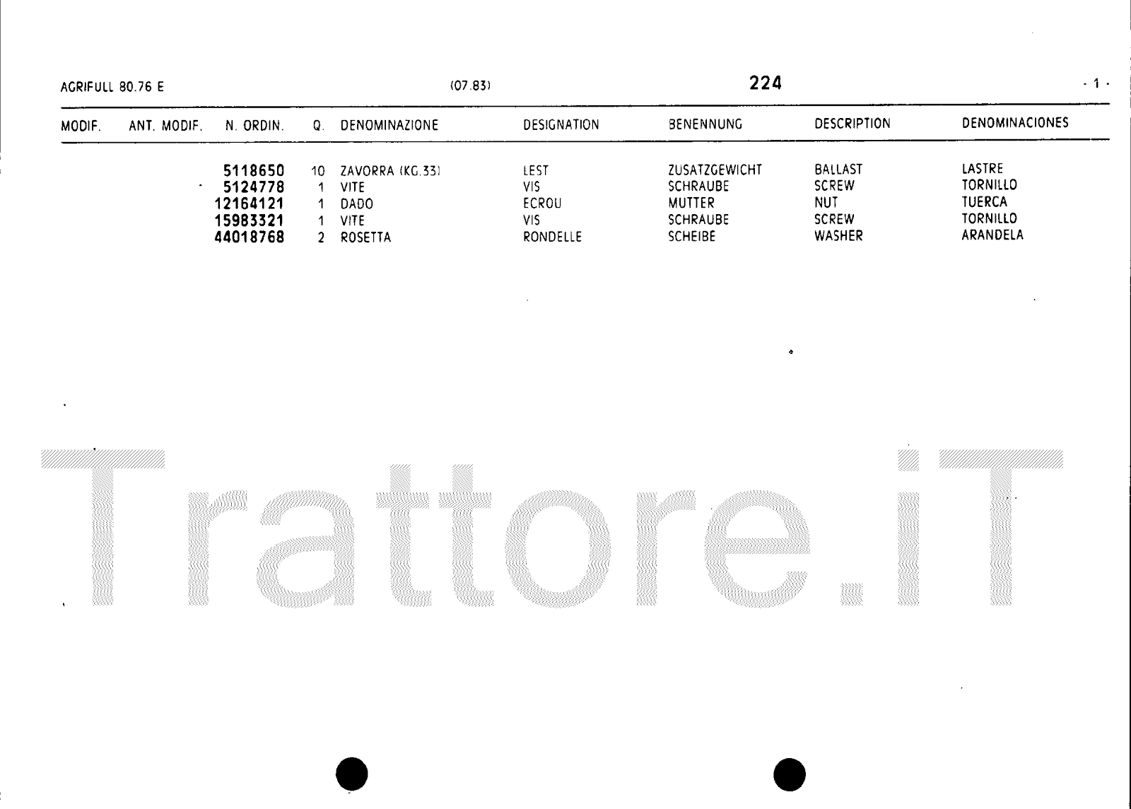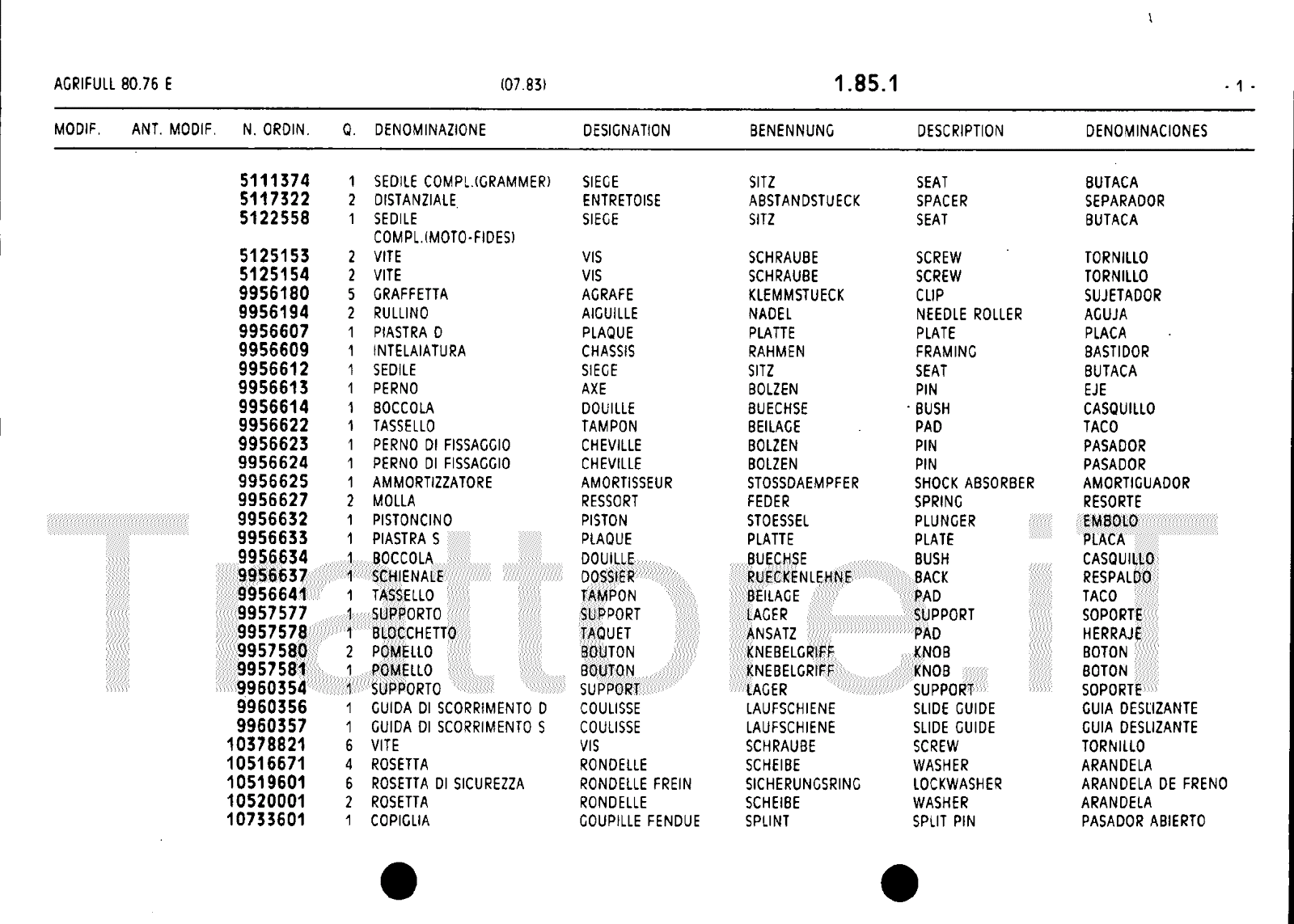 Manuale (esploso meccanico) trattore Agrifull serie 80-76E