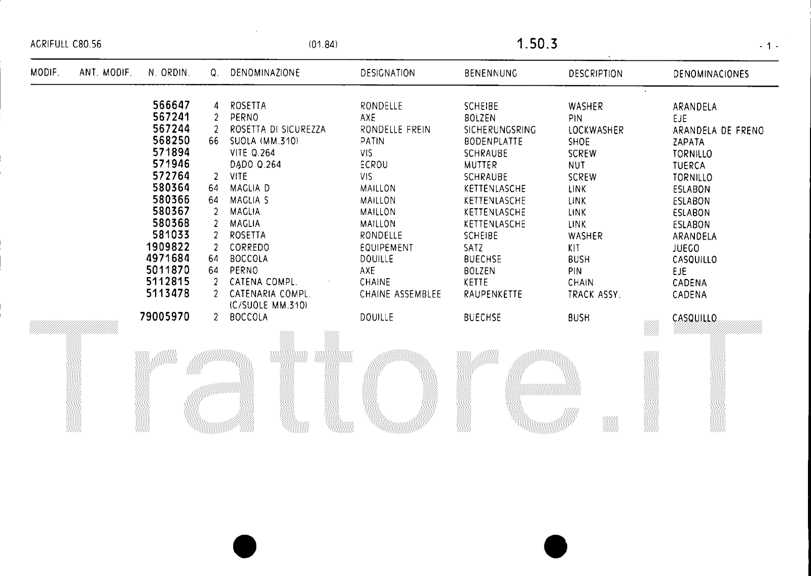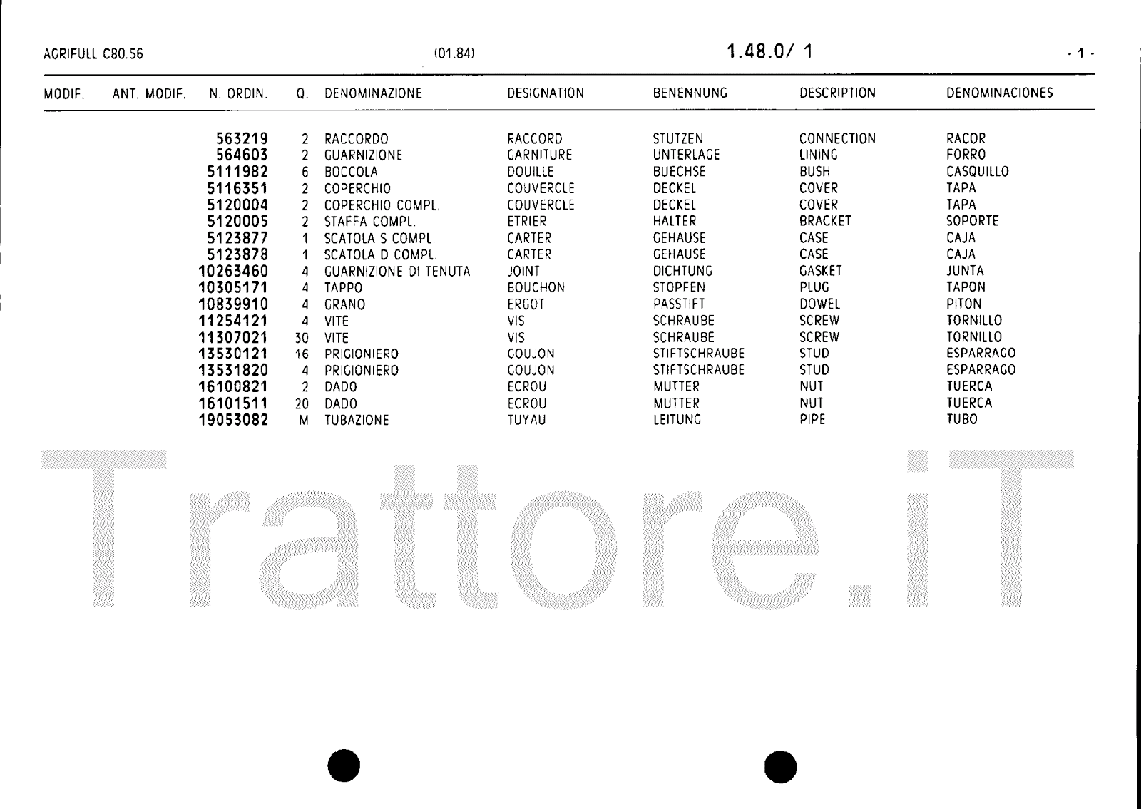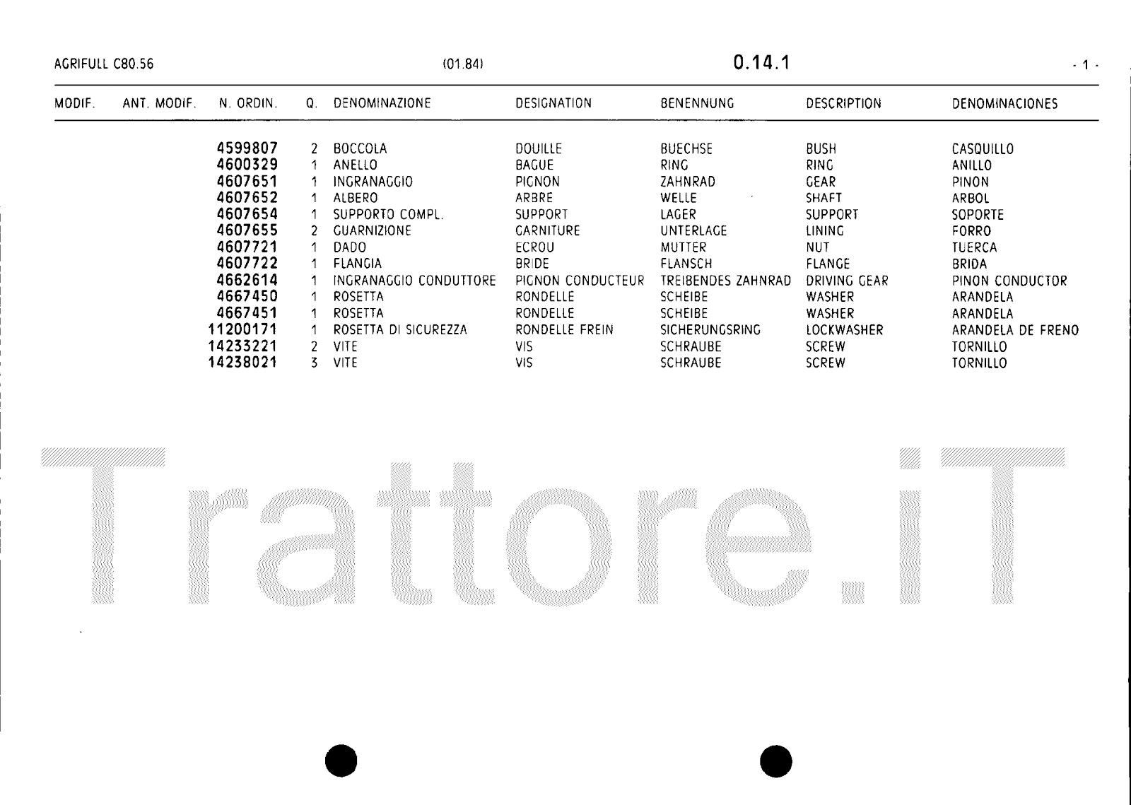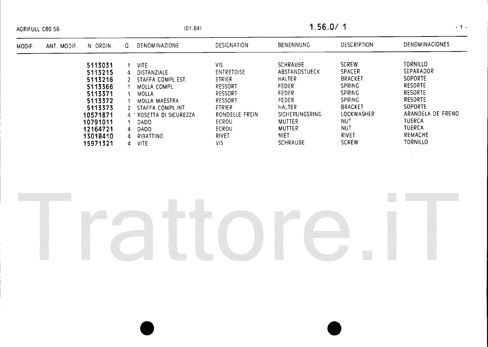 Manuale (esploso meccanico) trattore Agrifull serie C80-56