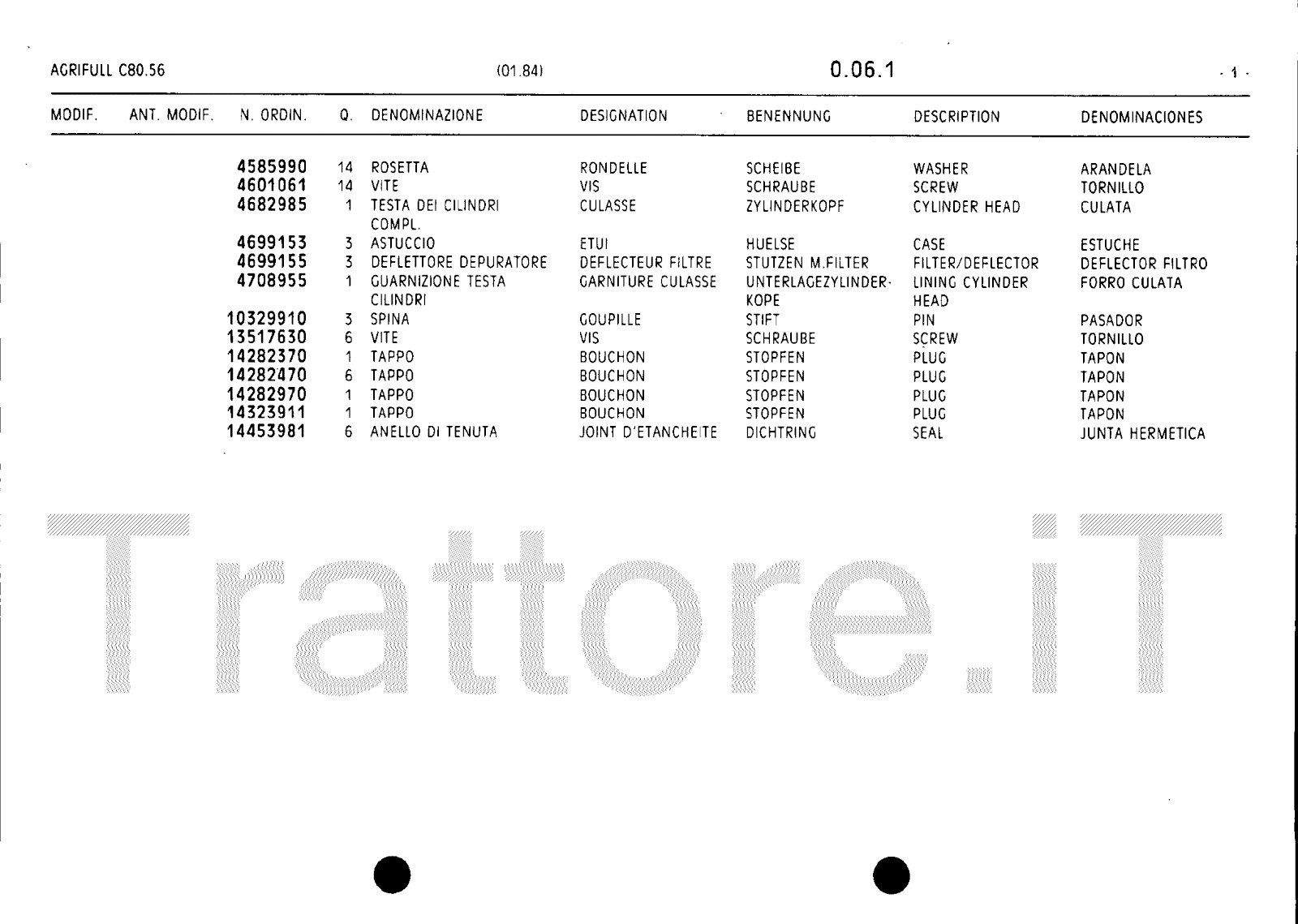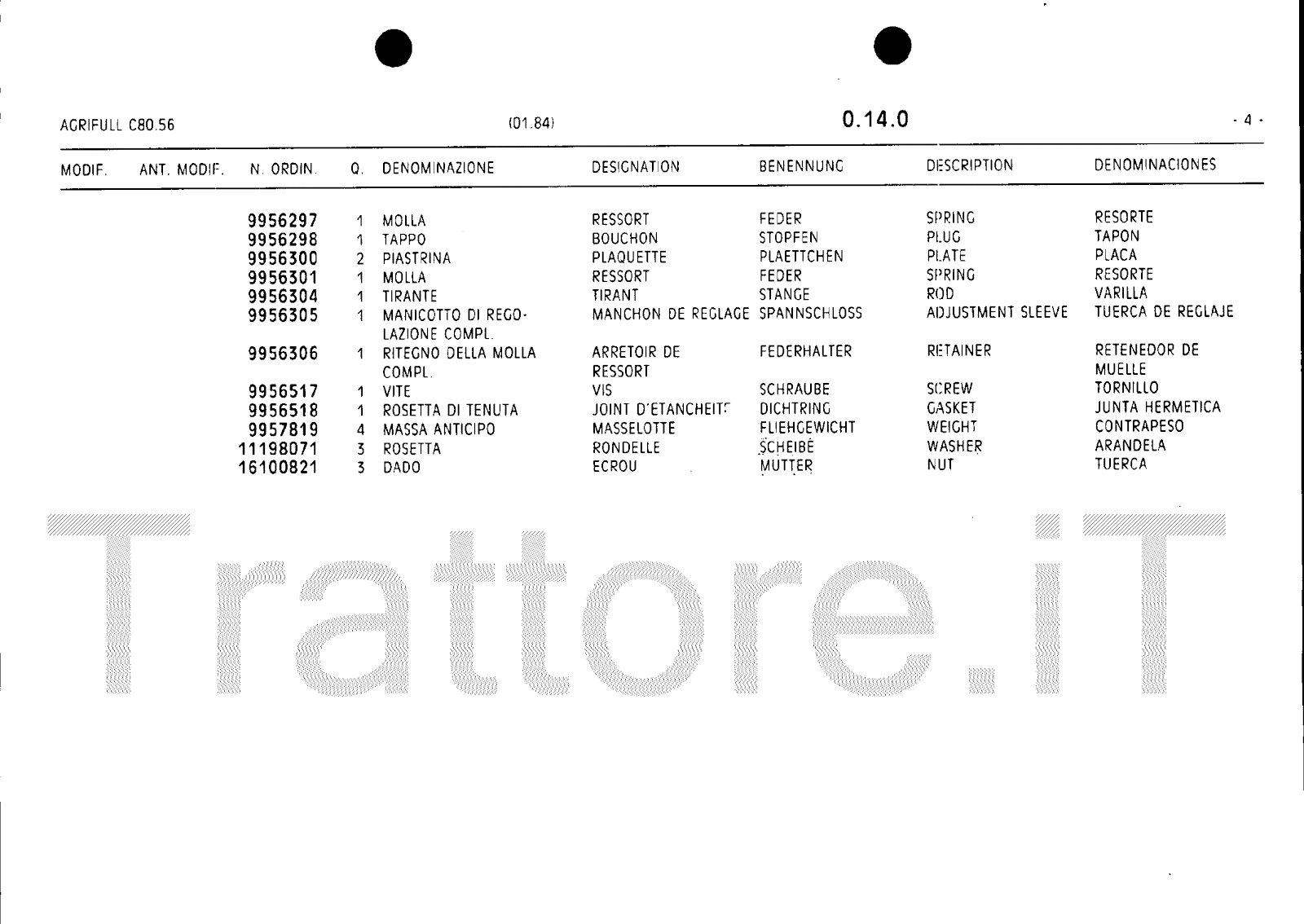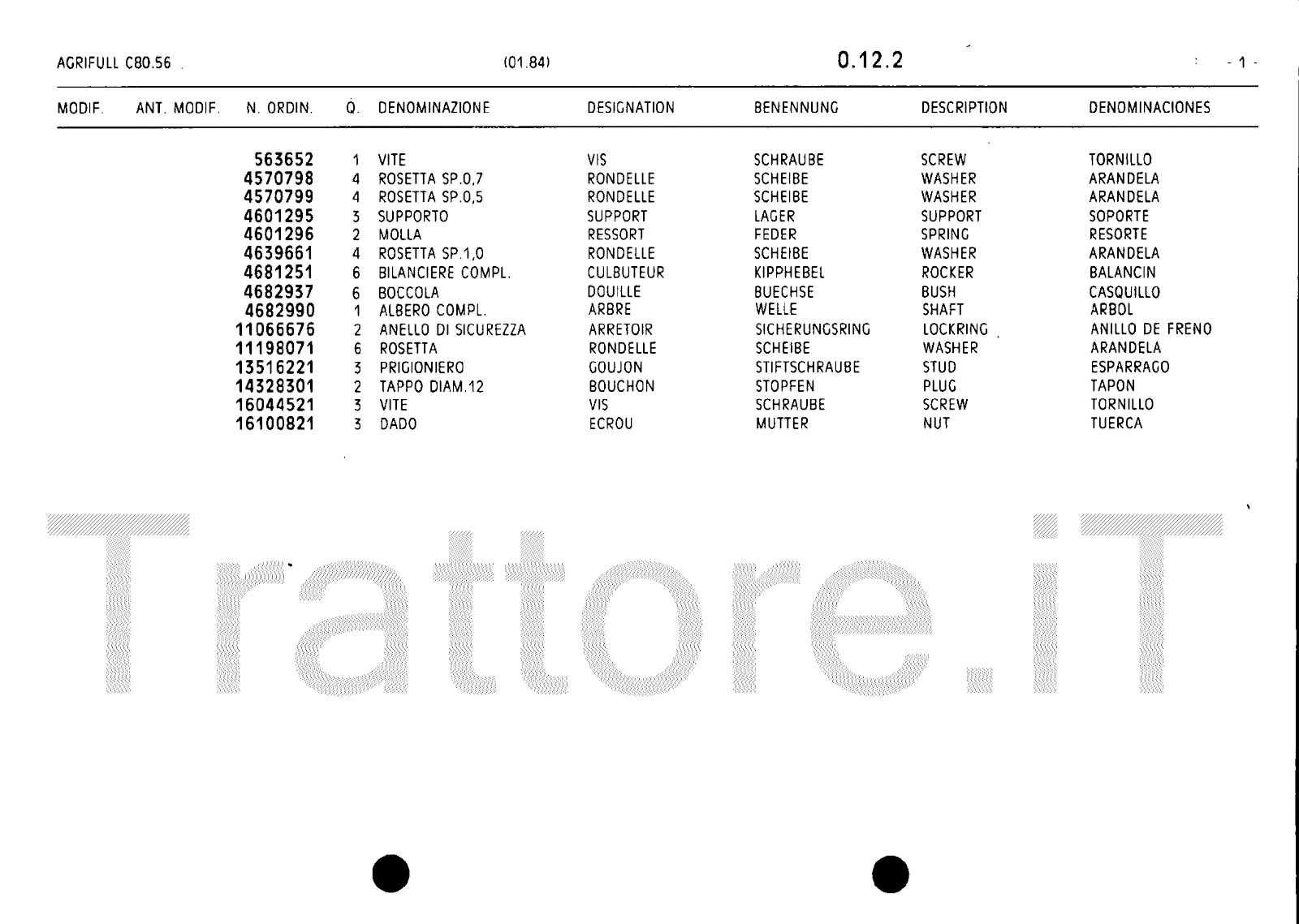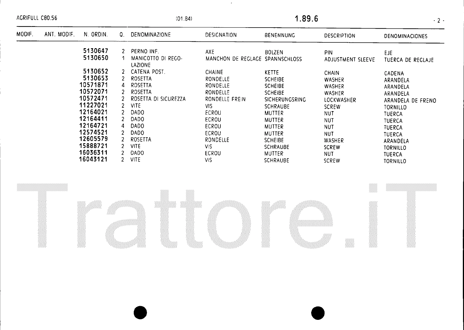 Manuale (esploso meccanico) trattore Agrifull serie C80-56