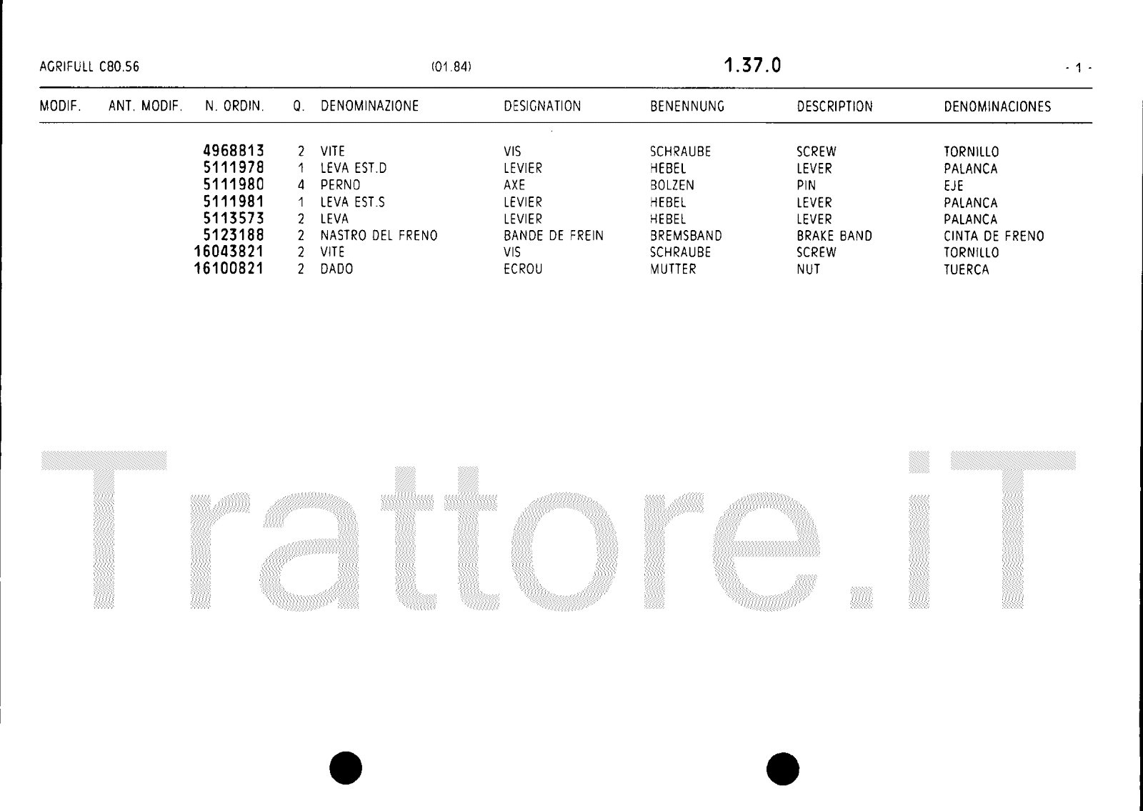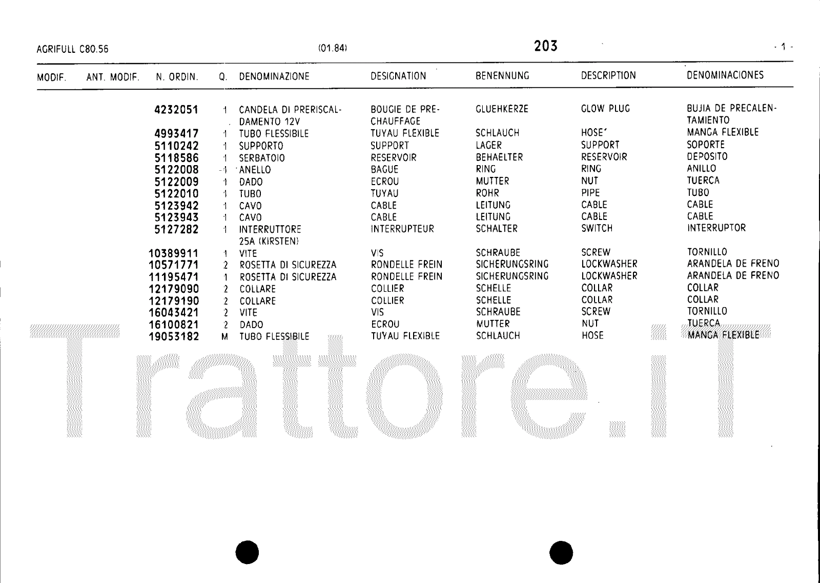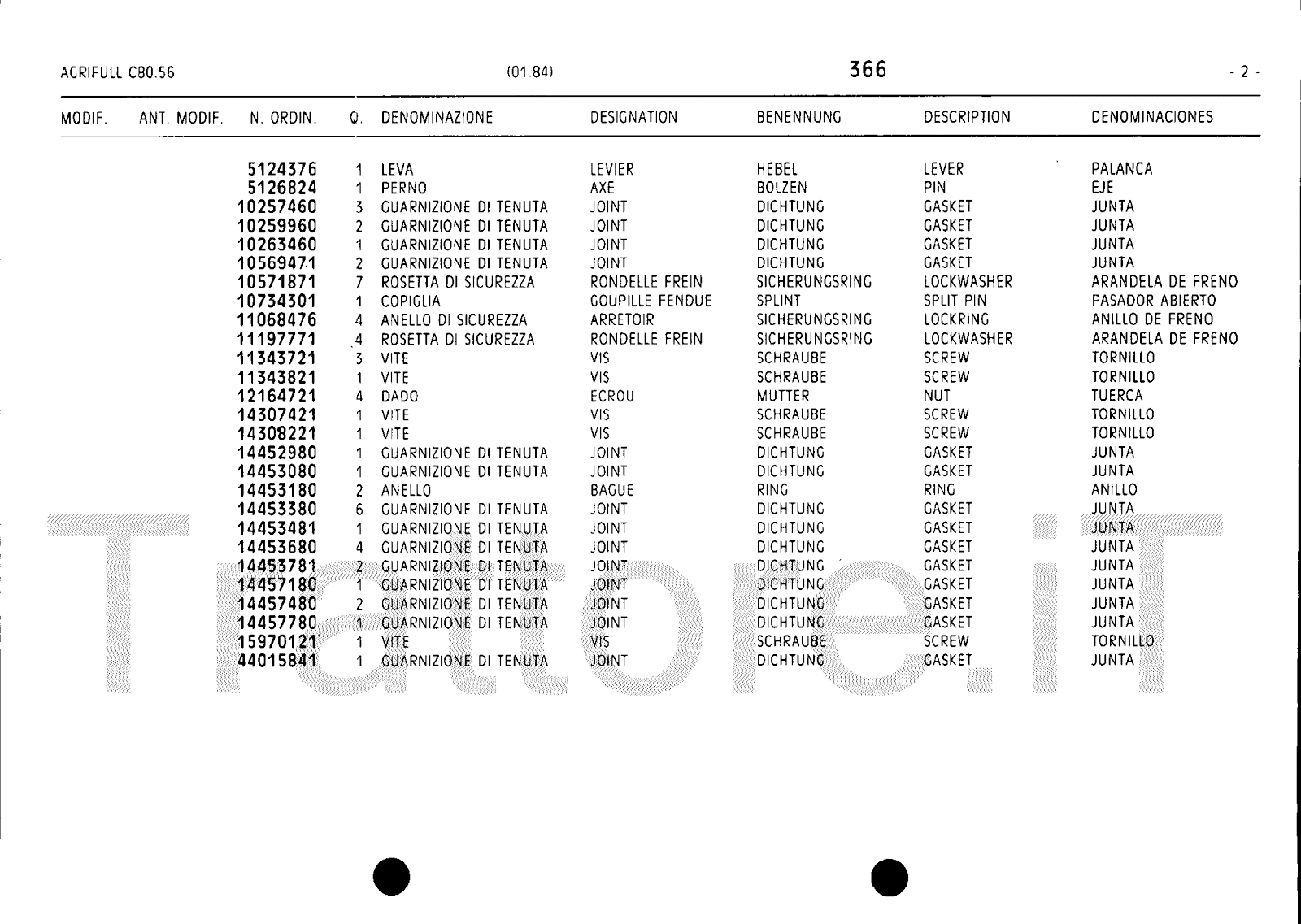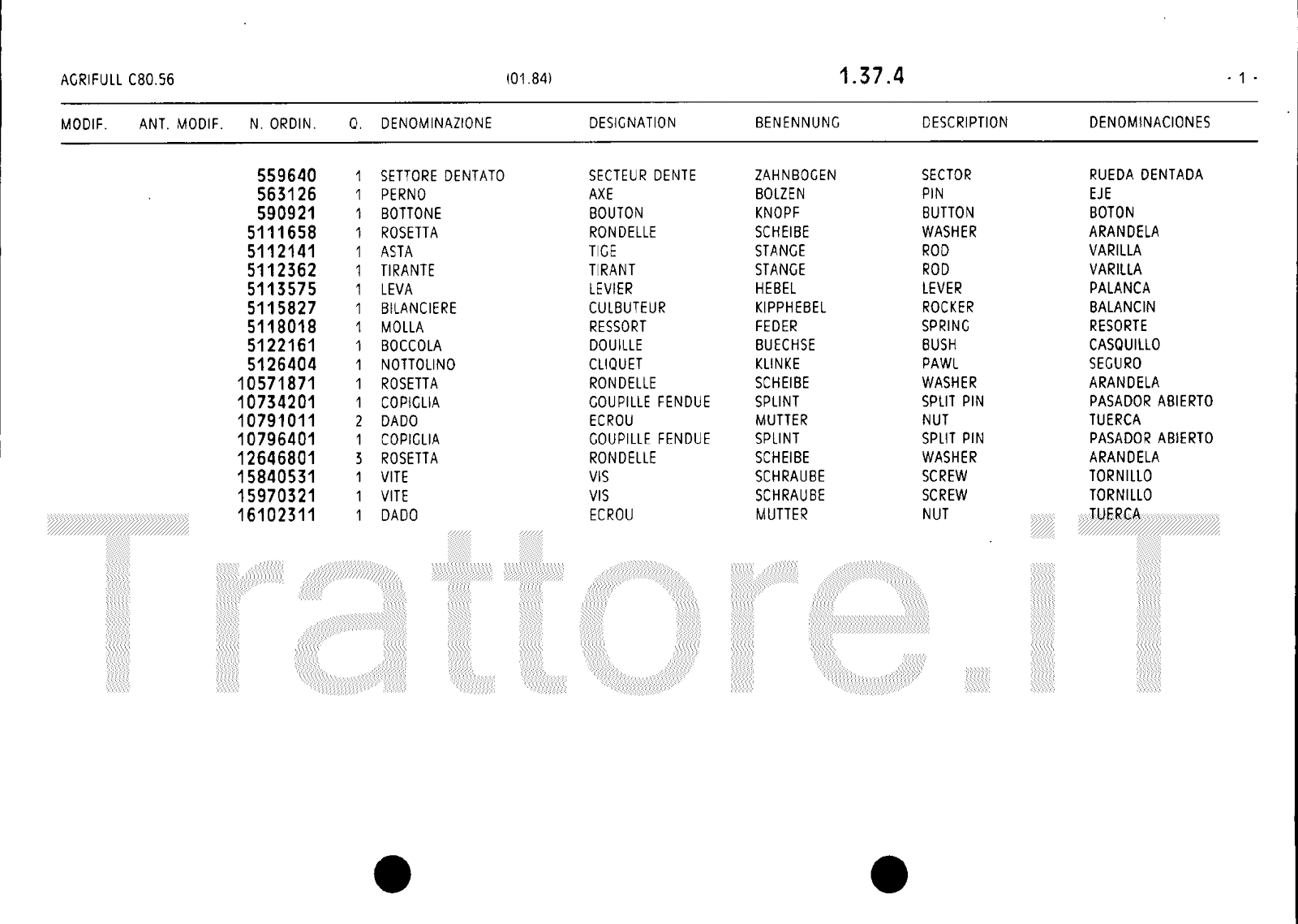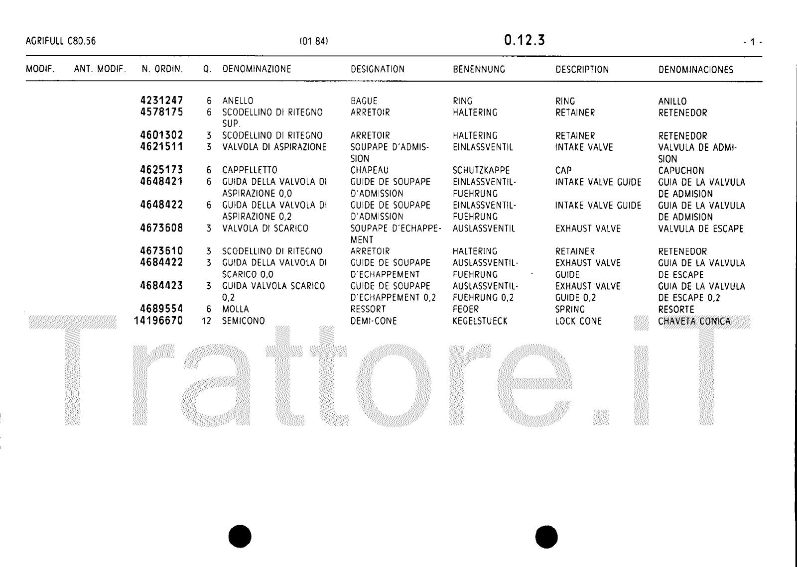 Manuale (esploso meccanico) trattore Agrifull serie C80-56