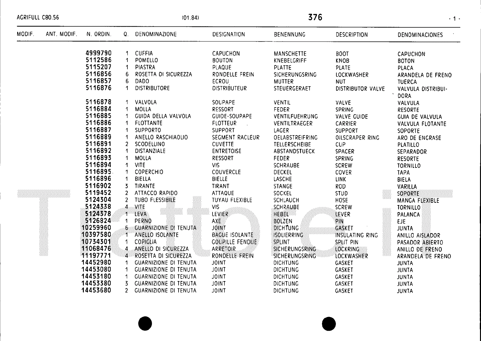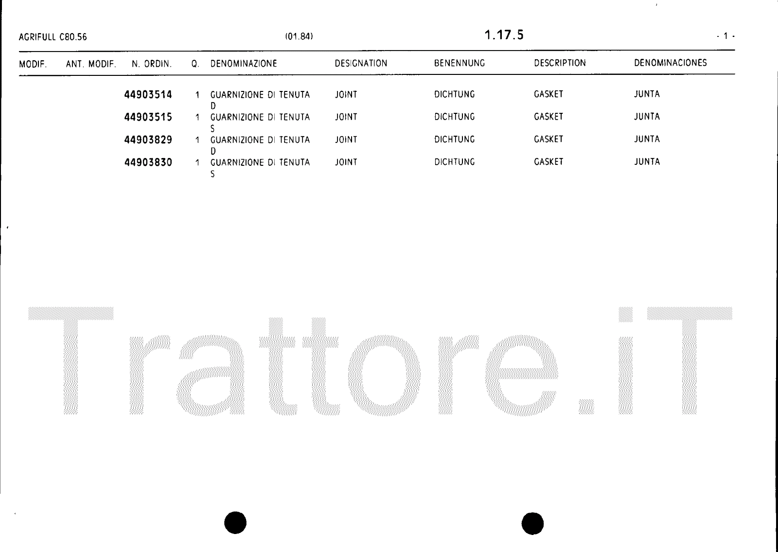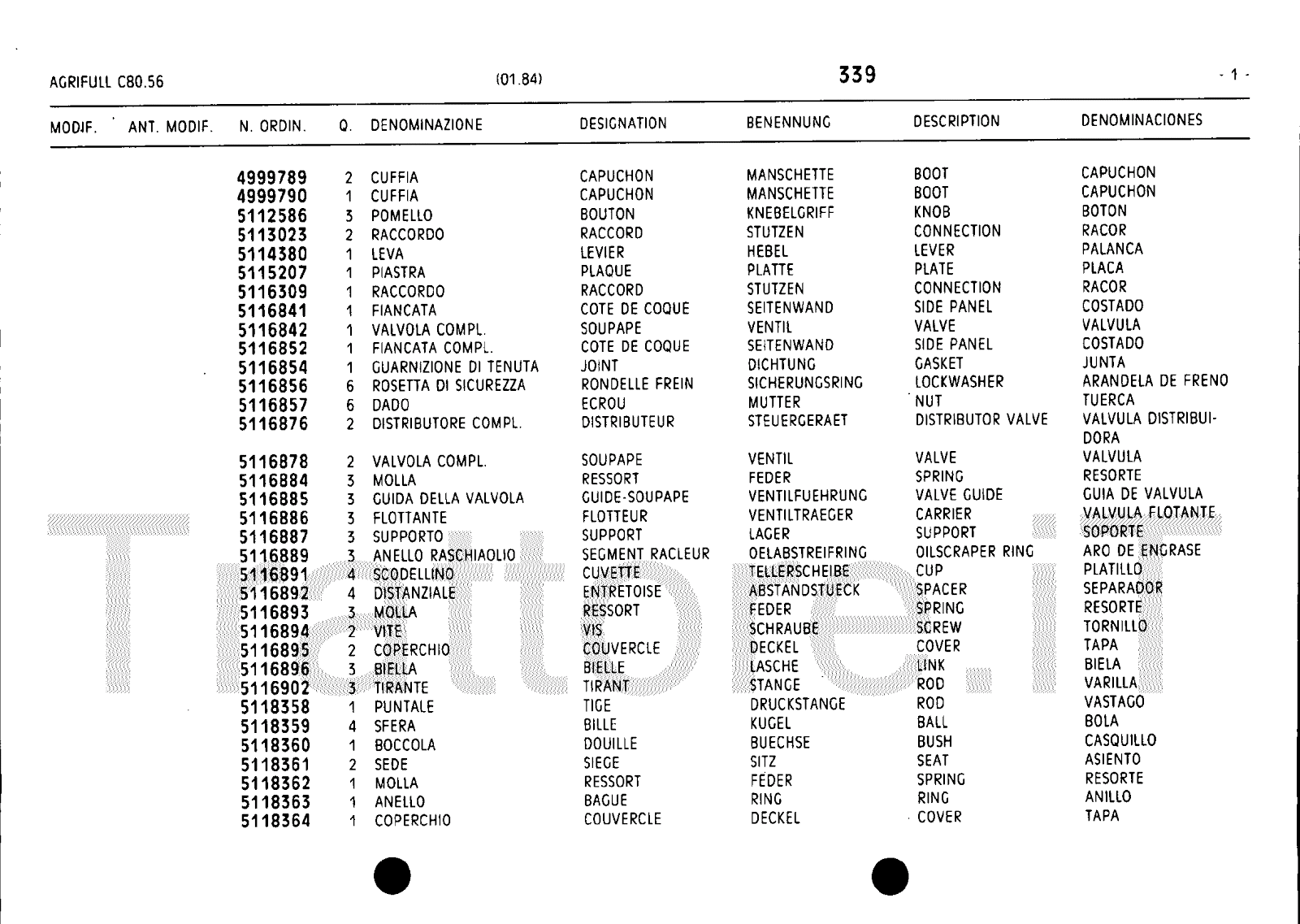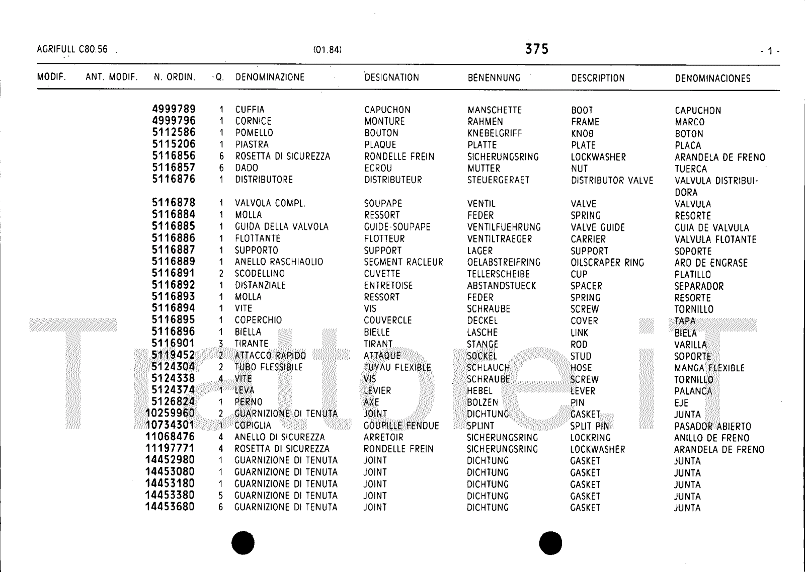 Manuale (esploso meccanico) trattore Agrifull serie C80-56