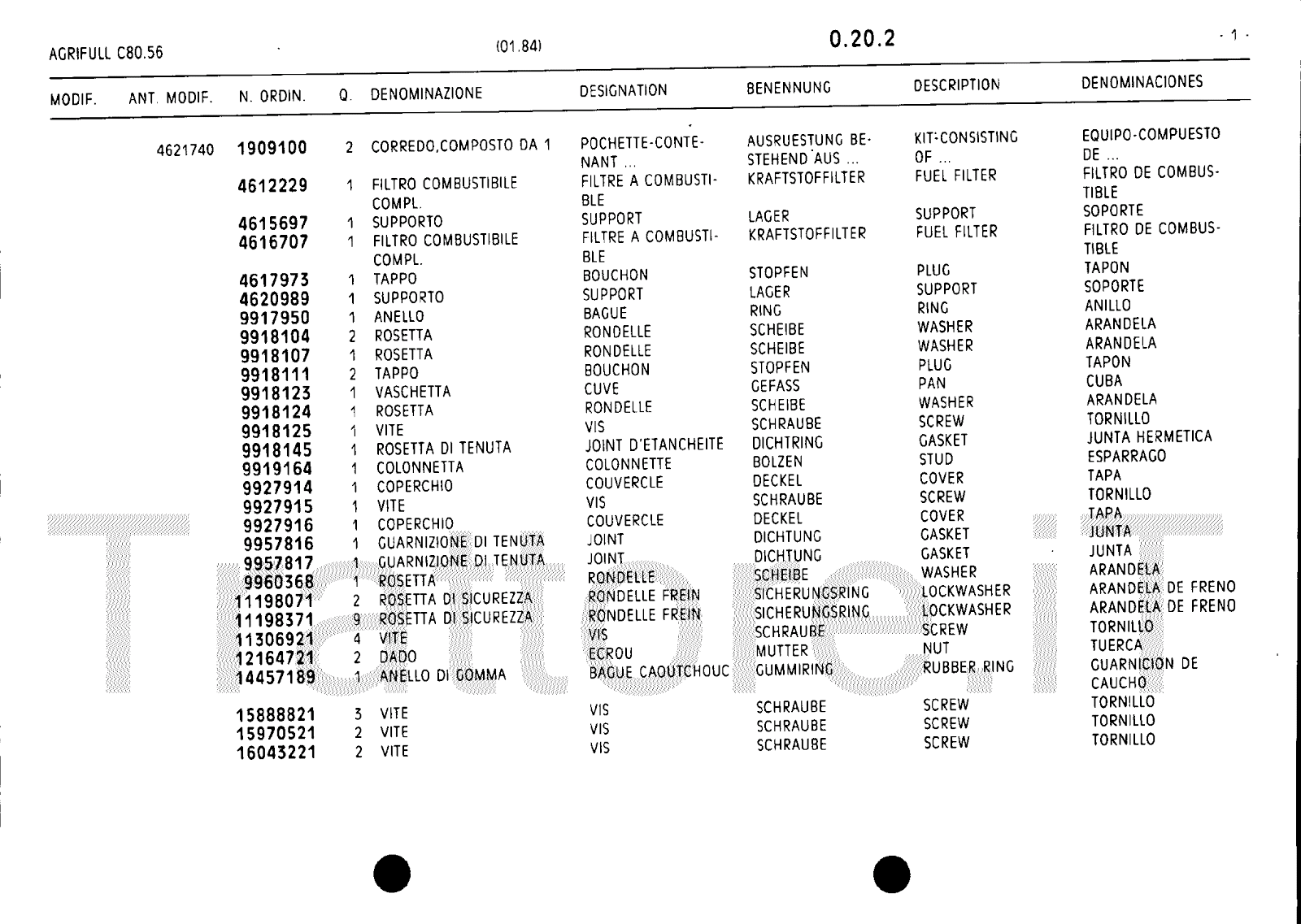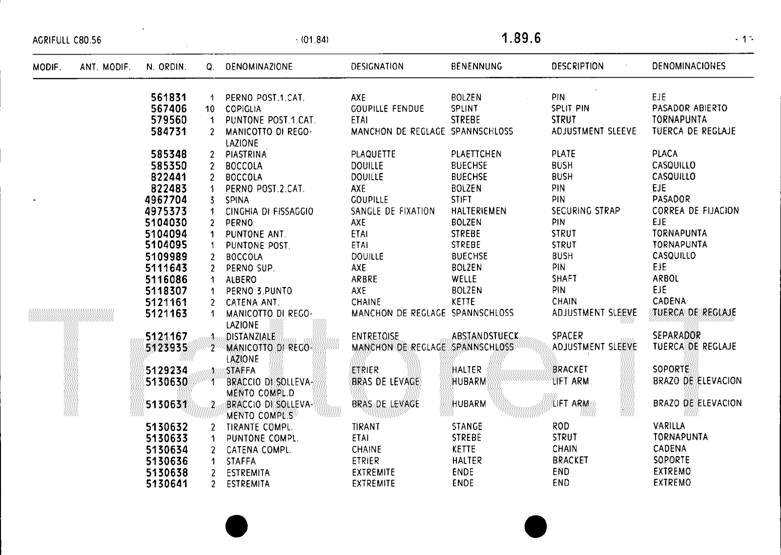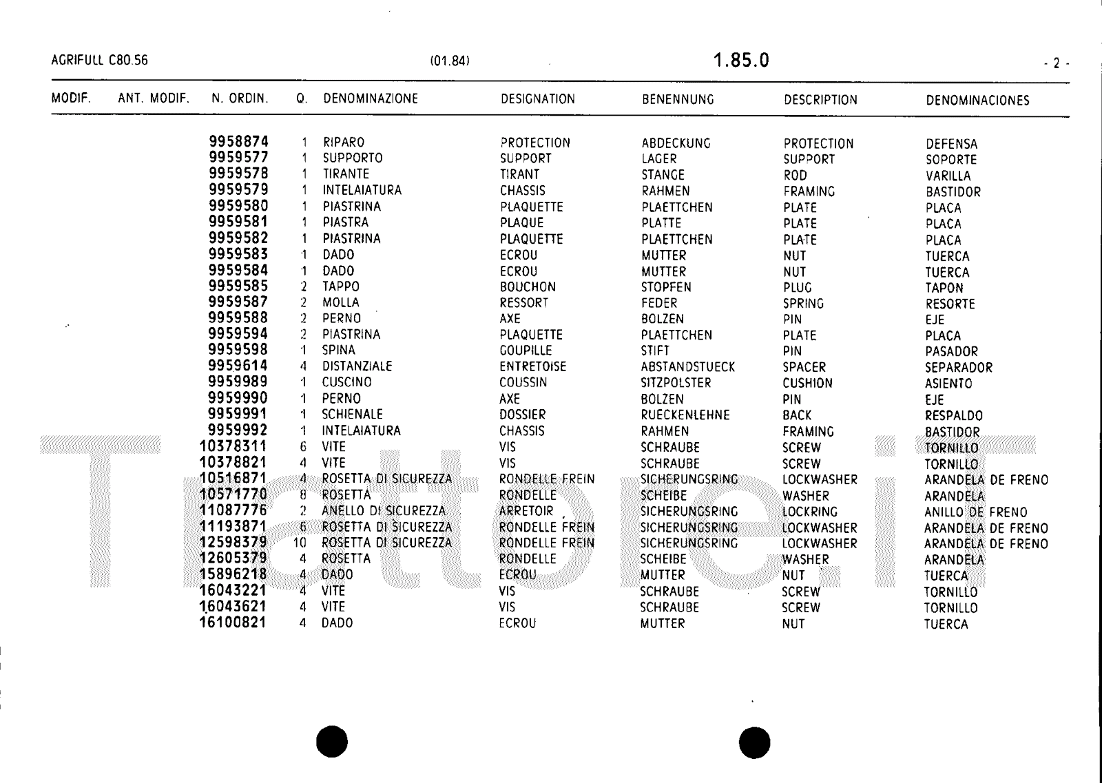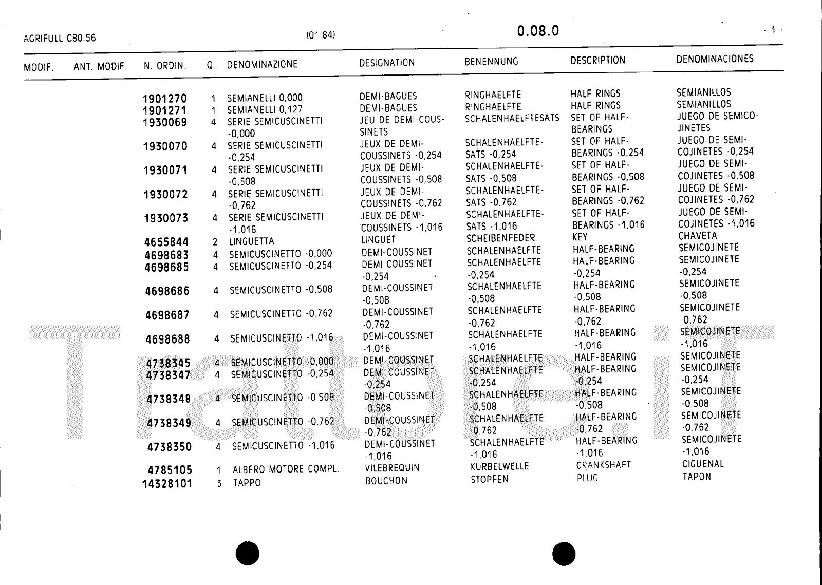 Manuale (esploso meccanico) trattore Agrifull serie C80-56