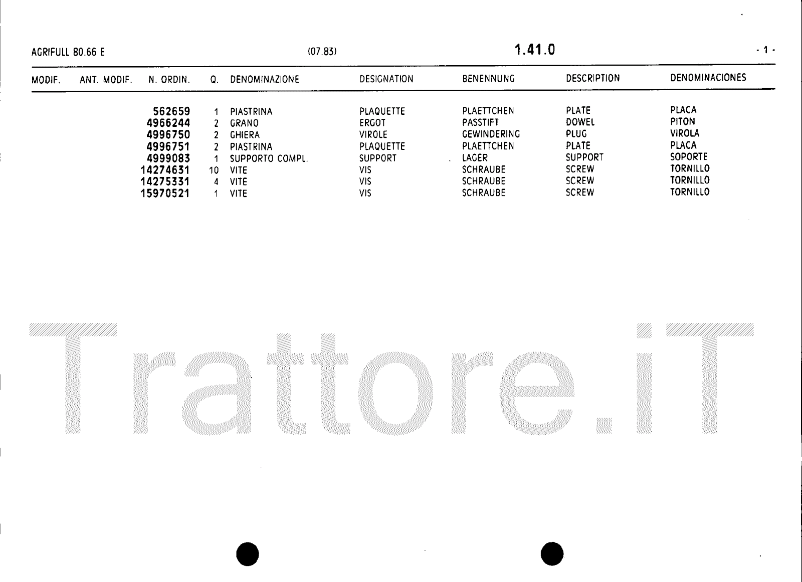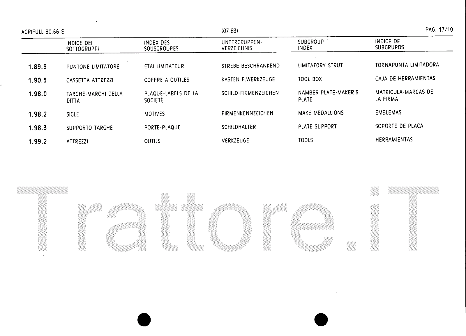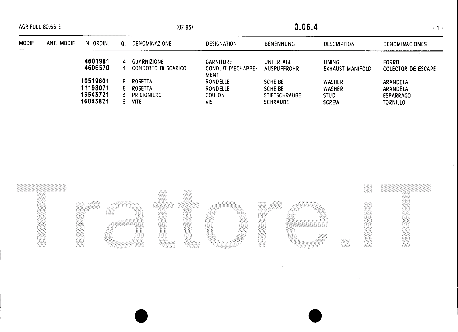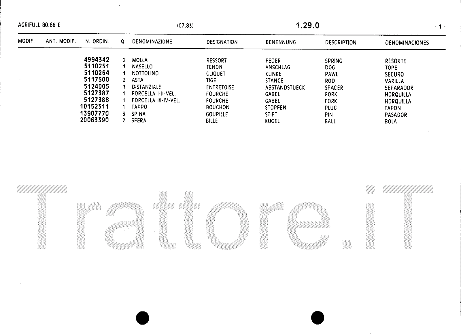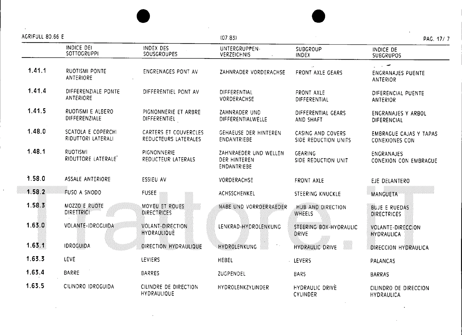 Manuale (esploso meccanico) trattore Agrifull serie 80-66E