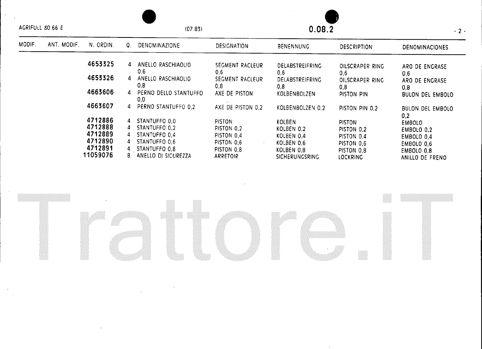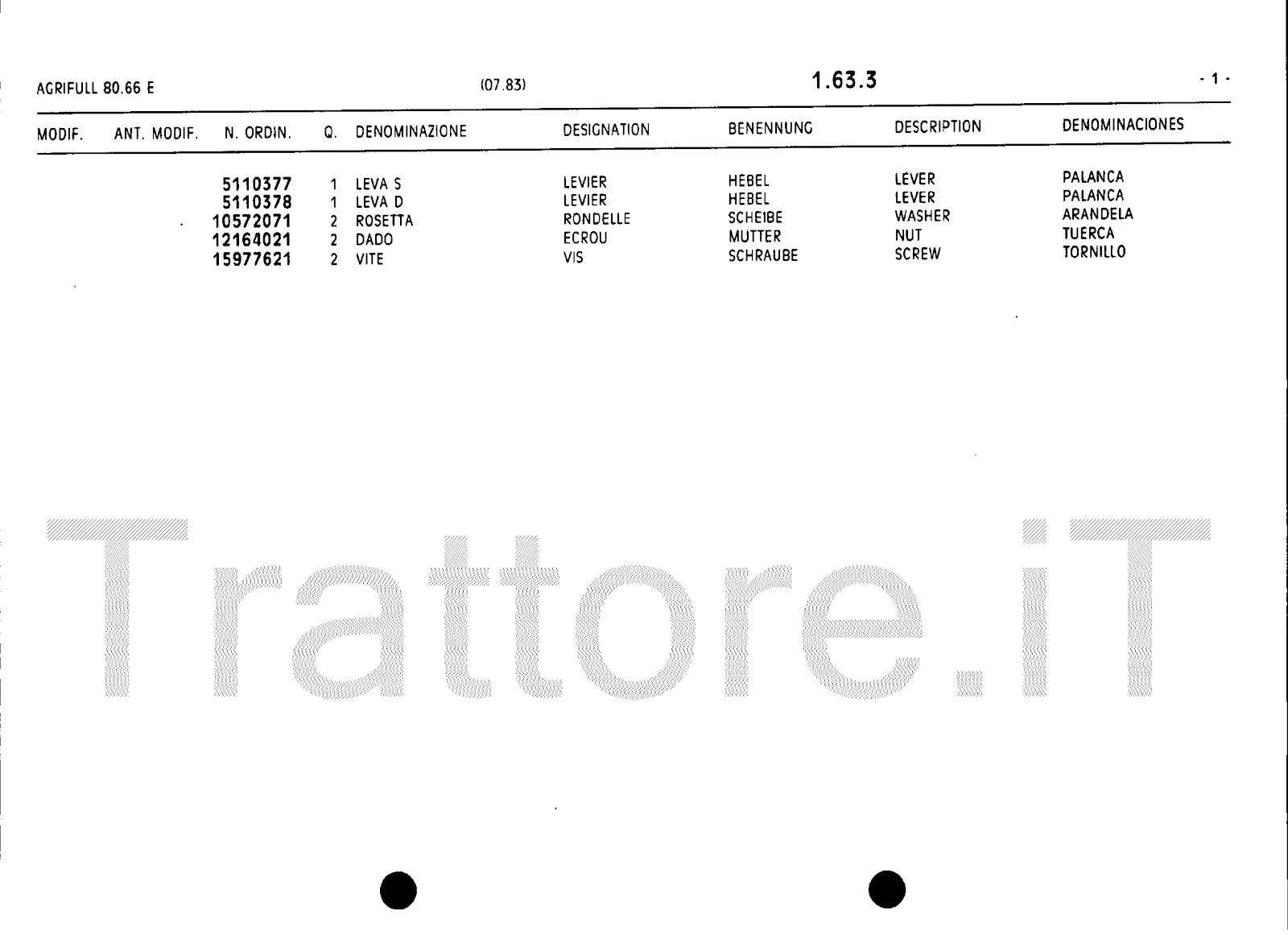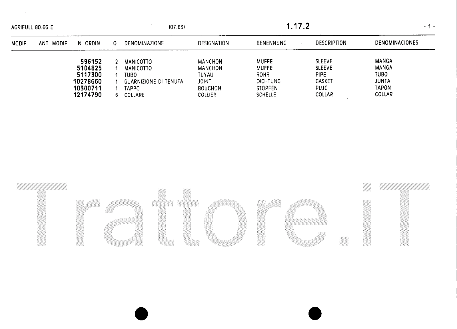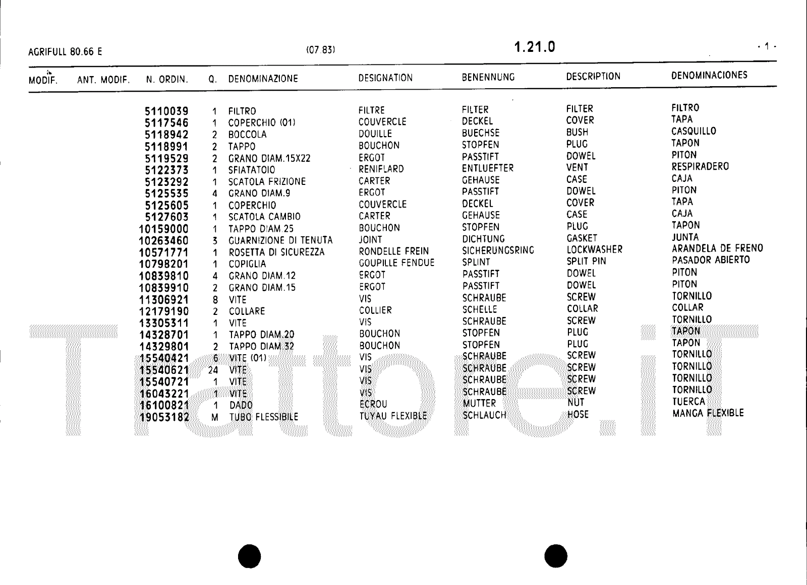 Manuale (esploso meccanico) trattore Agrifull serie 80-66E