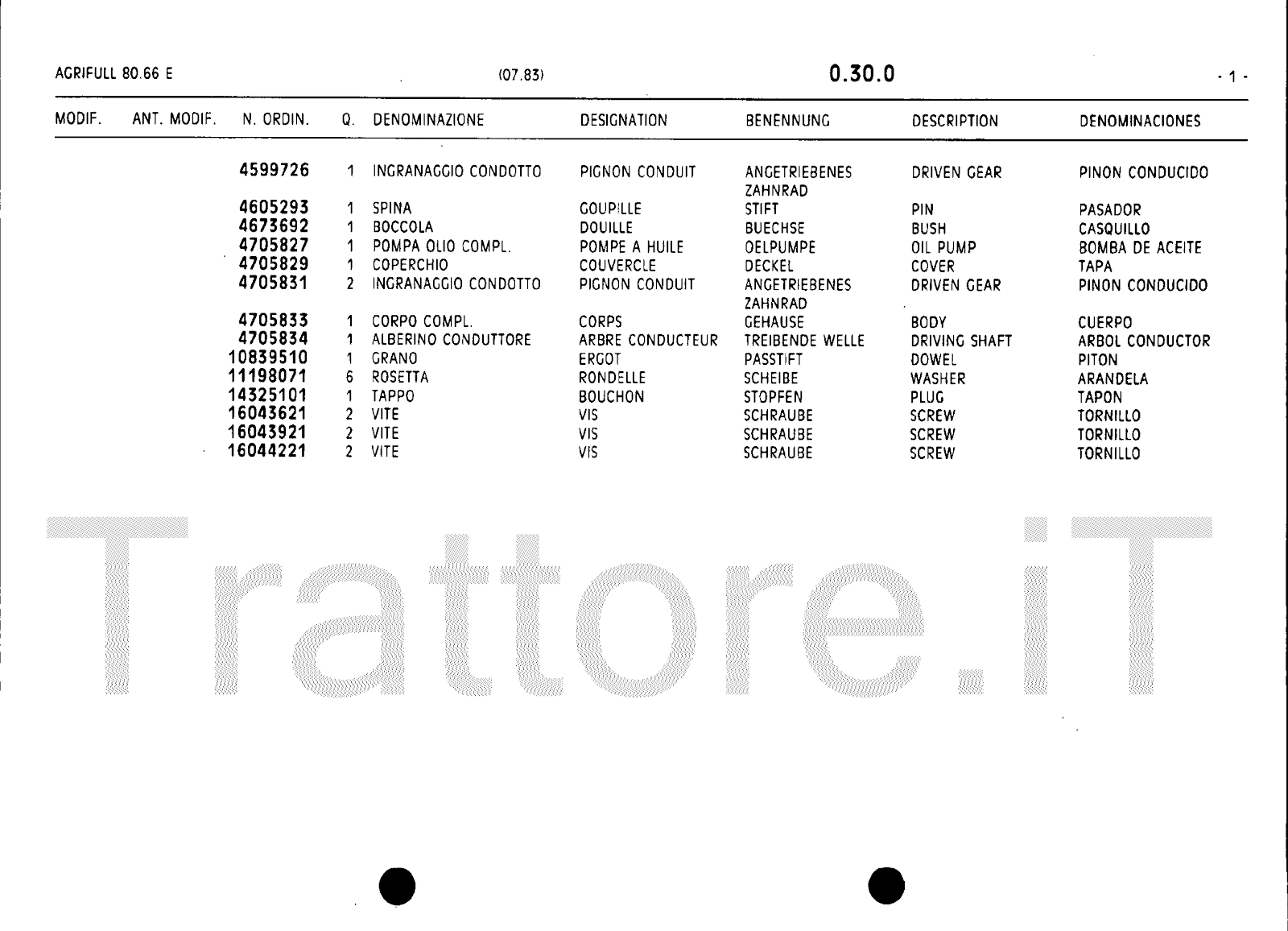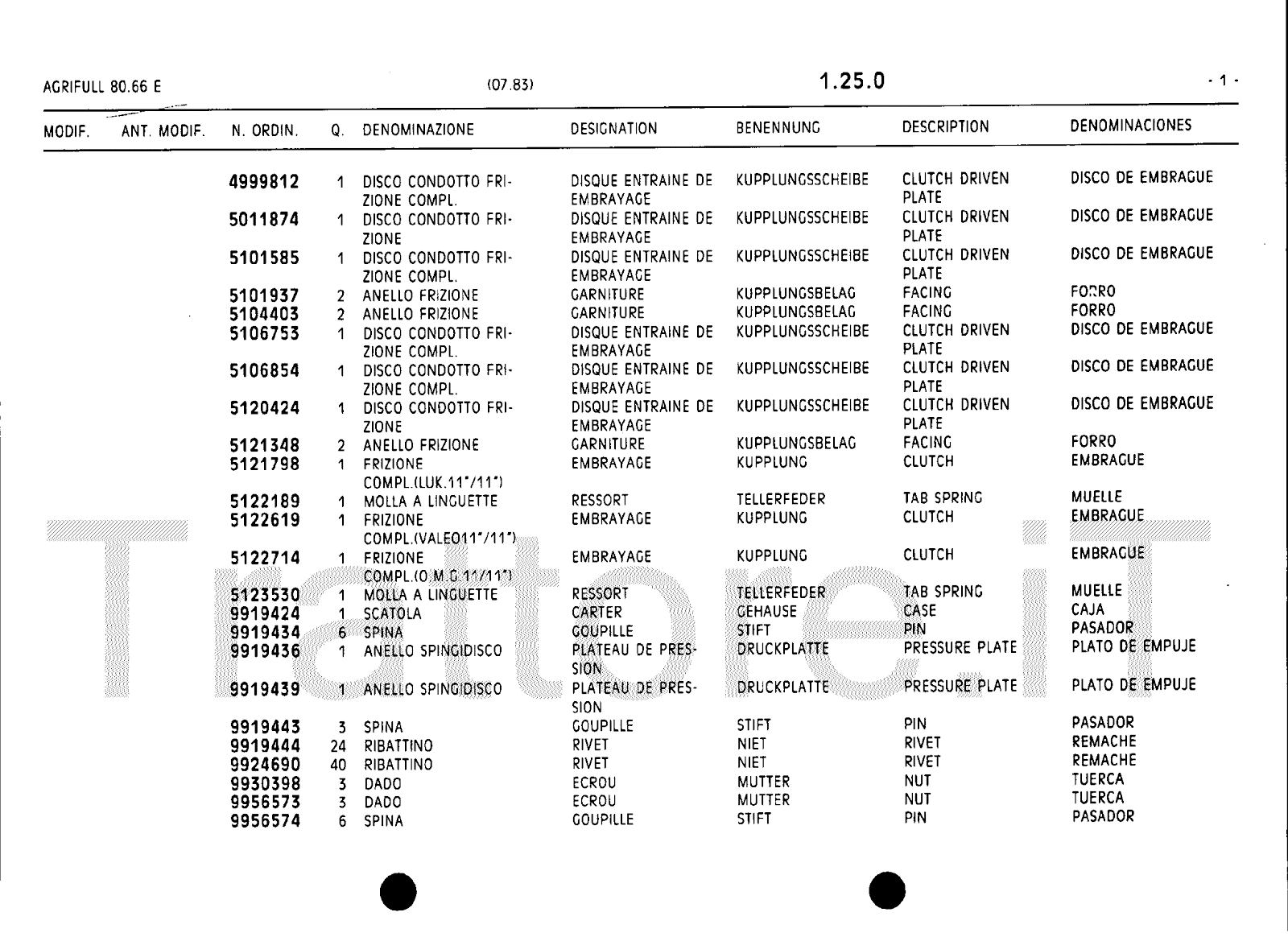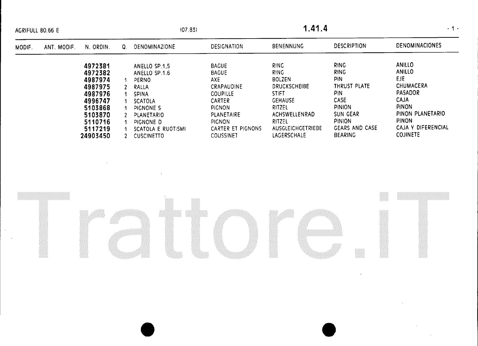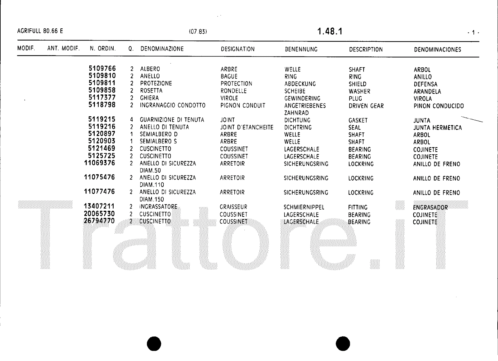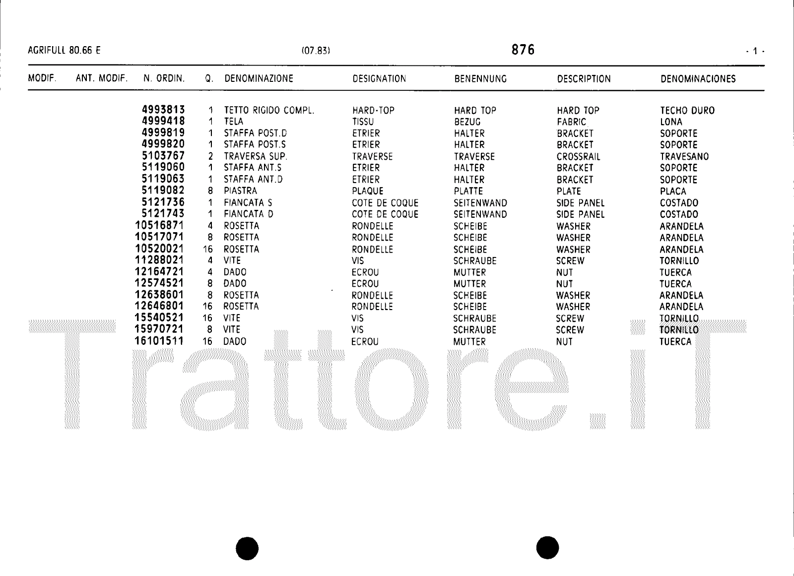 Manuale (esploso meccanico) trattore Agrifull serie 80-66E