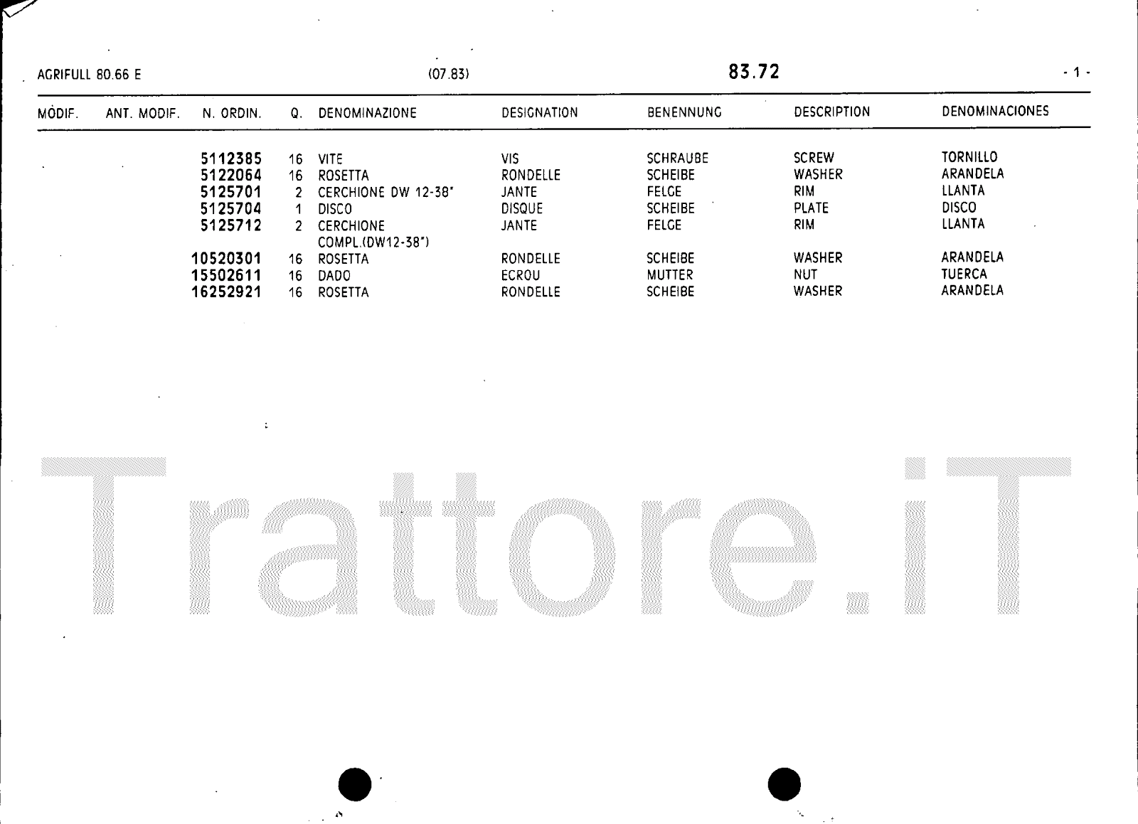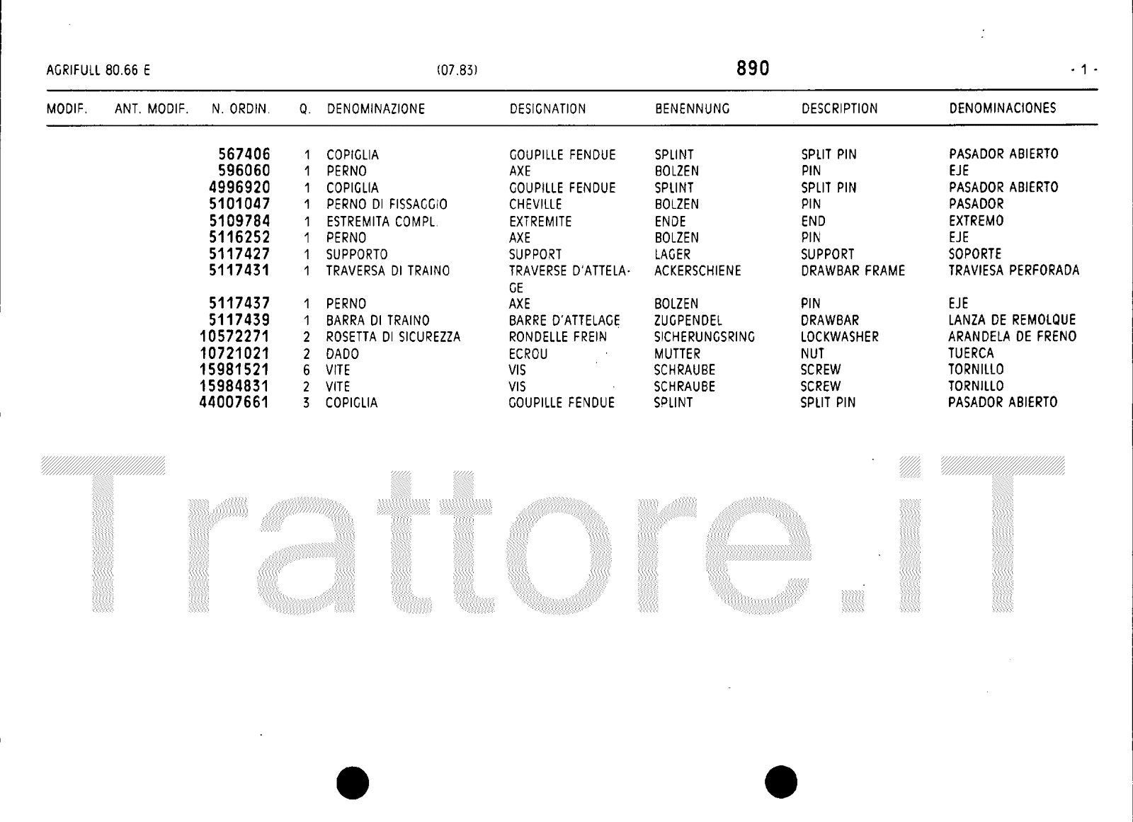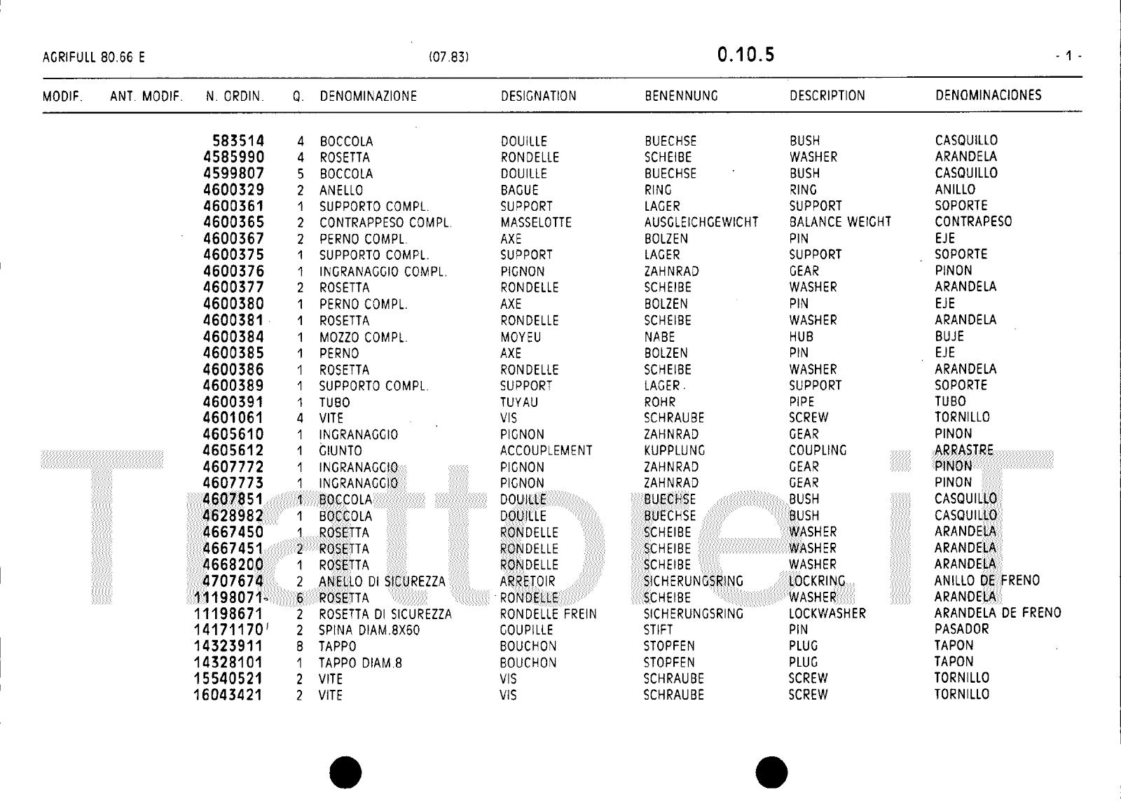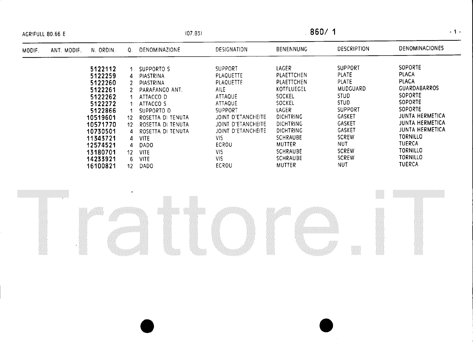 Manuale (esploso meccanico) trattore Agrifull serie 80-66E