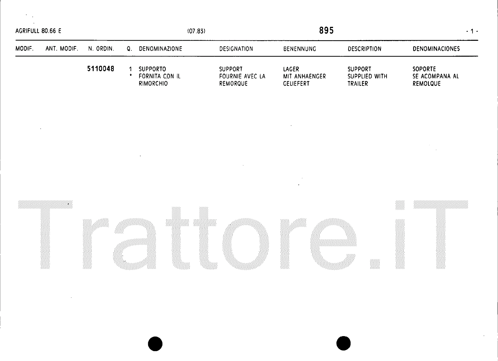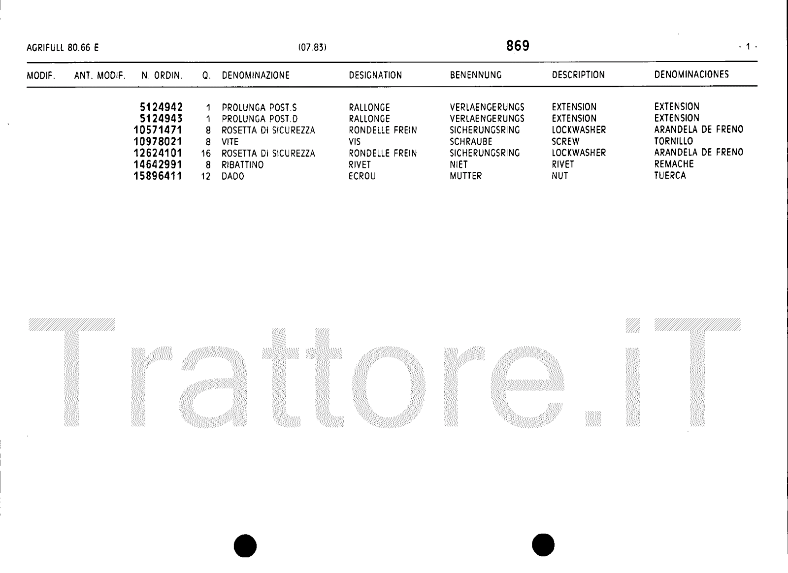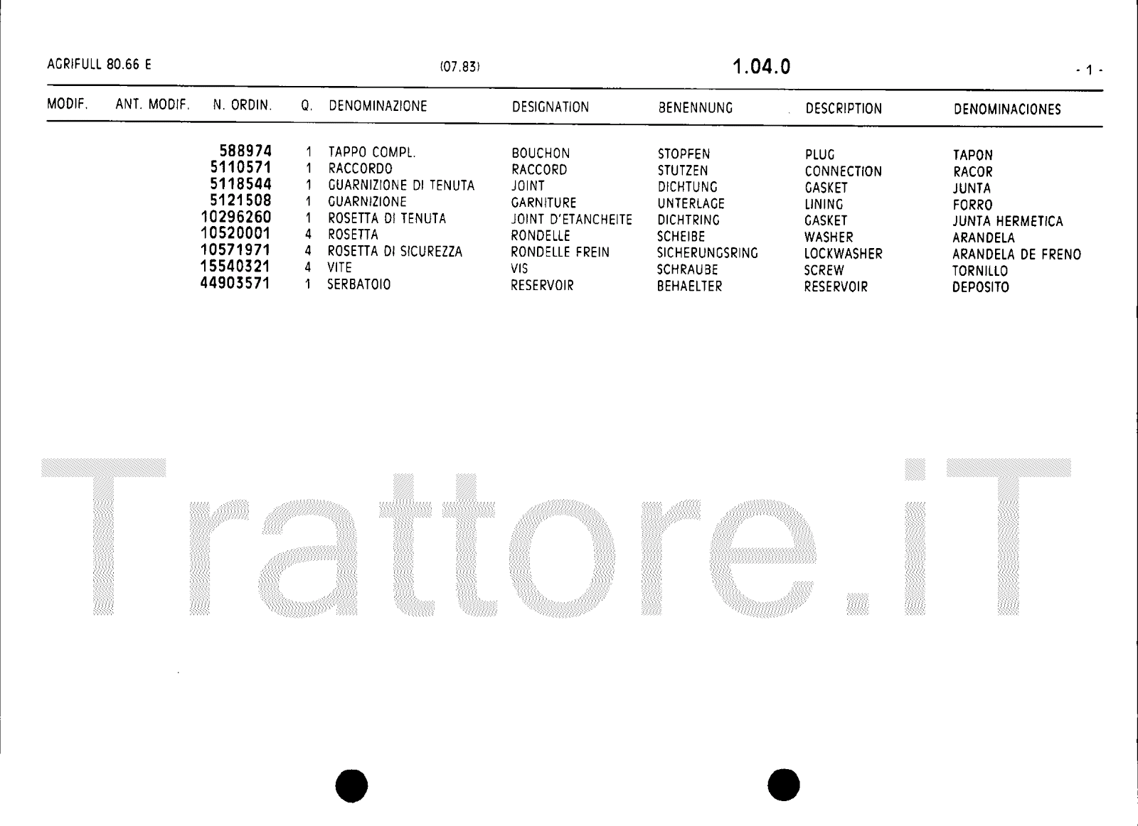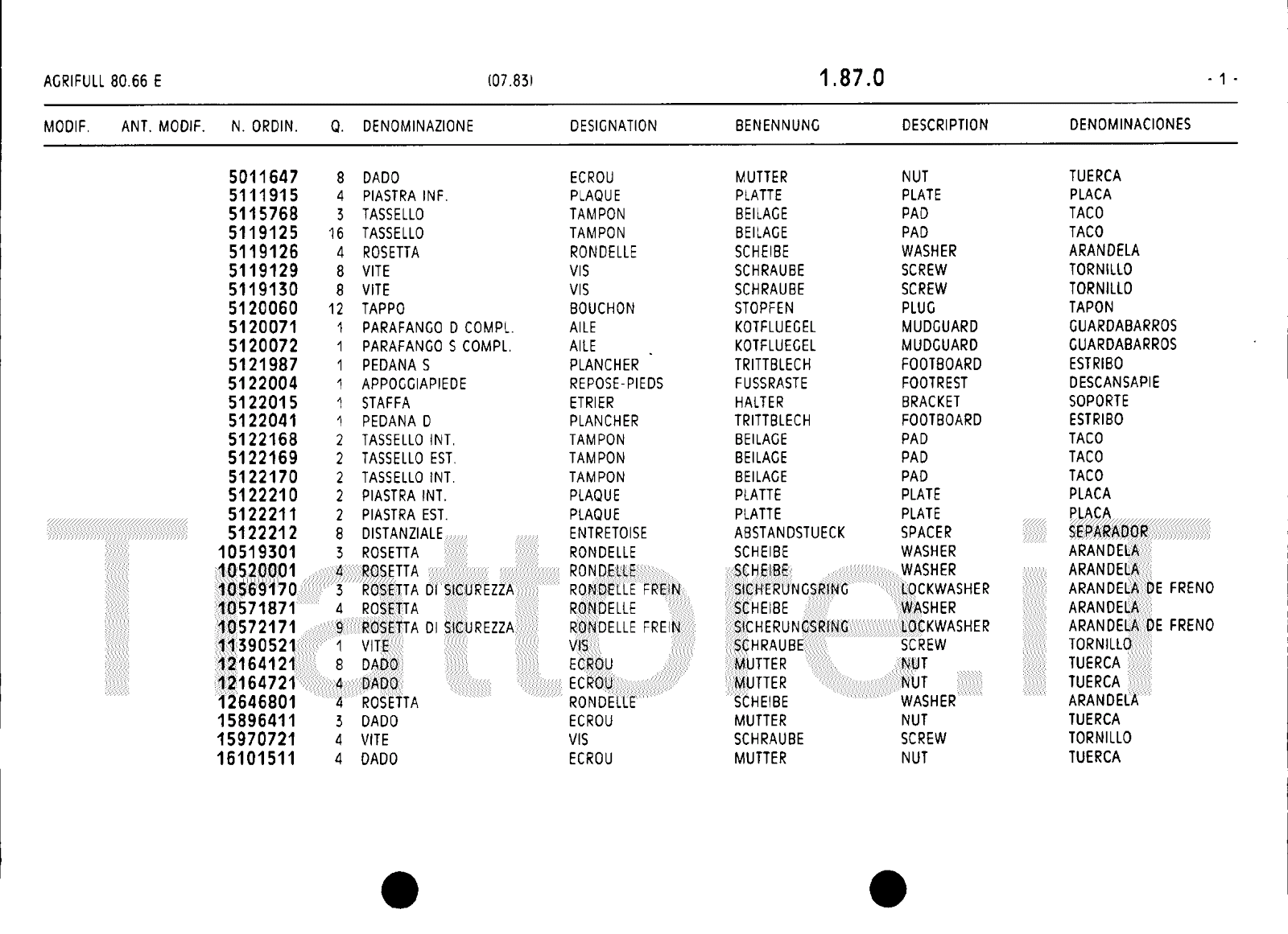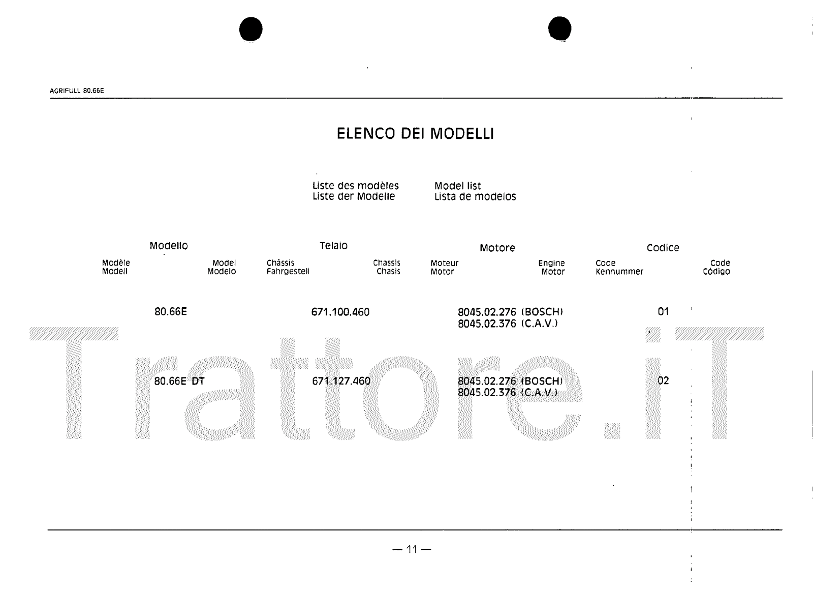 Manuale (esploso meccanico) trattore Agrifull serie 80-66E