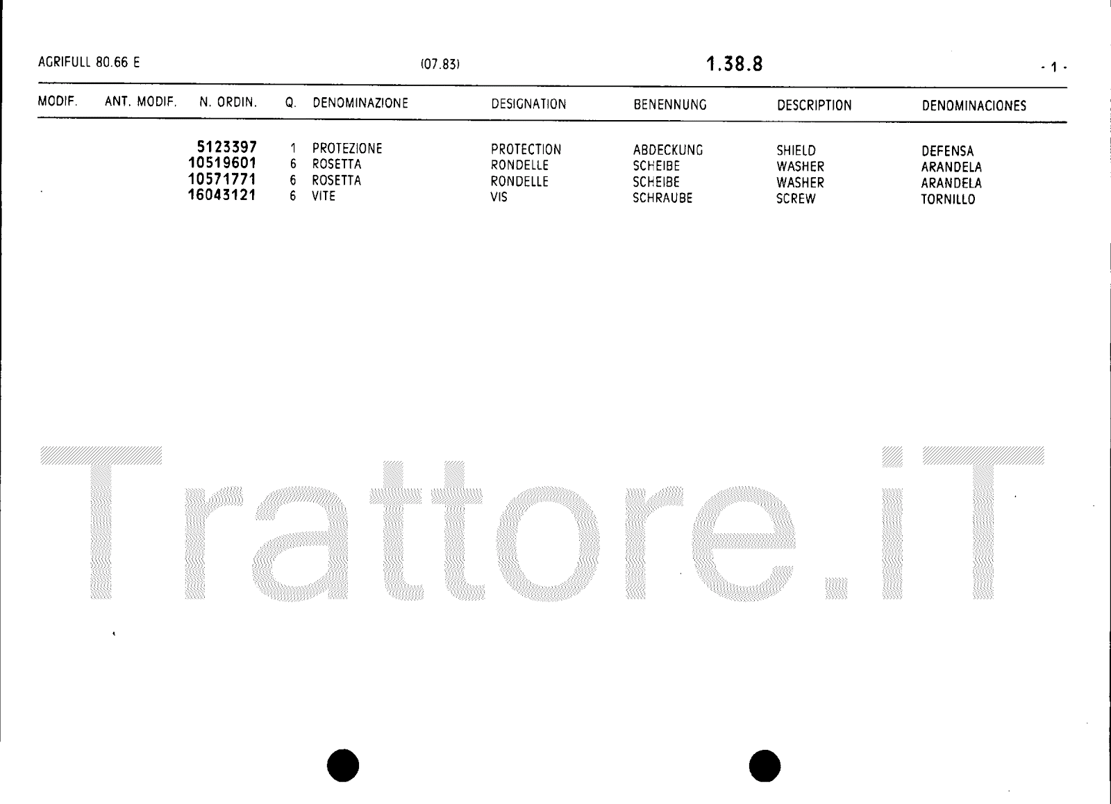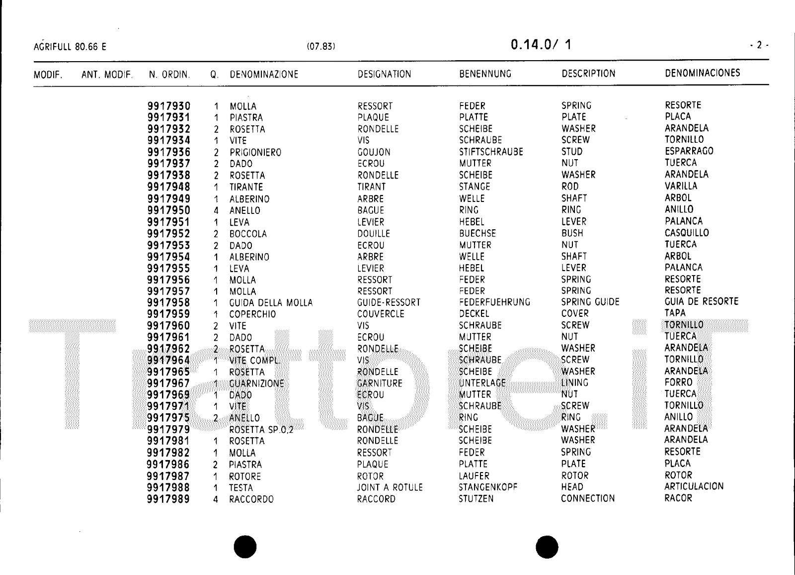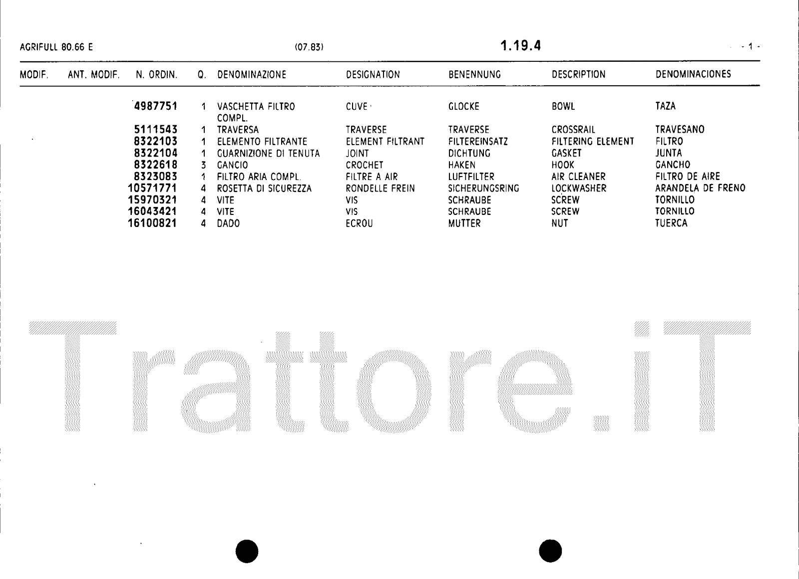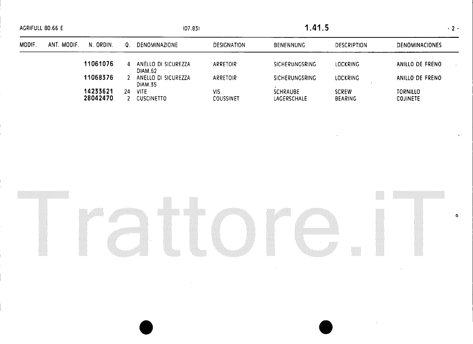 Manuale (esploso meccanico) trattore Agrifull serie 80-66E