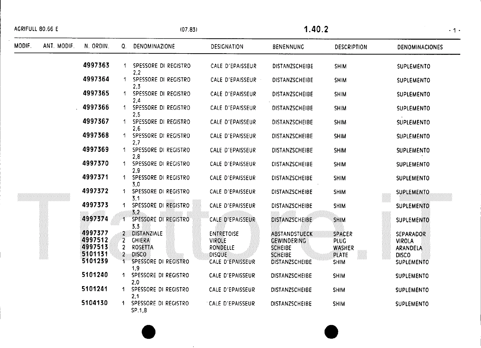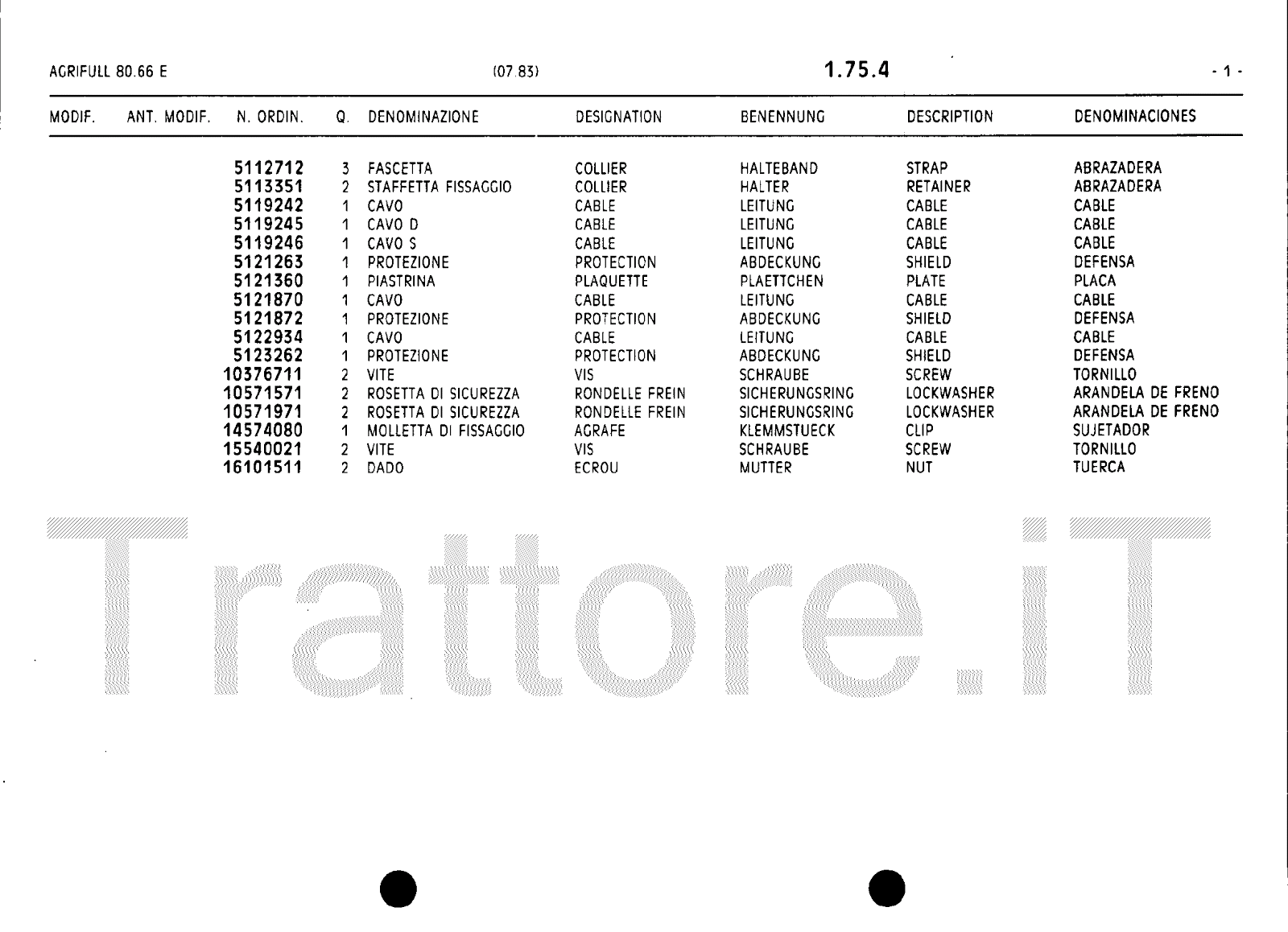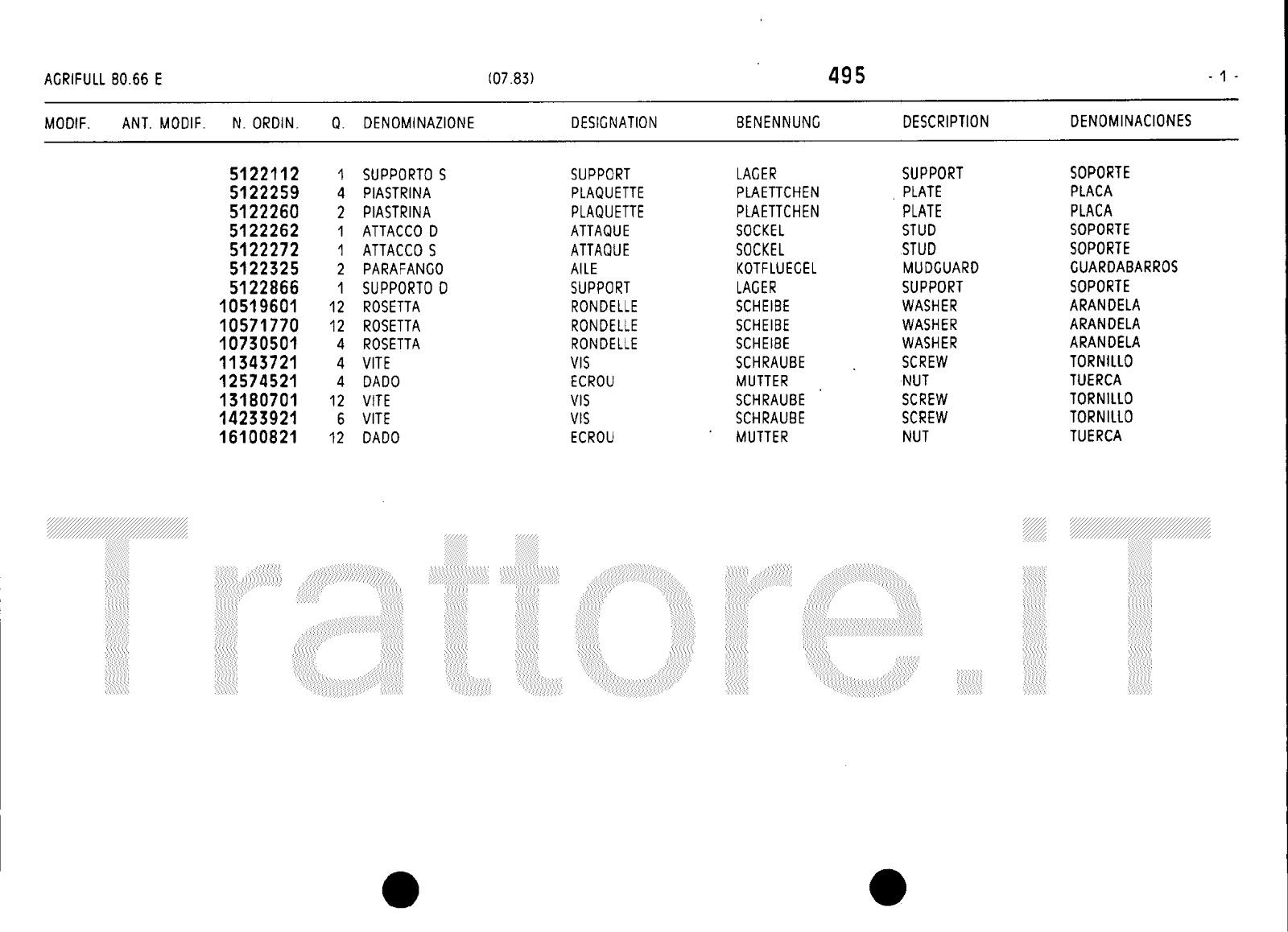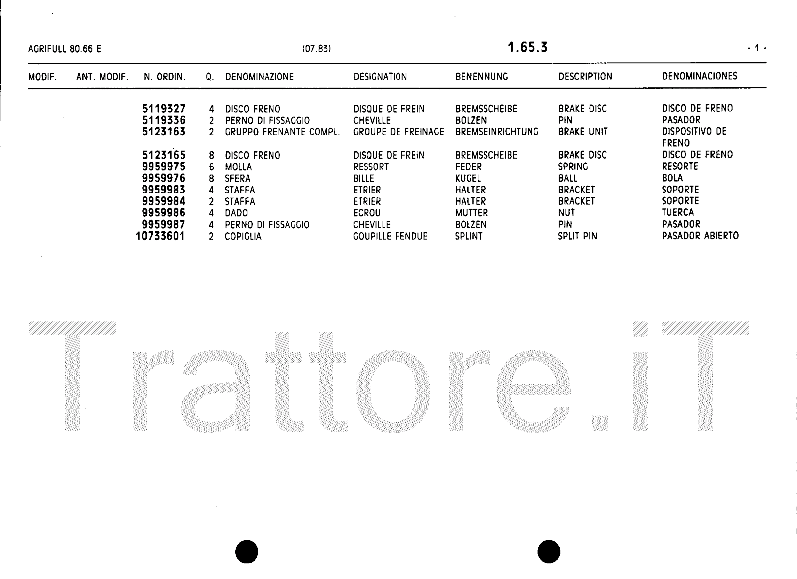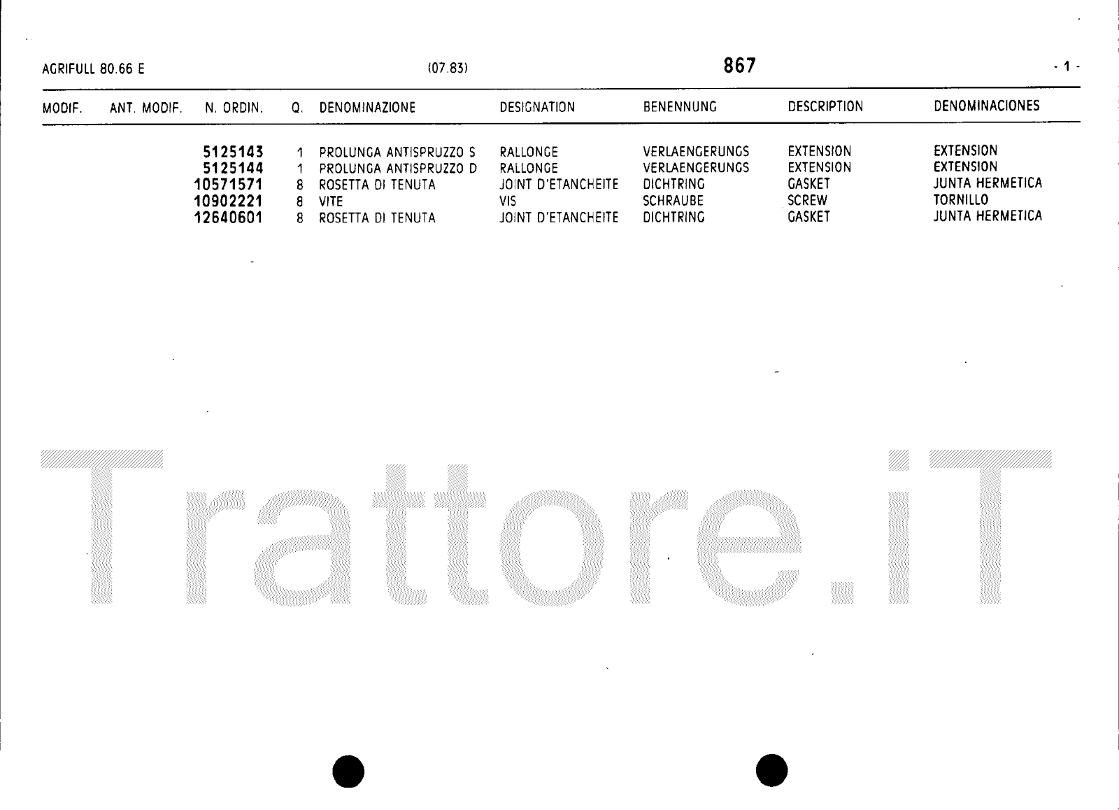 Manuale (esploso meccanico) trattore Agrifull serie 80-66E