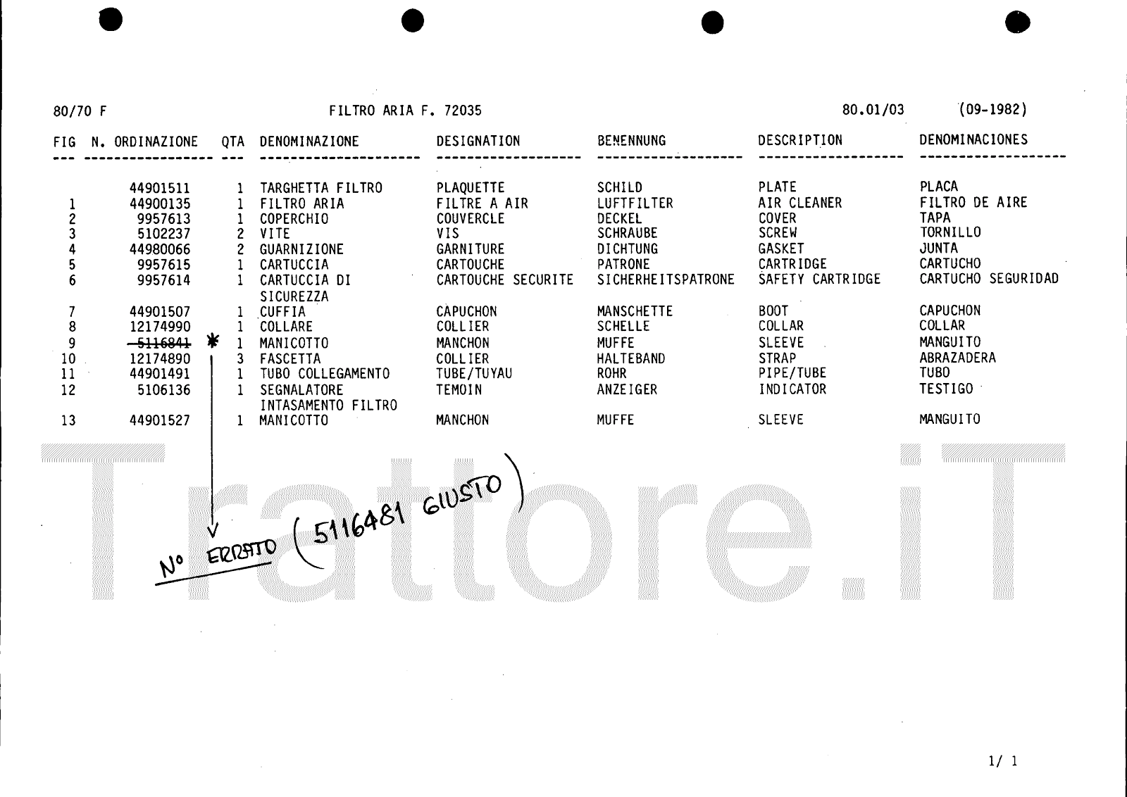 Manuale (esploso meccanico) trattore Agrifull serie 80-70F 2AM DT