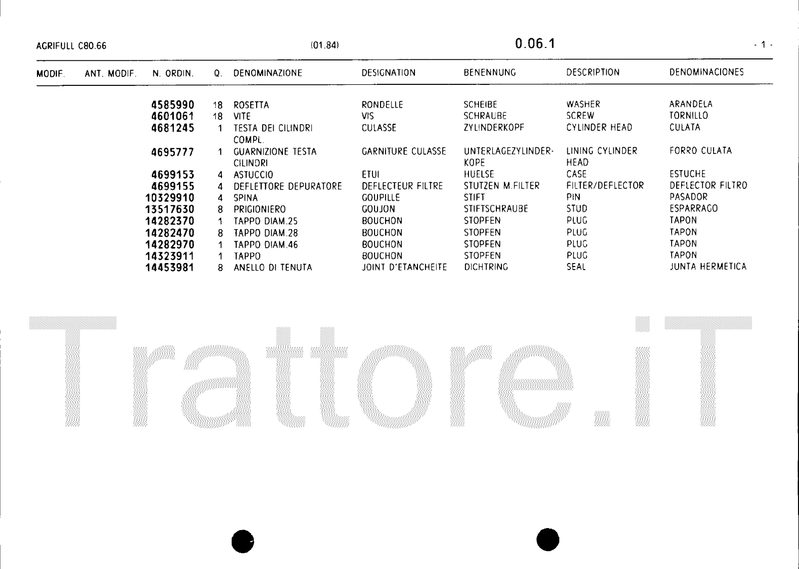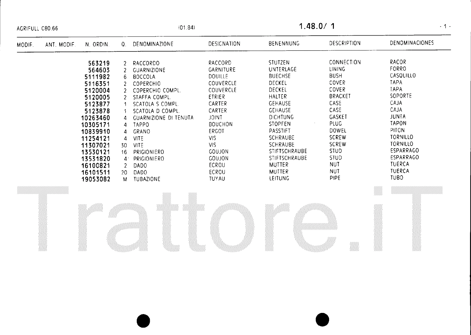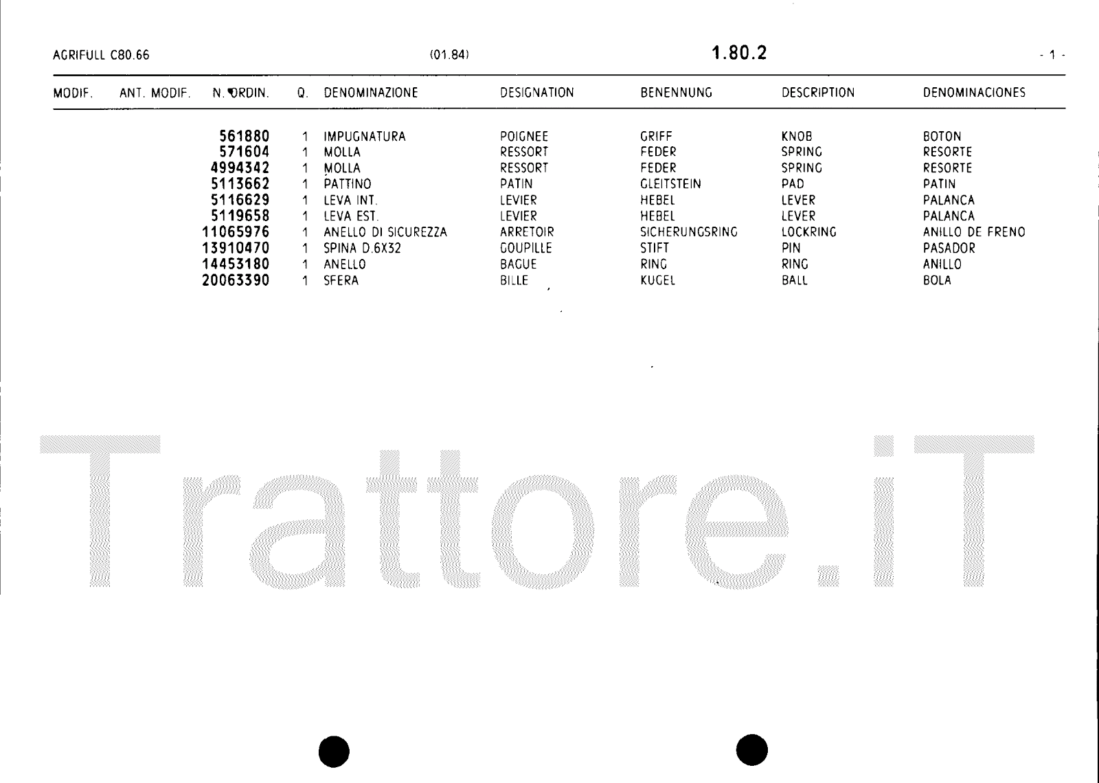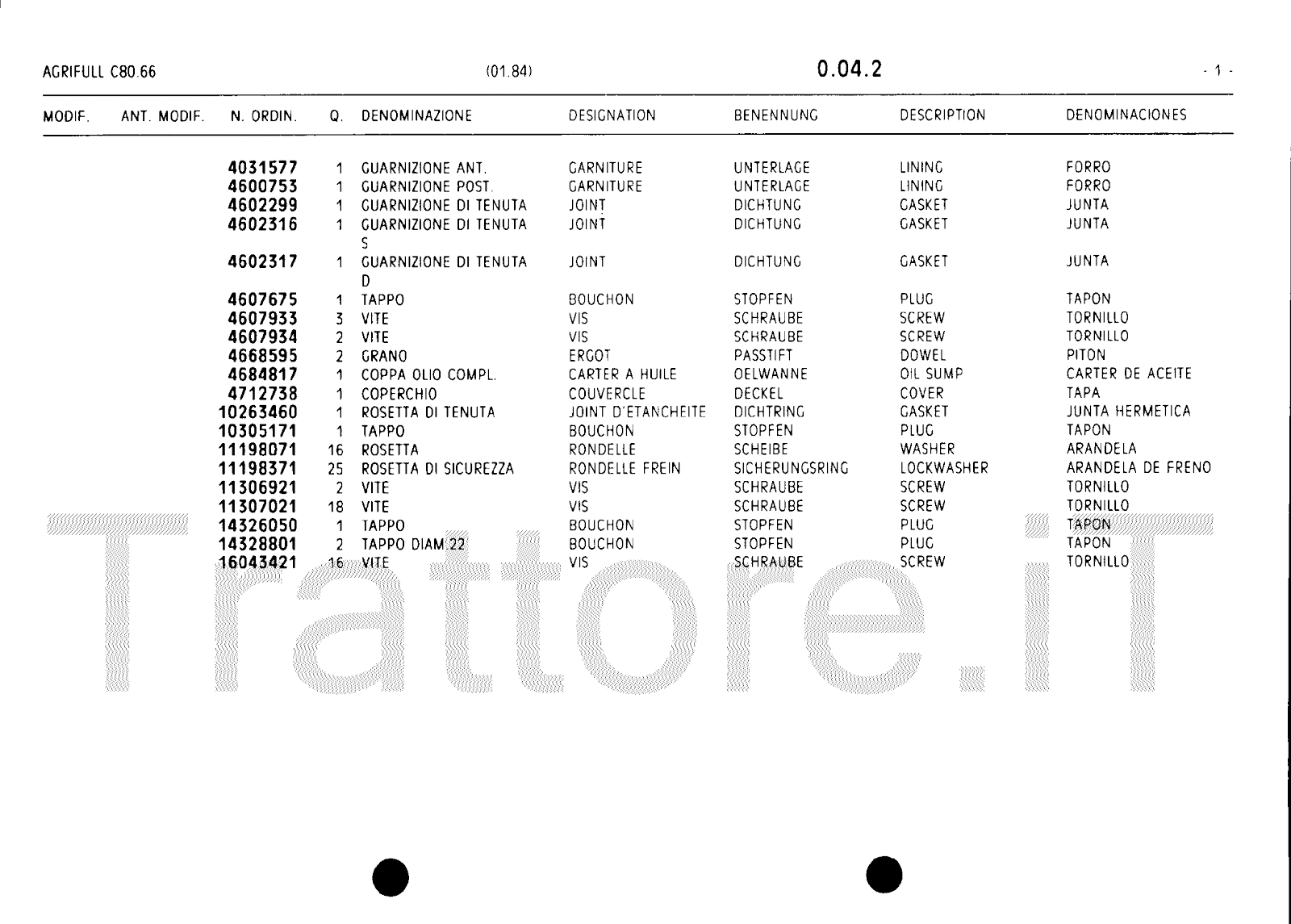 Manuale (esploso meccanico) trattore Agrifull serie C80-66